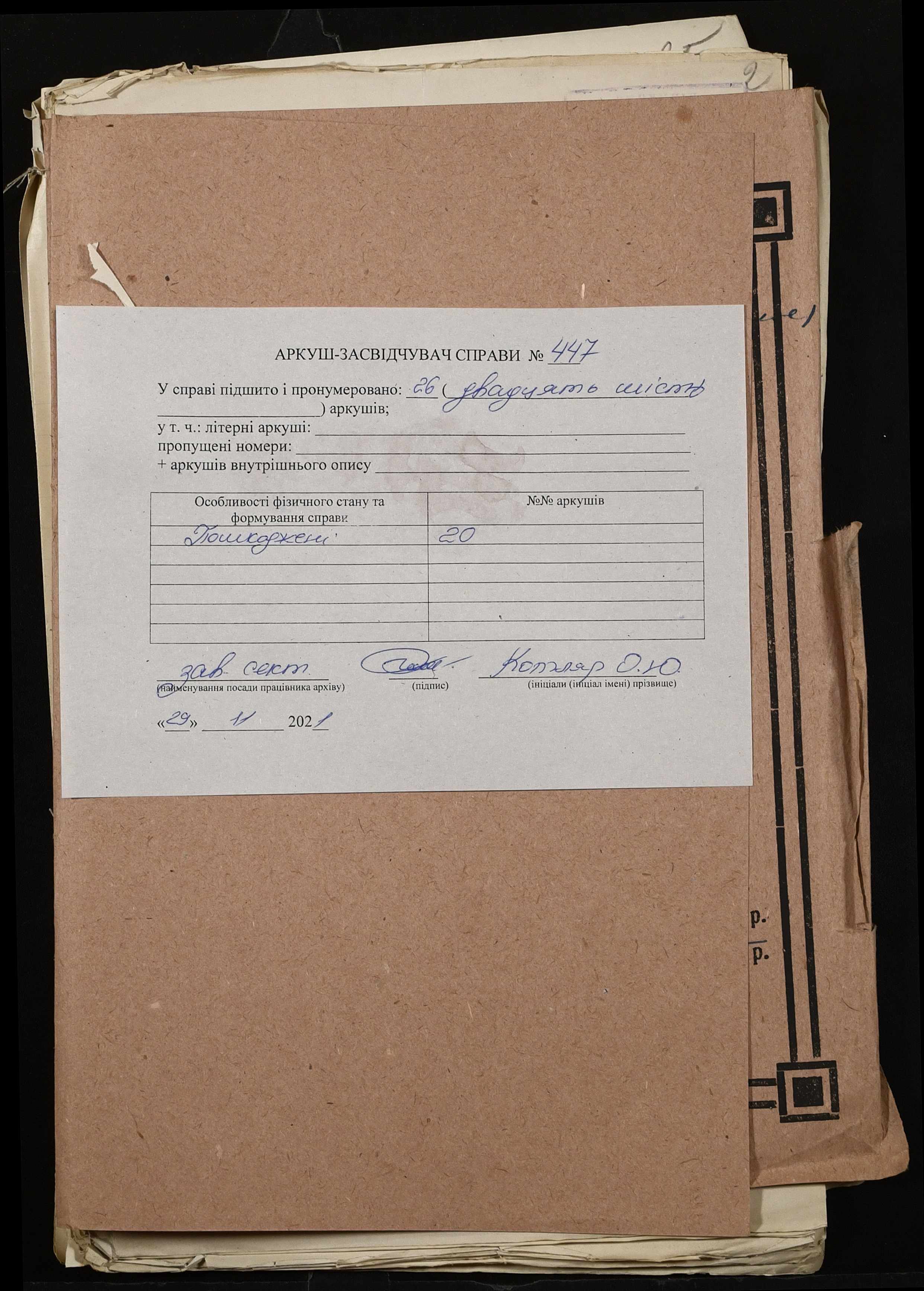 ◦ ◦ ◦ Опис № 1 справ постійного зберігання за 1847-1852, 1858, 1868-1869, 1871-1919, 1922 роки