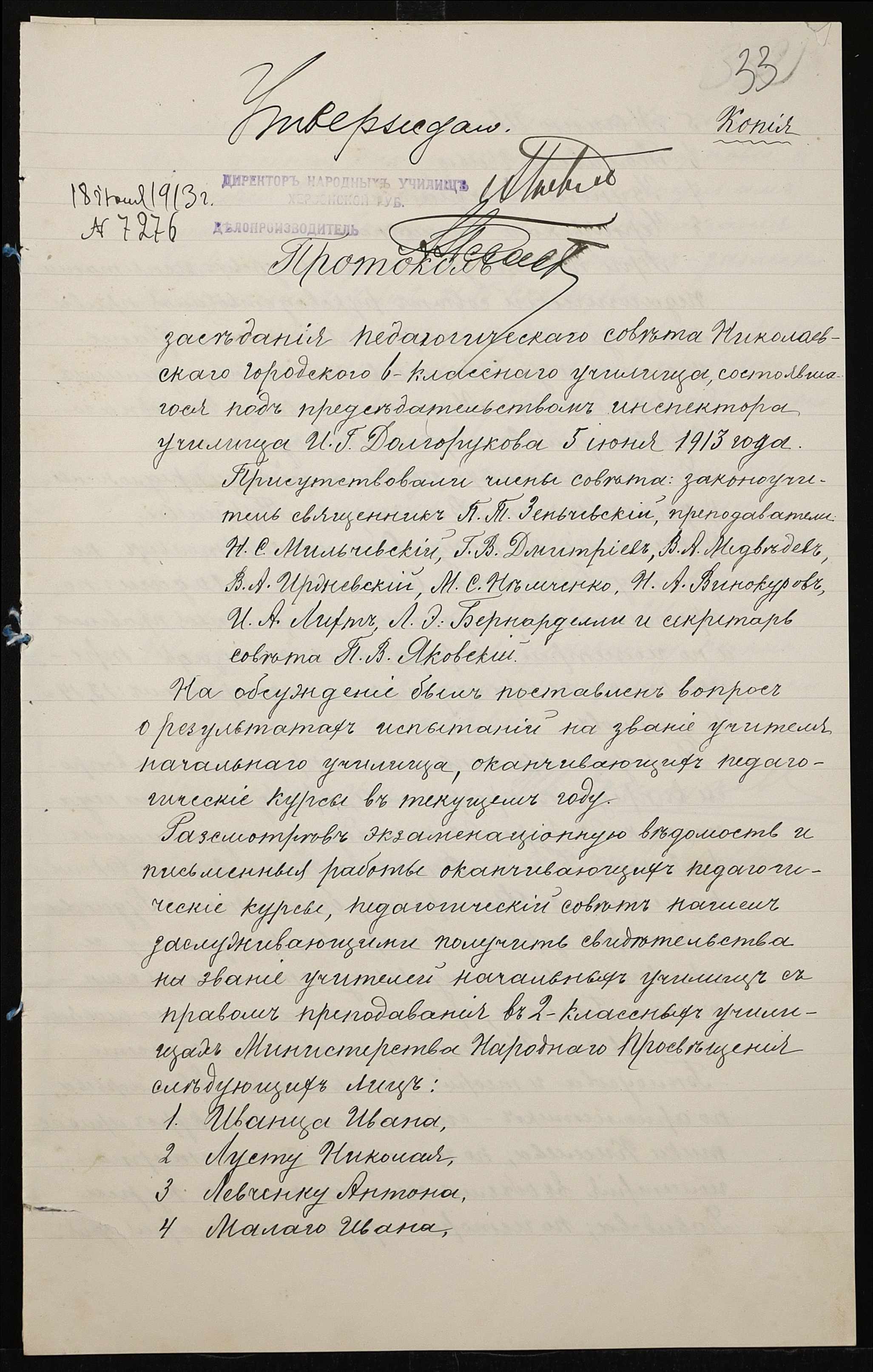 ◦ ◦ Фонд № 131 “Миколаївське перше вище початкове училище”