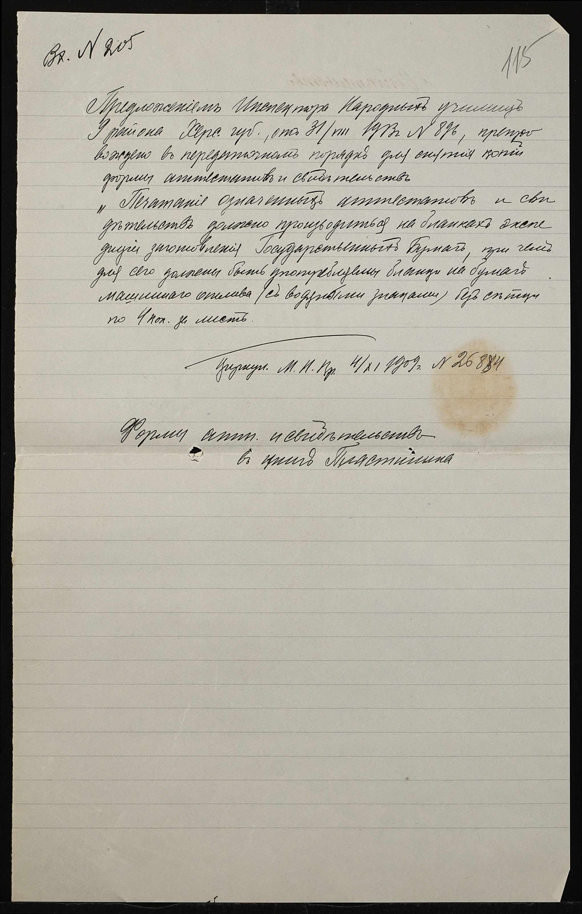 • • • • Справа № 460а “Кошторис прибутків і видатків училища, реєстр бухгалтерських документів, список викладачів з зазначенням чину. Том 2”