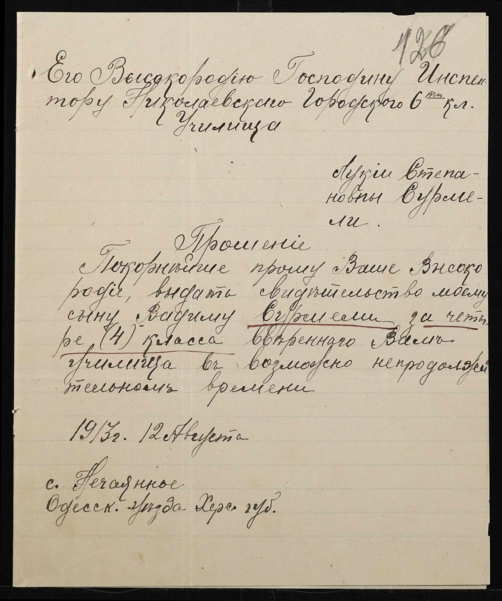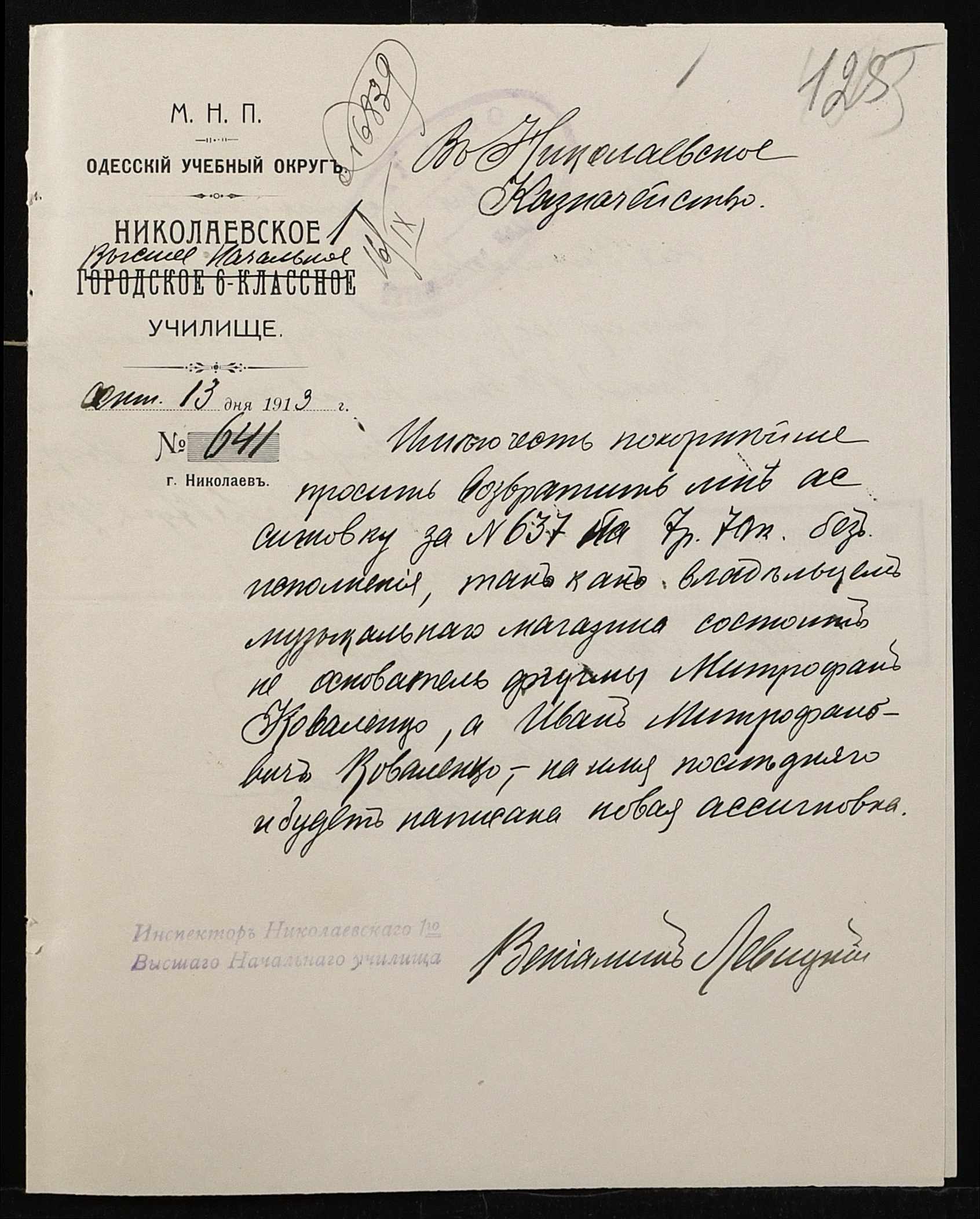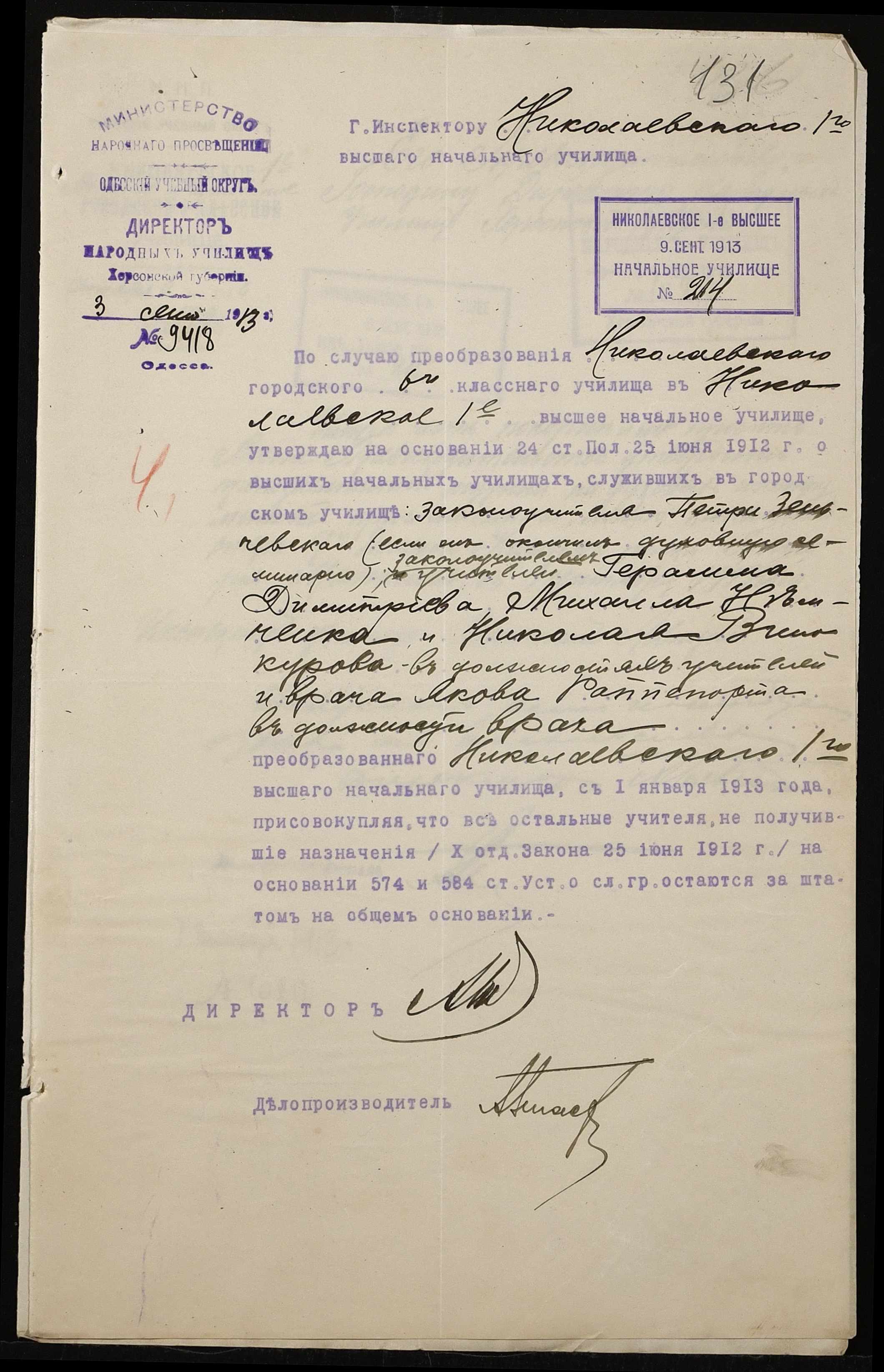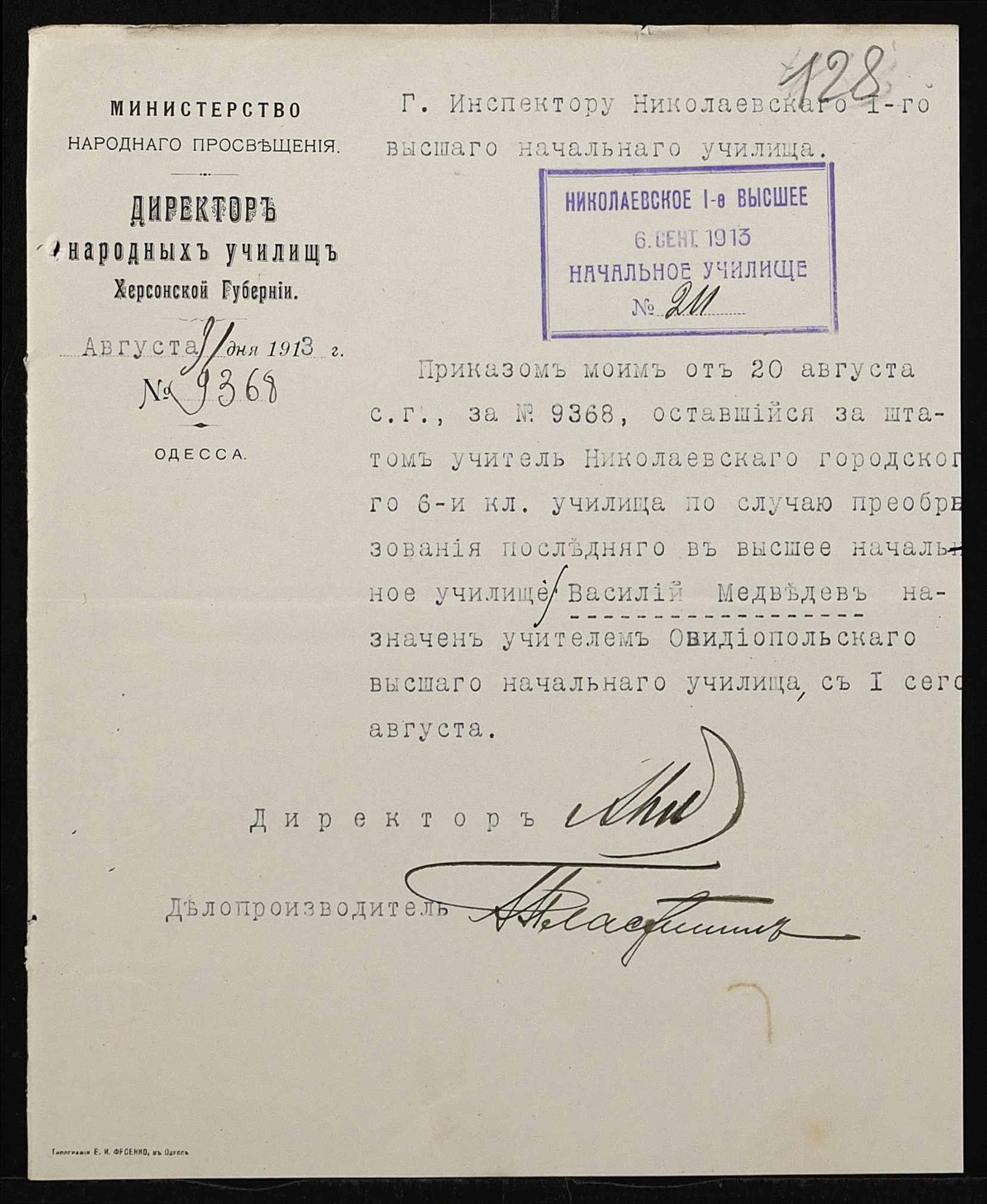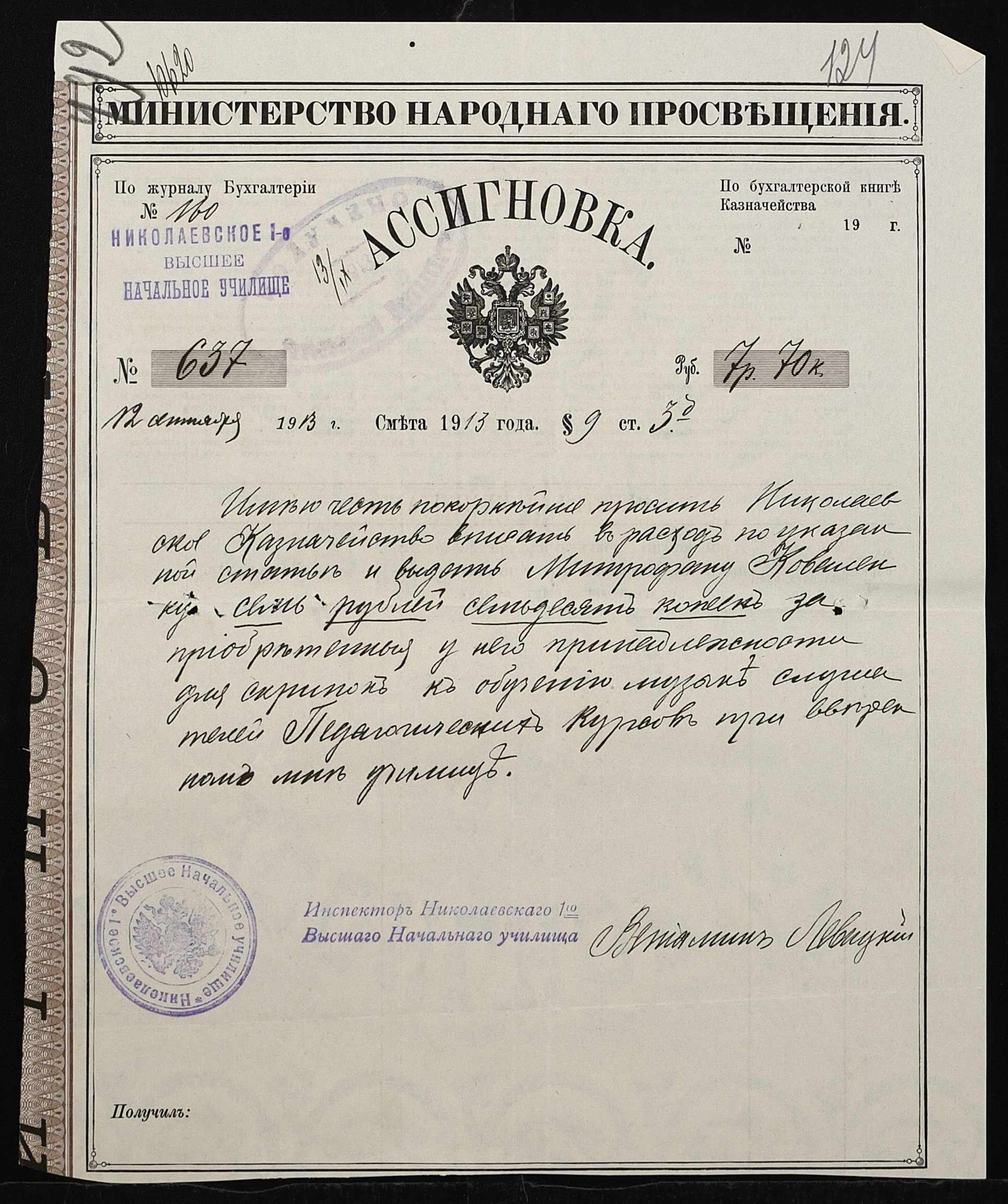 ◦ ◦ Фонд № 131 “Миколаївське перше вище початкове училище”