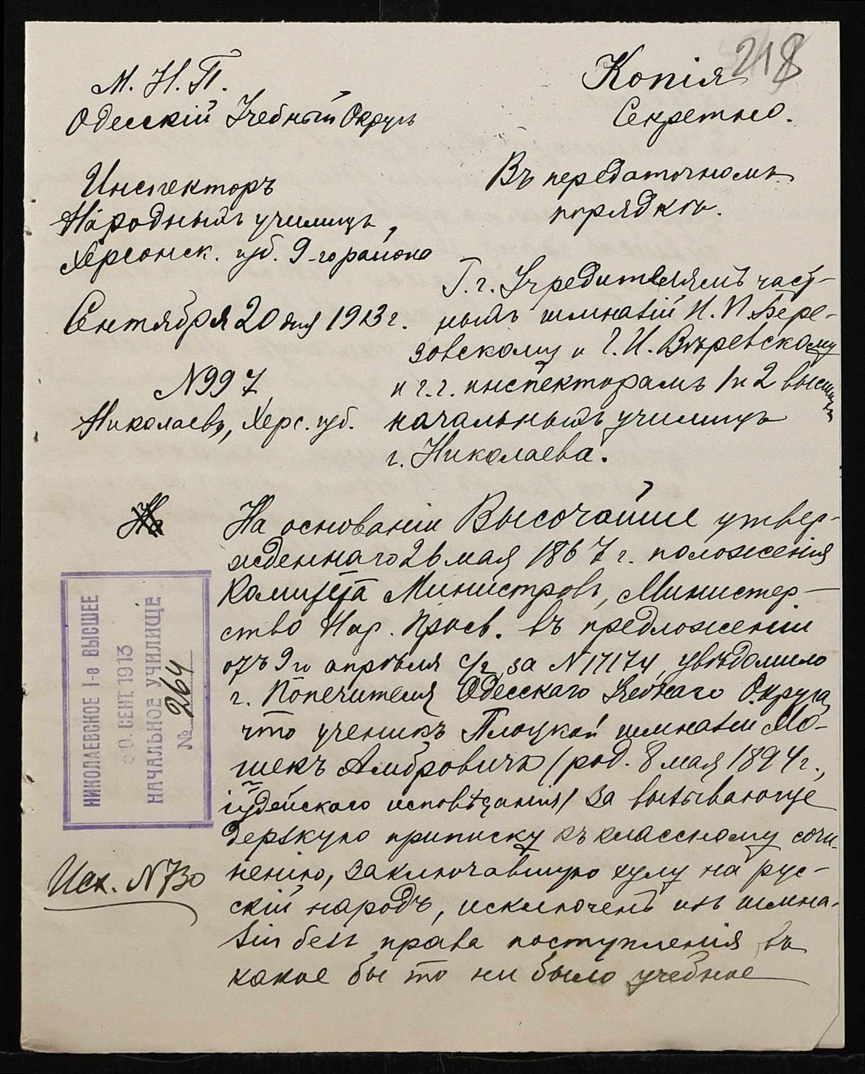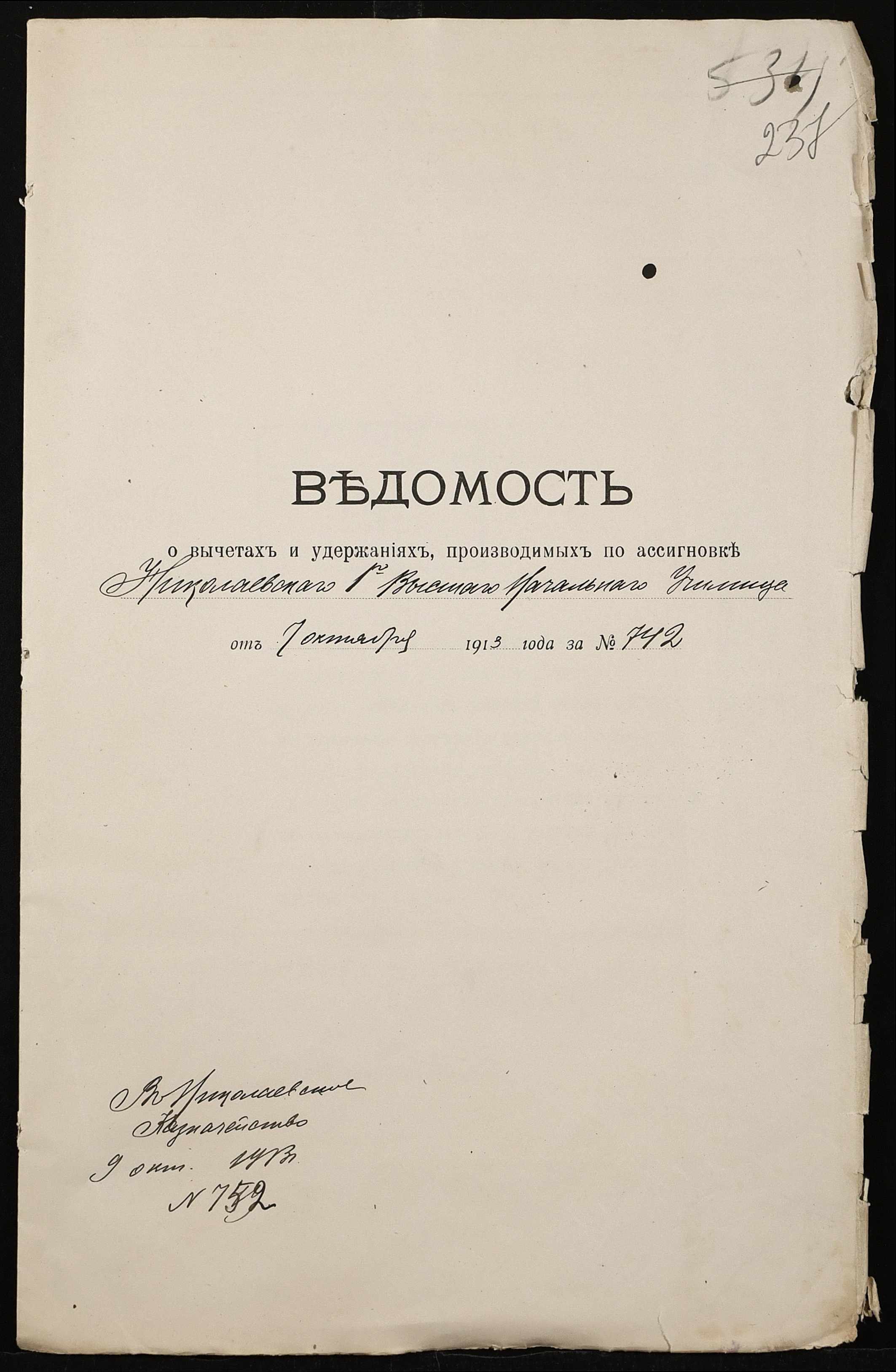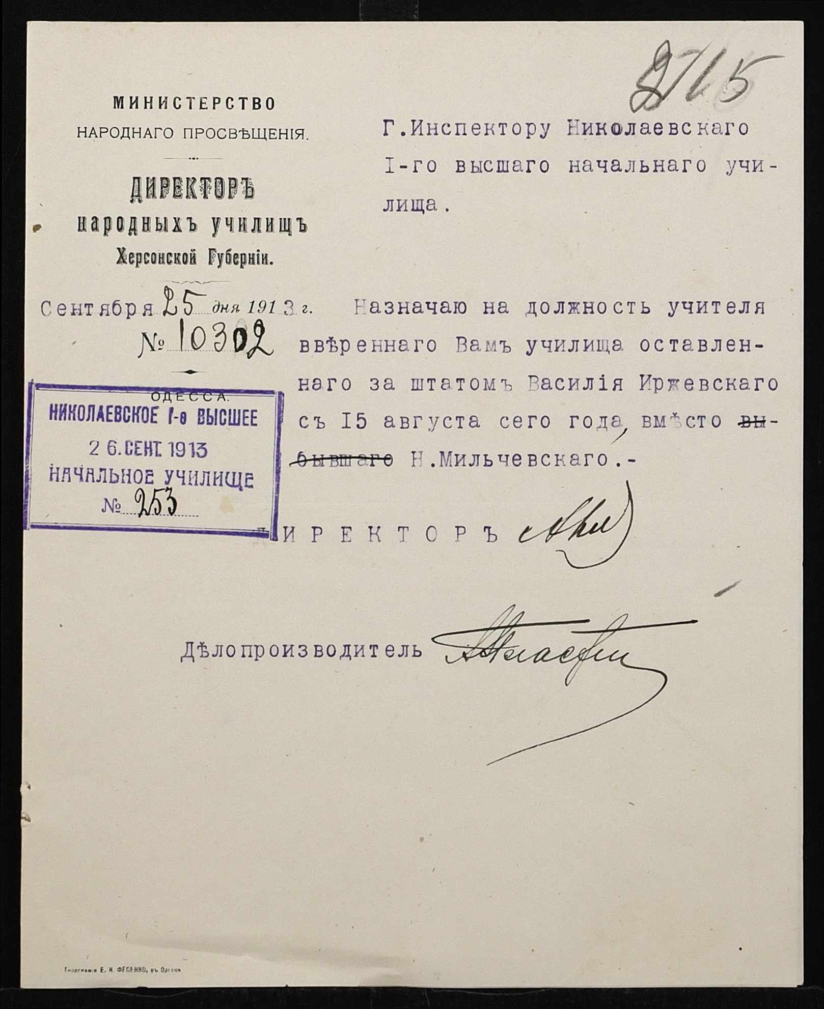 ◦ ◦ Фонд № 131 “Миколаївське перше вище початкове училище”
