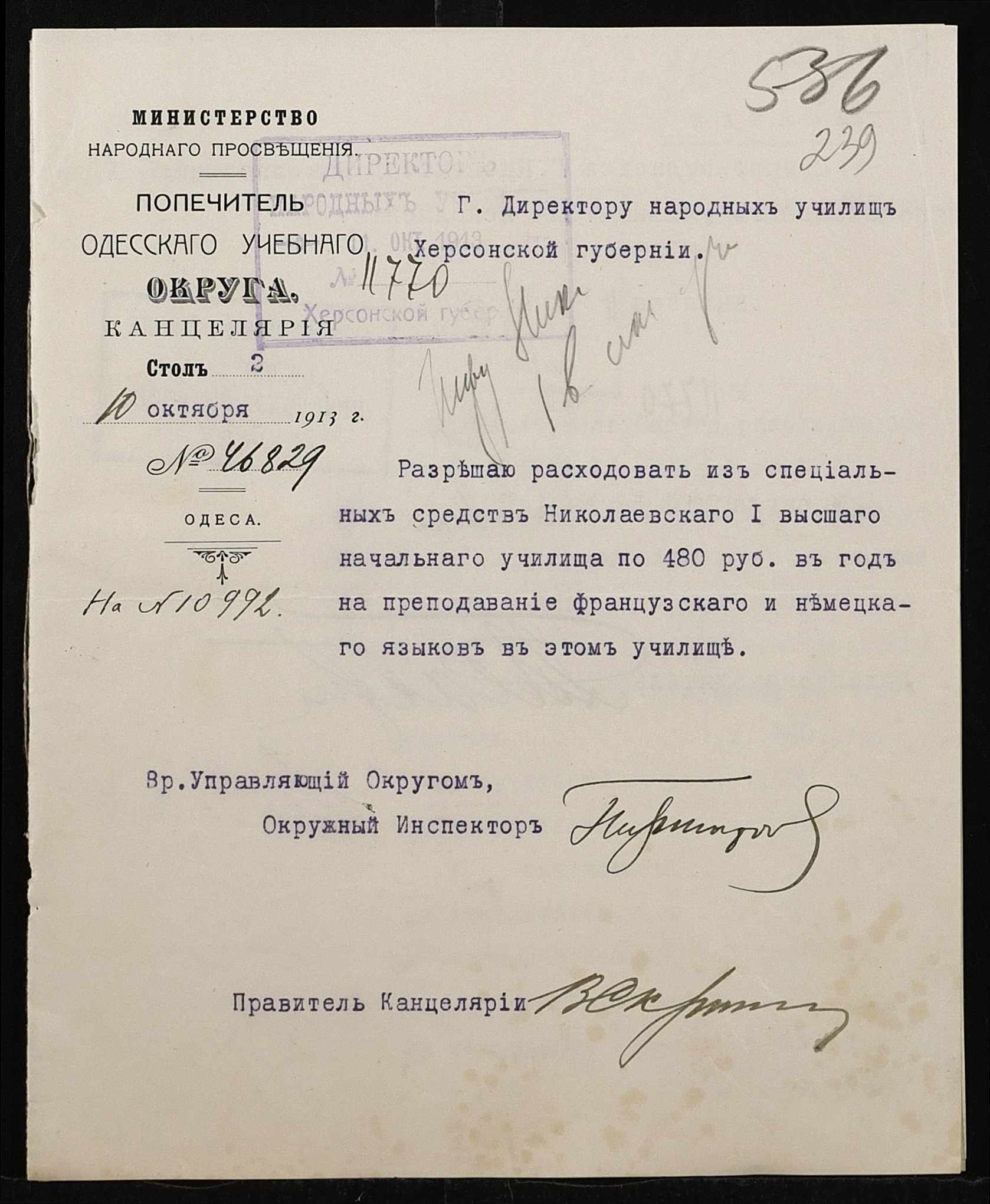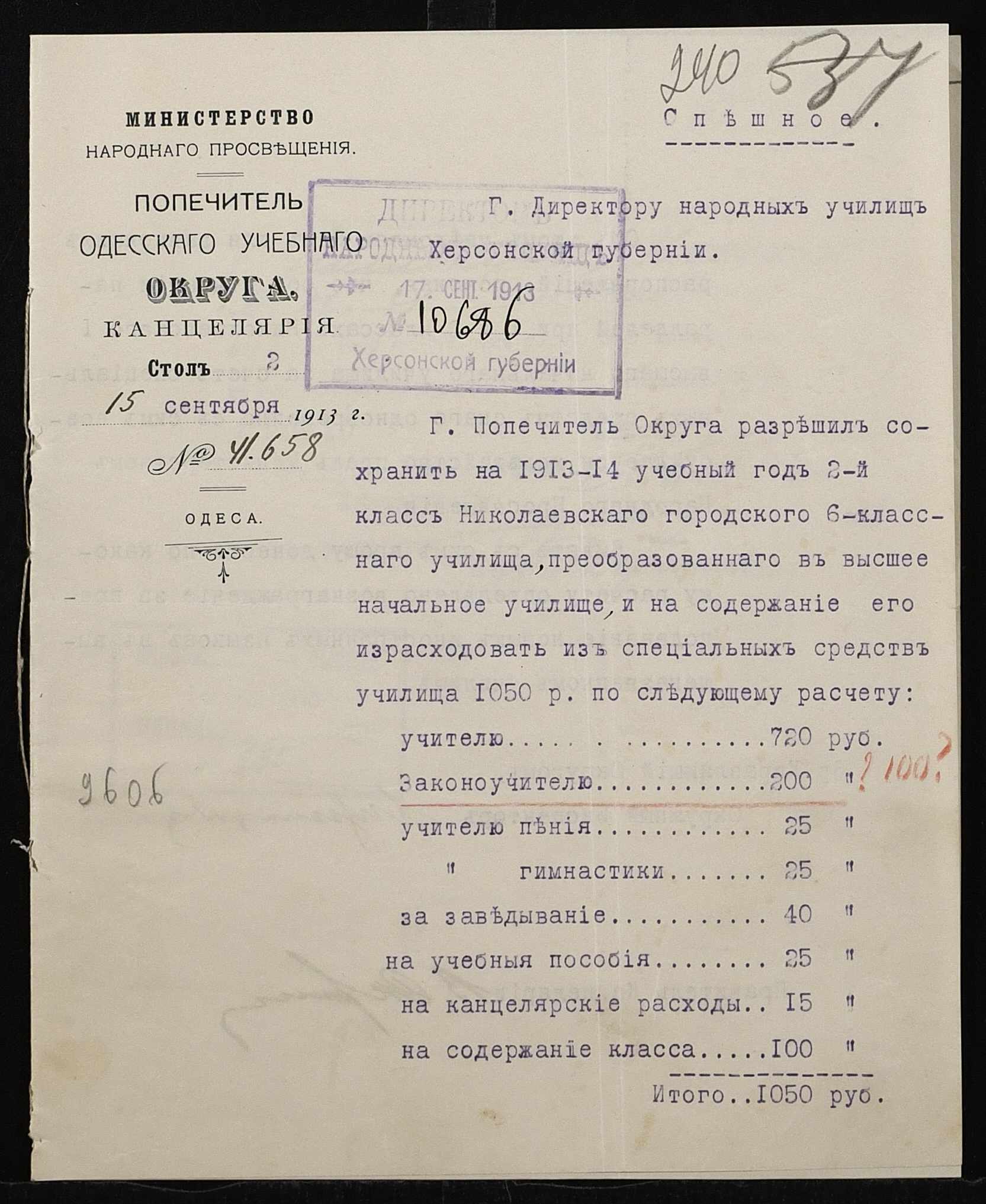 • • • • Справа № 460а “Кошторис прибутків і видатків училища, реєстр бухгалтерських документів, список викладачів з зазначенням чину. Том 2”