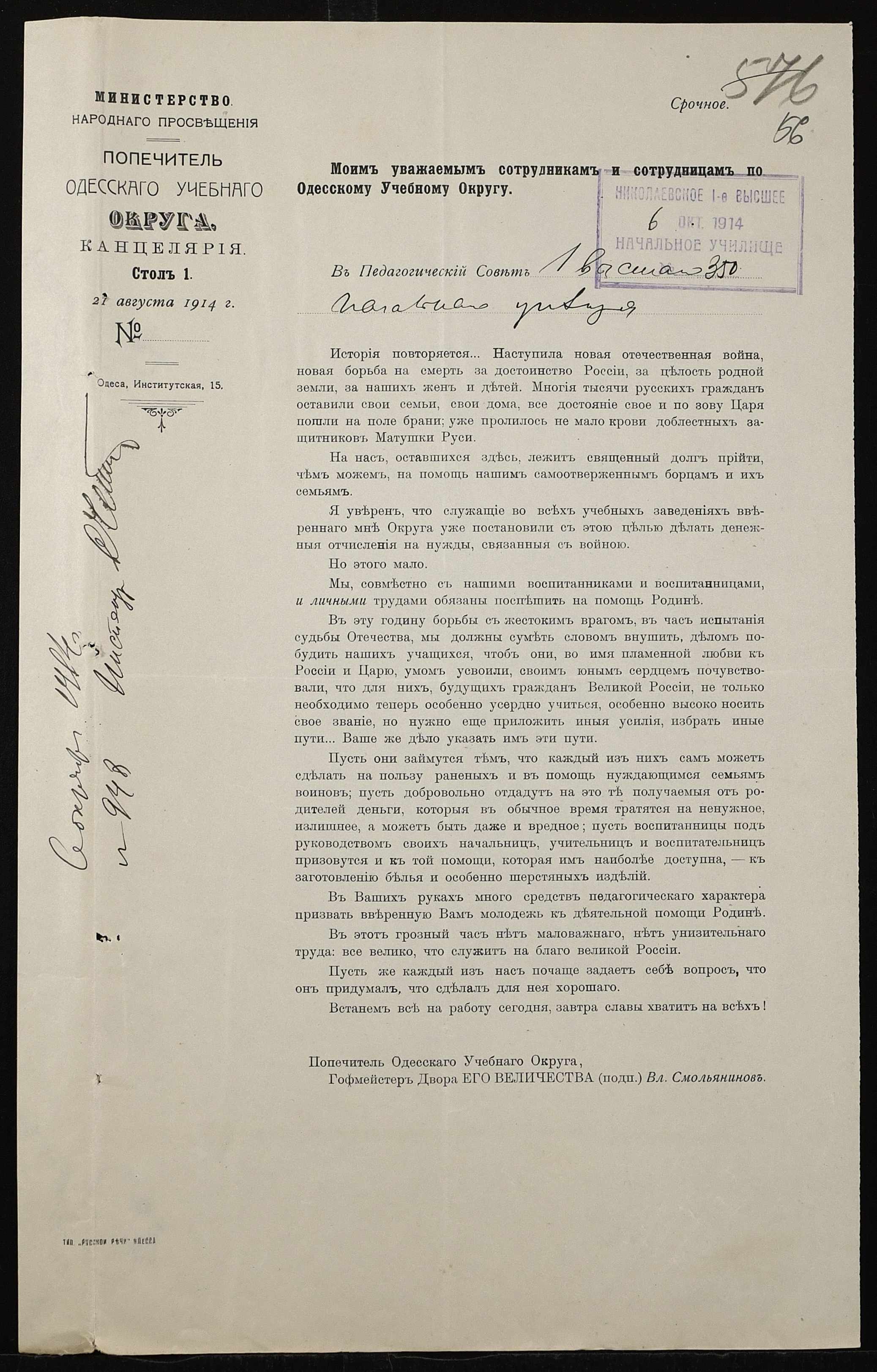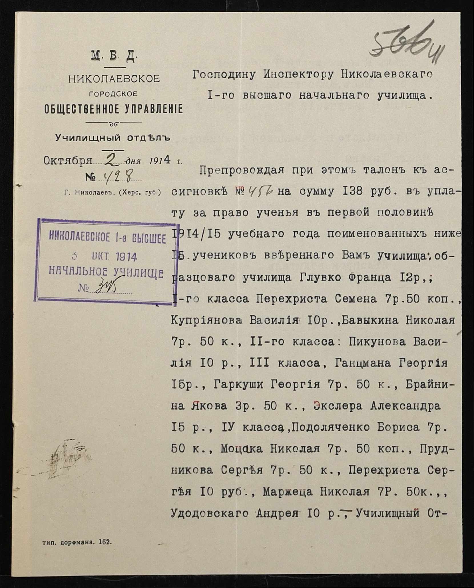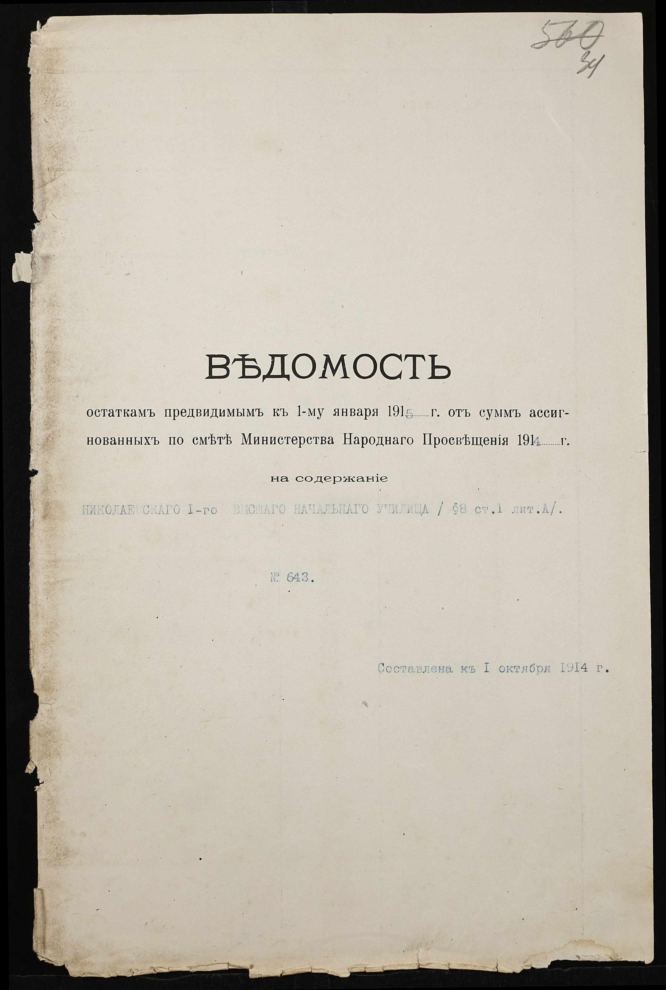 ◦ ◦ Фонд № 131 “Миколаївське перше вище початкове училище”