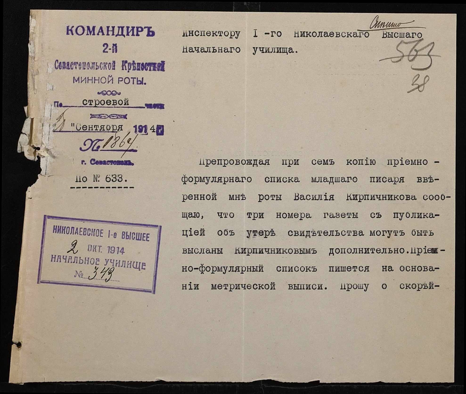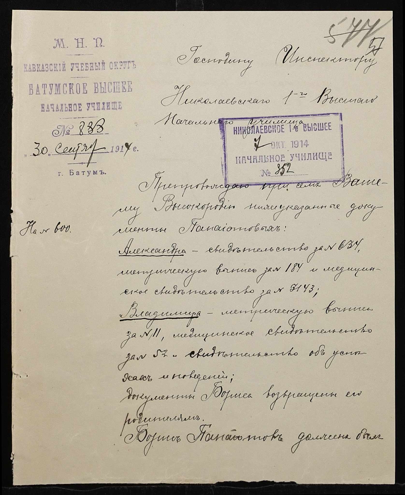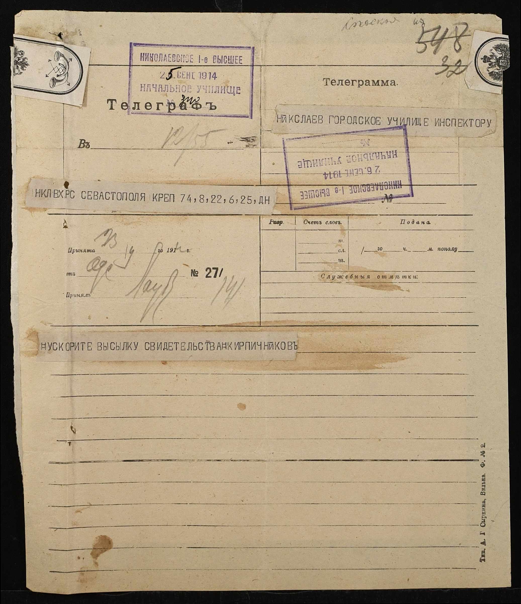 ◦ ◦ Фонд № 131 “Миколаївське перше вище початкове училище”
