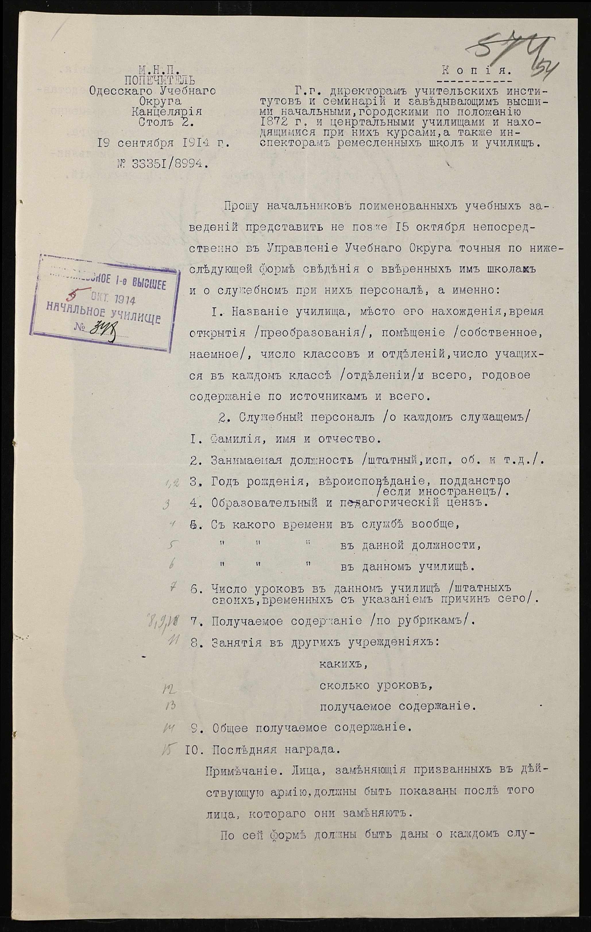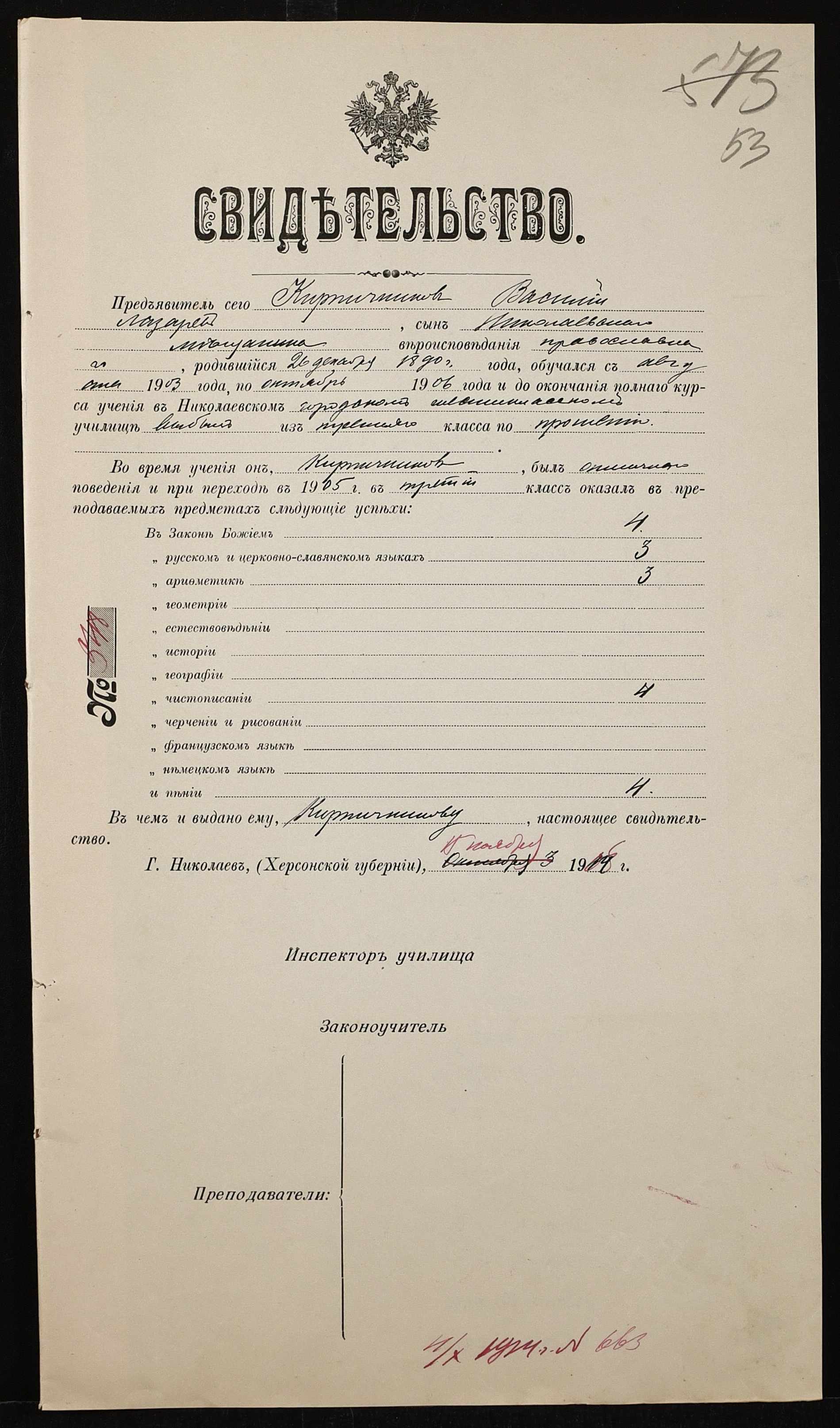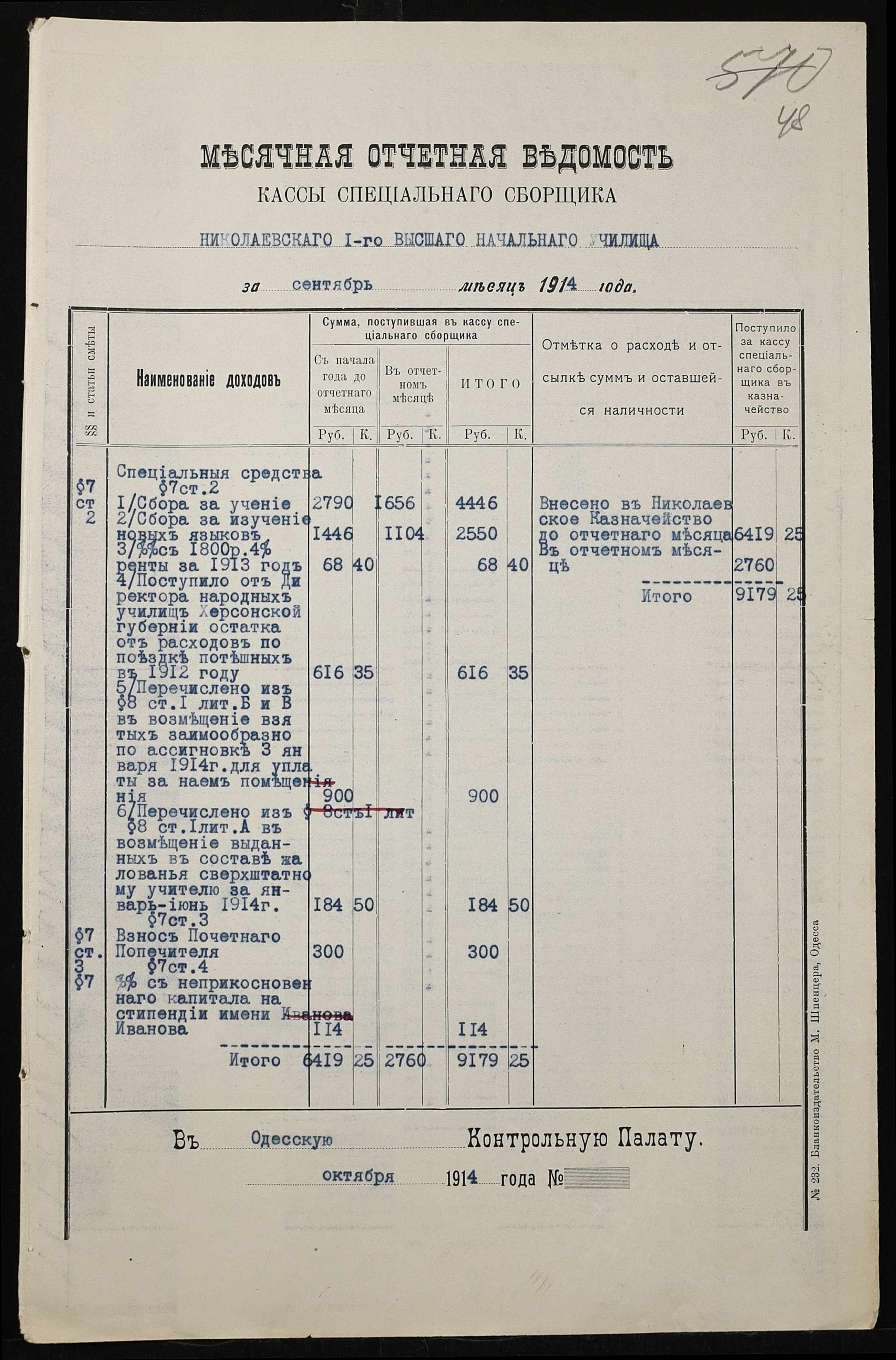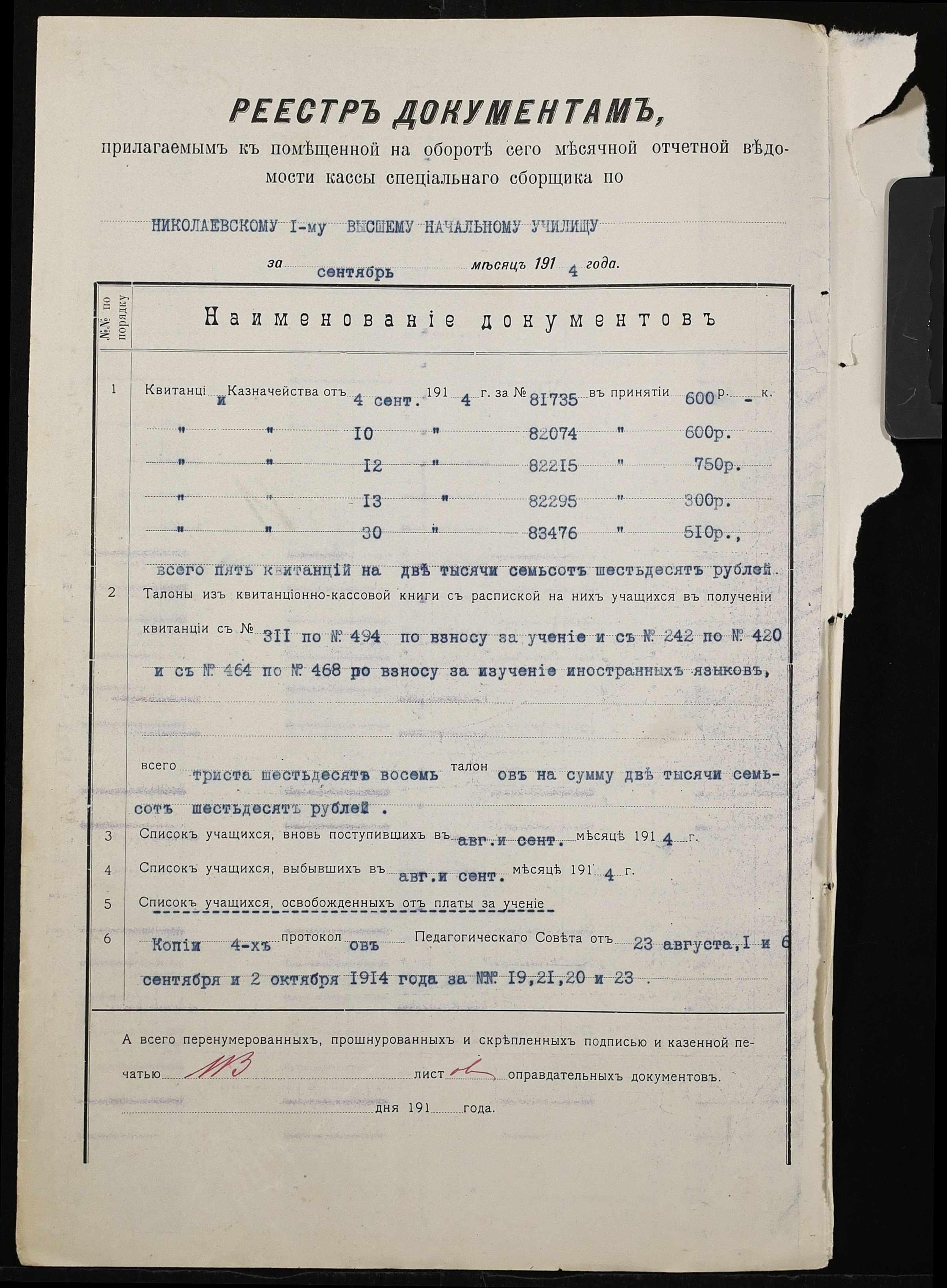 • • • • Справа № 464б “Прибутково-видаткові документи (кошториси, відомості), екзаменаційні відомості за 1913-1914 навчальний рік, список викладачів училища. Том 3”
