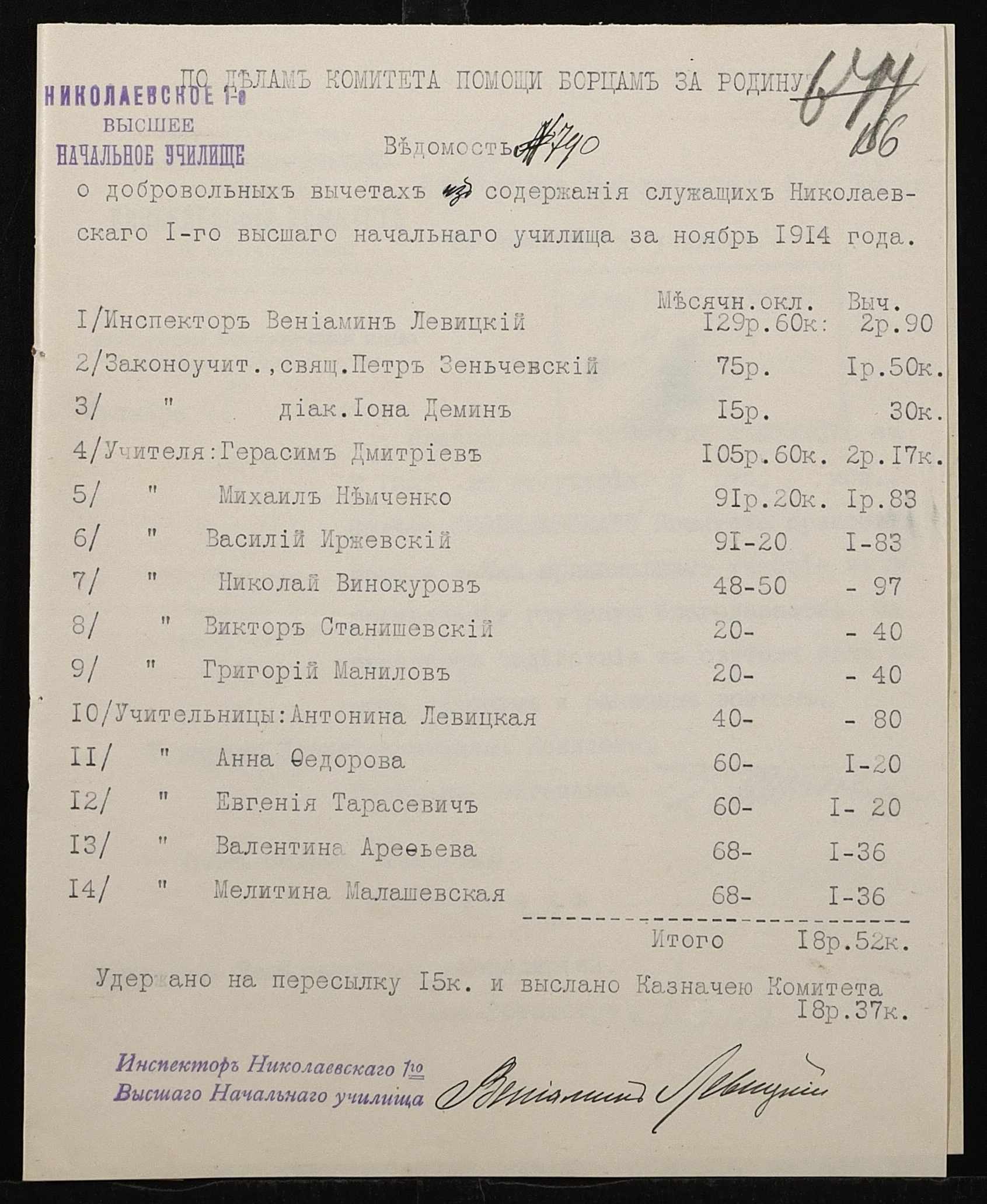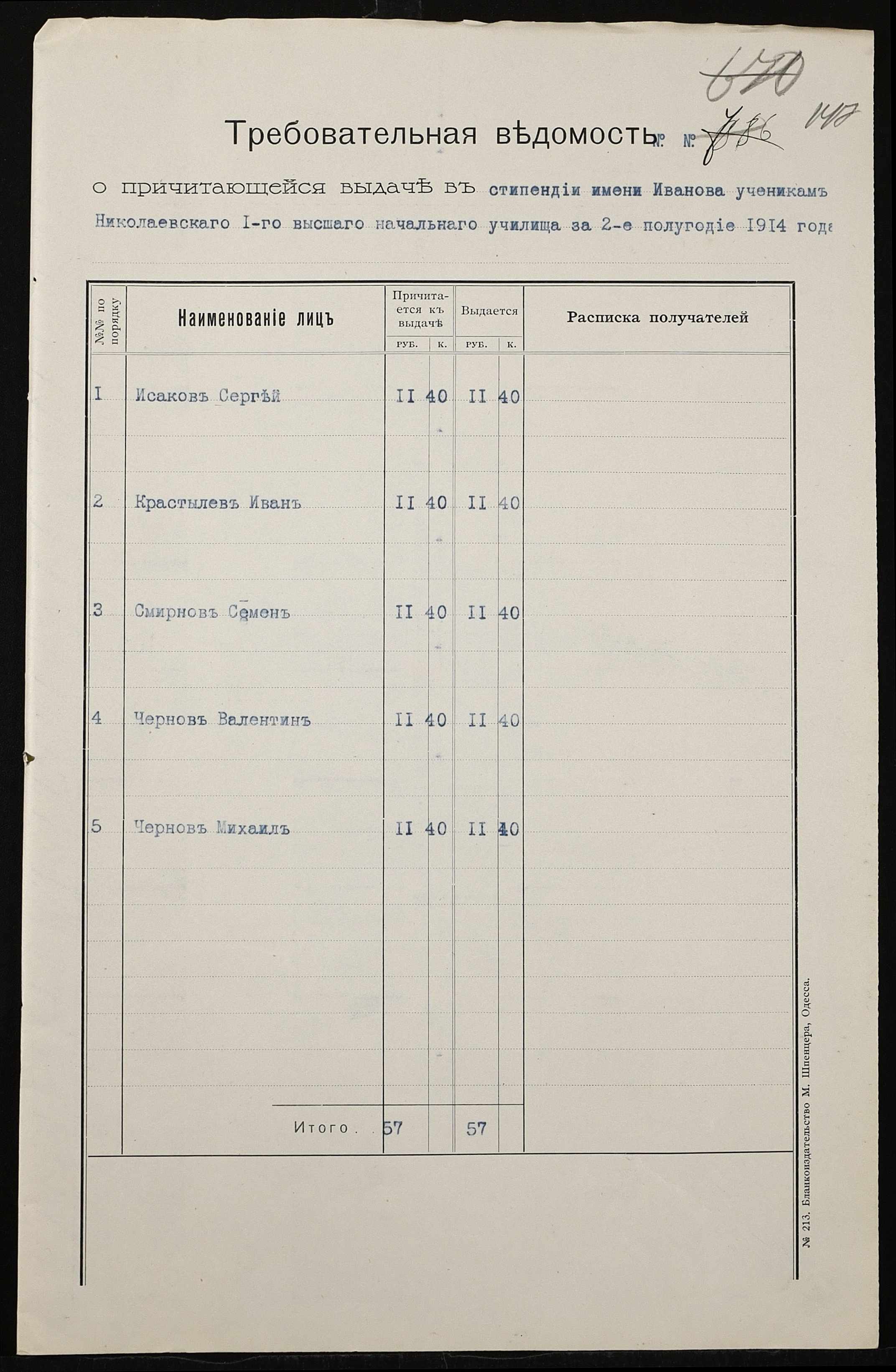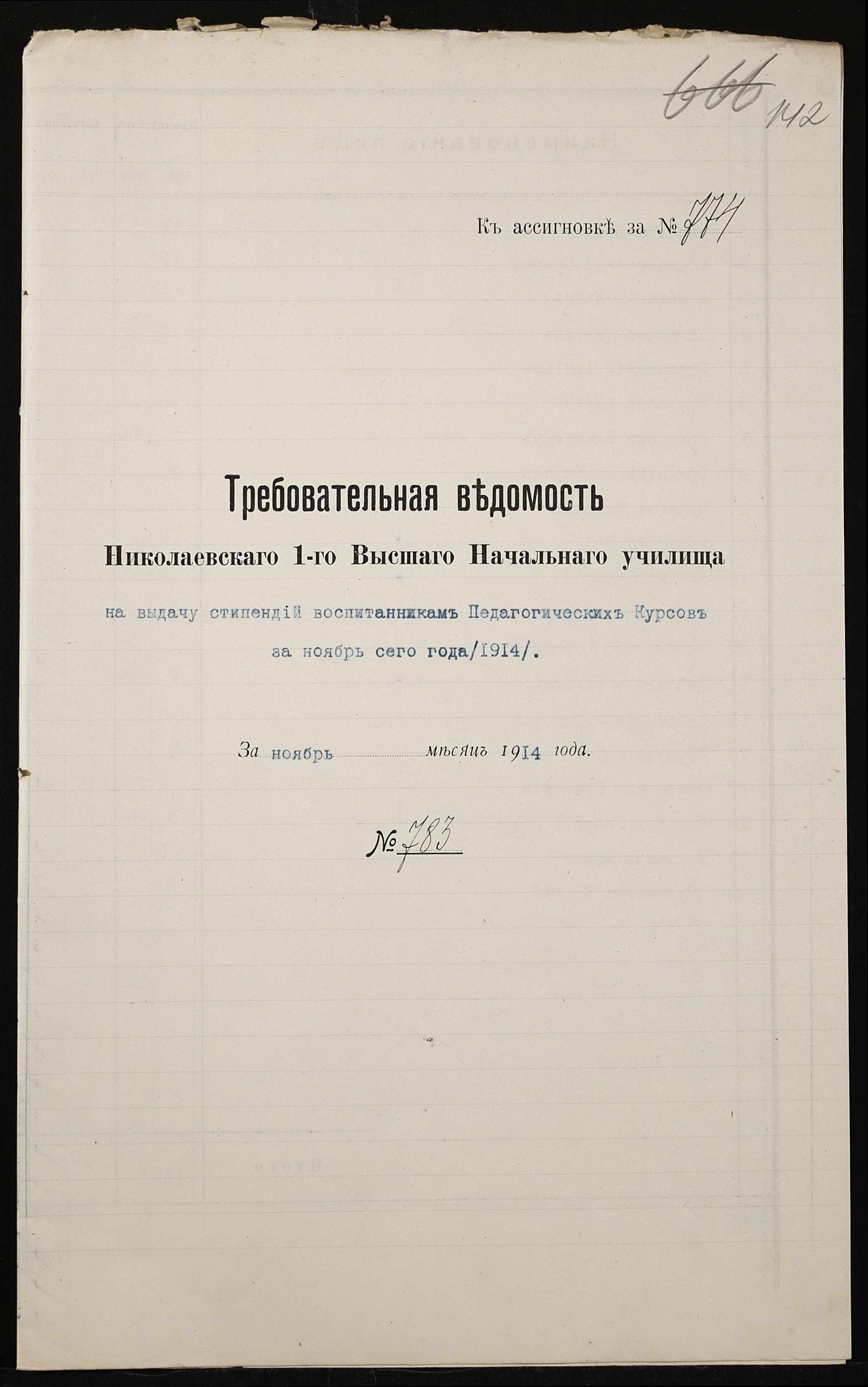 • • • • Справа № 464б “Прибутково-видаткові документи (кошториси, відомості), екзаменаційні відомості за 1913-1914 навчальний рік, список викладачів училища. Том 3”