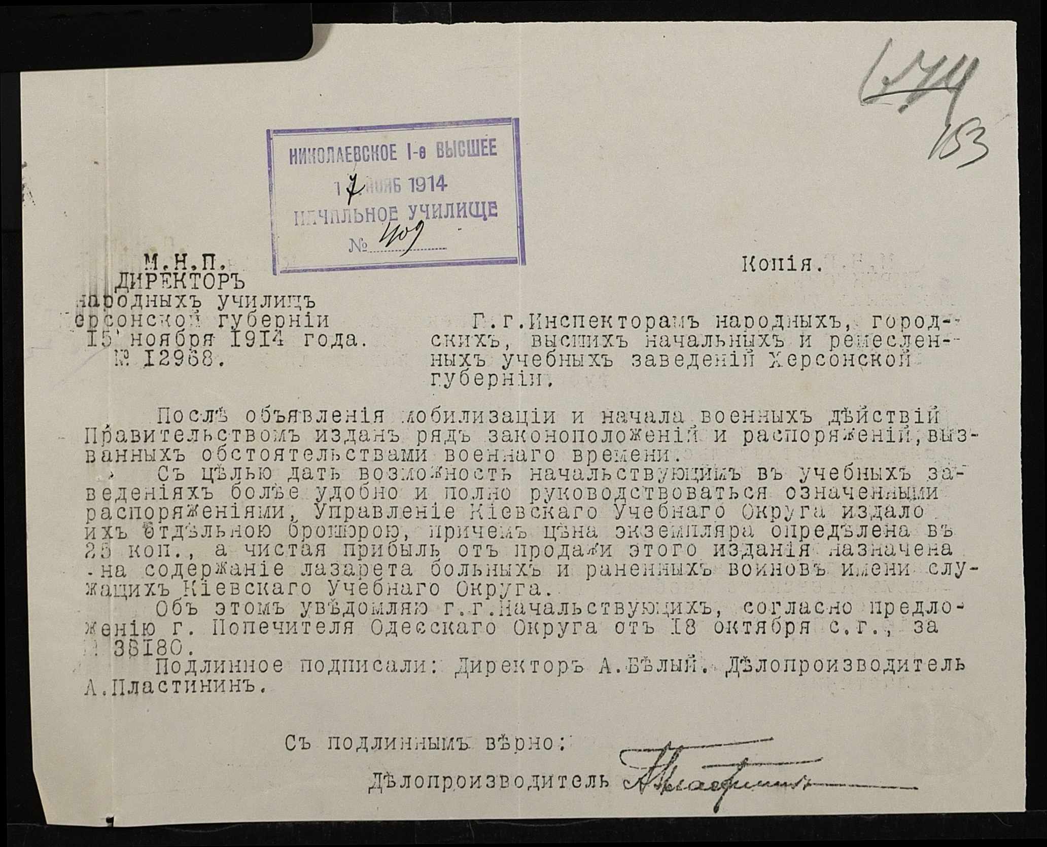◦ ◦ Фонд № 131 “Миколаївське перше вище початкове училище”