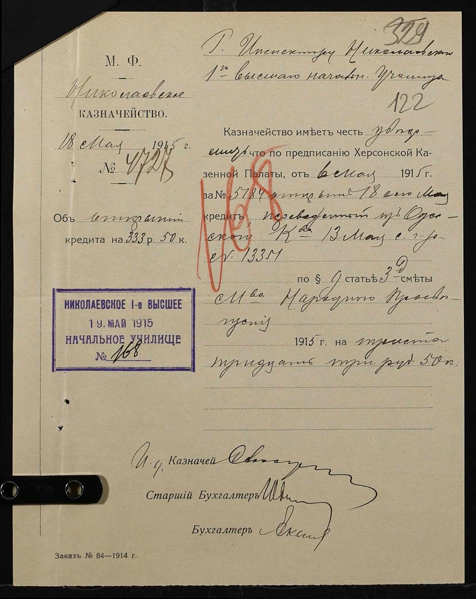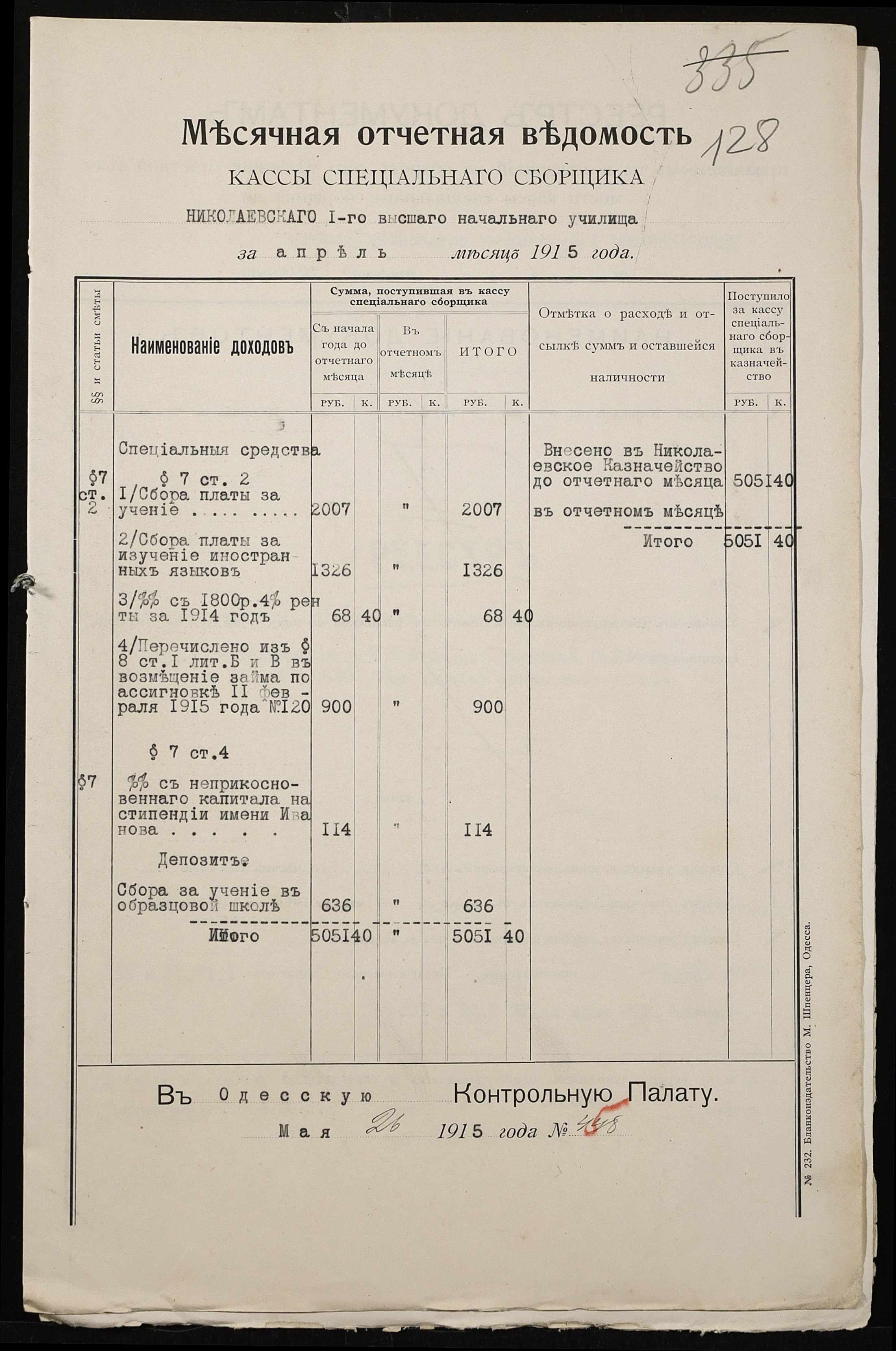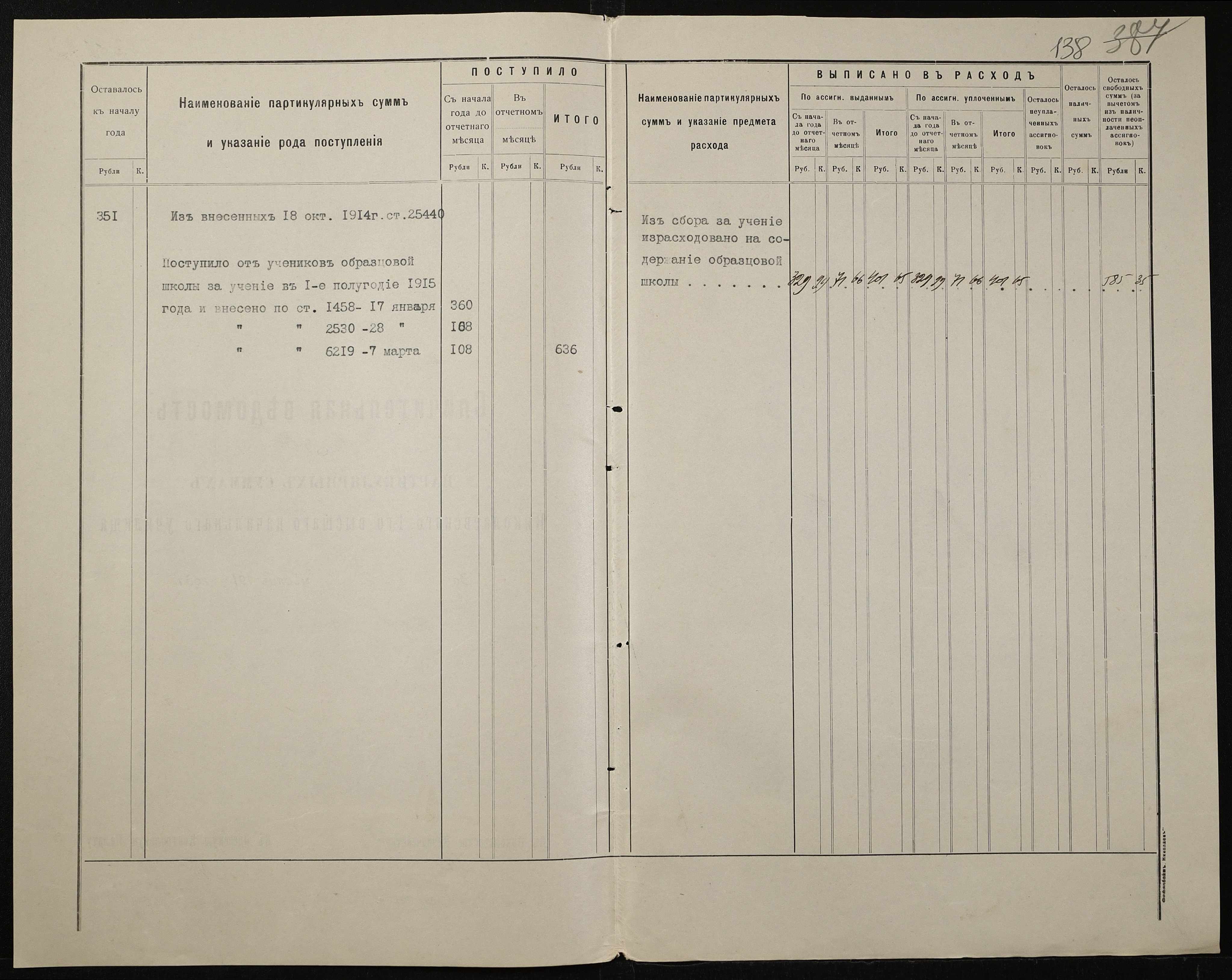 • • • • Справа № 465а “Фінансовий звіт за 1914 рік, прибутково-видаткові документи (кошторис, відомості), свідоцтва про закінчення училища. Том 2”