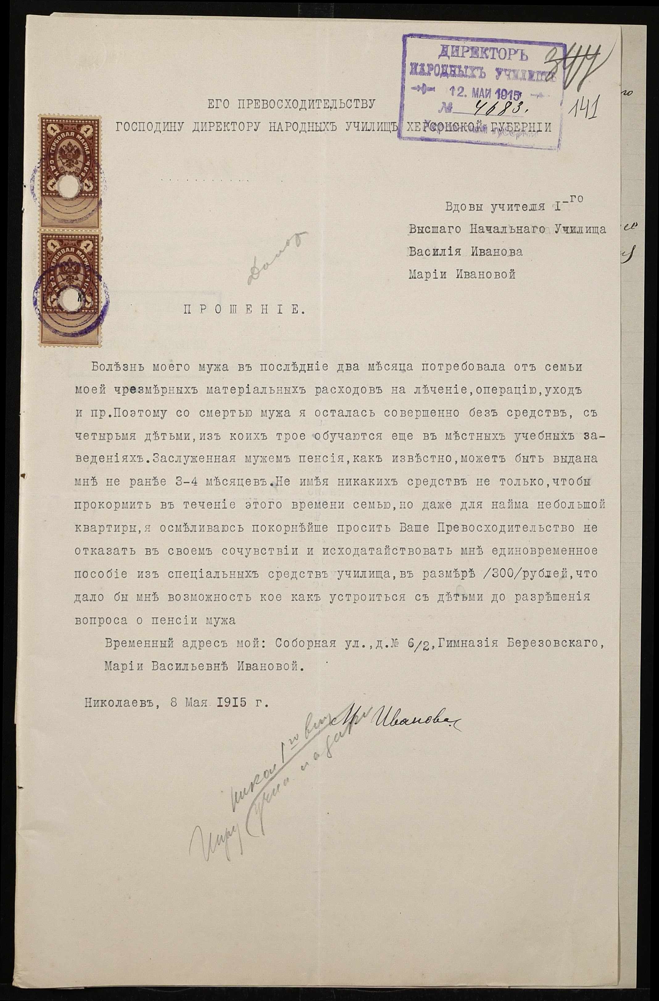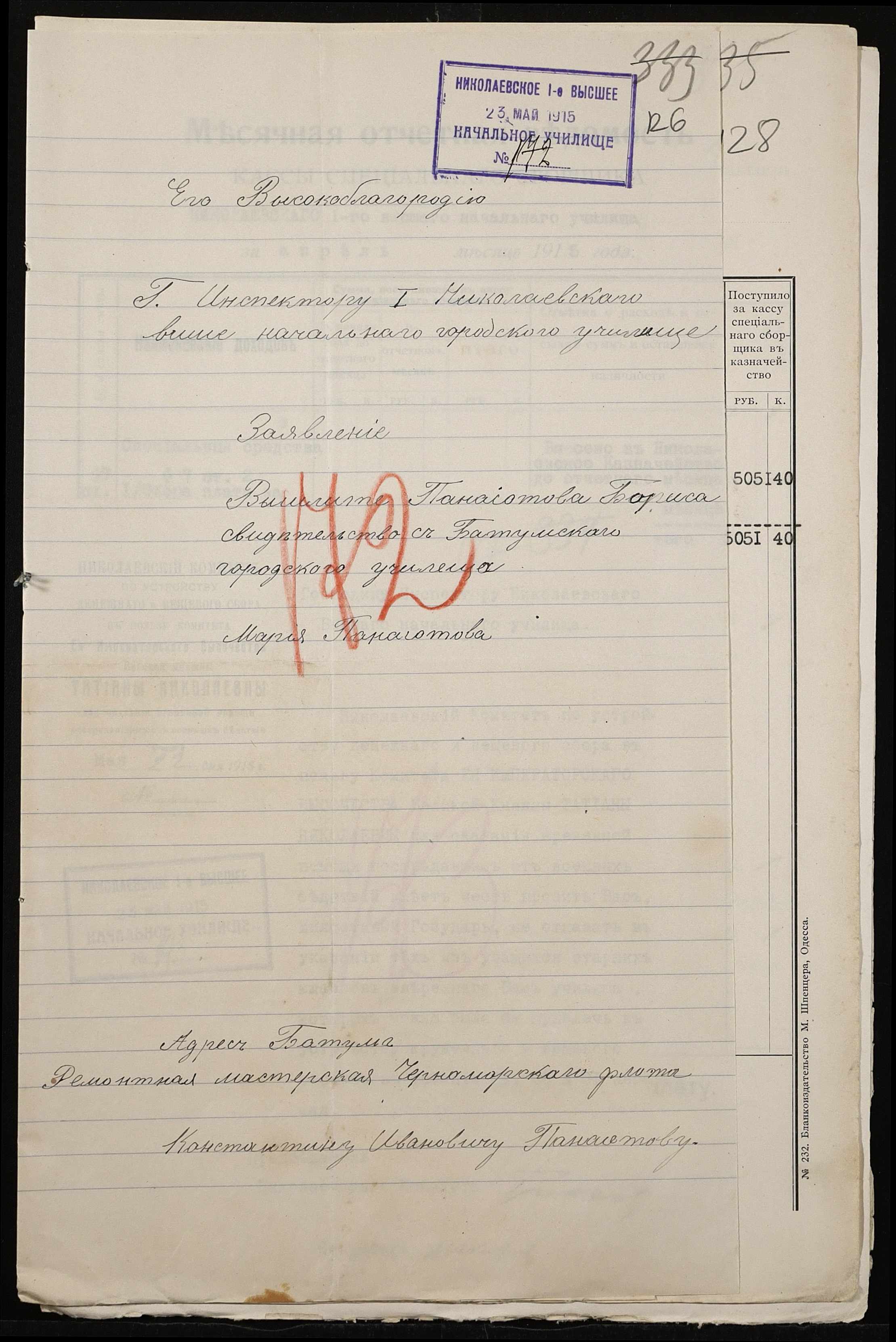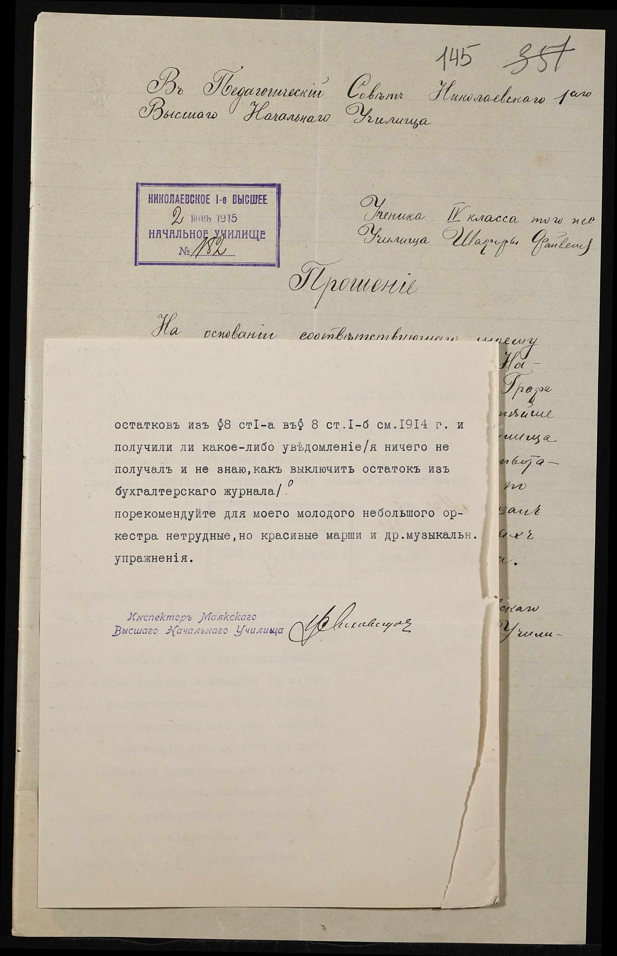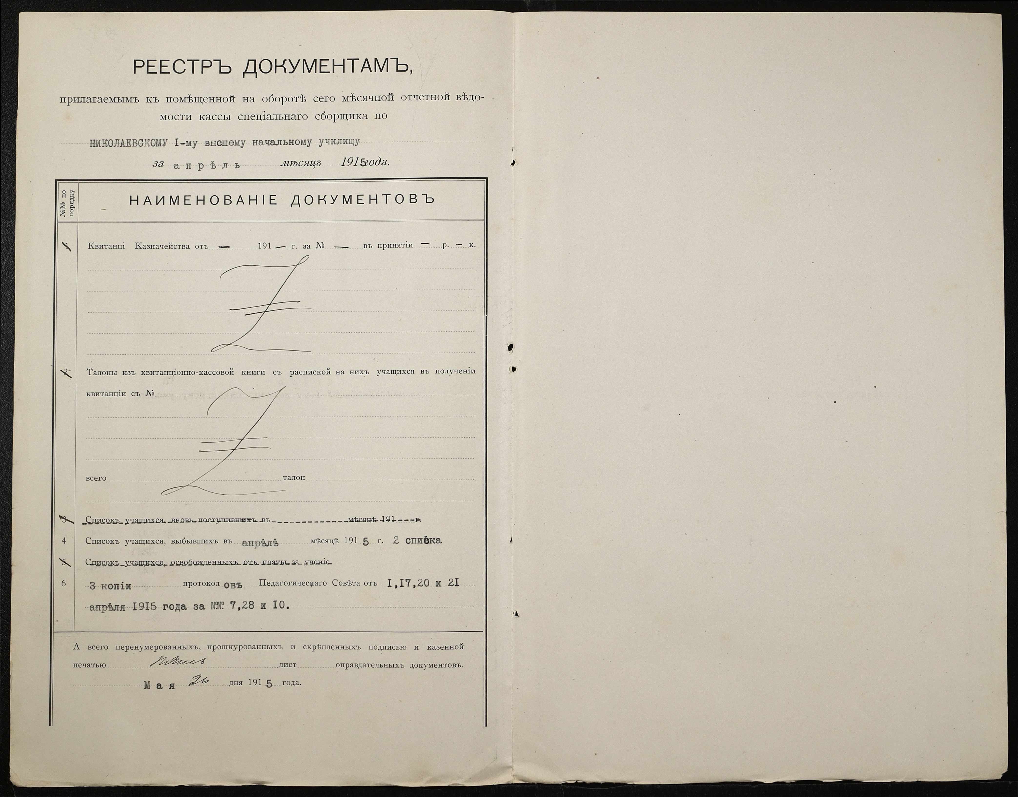 • • • • Справа № 465а “Фінансовий звіт за 1914 рік, прибутково-видаткові документи (кошторис, відомості), свідоцтва про закінчення училища. Том 2”