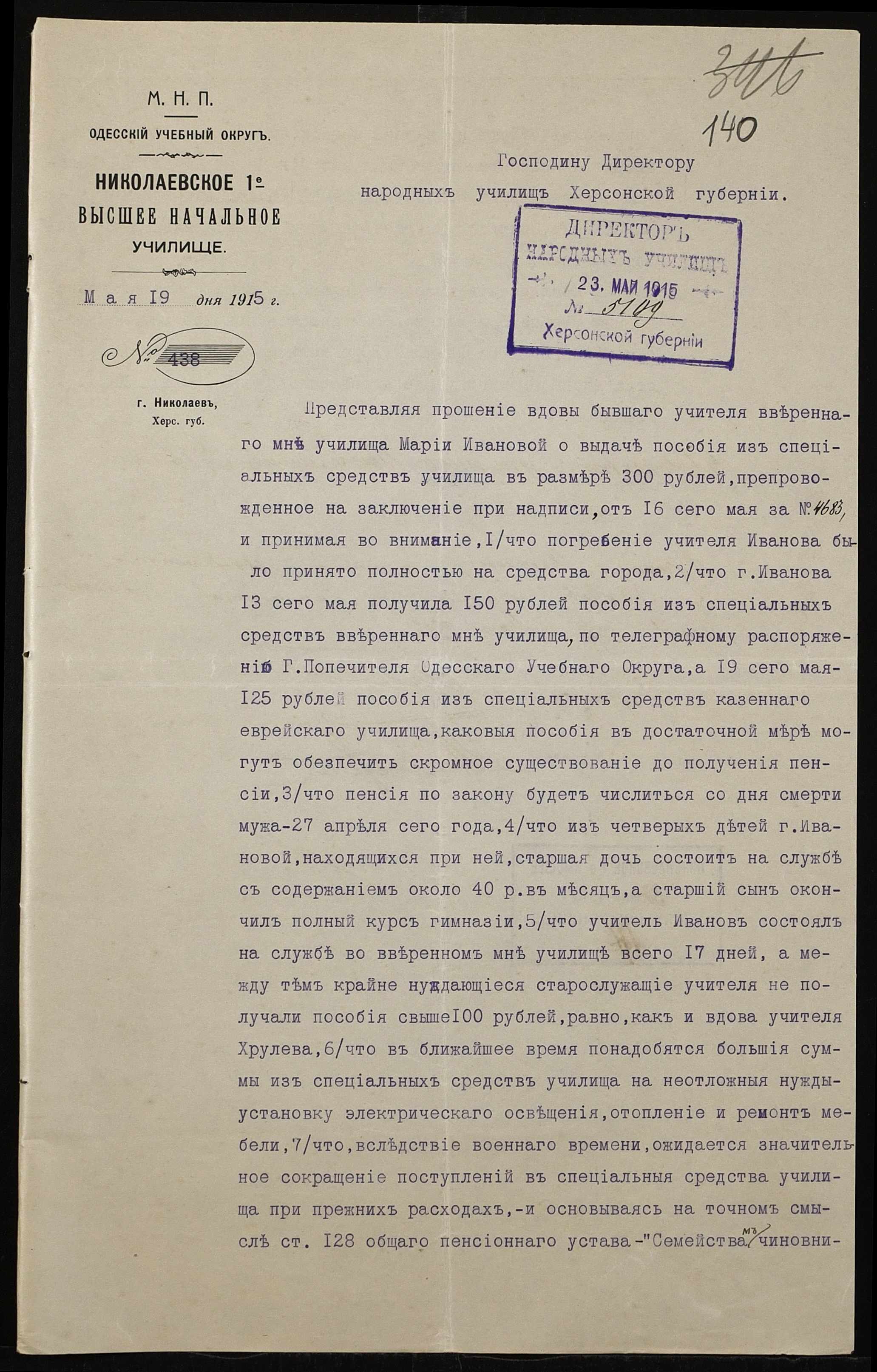 ◦ ◦ Фонд № 131 “Миколаївське перше вище початкове училище”
