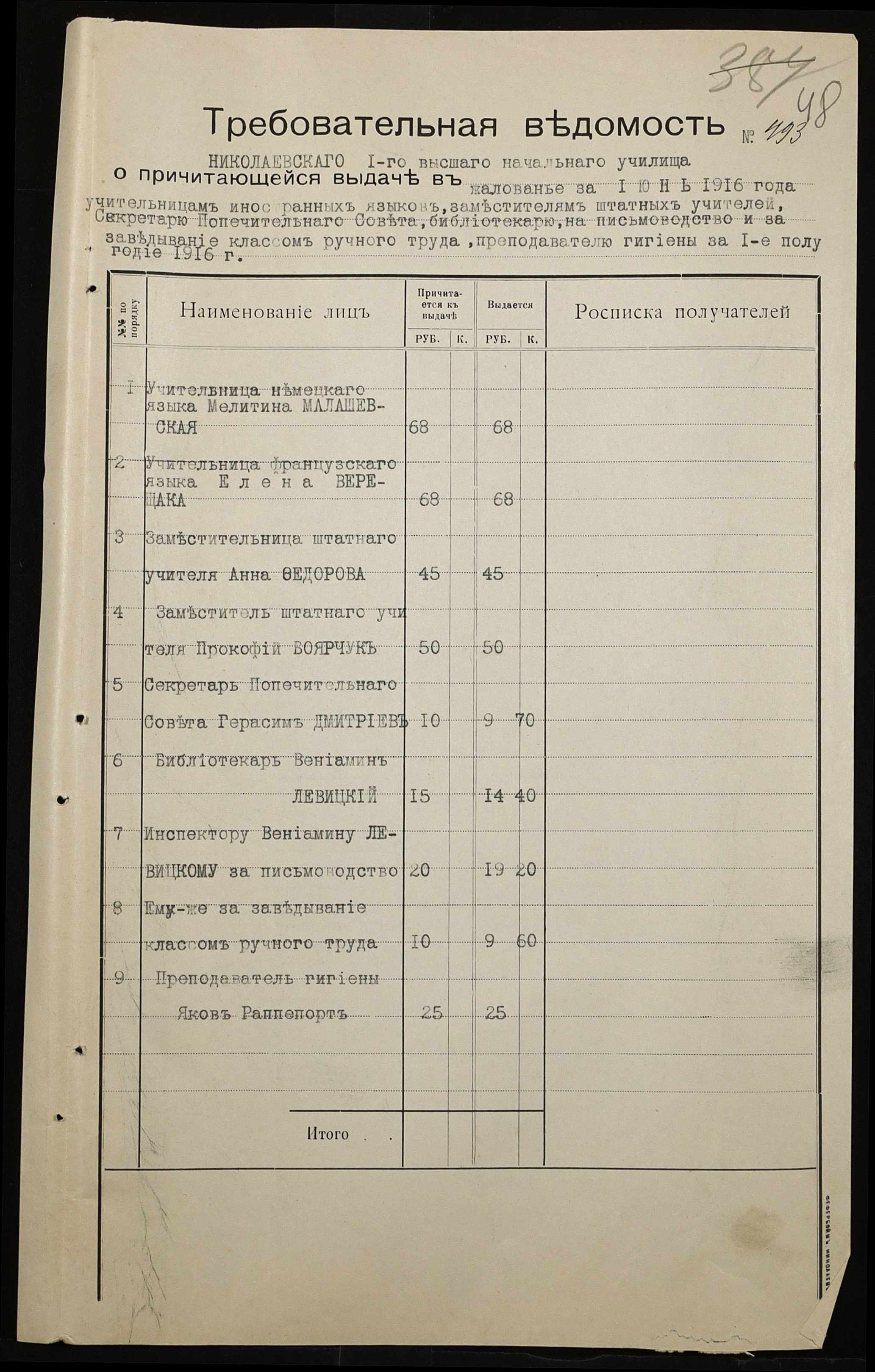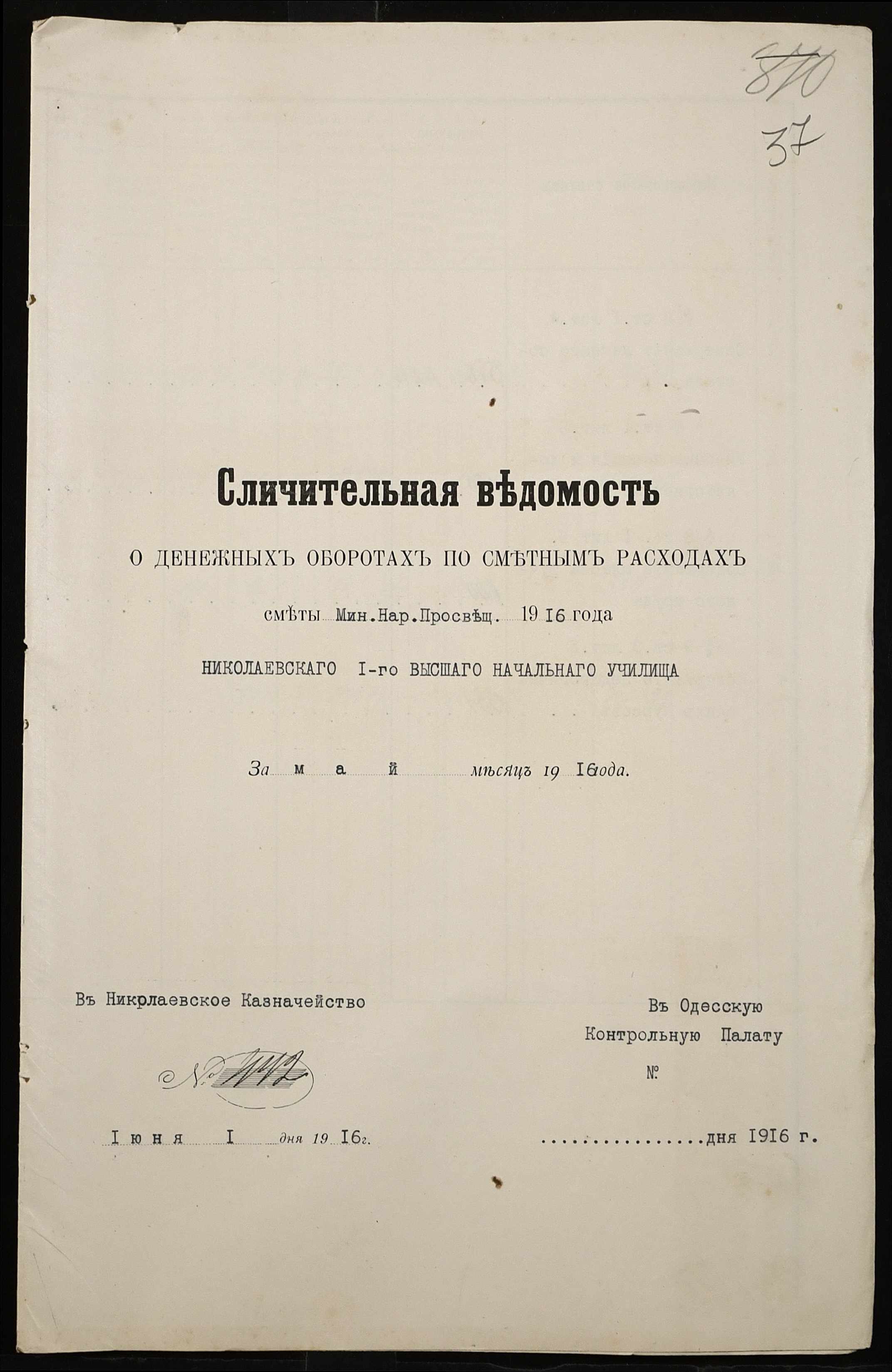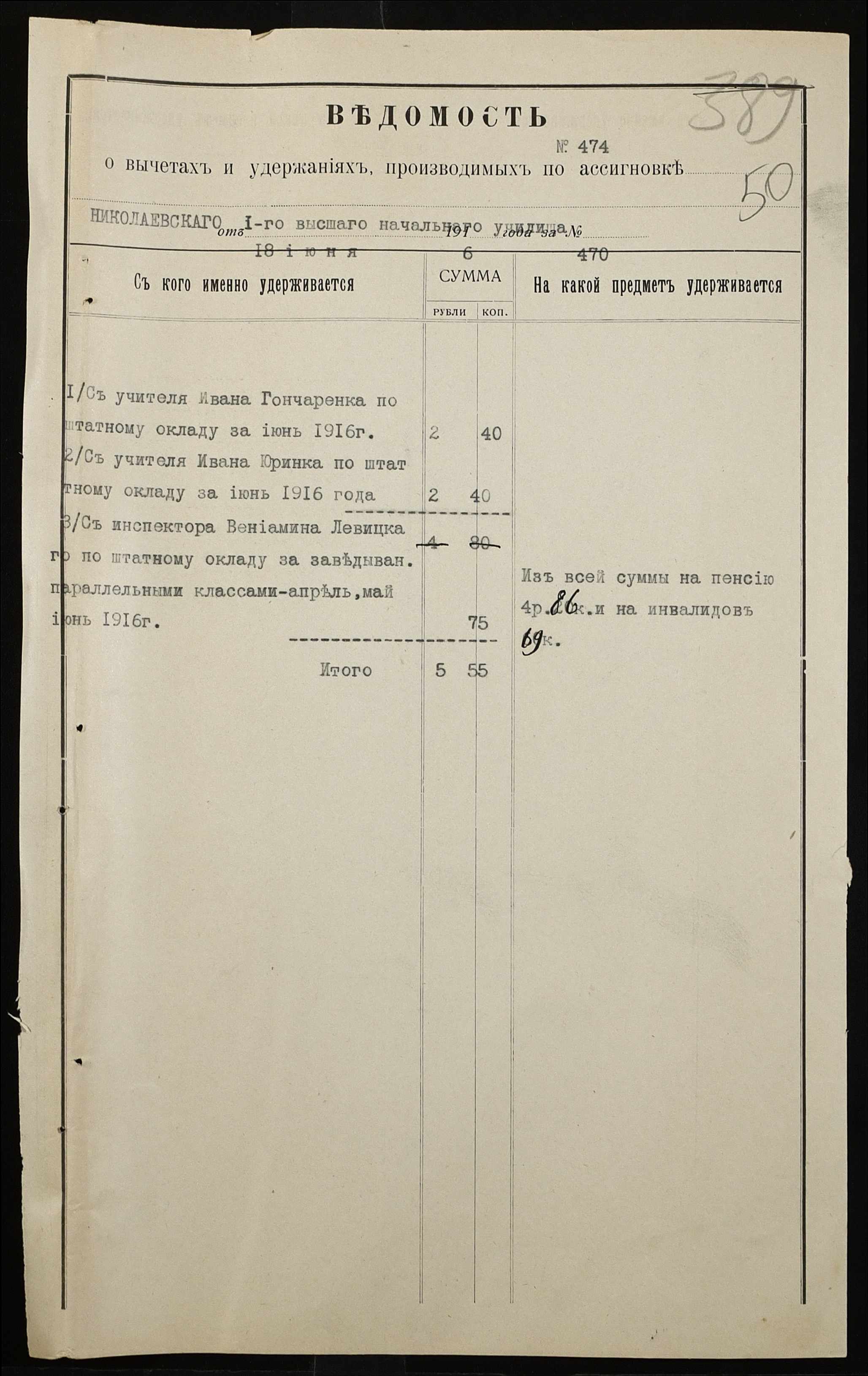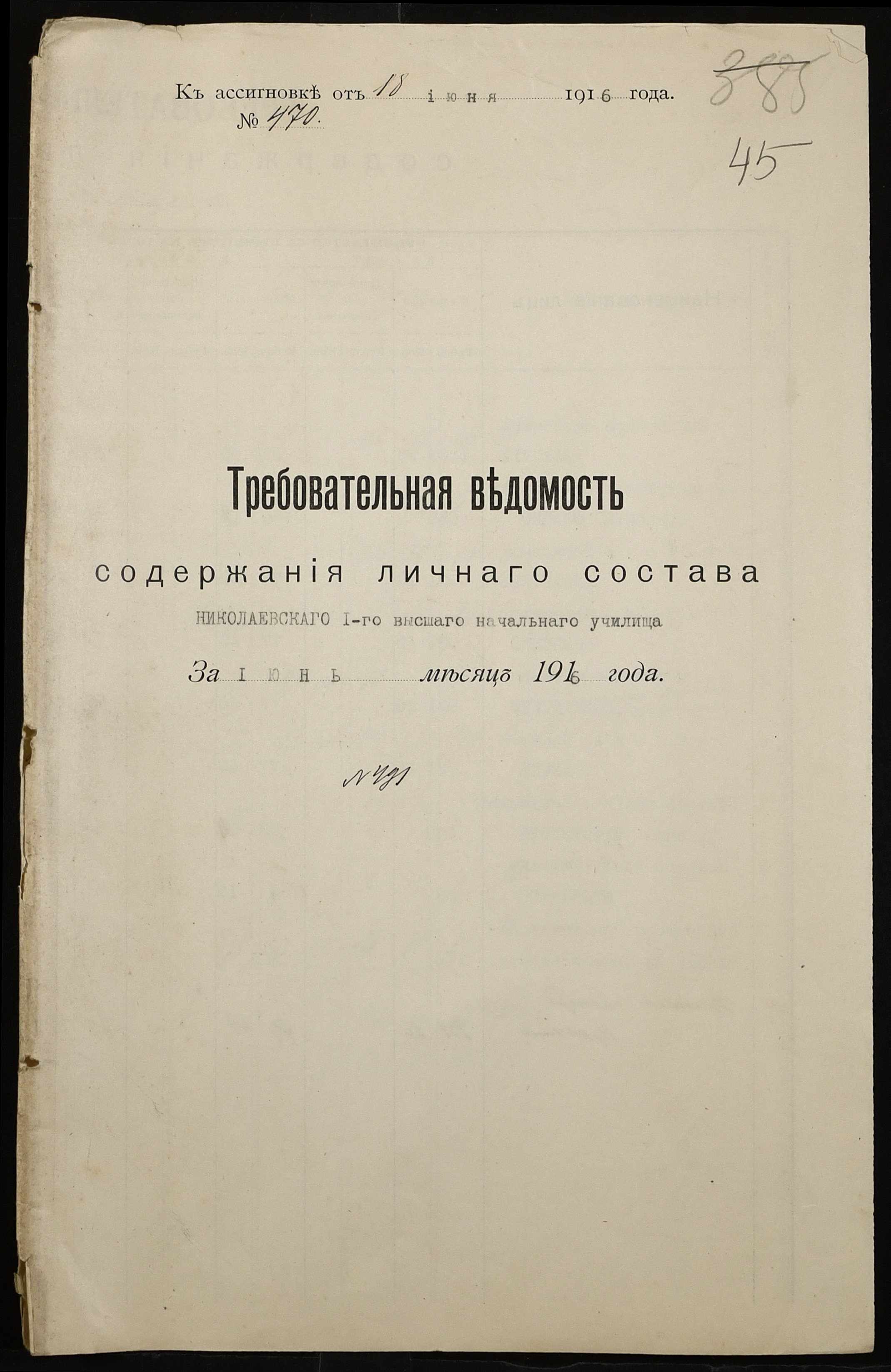 • • • • Справа № 466а “Кошторис на утримання училища, інформація про зміни, які відбулися в складі училища, реєстр бухгалтерських документів, відомості на видачу утримання викладачам за 1916 рік. Том 2”