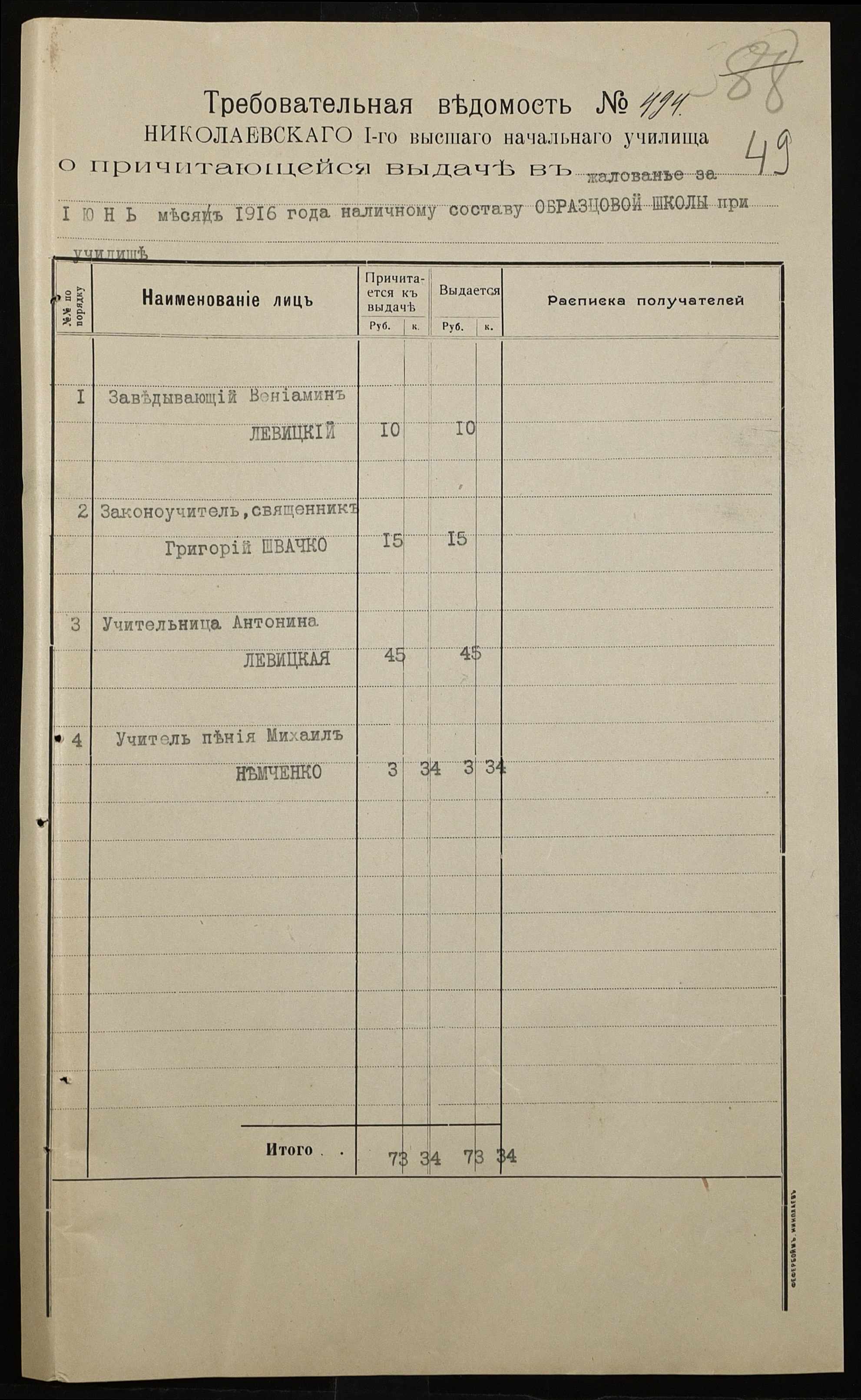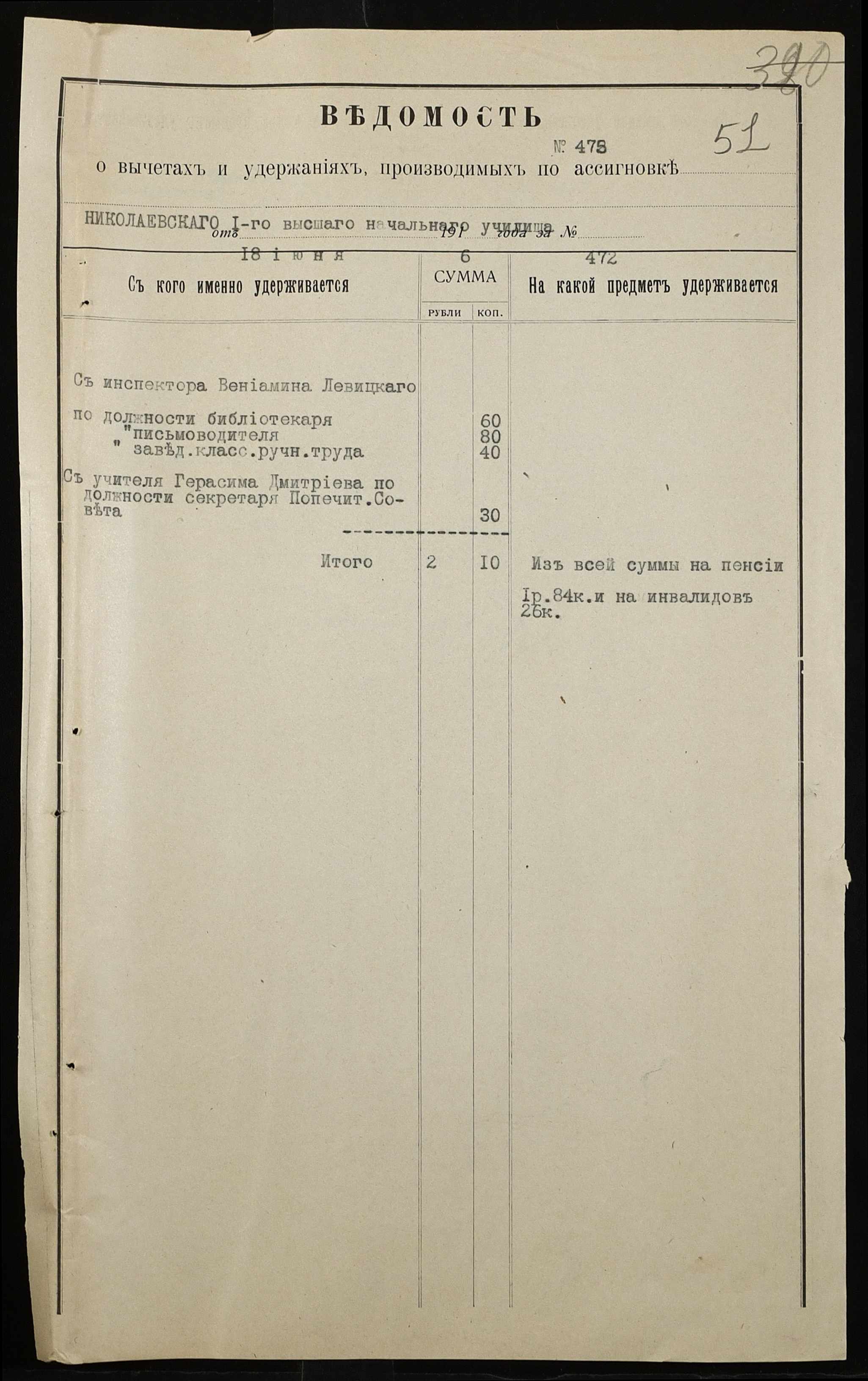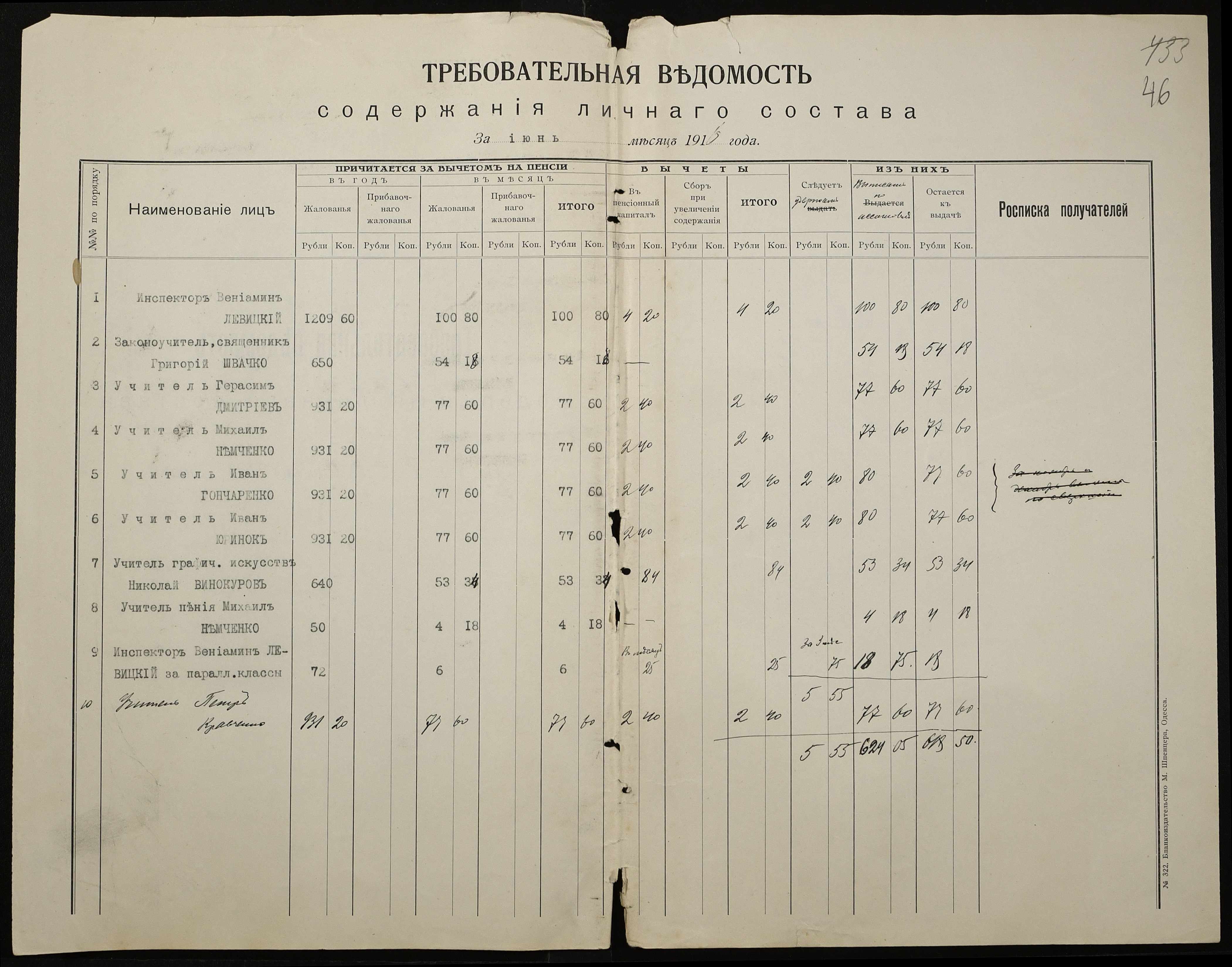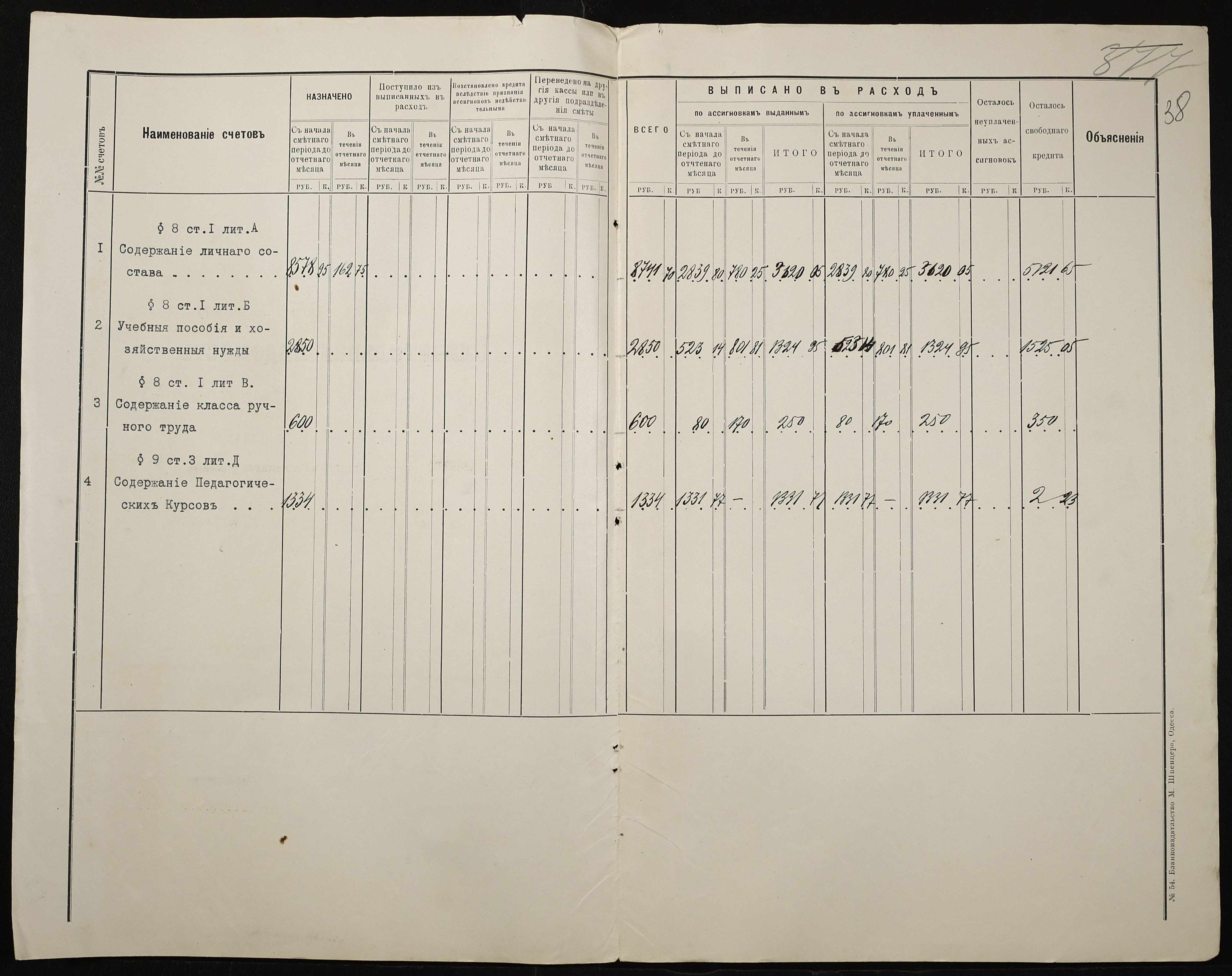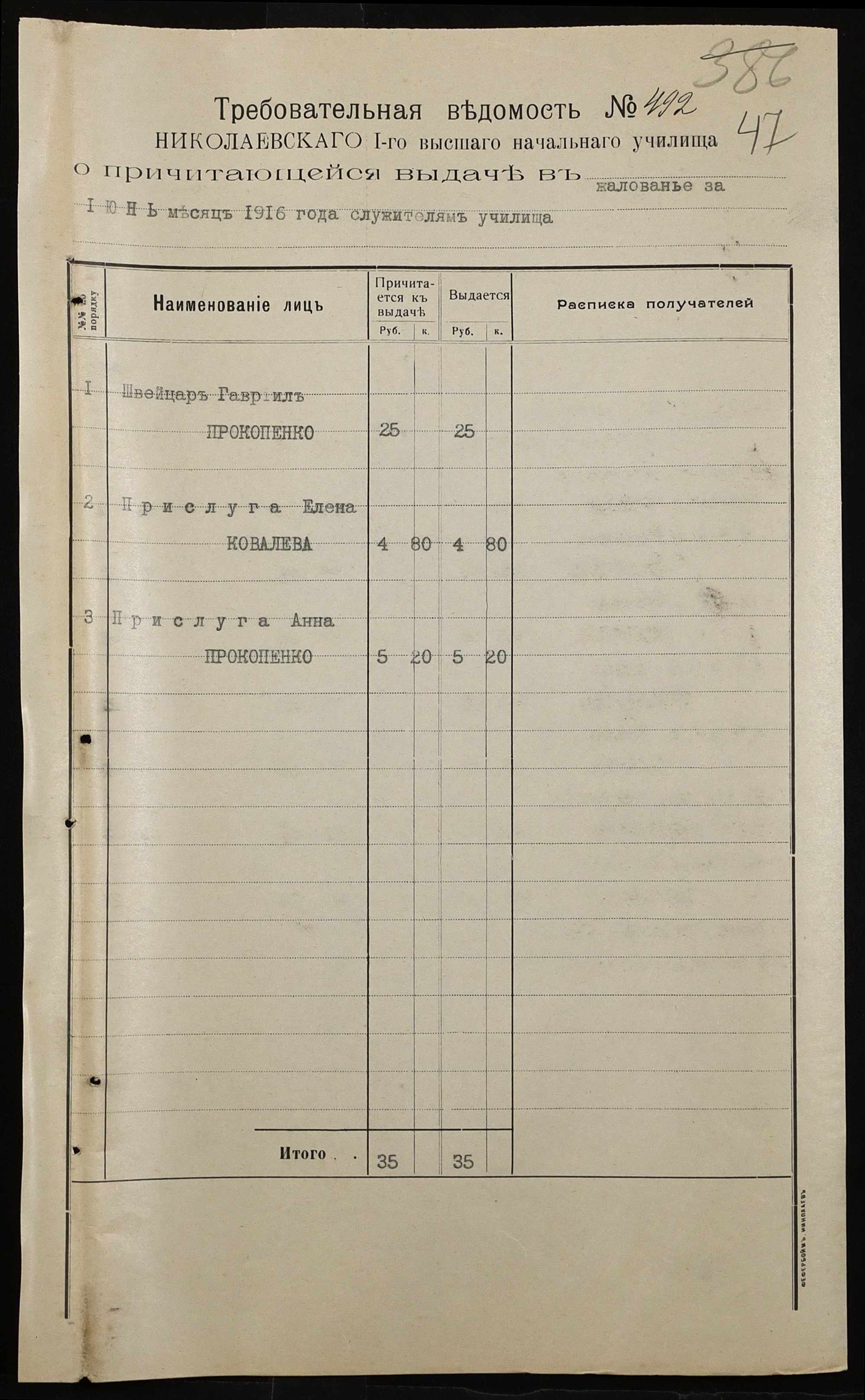 • • • • Справа № 466а “Кошторис на утримання училища, інформація про зміни, які відбулися в складі училища, реєстр бухгалтерських документів, відомості на видачу утримання викладачам за 1916 рік. Том 2”