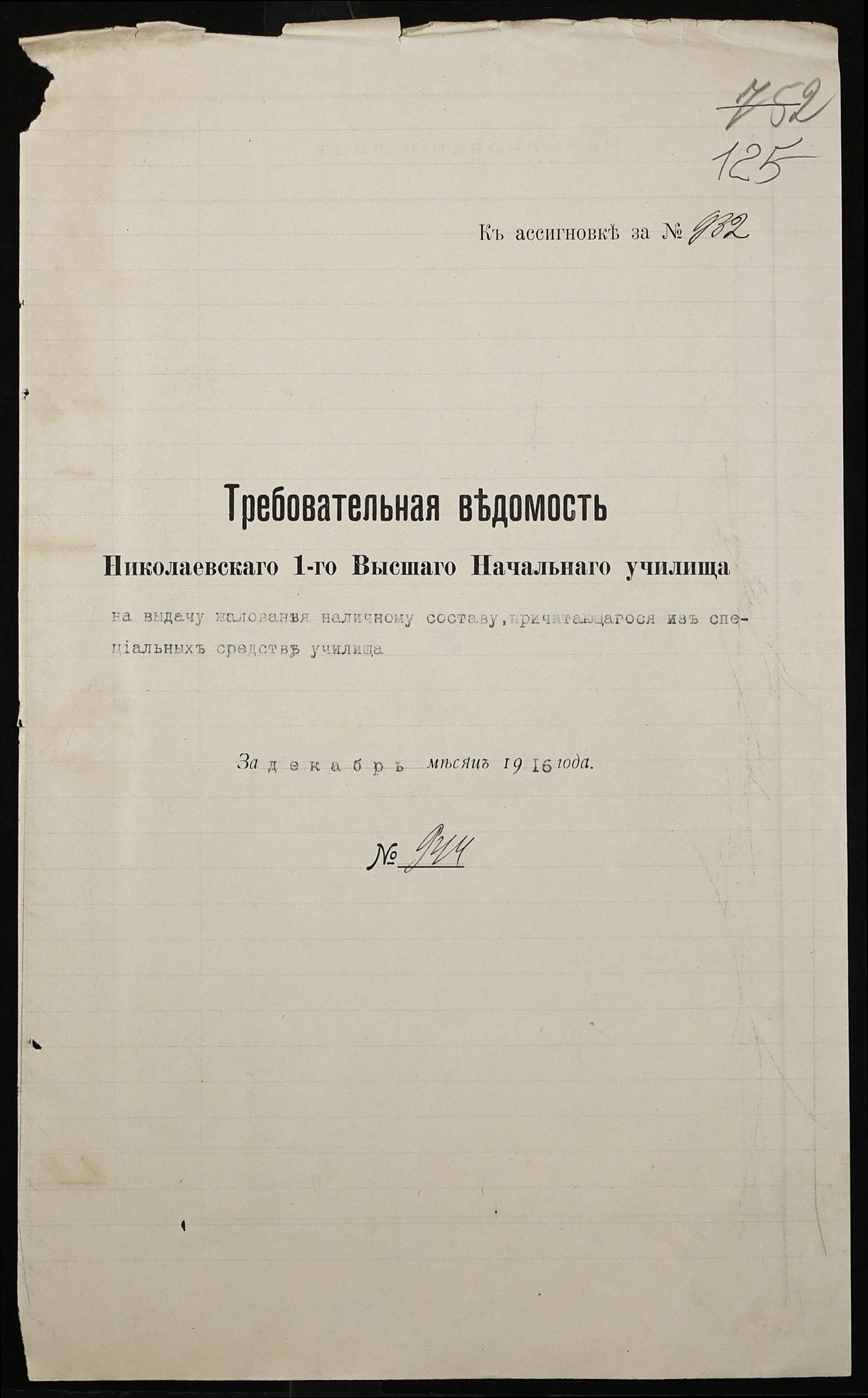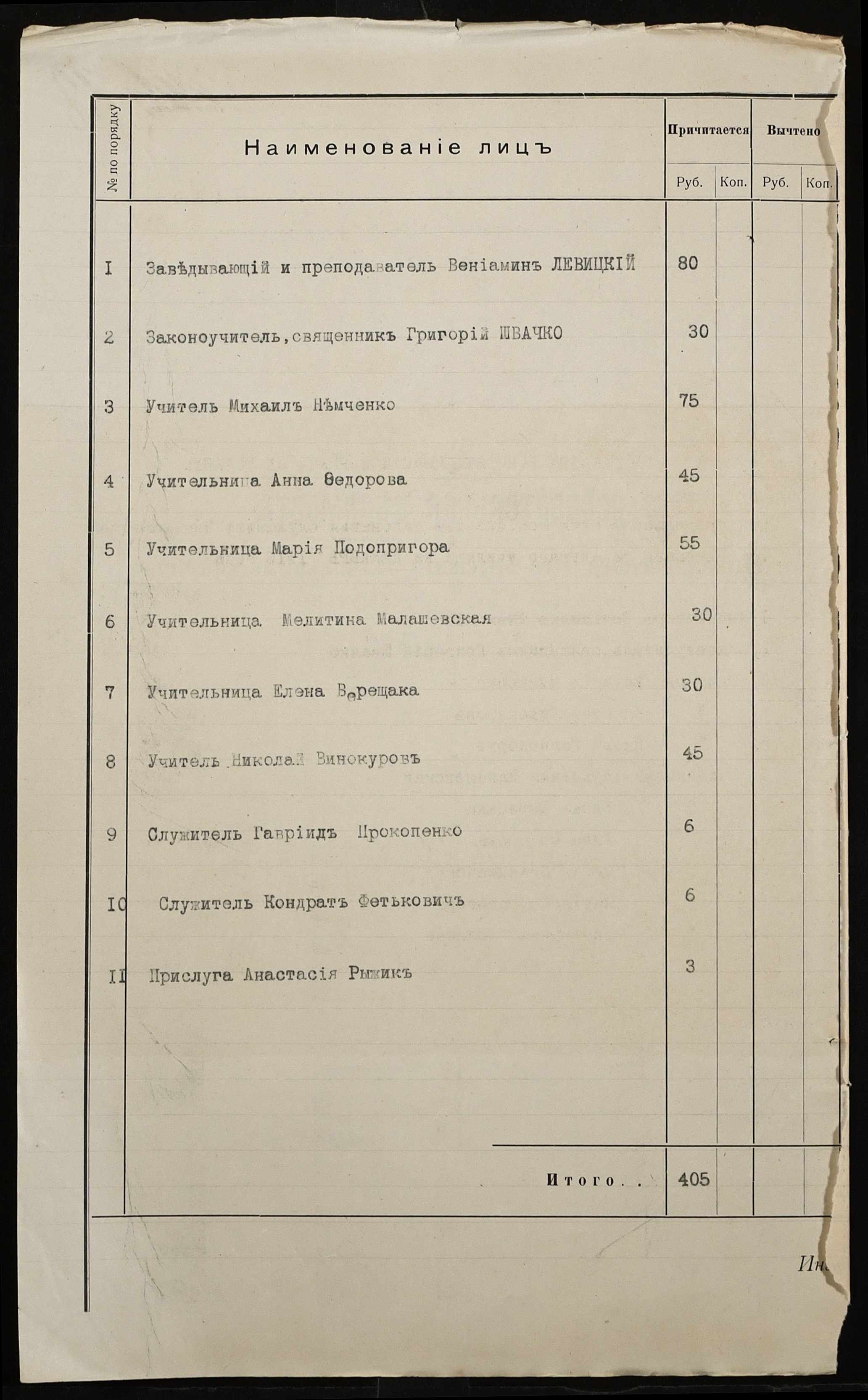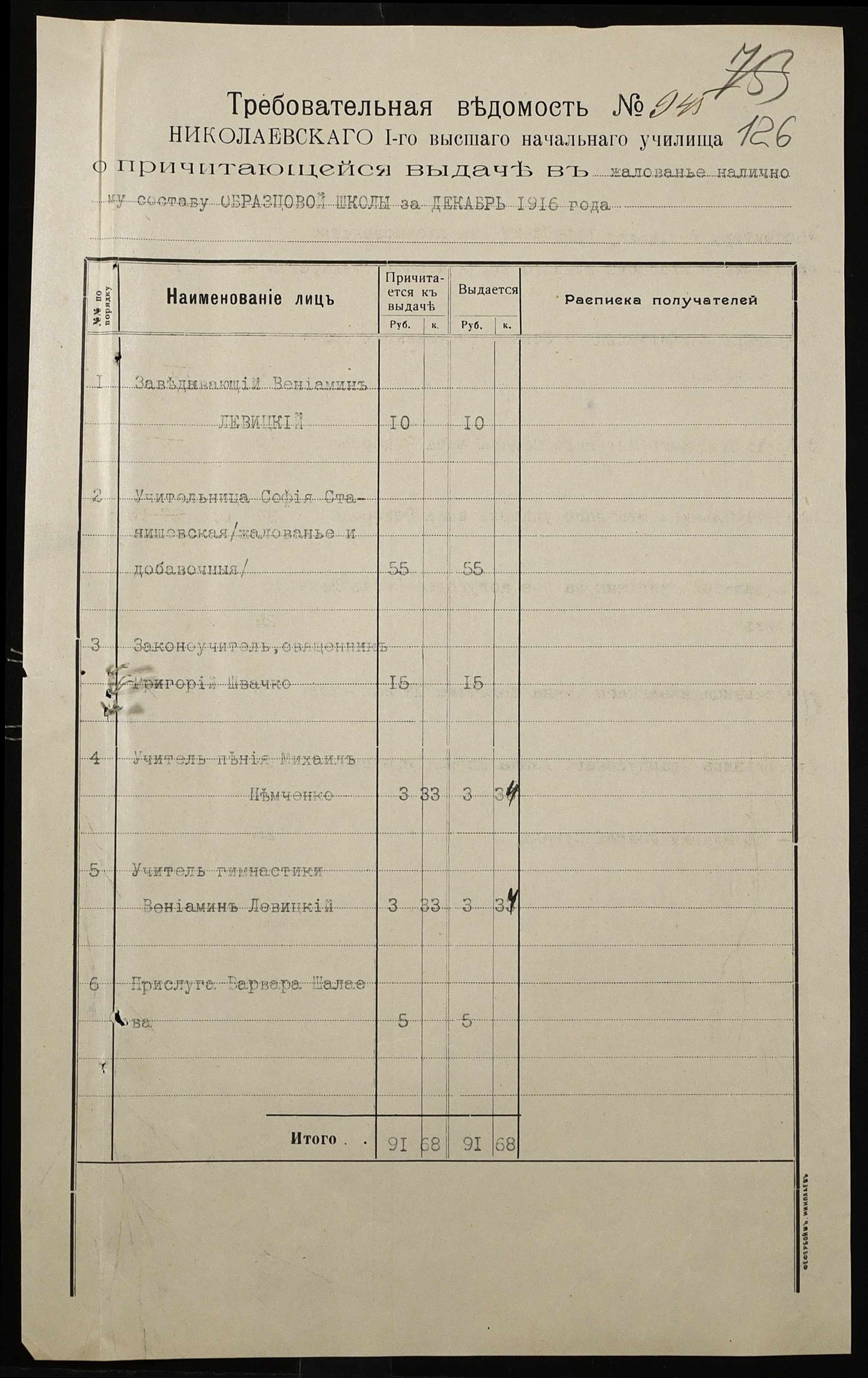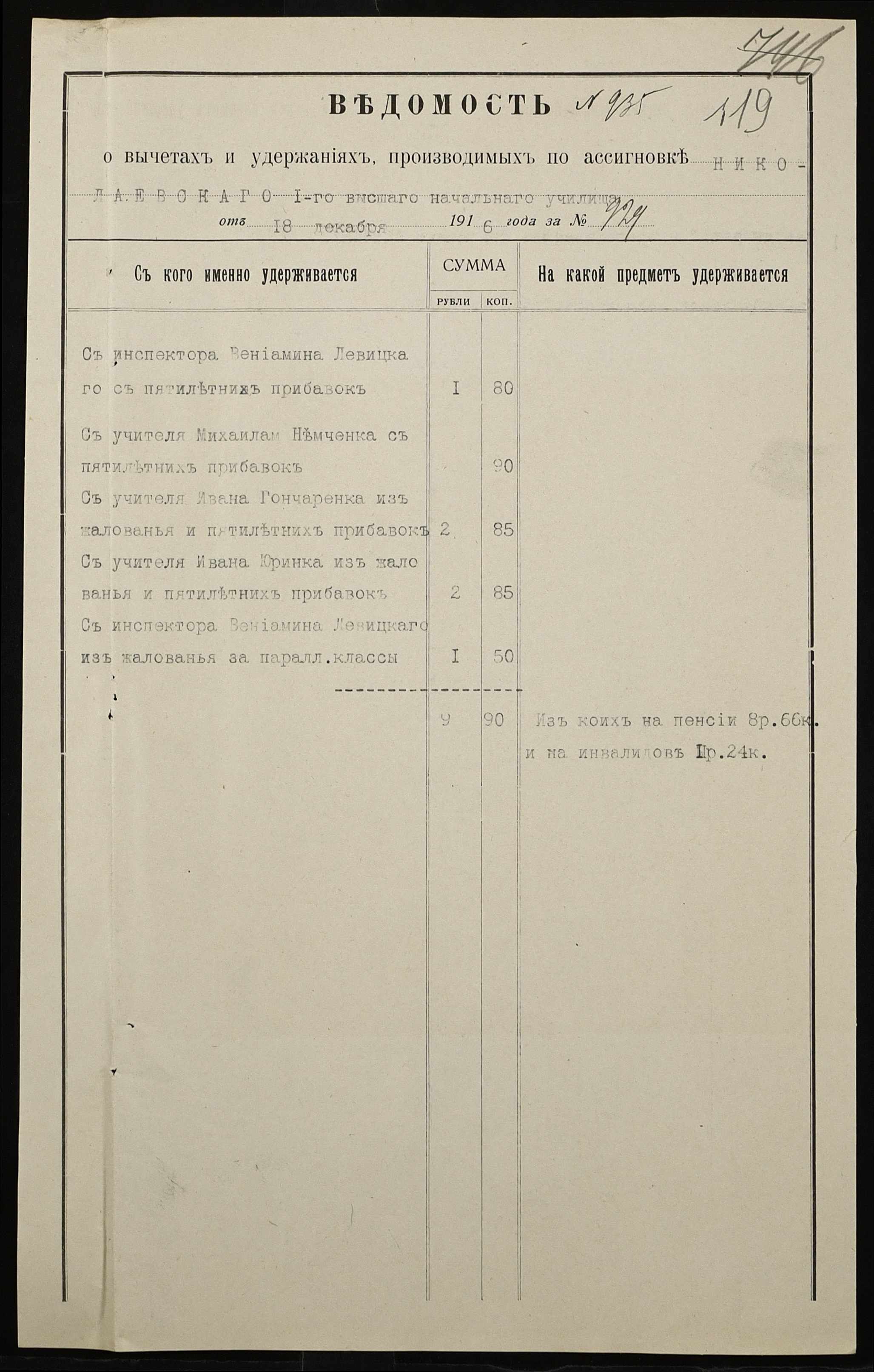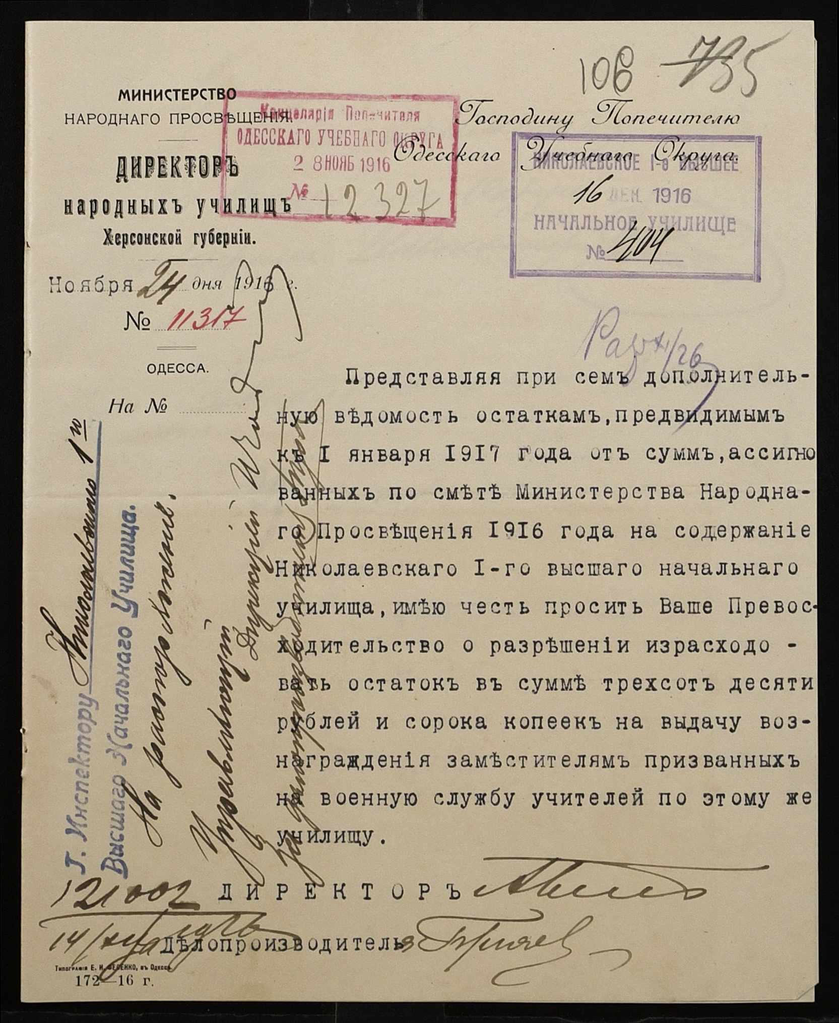 • • • • Справа № 466б “Кошторис на утримання училища, інформація про зміни, які відбулися в складі училища, реєстр бухгалтерських документів, відомості на видачу утримання викладачам за 1916 рік. Том 3”