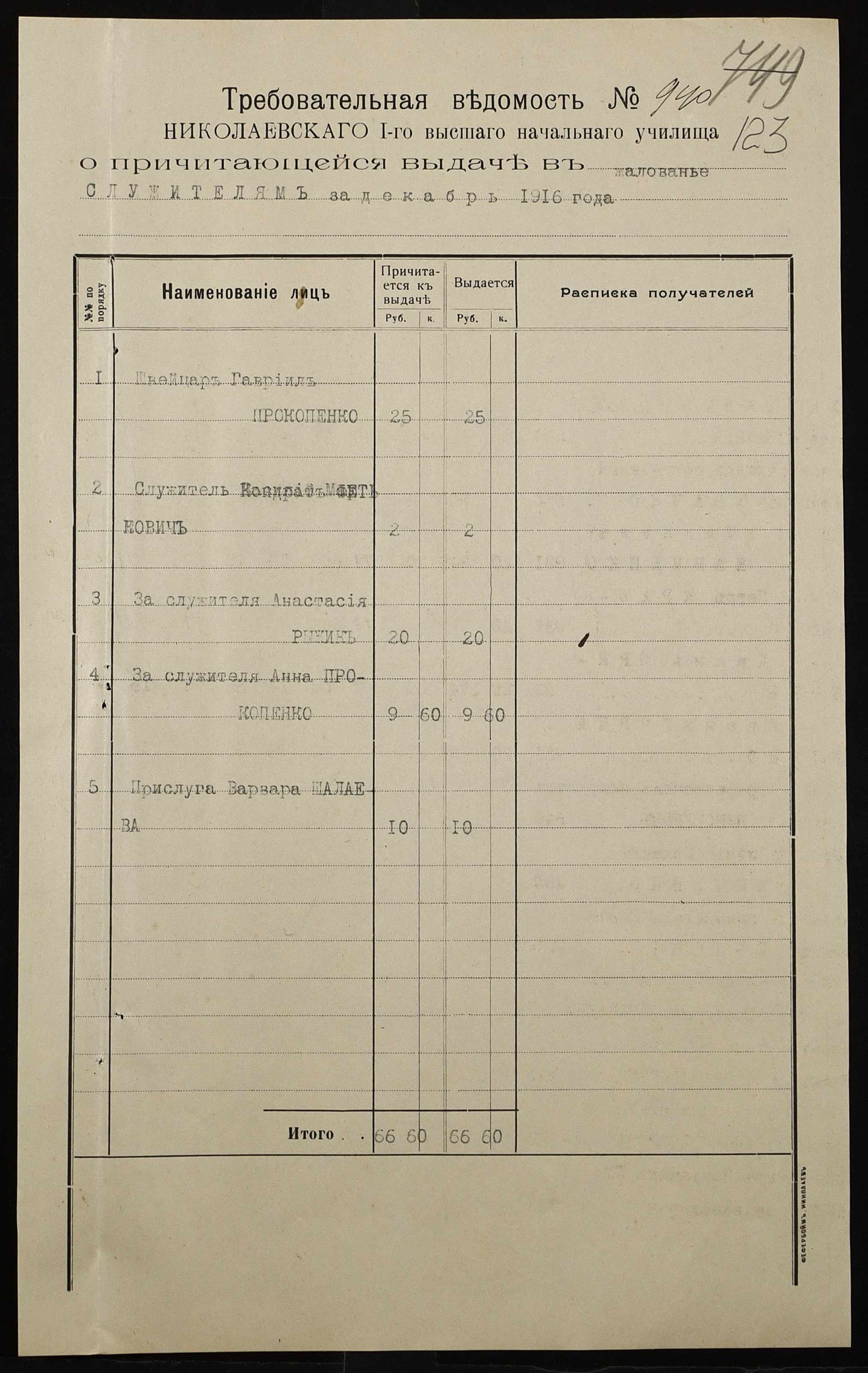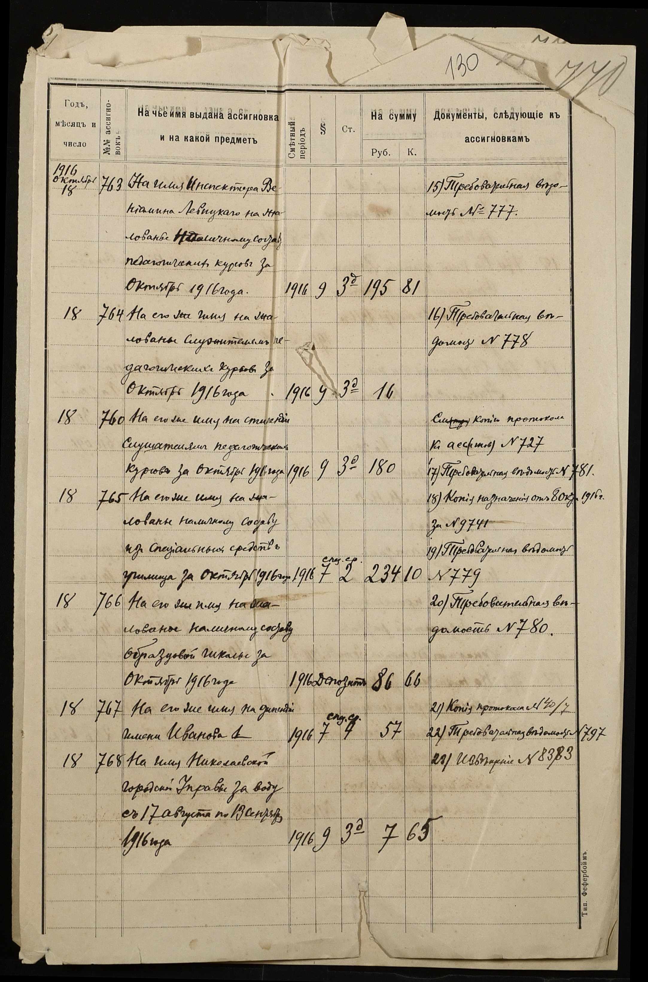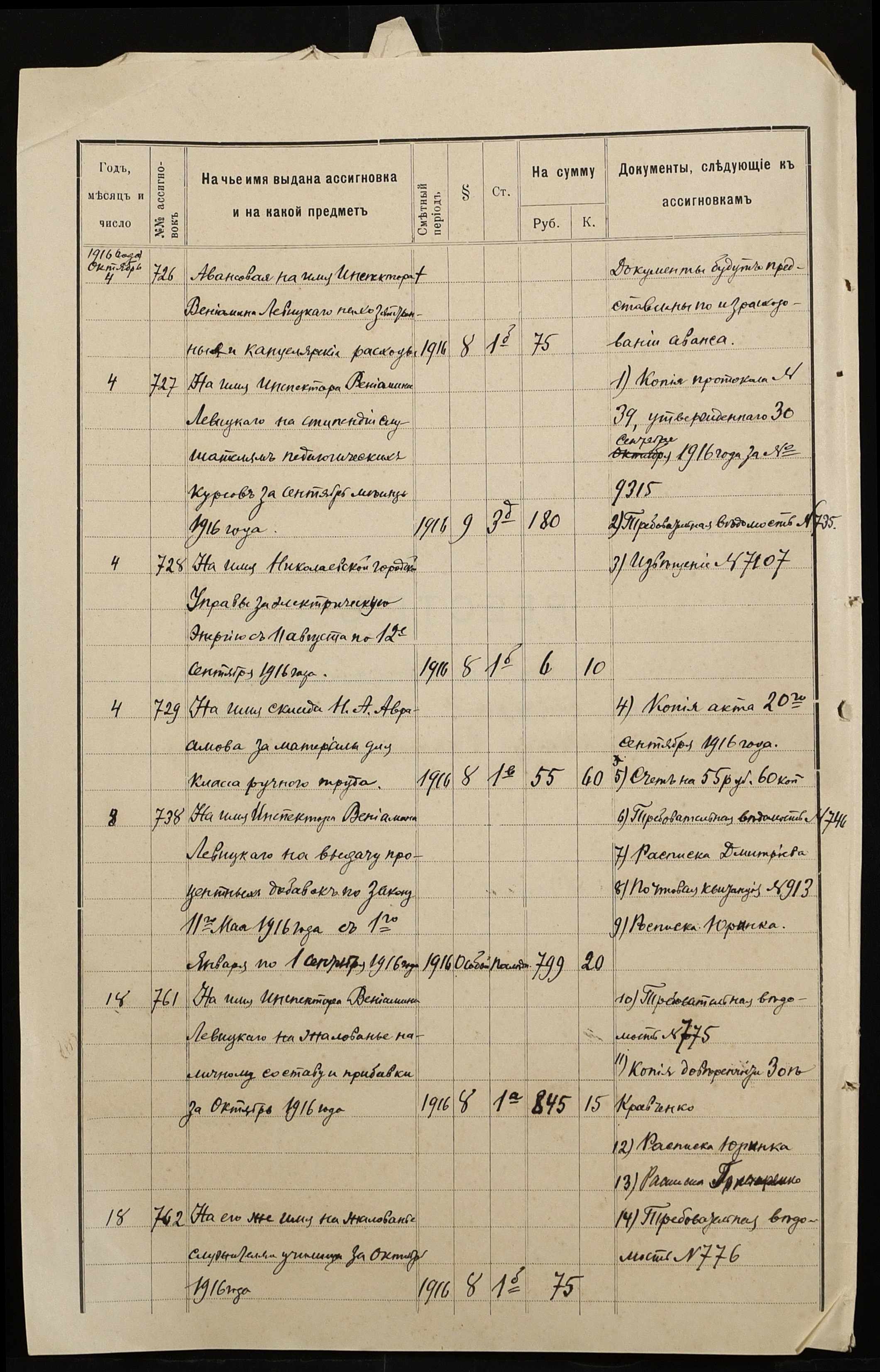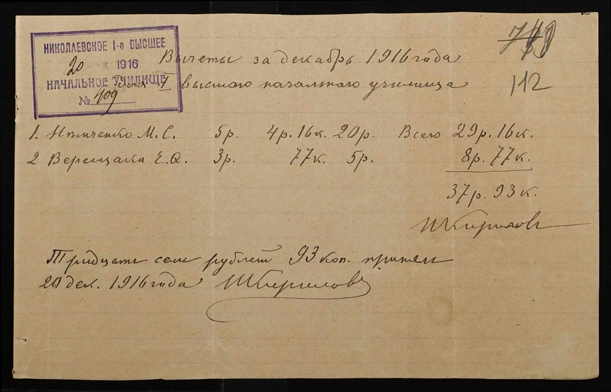 • • • • Справа № 466б “Кошторис на утримання училища, інформація про зміни, які відбулися в складі училища, реєстр бухгалтерських документів, відомості на видачу утримання викладачам за 1916 рік. Том 3”