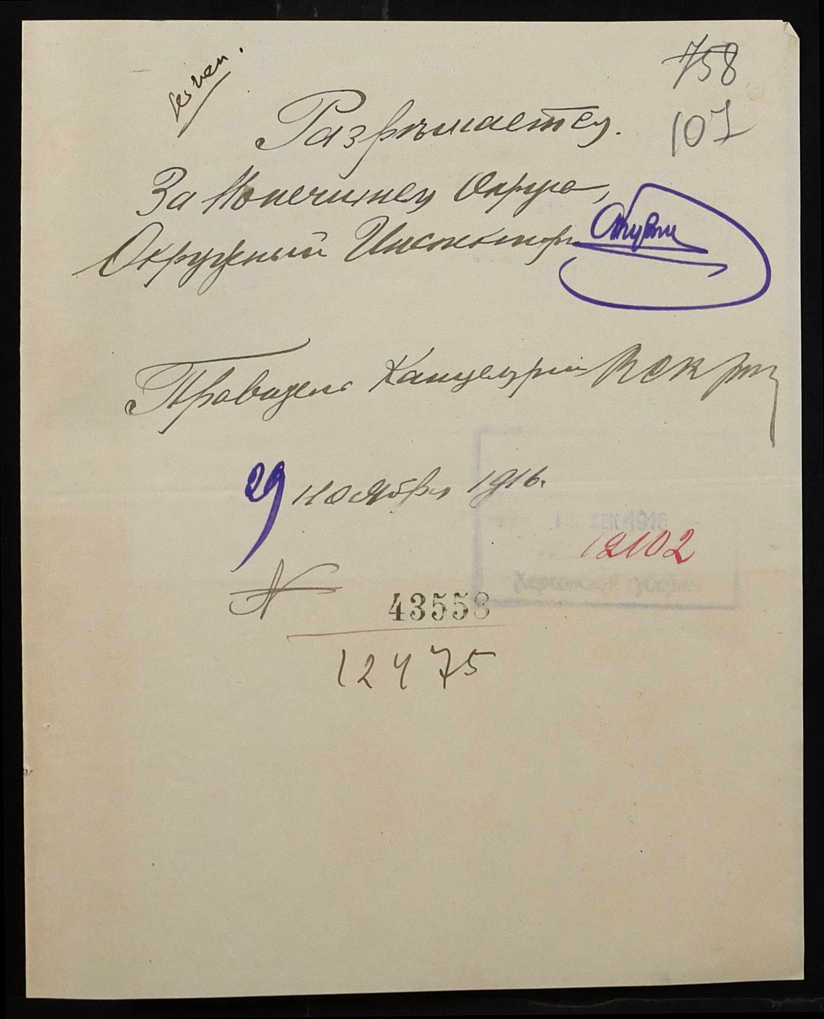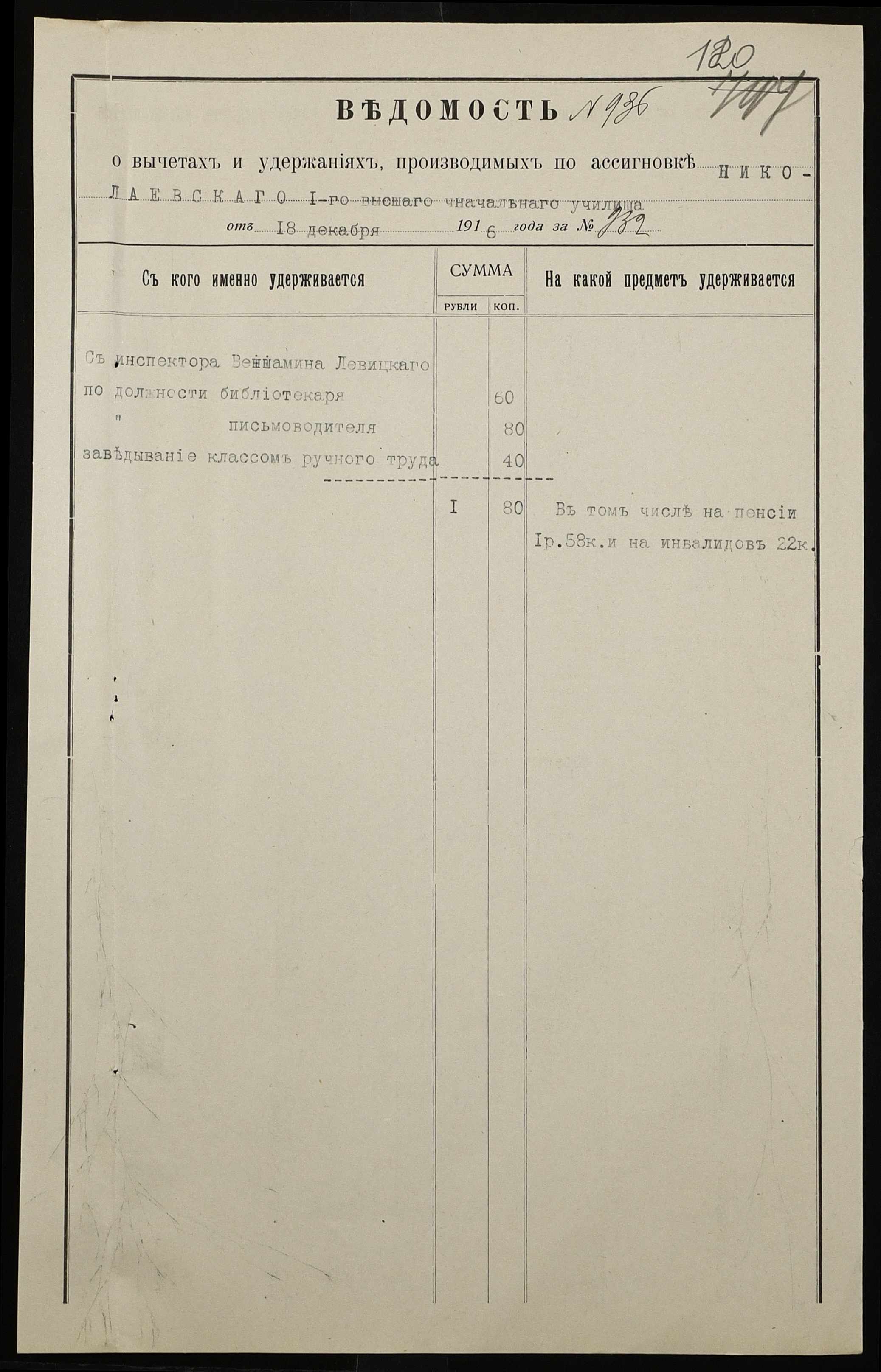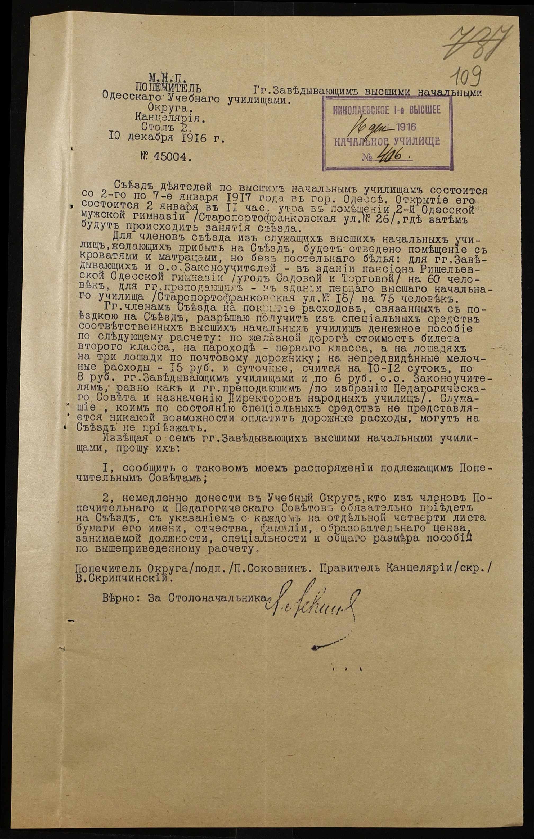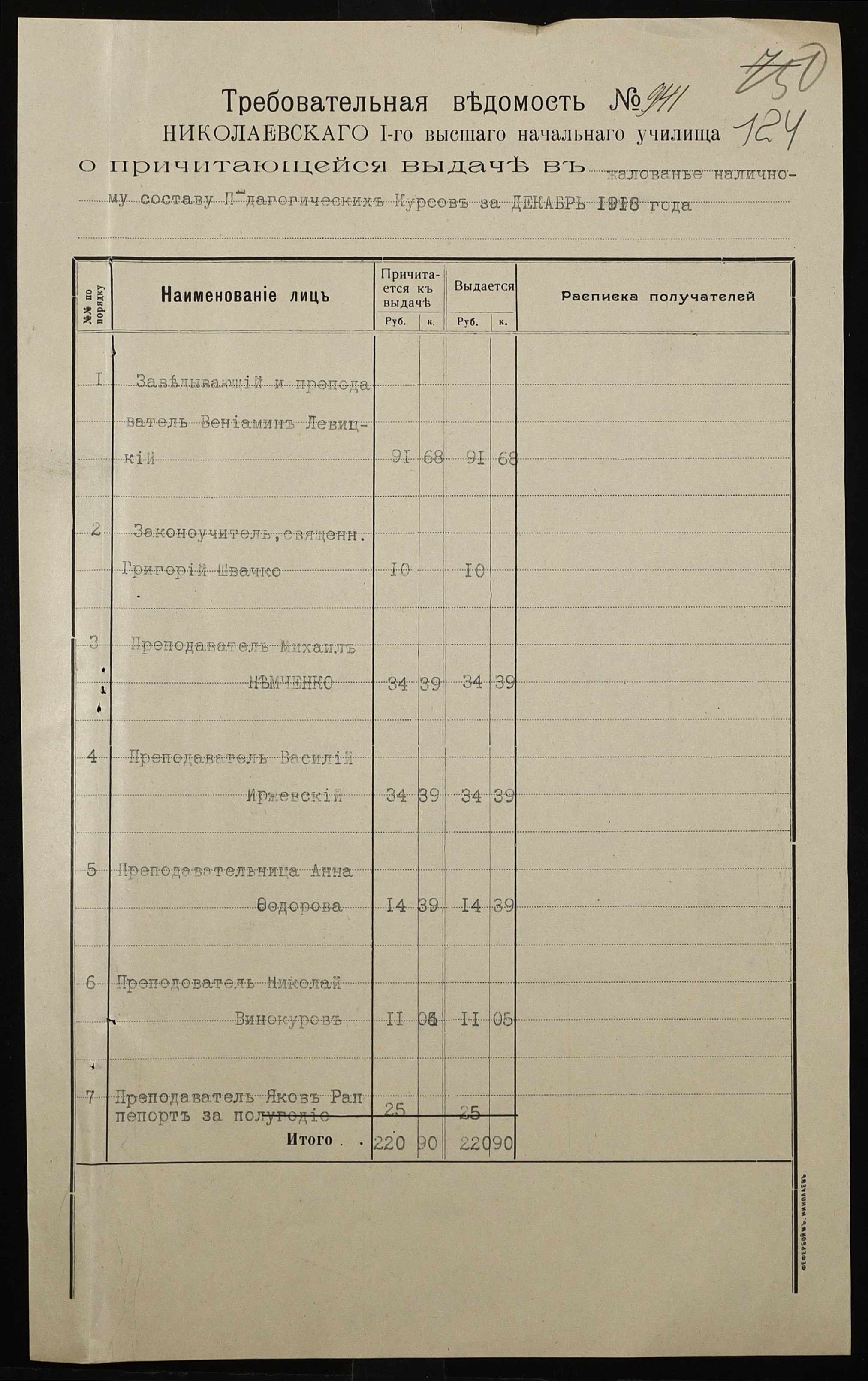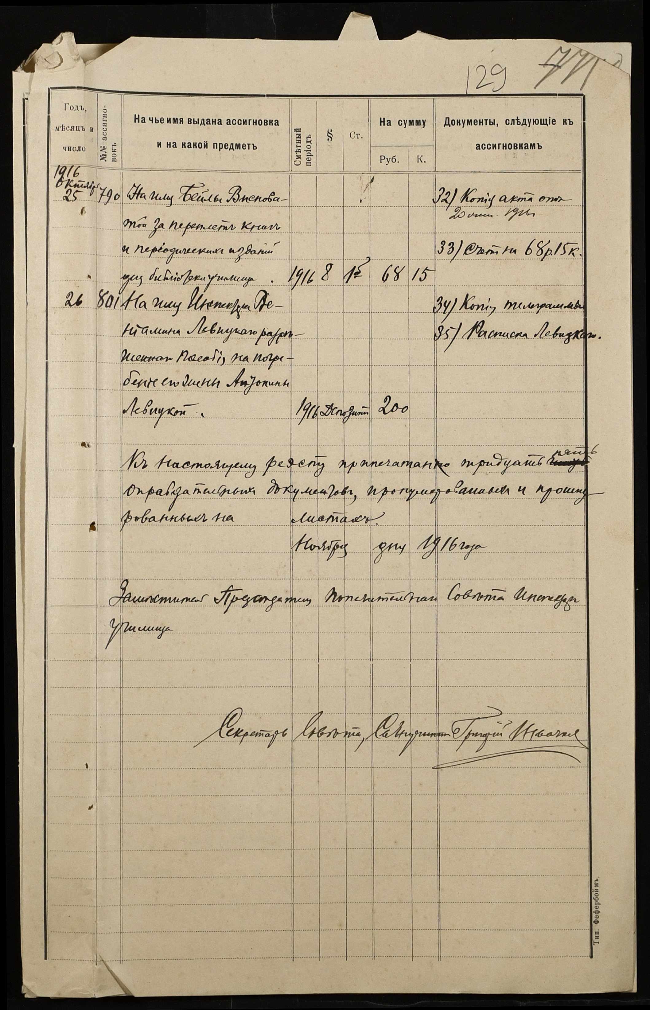 • • • • Справа № 466б “Кошторис на утримання училища, інформація про зміни, які відбулися в складі училища, реєстр бухгалтерських документів, відомості на видачу утримання викладачам за 1916 рік. Том 3”