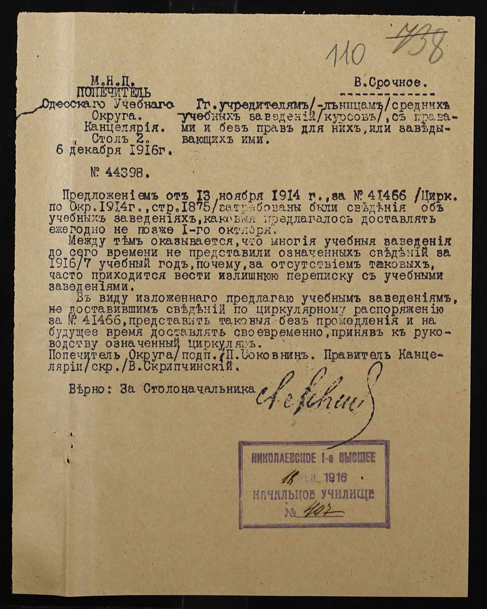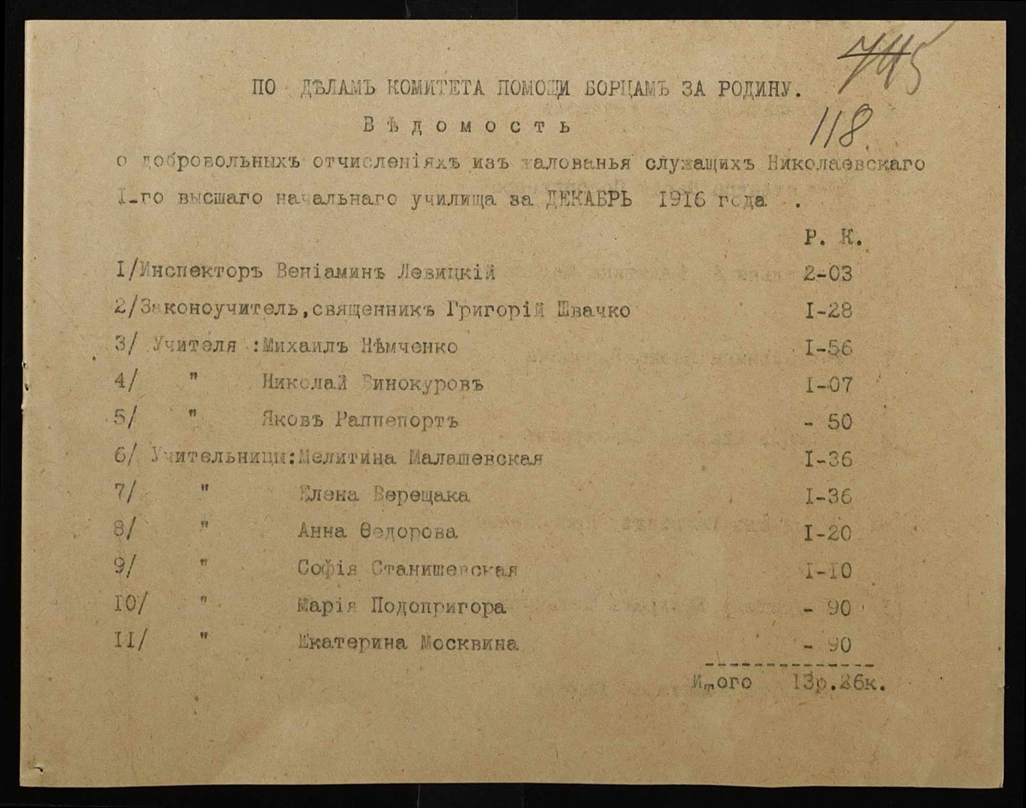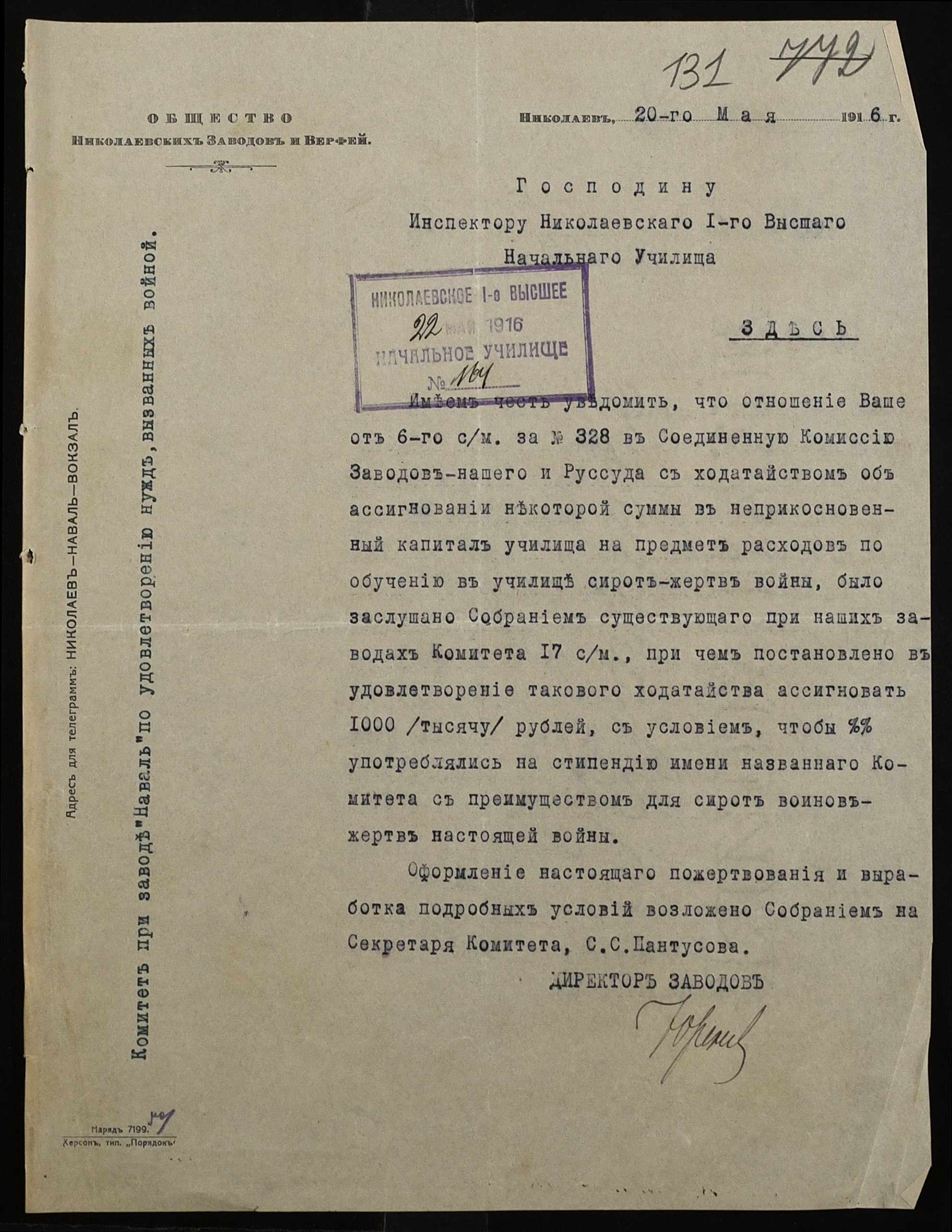 ◦ ◦ Фонд № 131 “Миколаївське перше вище початкове училище”