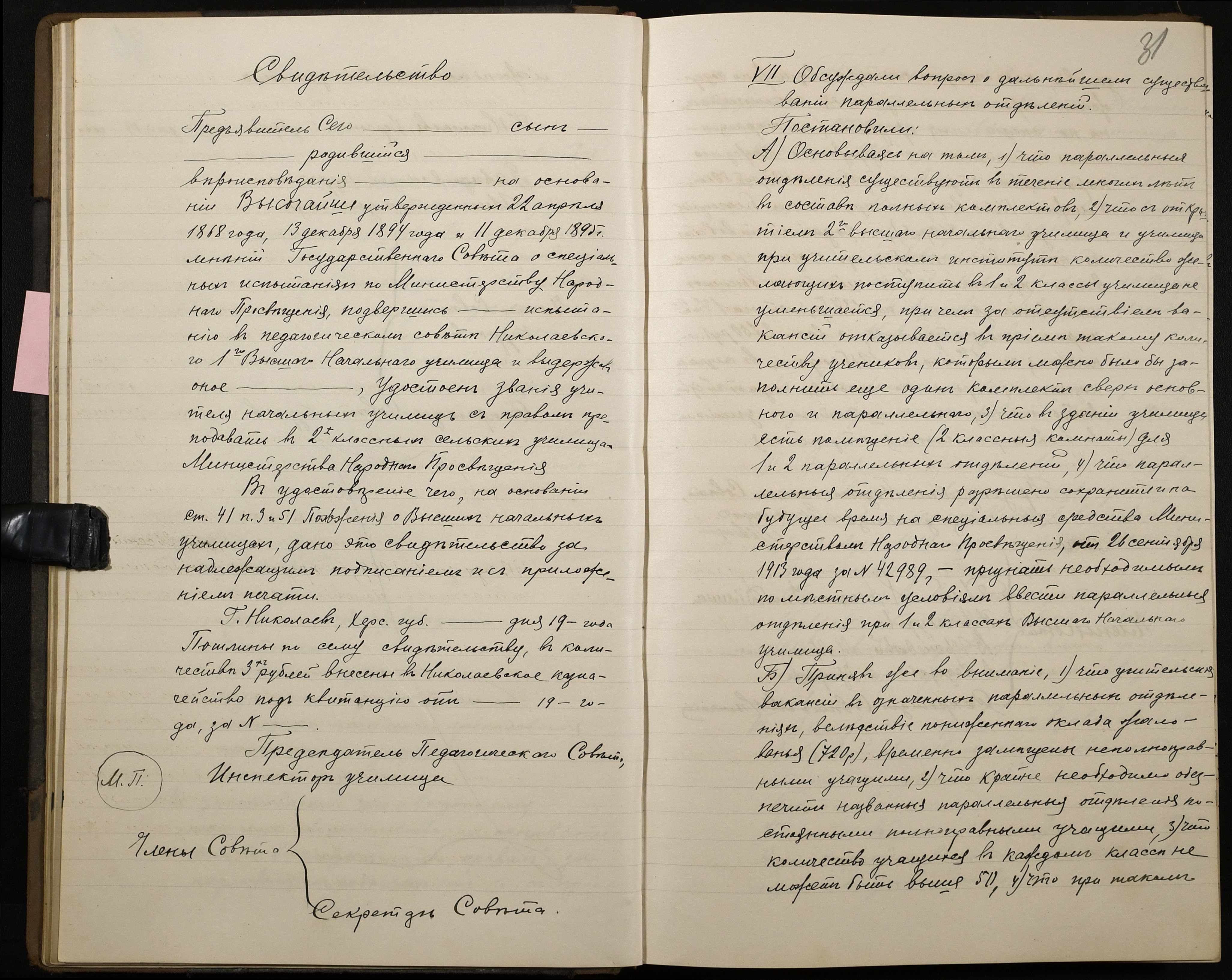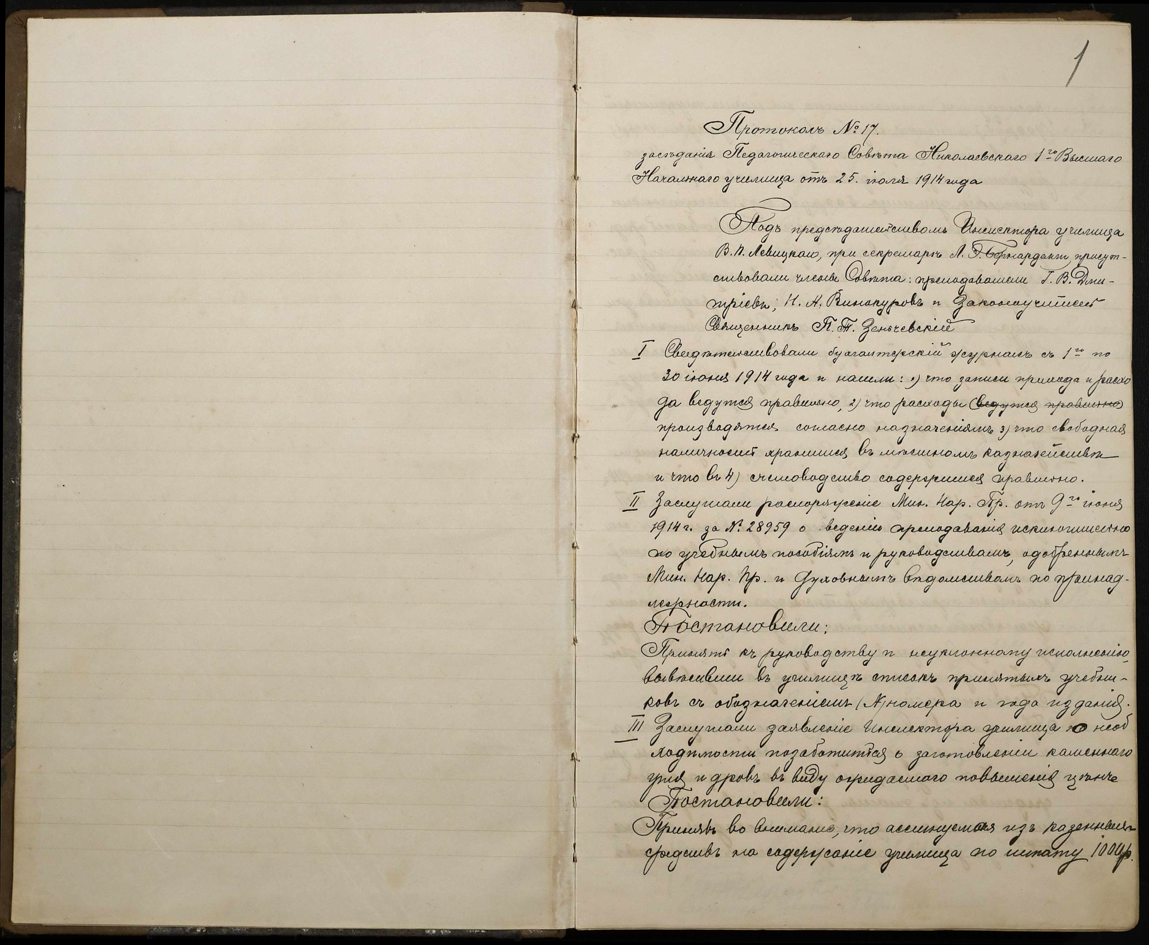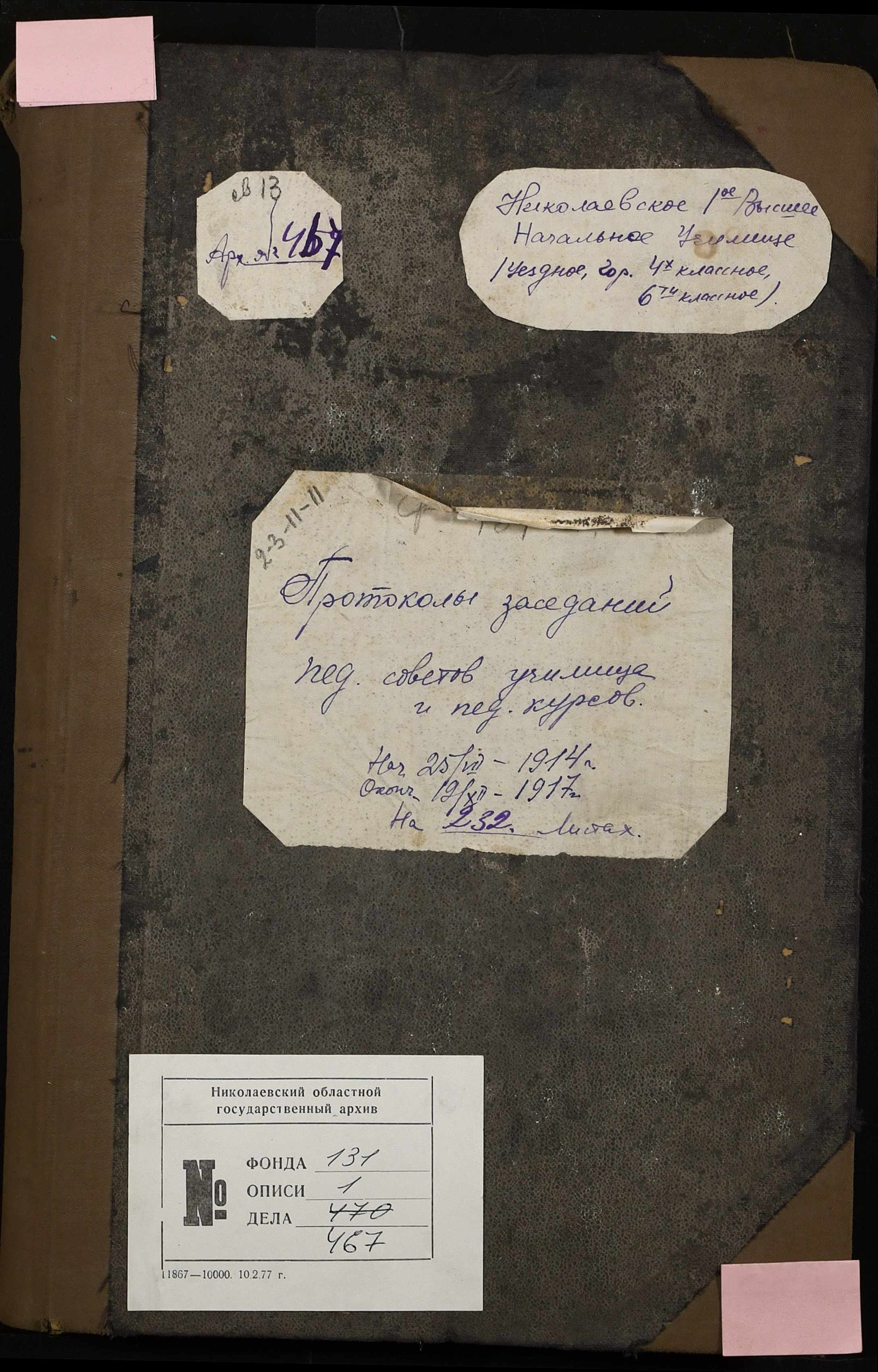 • • • • Справа № 467 “Протоколи засідань педагогічної ради I Вищого початкового училища”