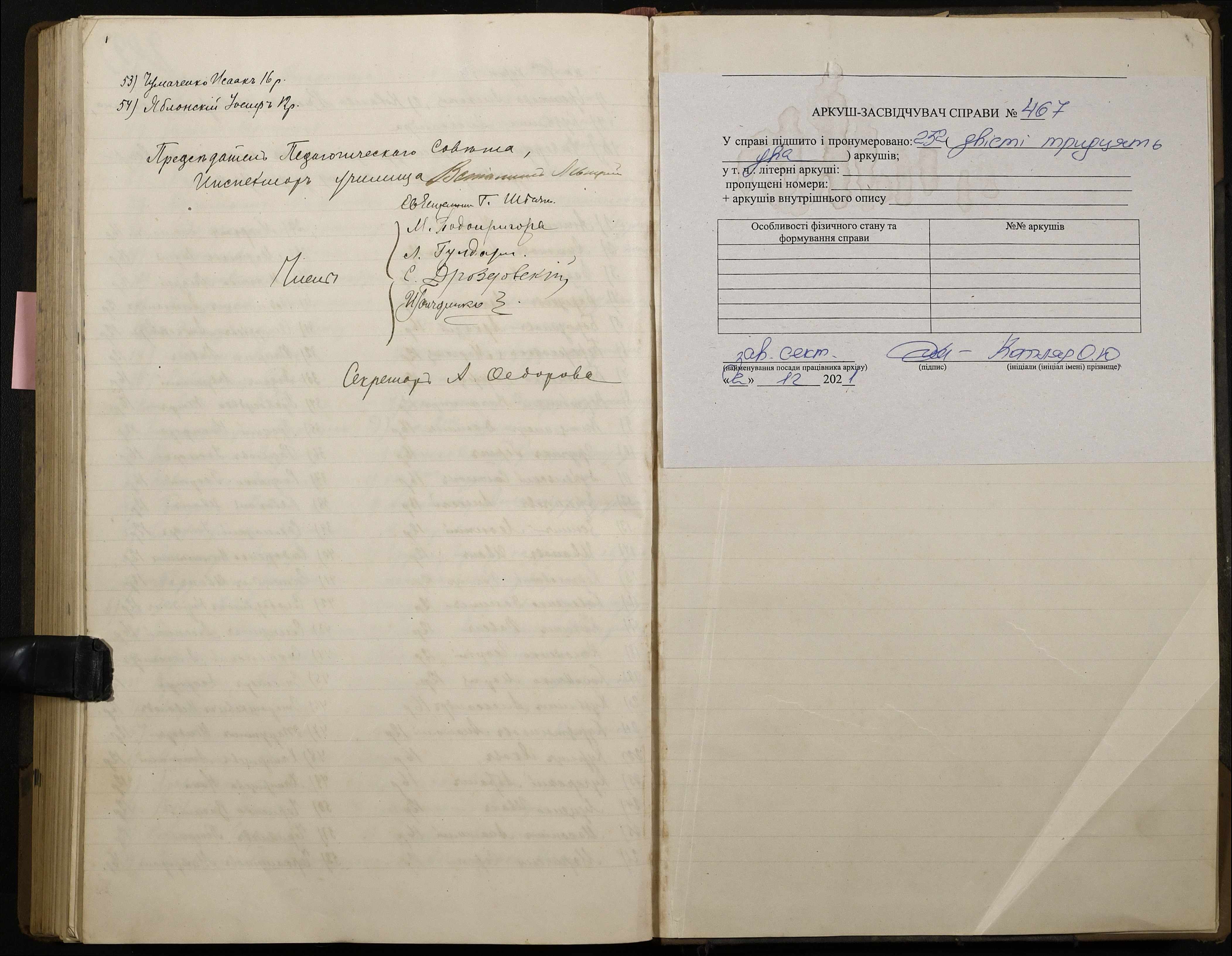 • • • • Справа № 467 “Протоколи засідань педагогічної ради I Вищого початкового училища”