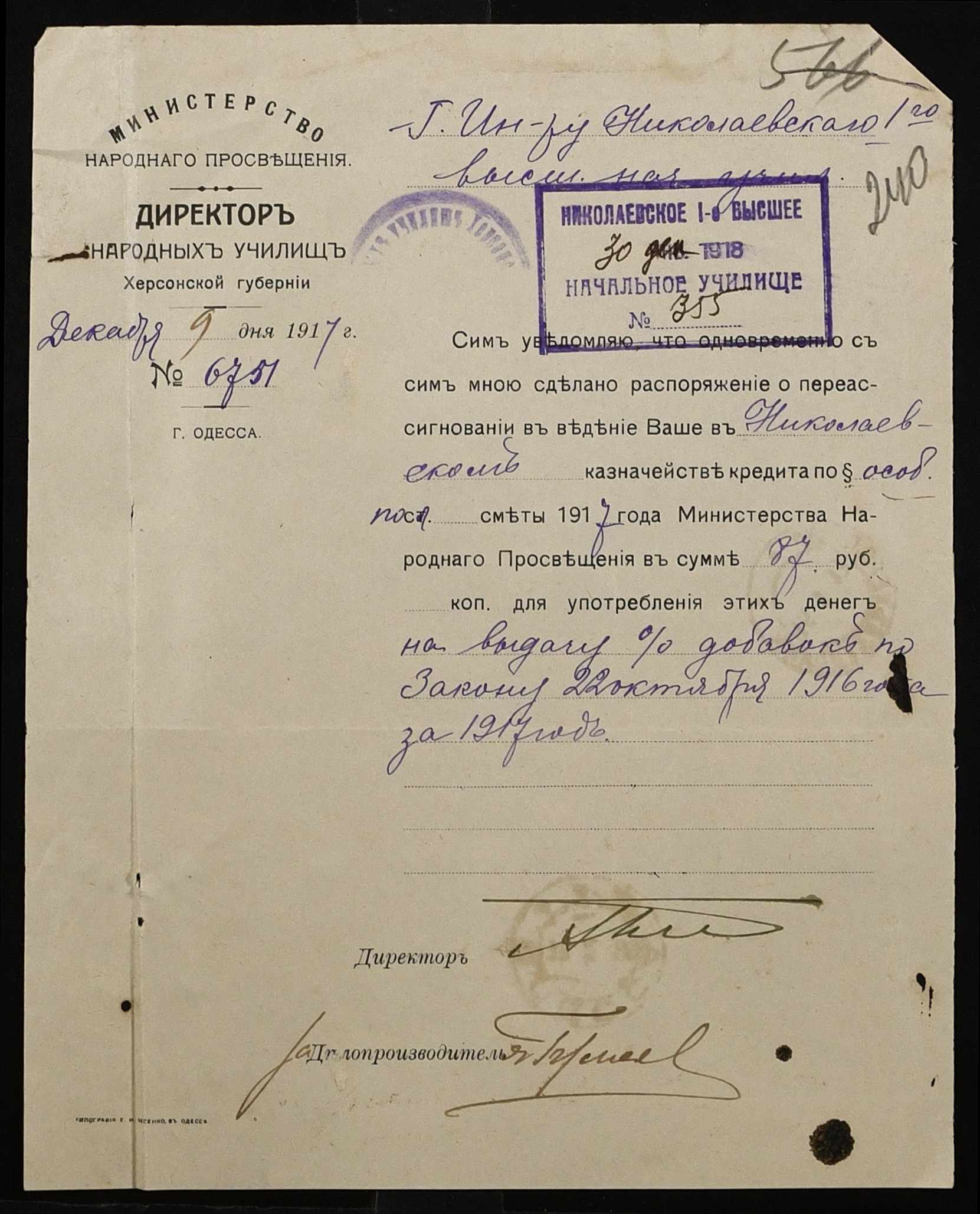 ◦ ◦ Фонд № 131 “Миколаївське перше вище початкове училище”