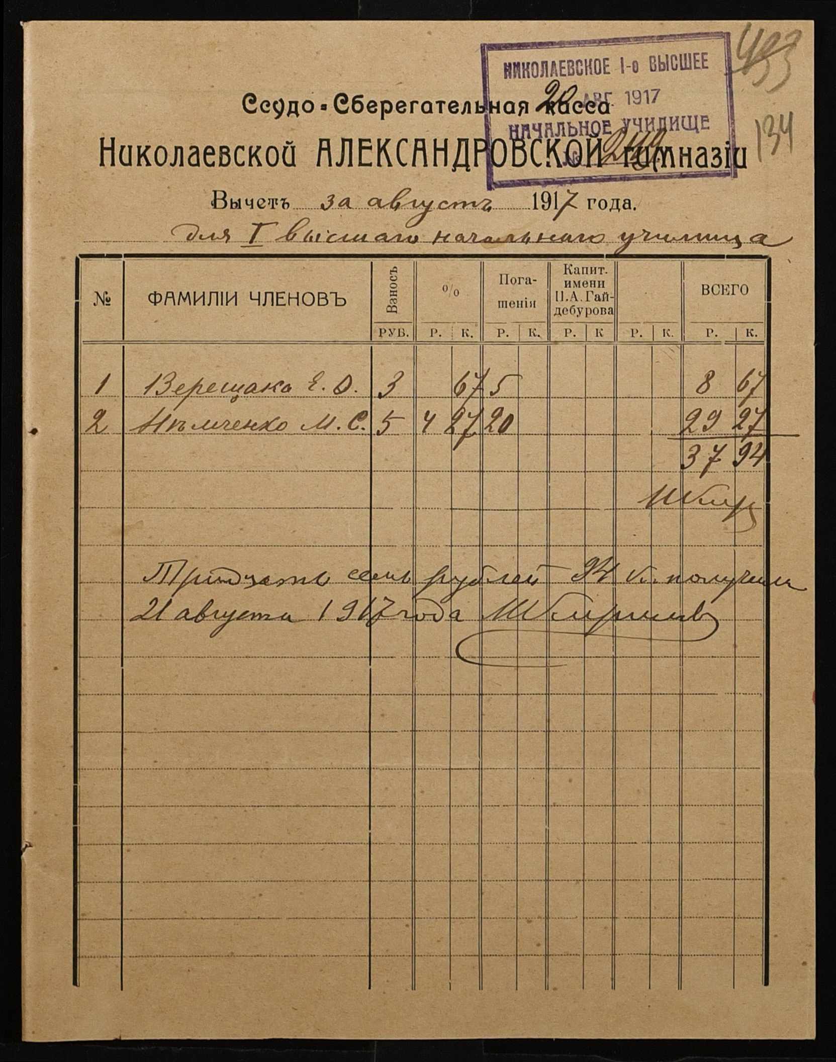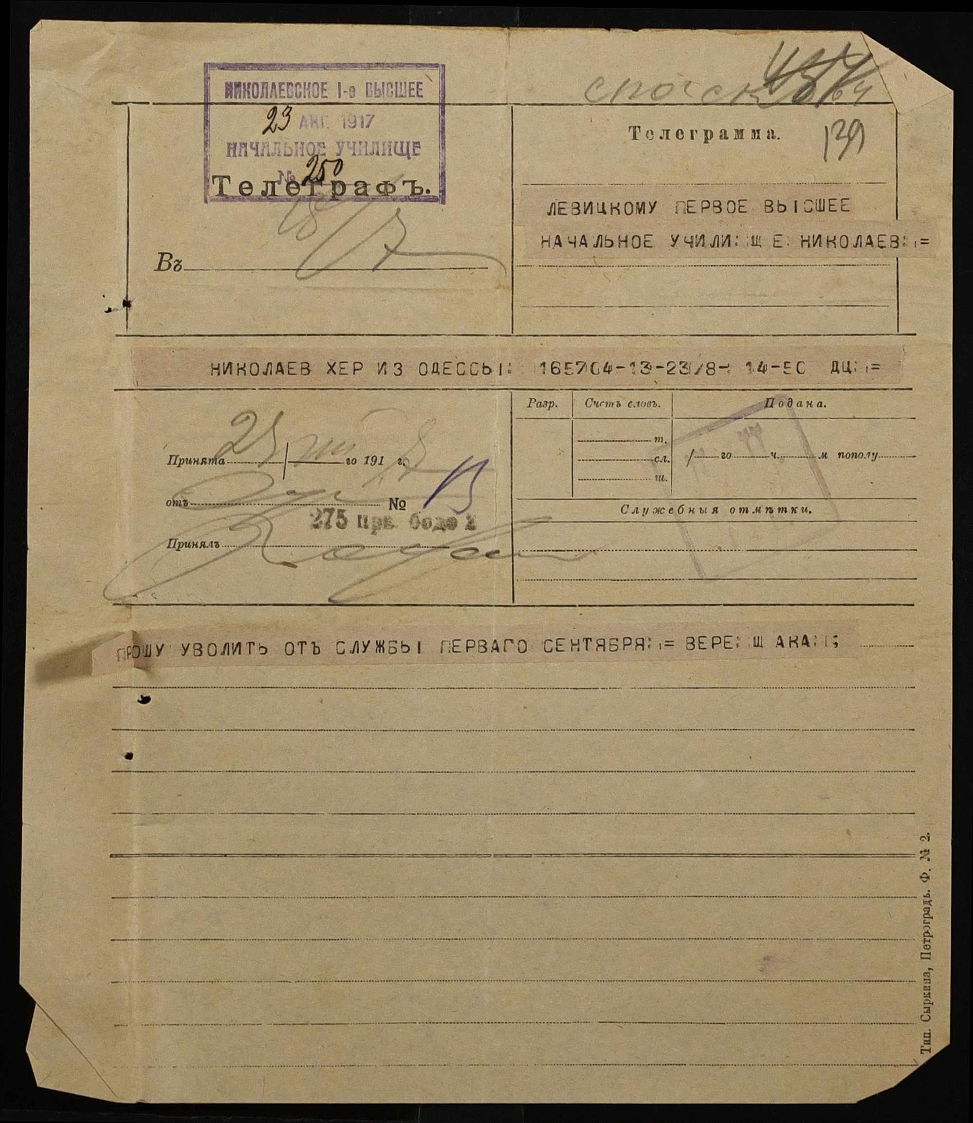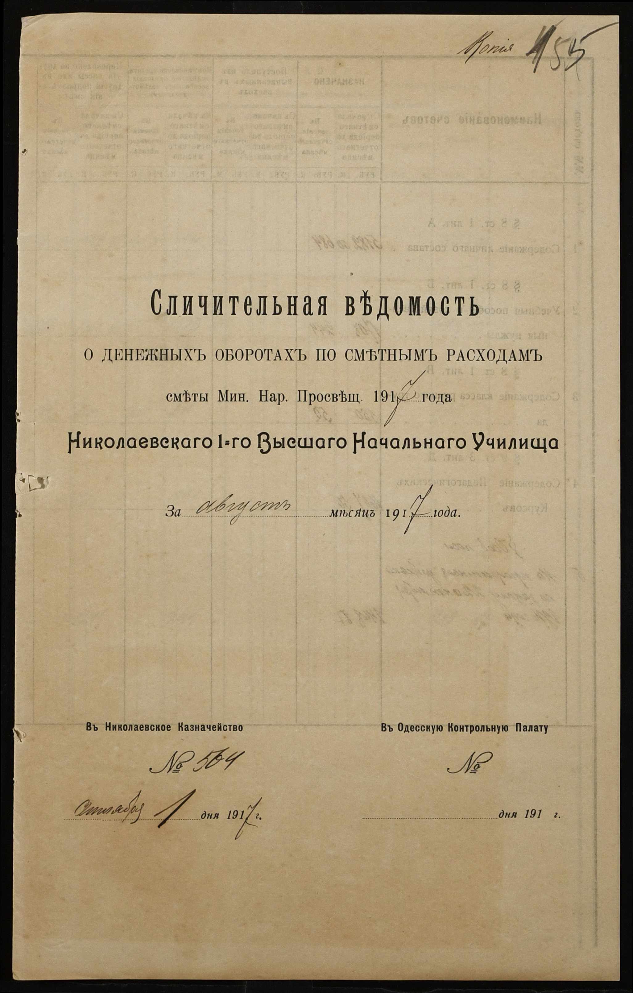 ◦ ◦ Фонд № 131 “Миколаївське перше вище початкове училище”