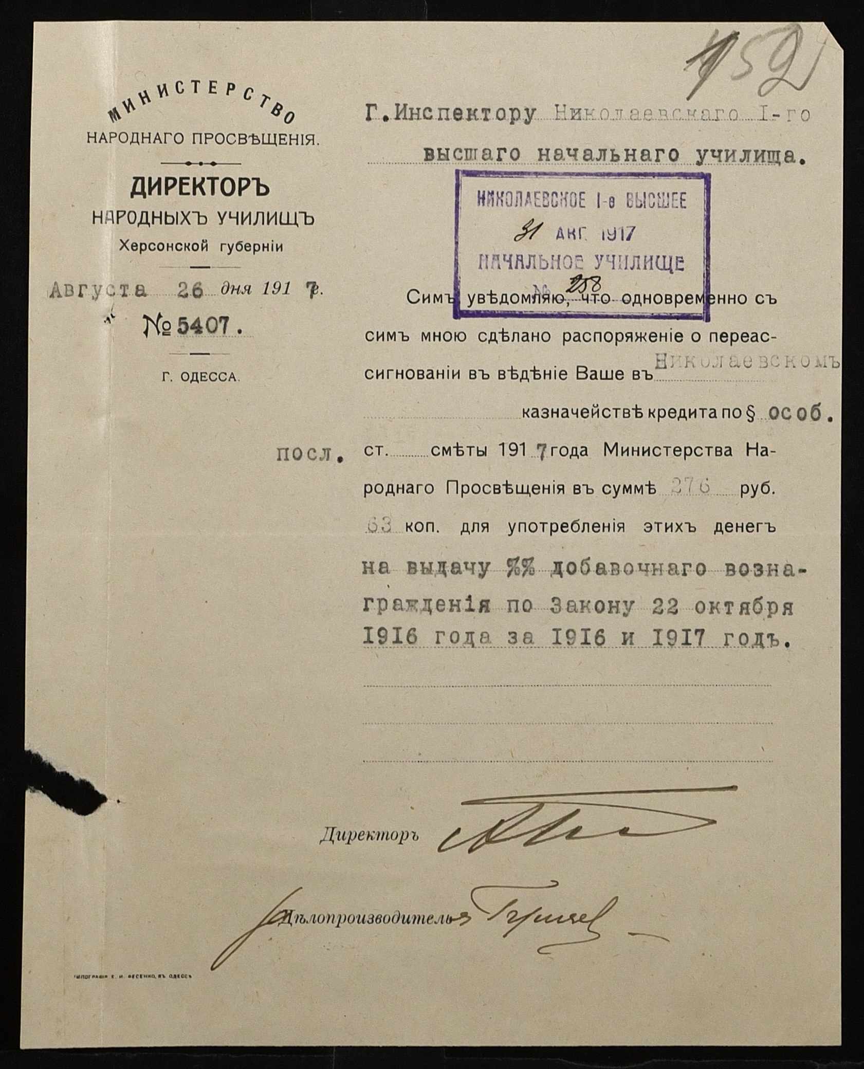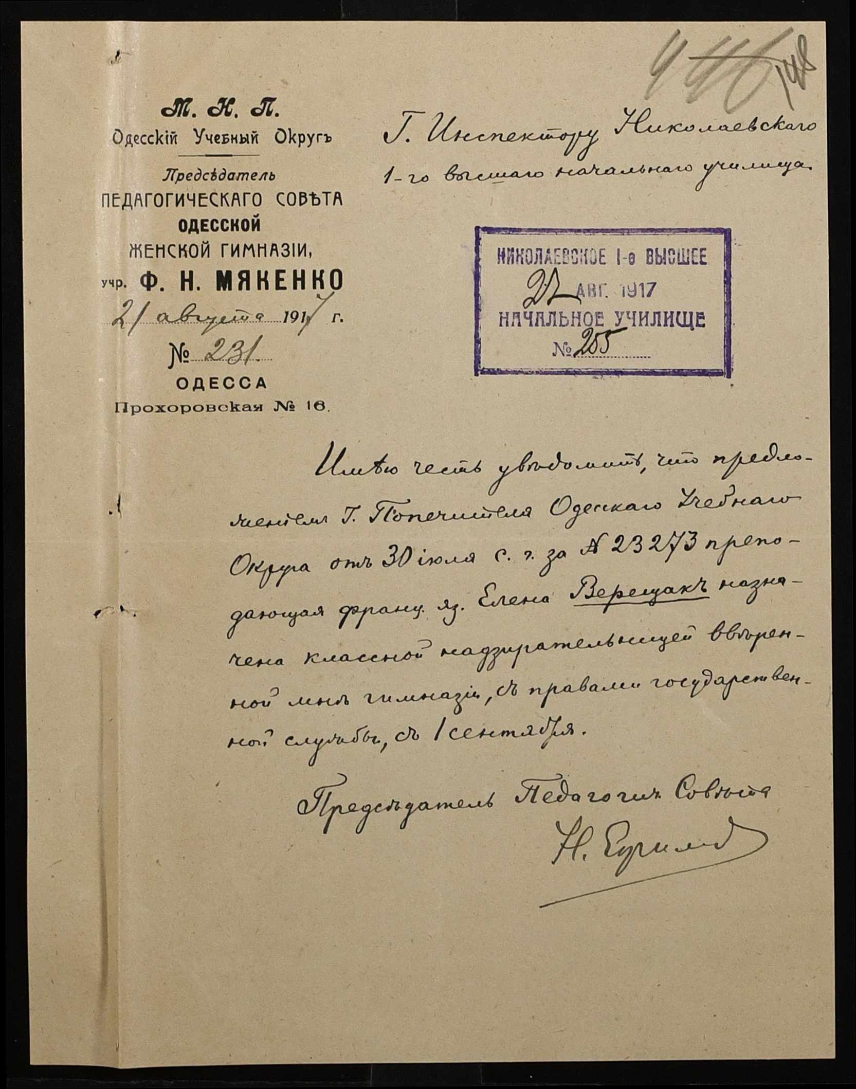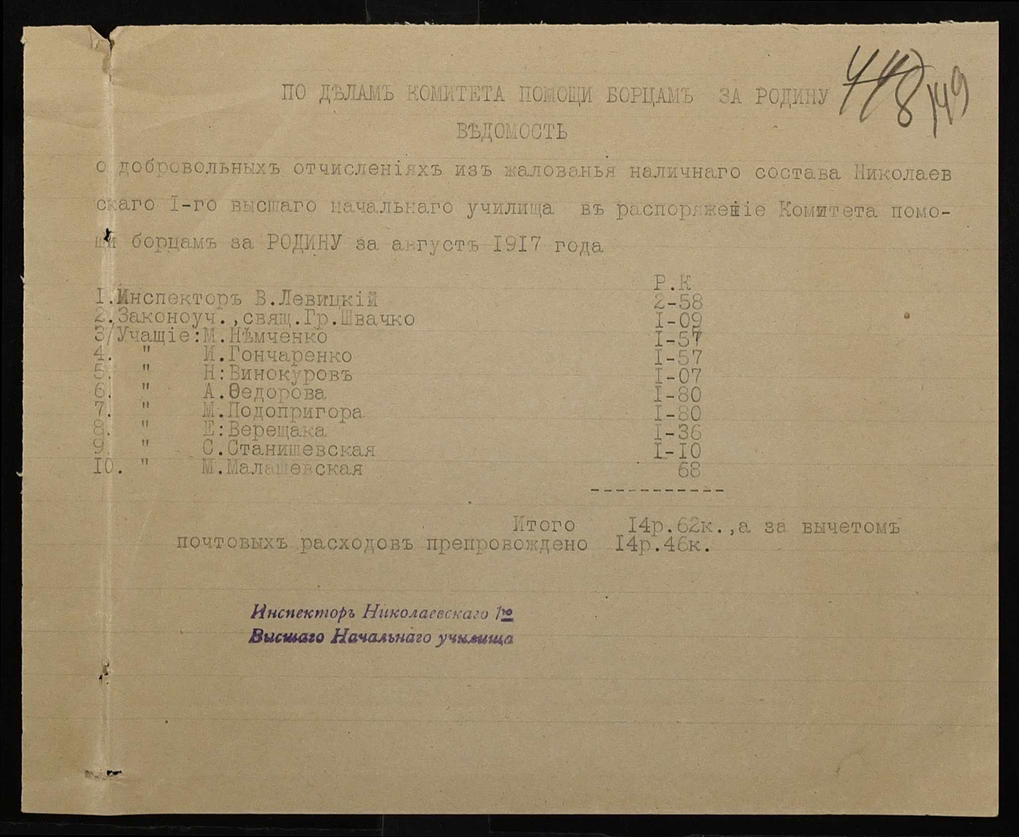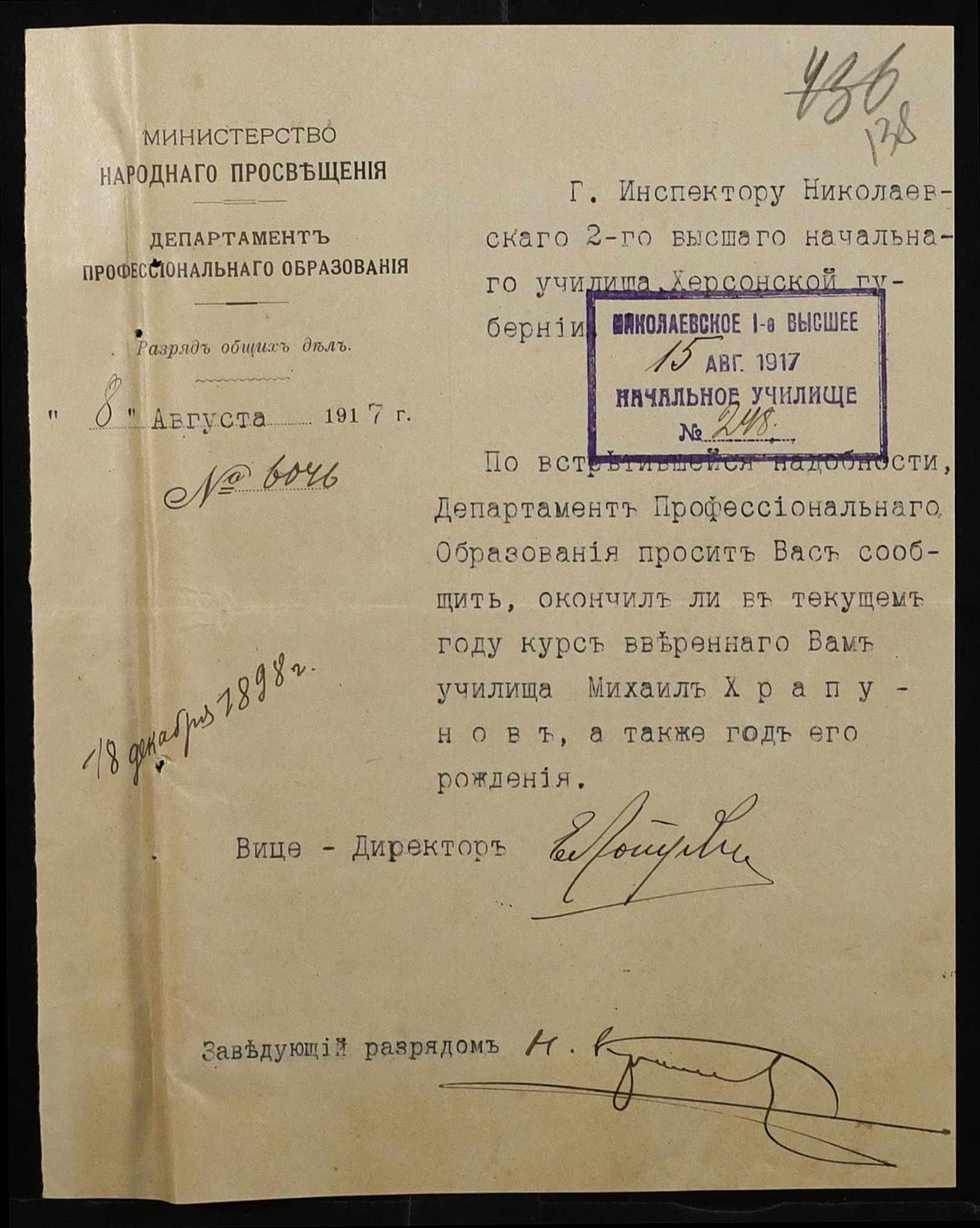 ◦ ◦ Фонд № 131 “Миколаївське перше вище початкове училище”