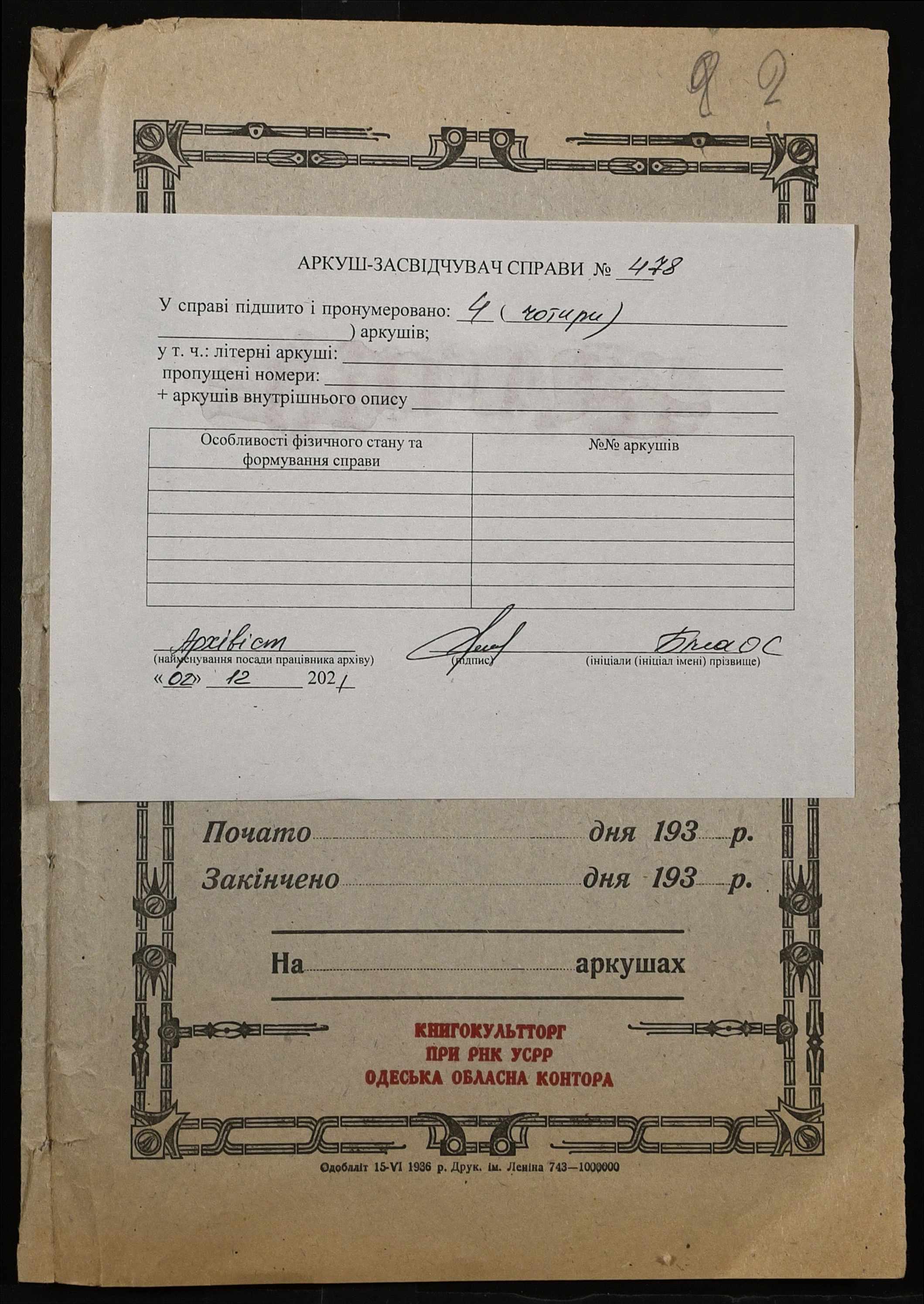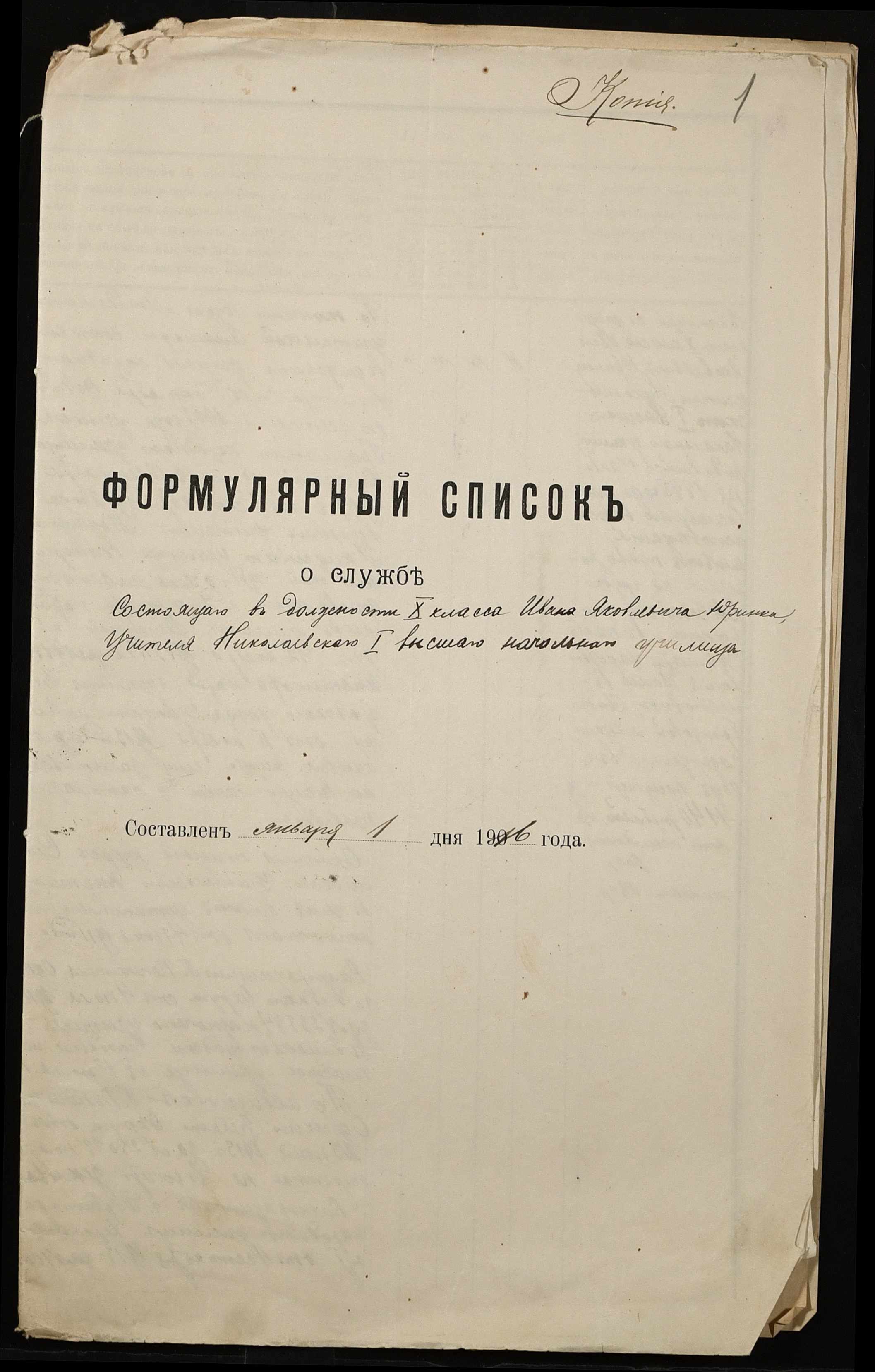 • • • • Справа № 478 “Формулярний список учителя Юрінка І. Я. (Юринка И.Я.)”
