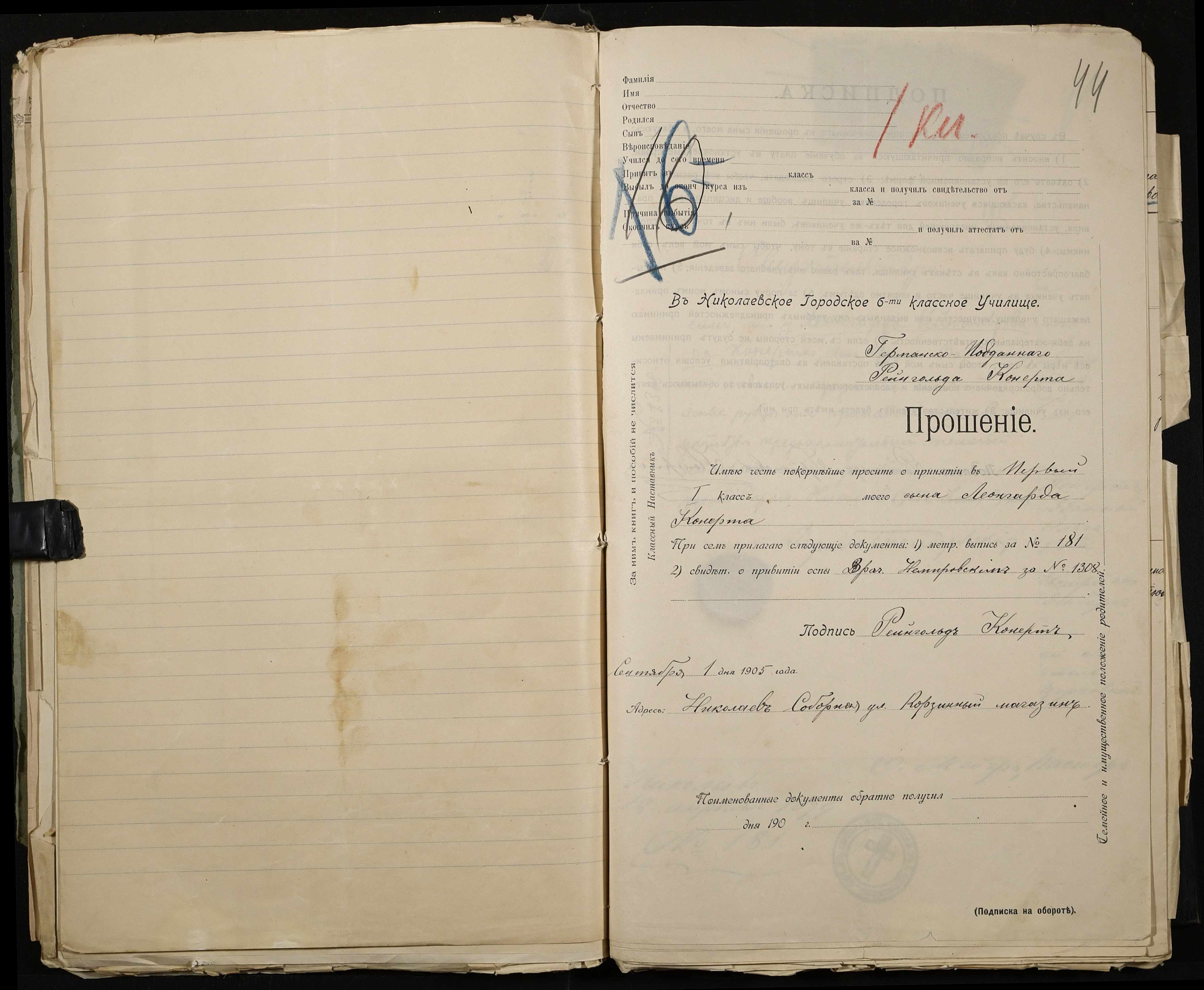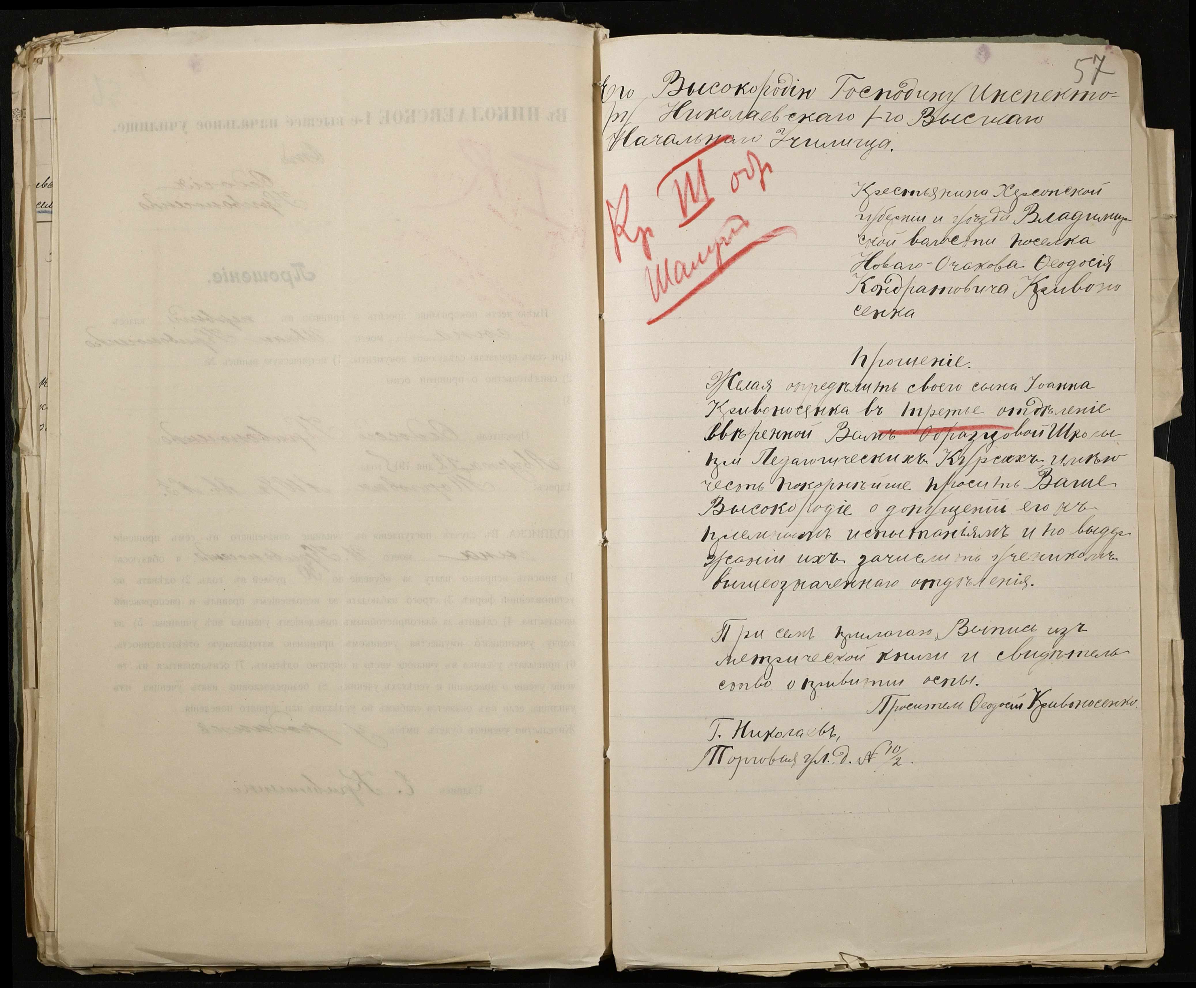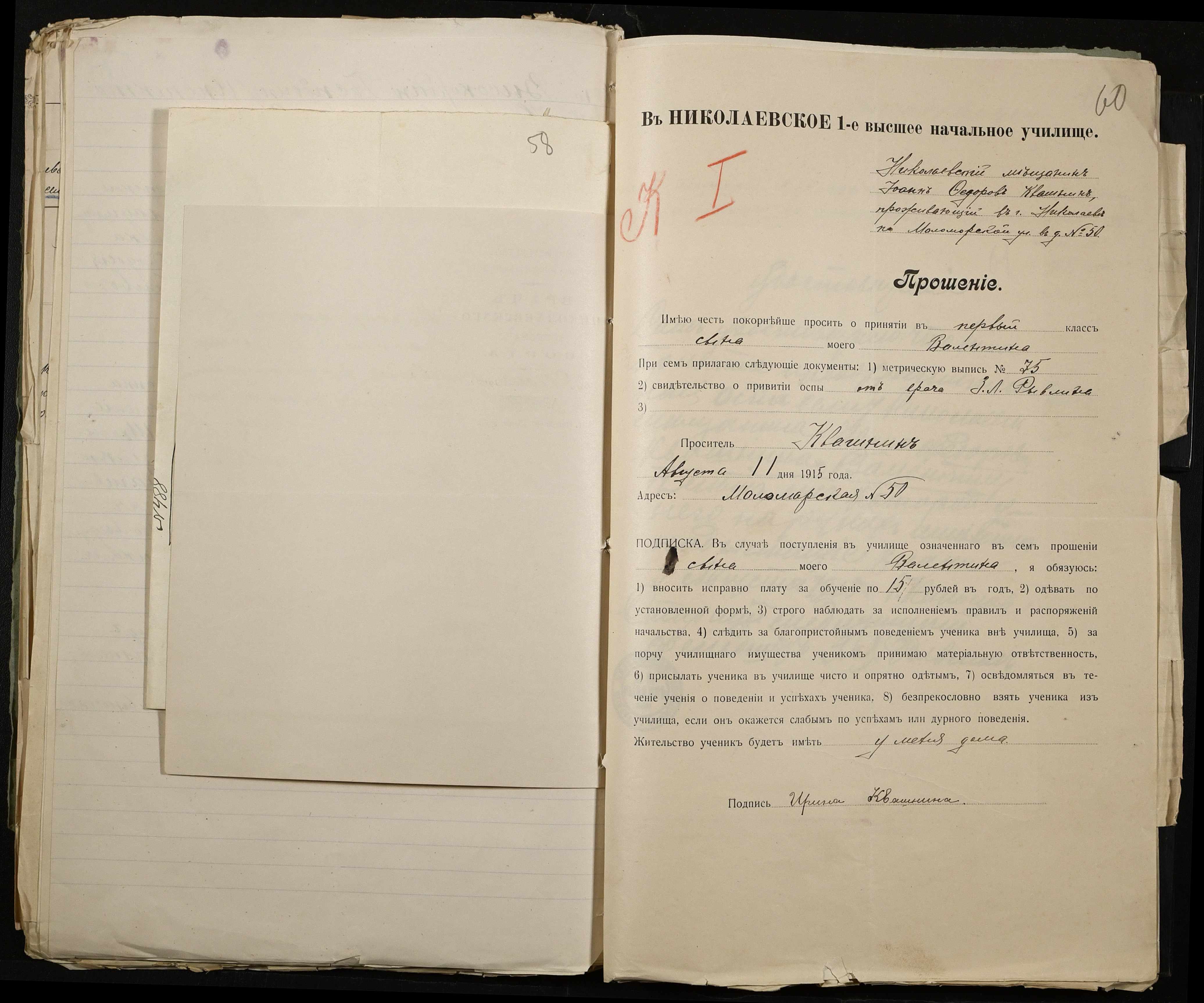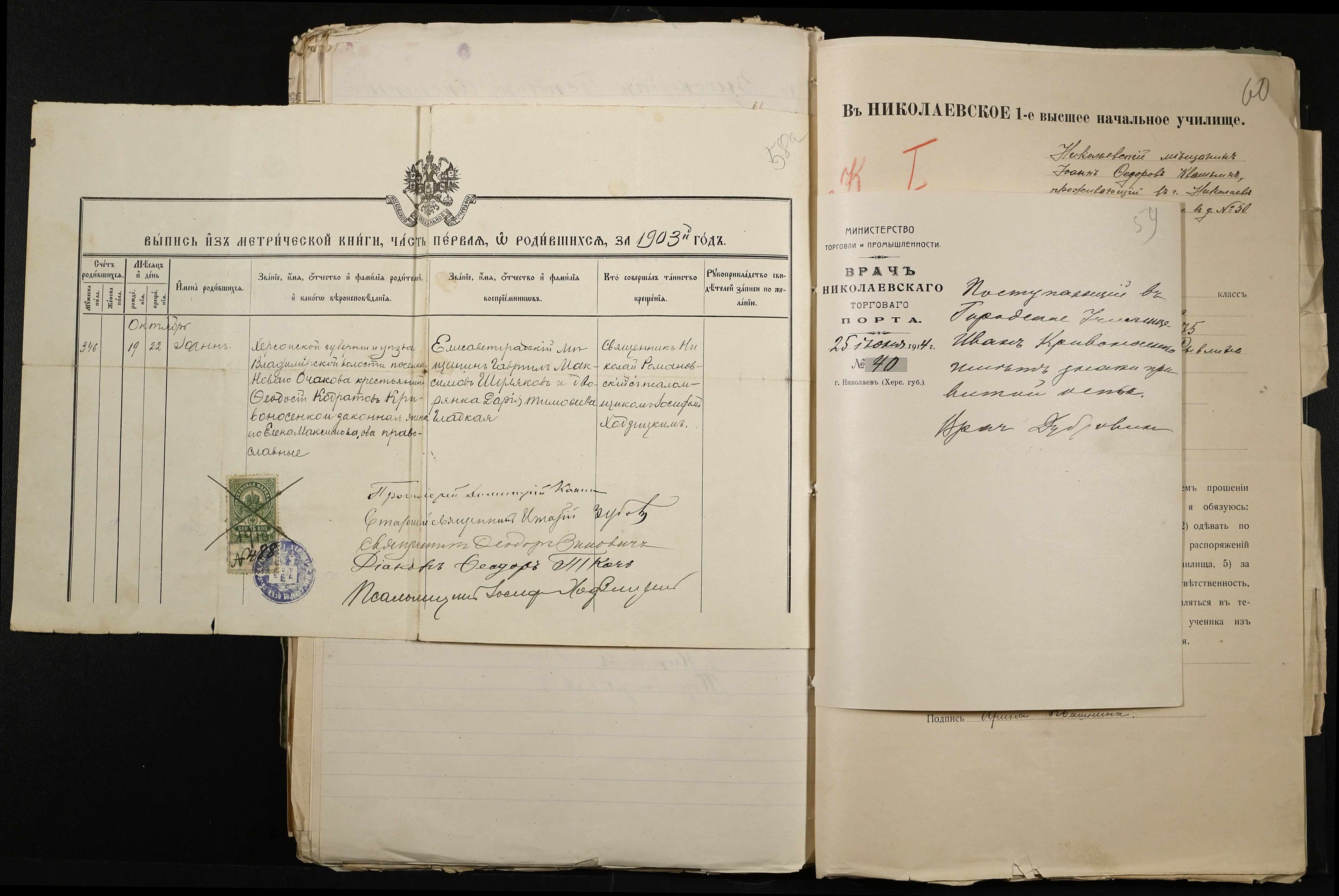 • • • • Справа № 486 “Прохання про прийом в училище, метричні виписки учнів, літера «К»”