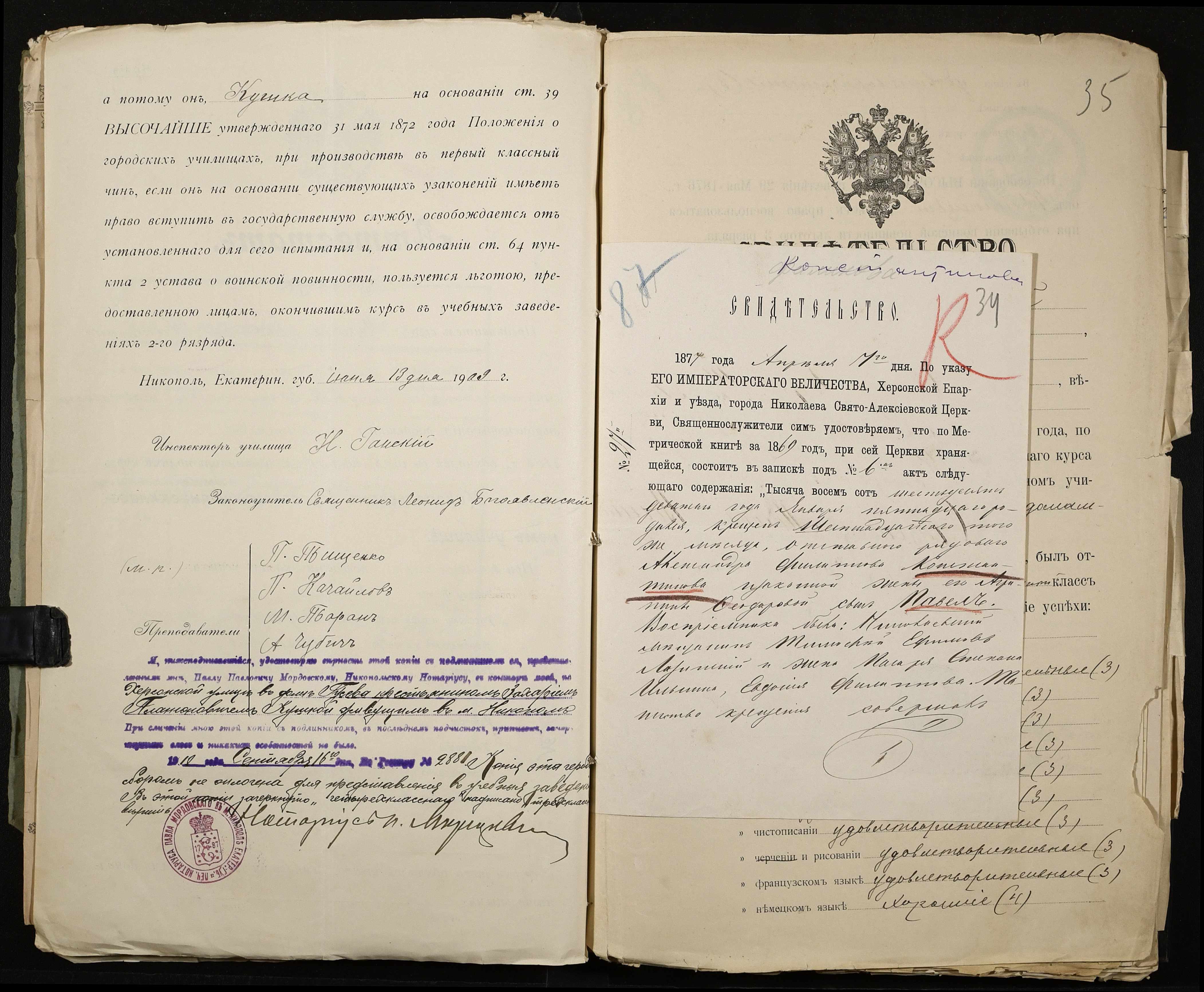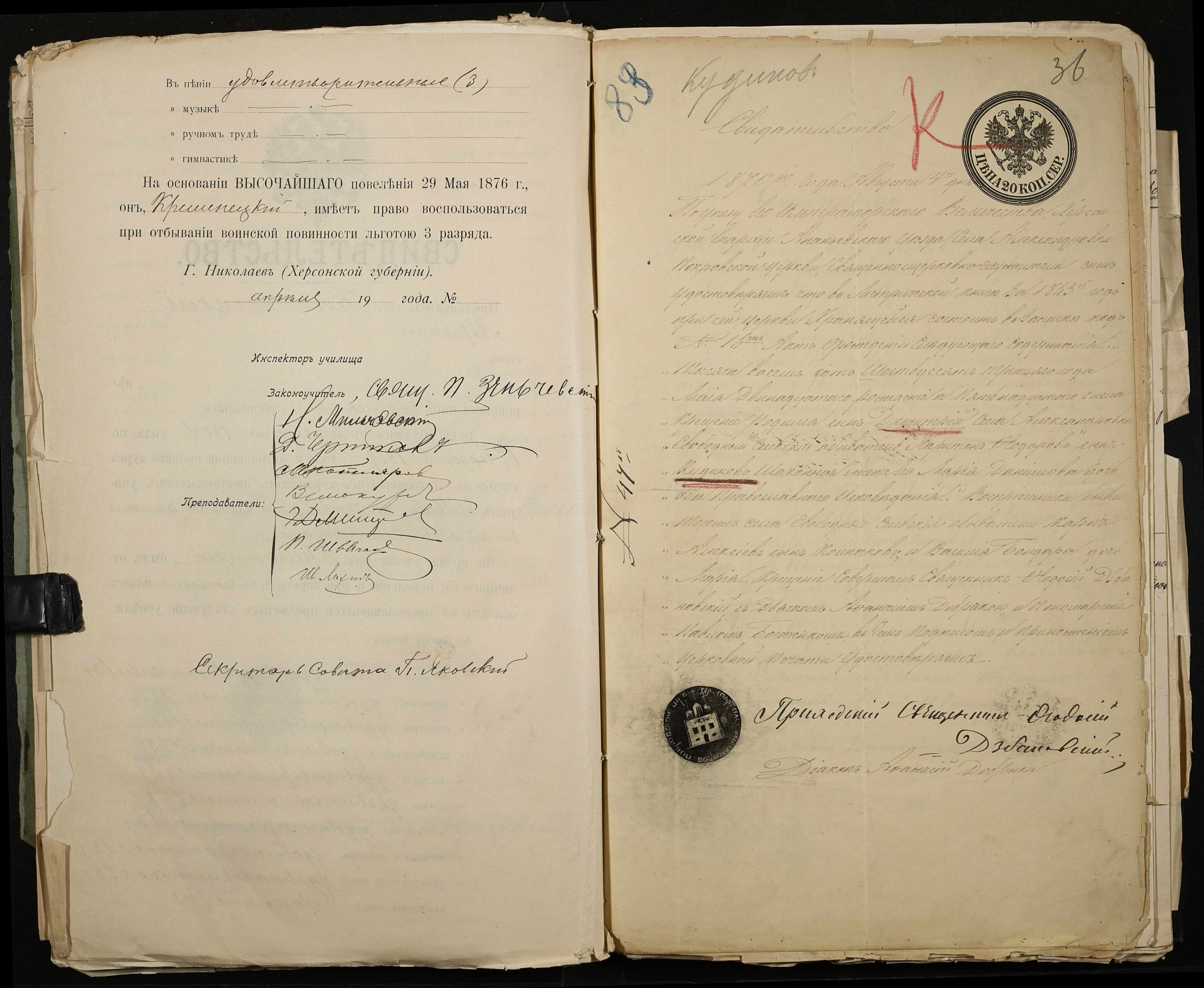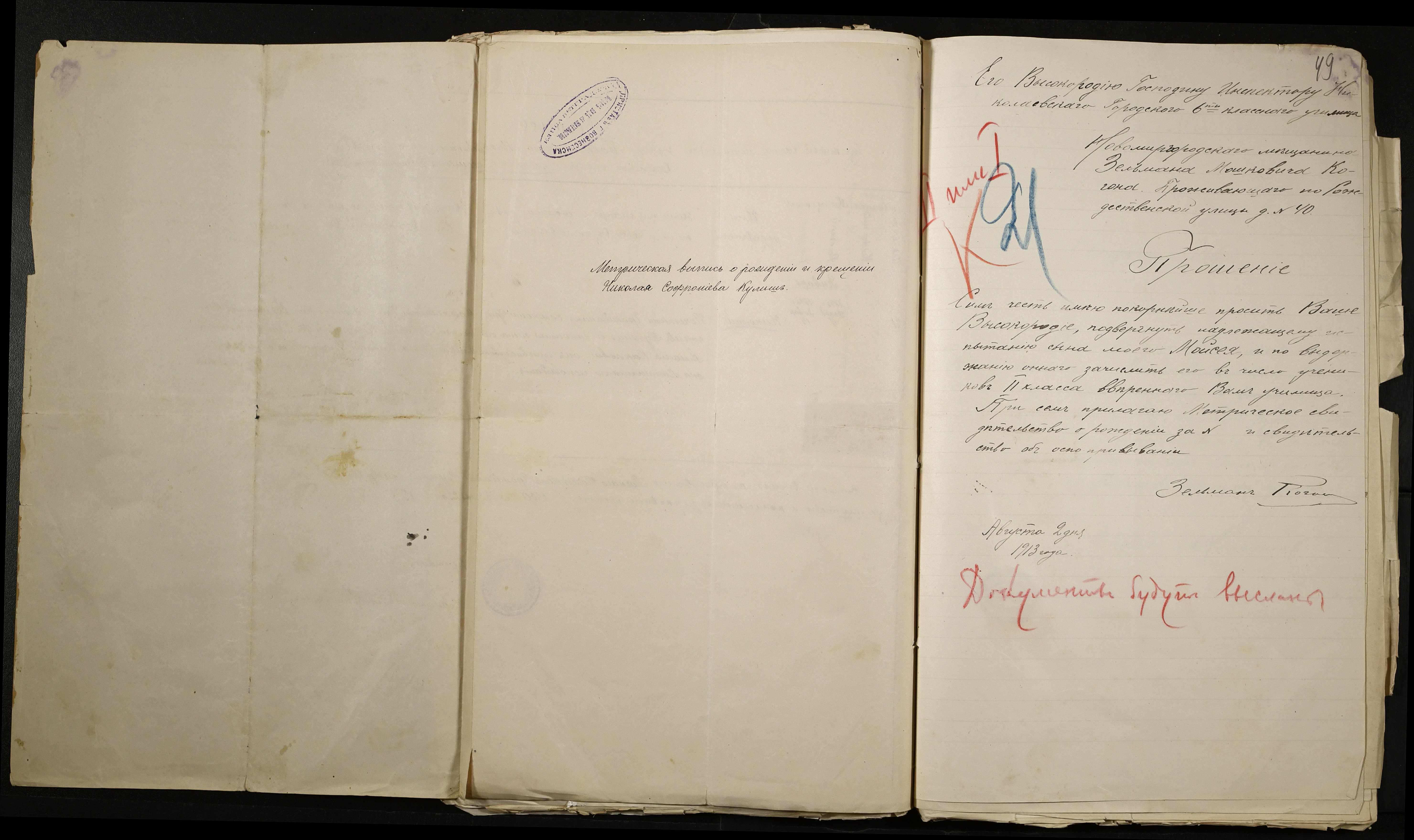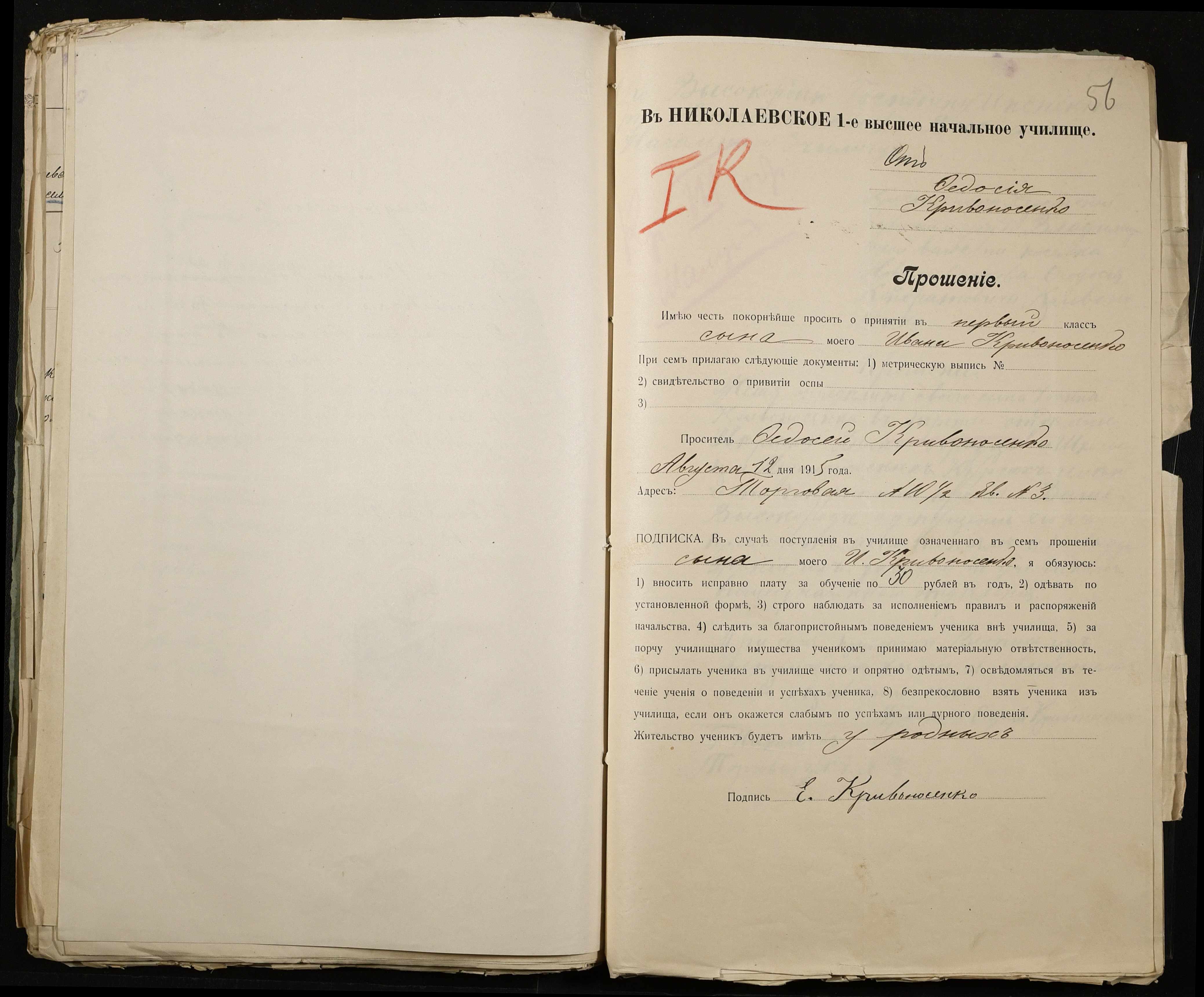 • • • • Справа № 486 “Прохання про прийом в училище, метричні виписки учнів, літера «К»”