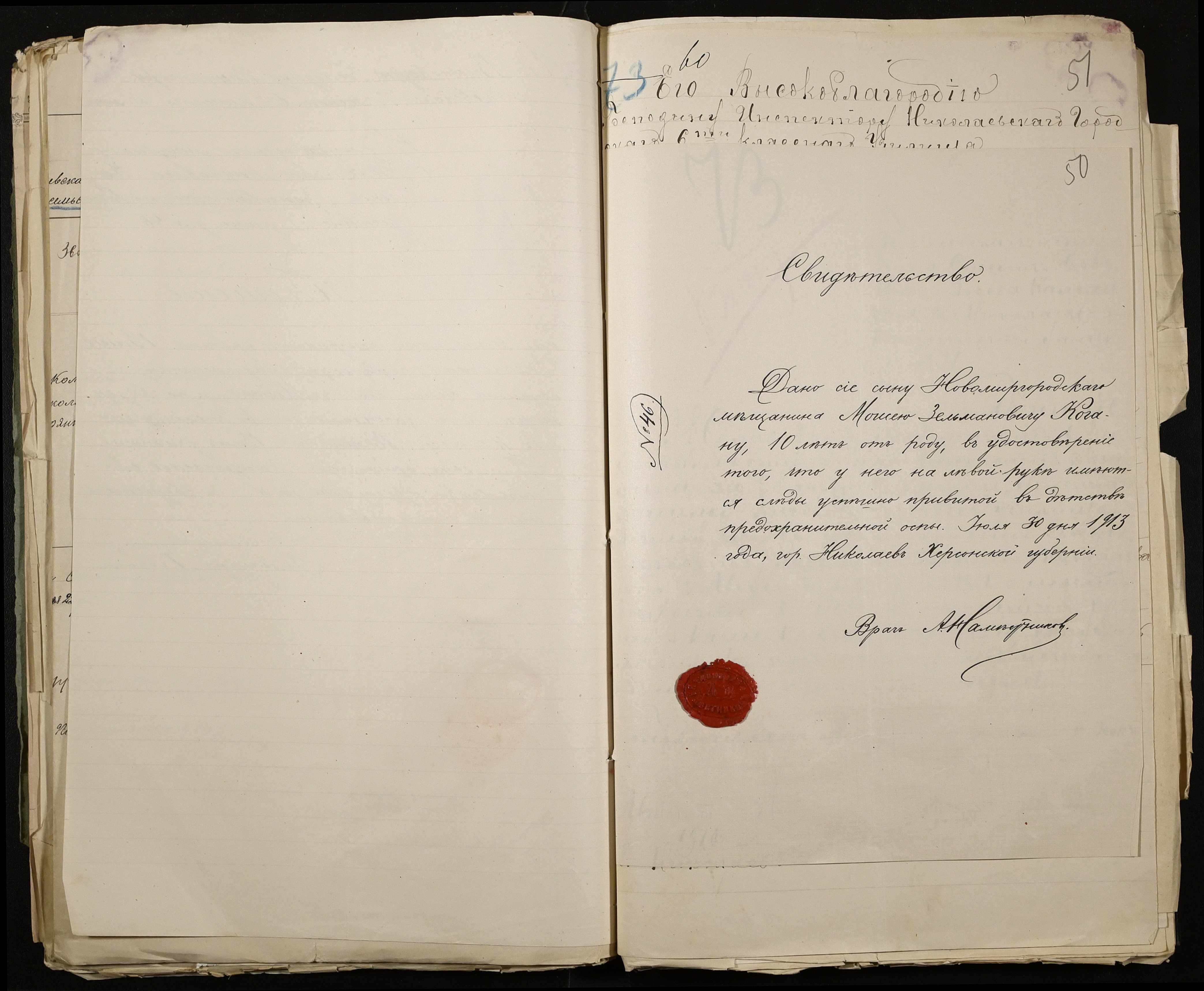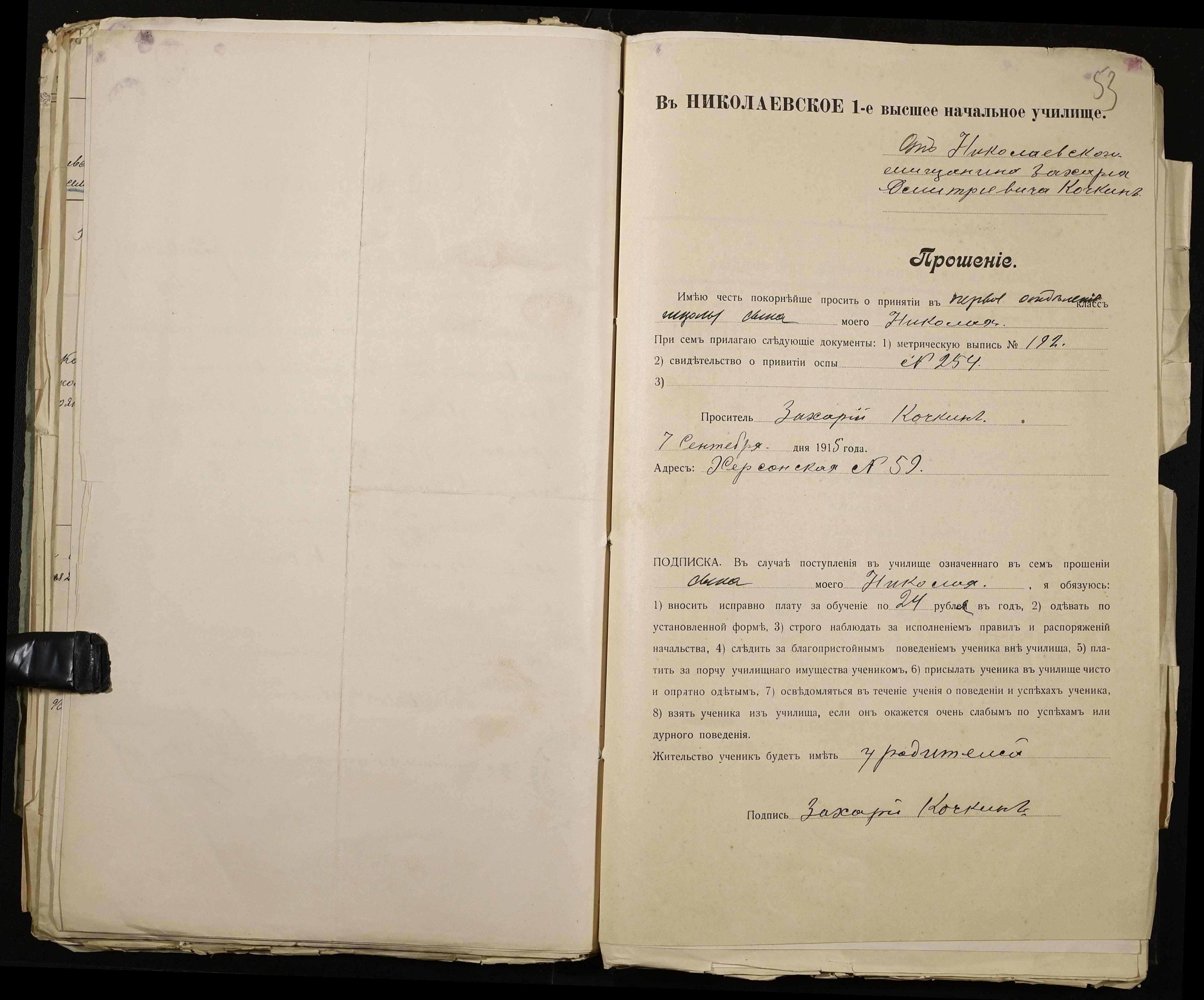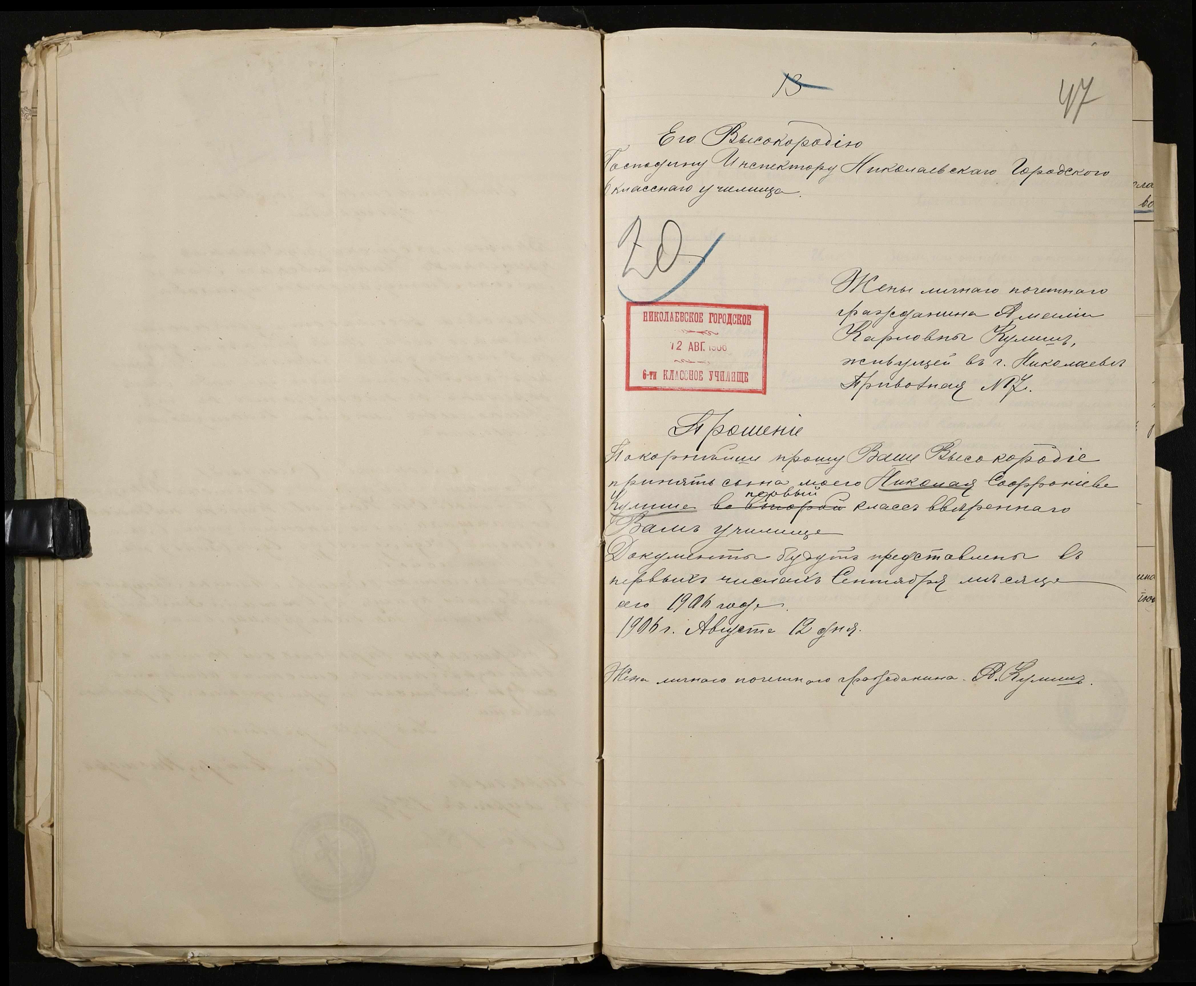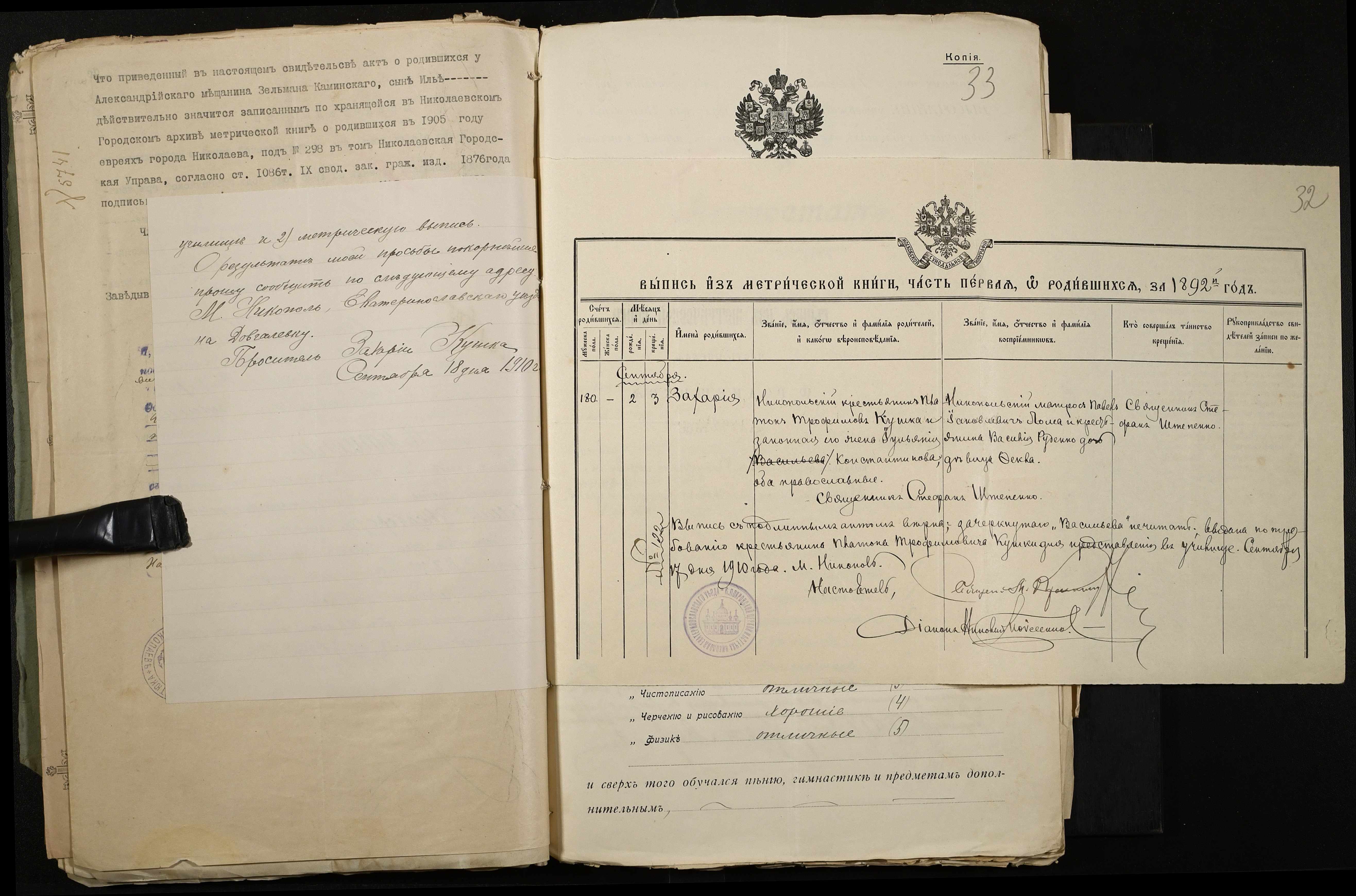 • • • • Справа № 486 “Прохання про прийом в училище, метричні виписки учнів, літера «К»”