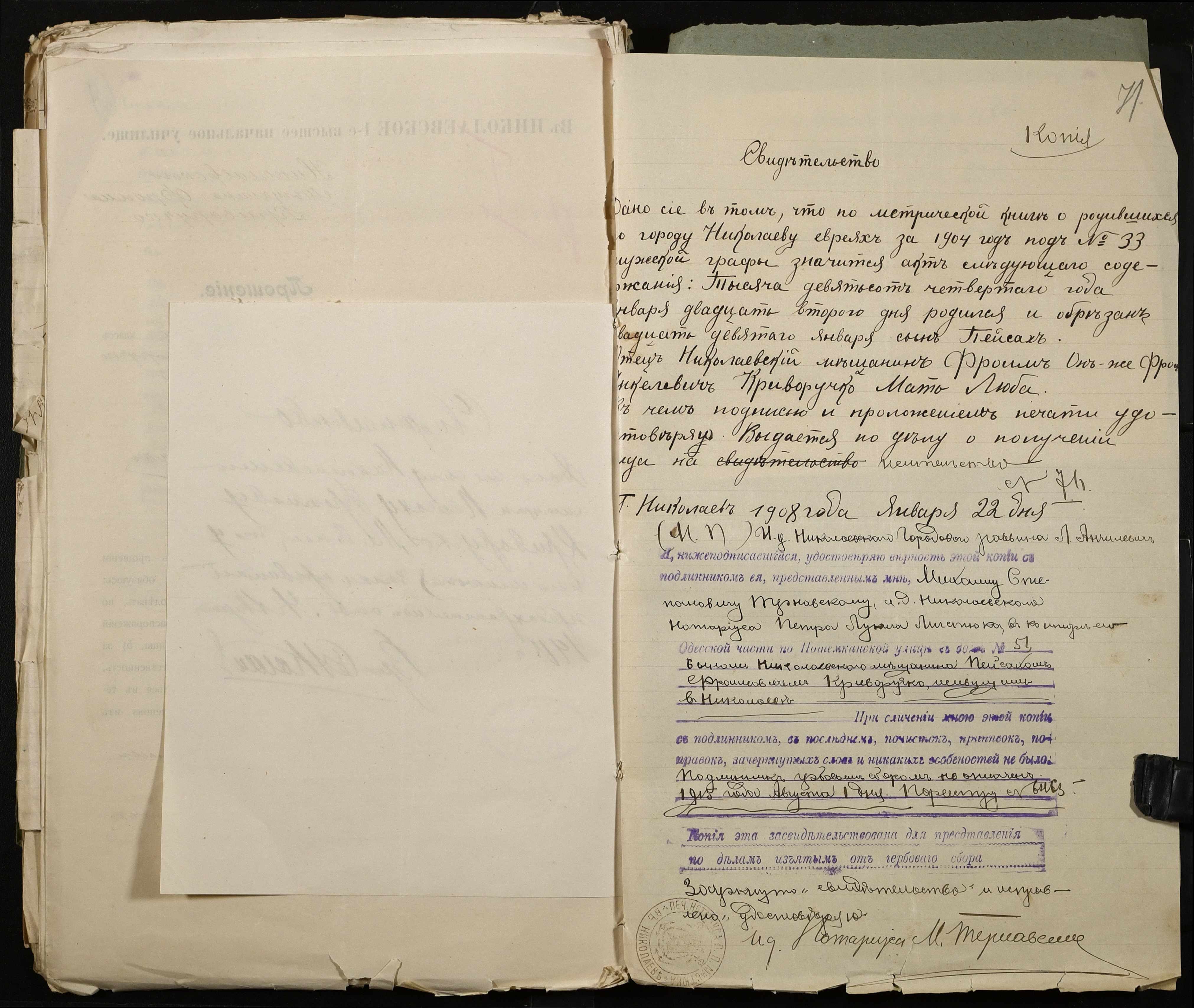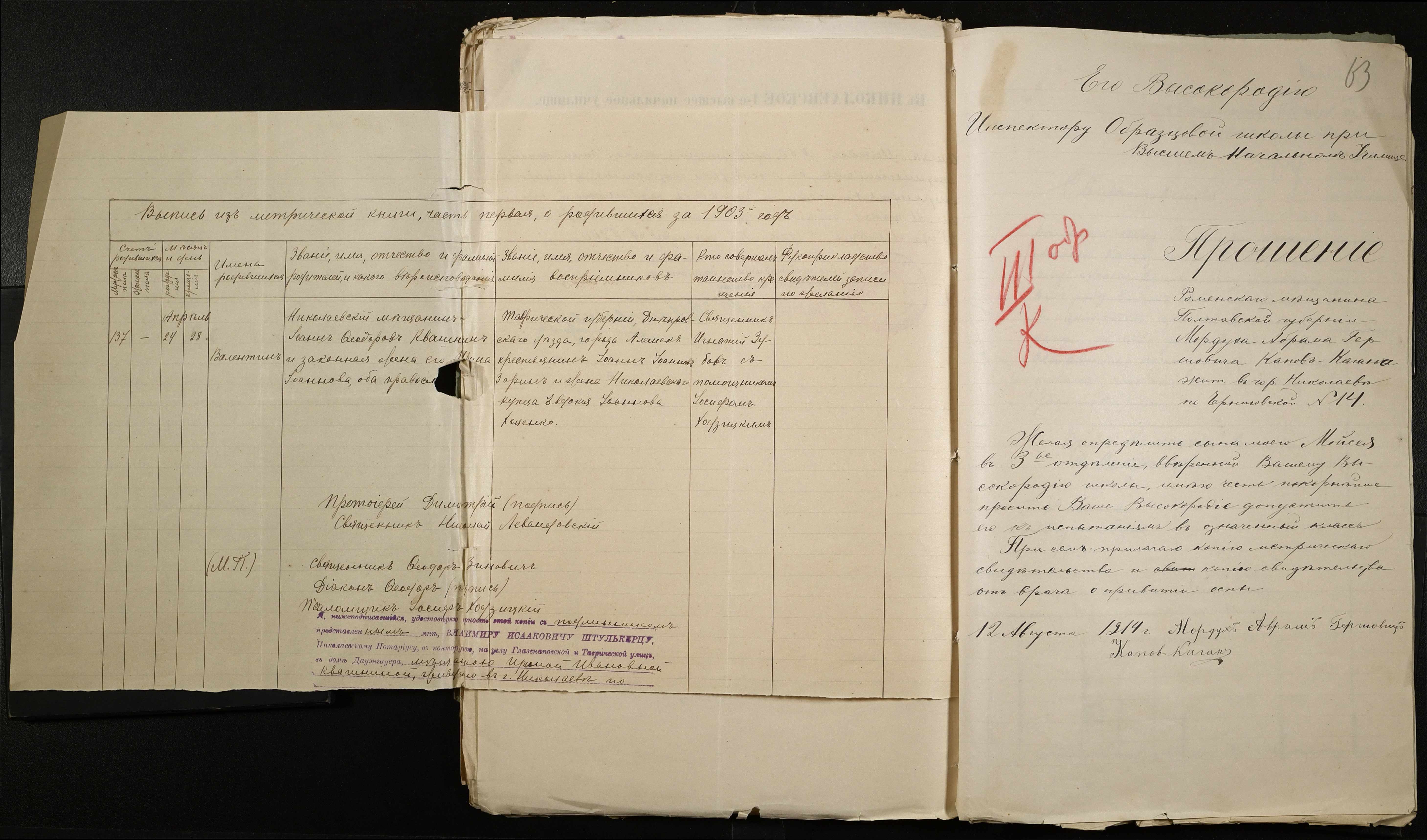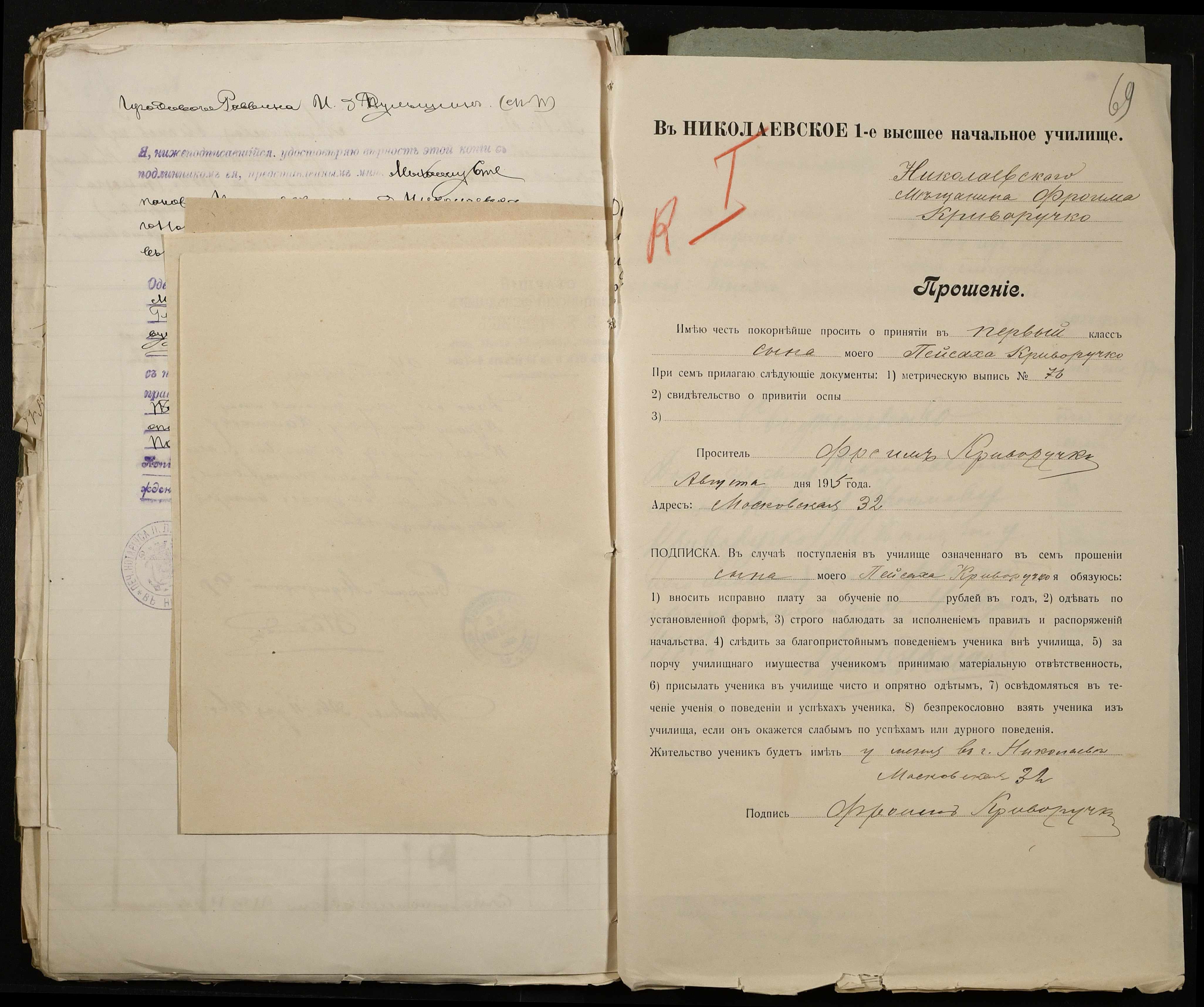 • • • • Справа № 486 “Прохання про прийом в училище, метричні виписки учнів, літера «К»”