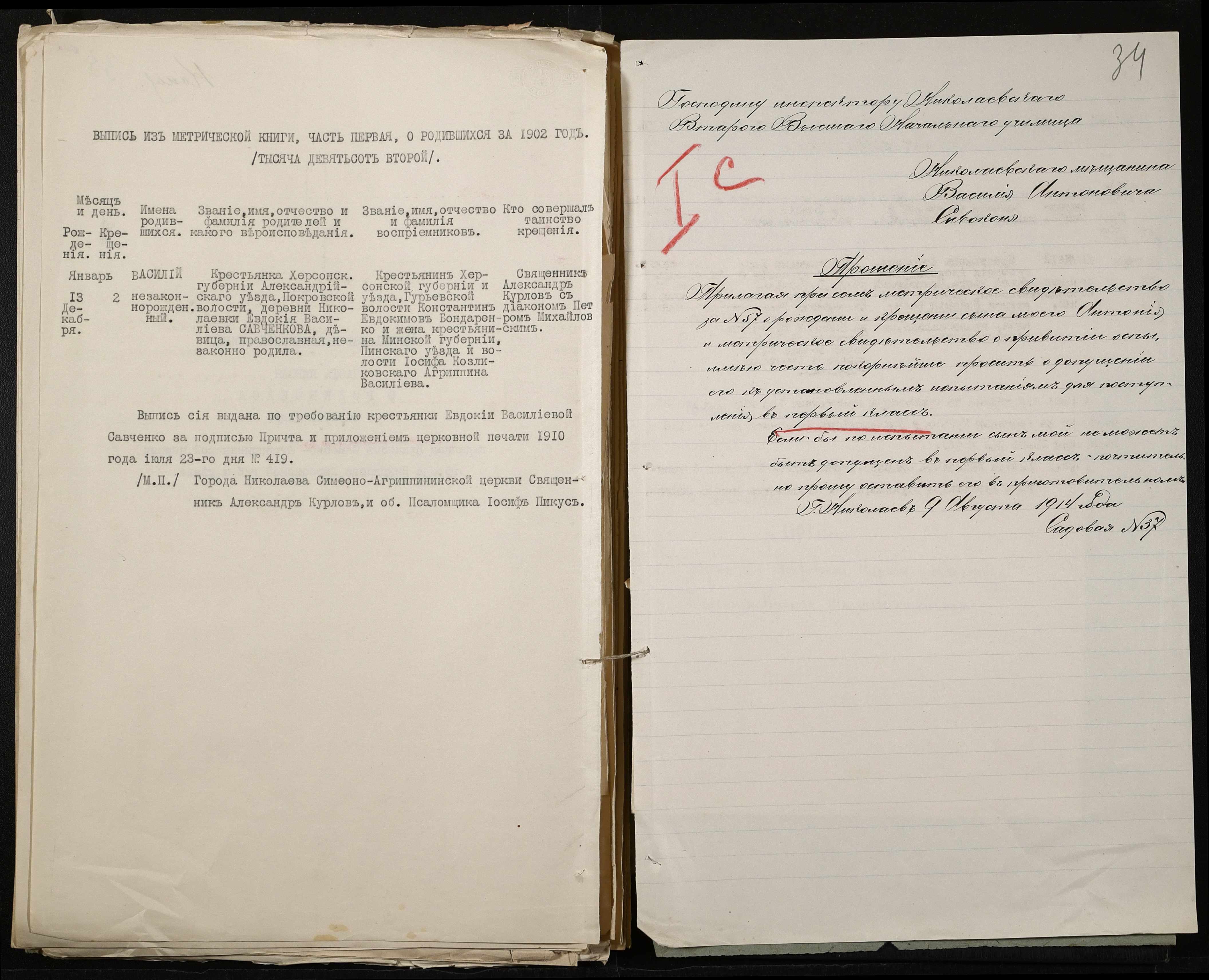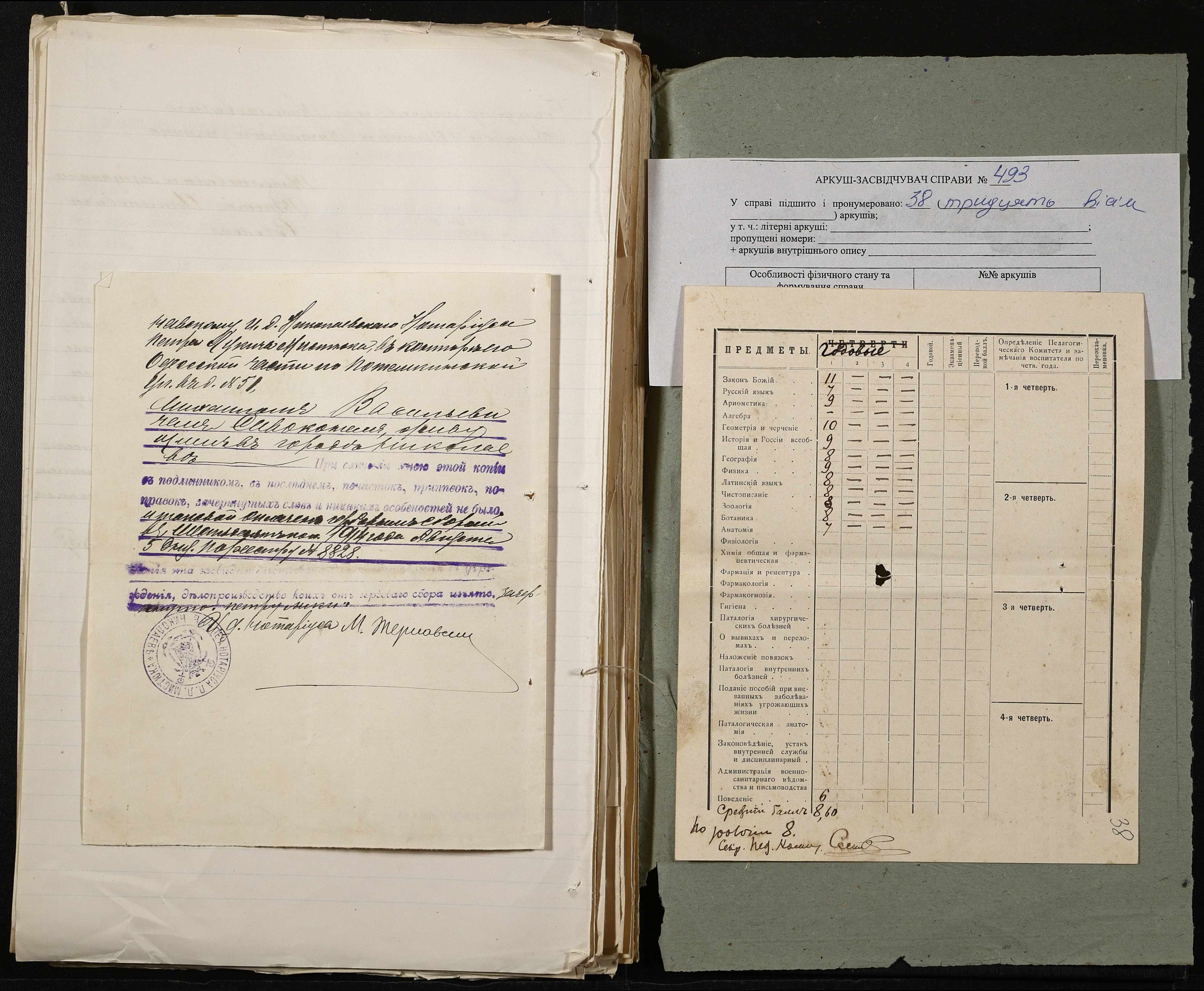 • • • • Справа № 493 “Прохання про прийом в училище, метричні виписки учнів, літера «С»”