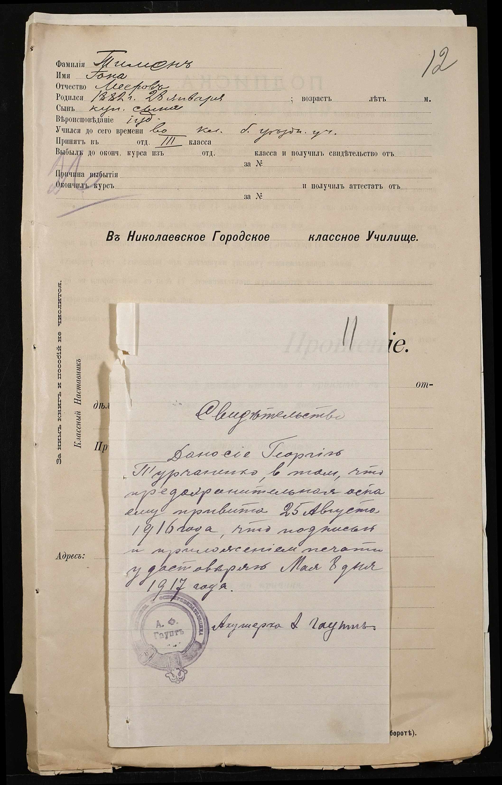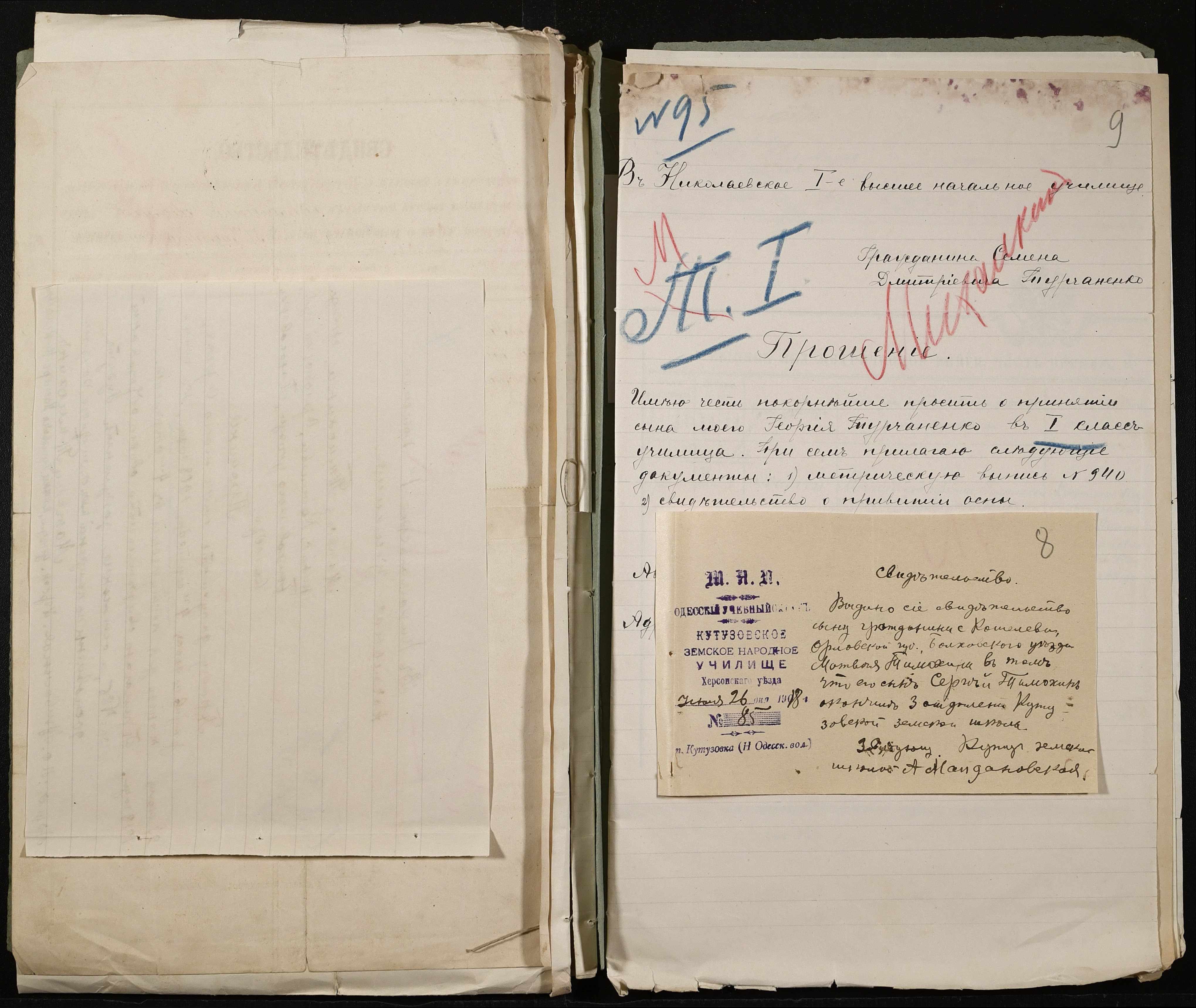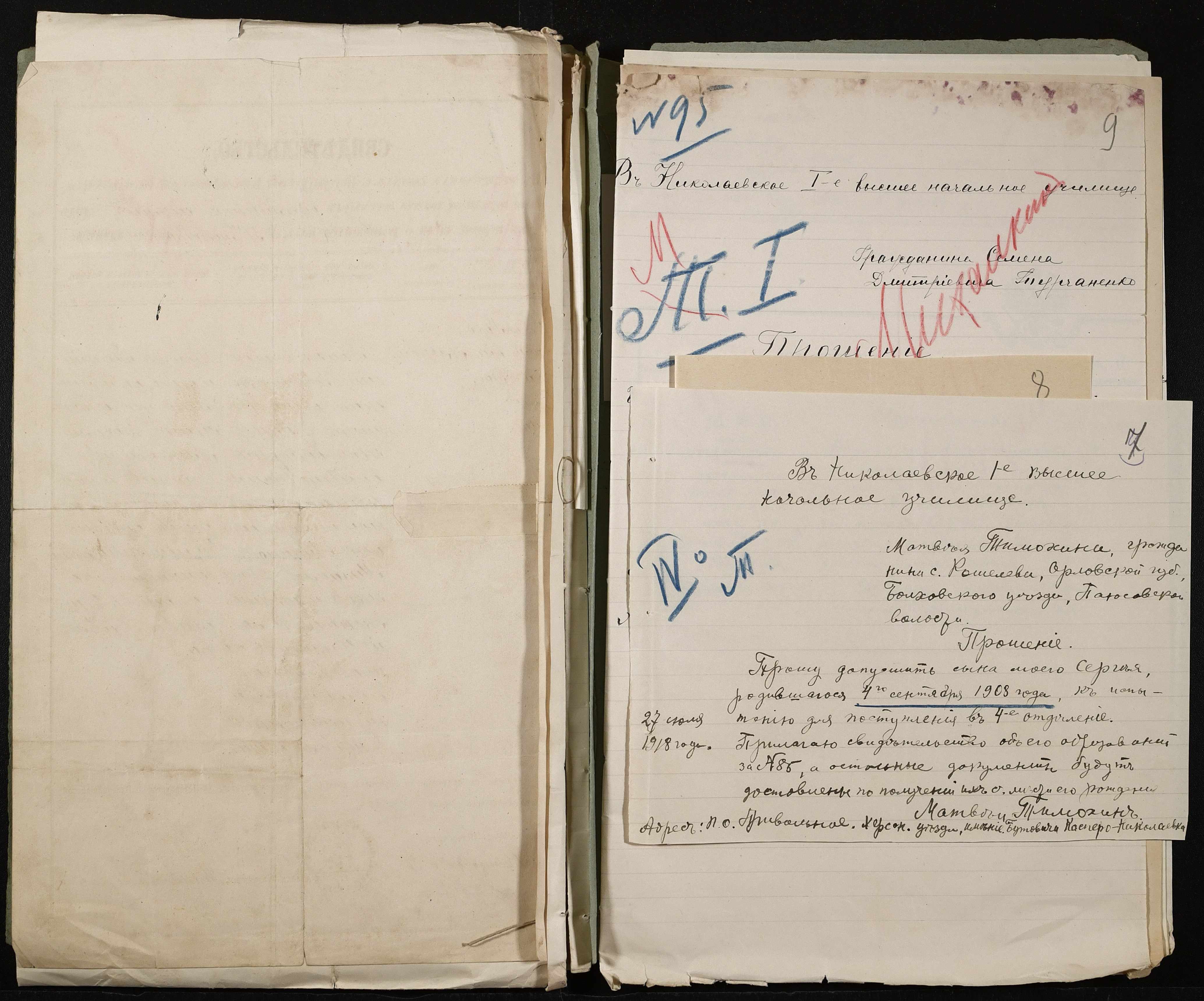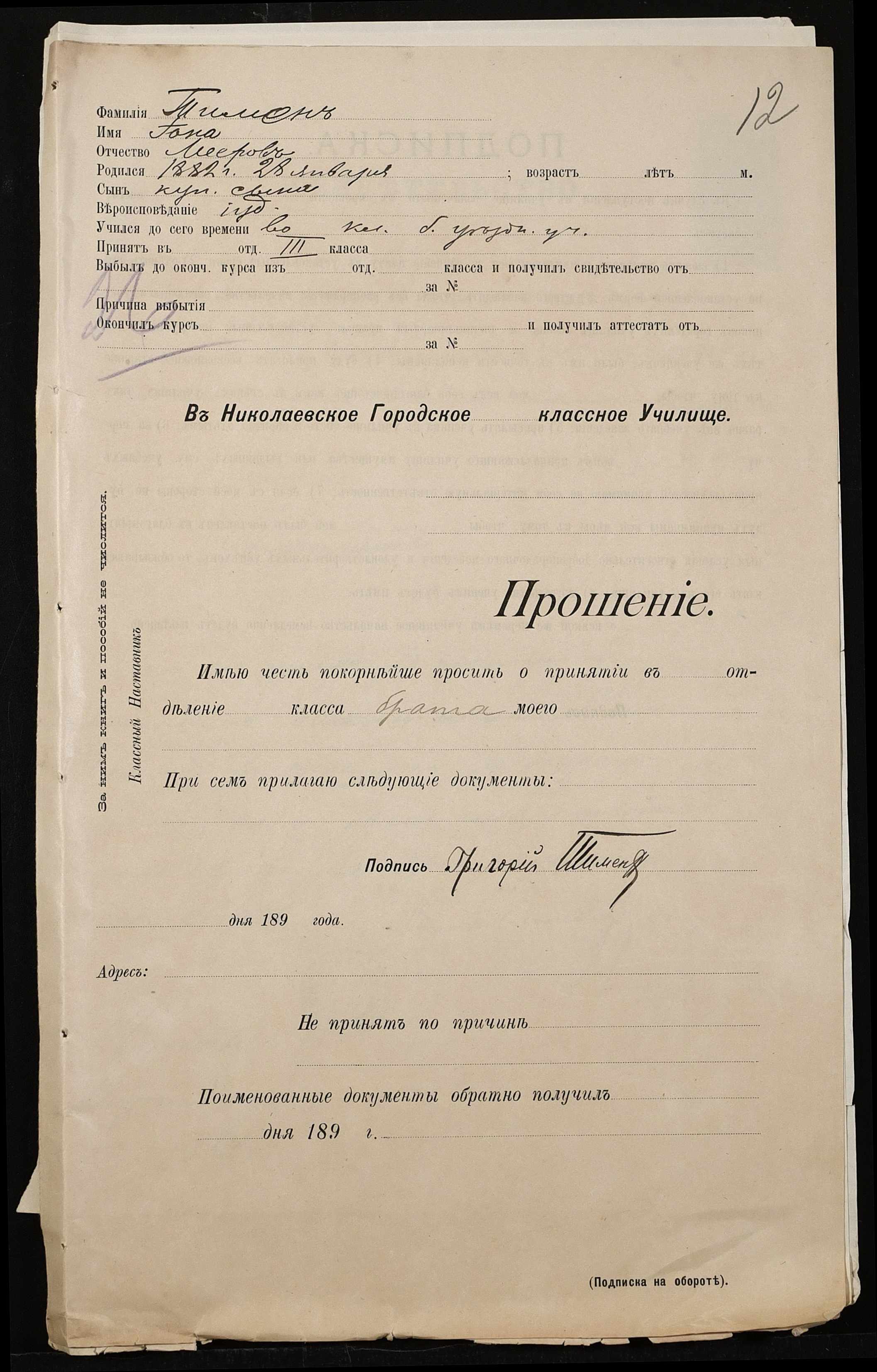 • • • • Справа № 494 “Прохання про прийом в училище, метричні виписки учнів, літера «Т»”