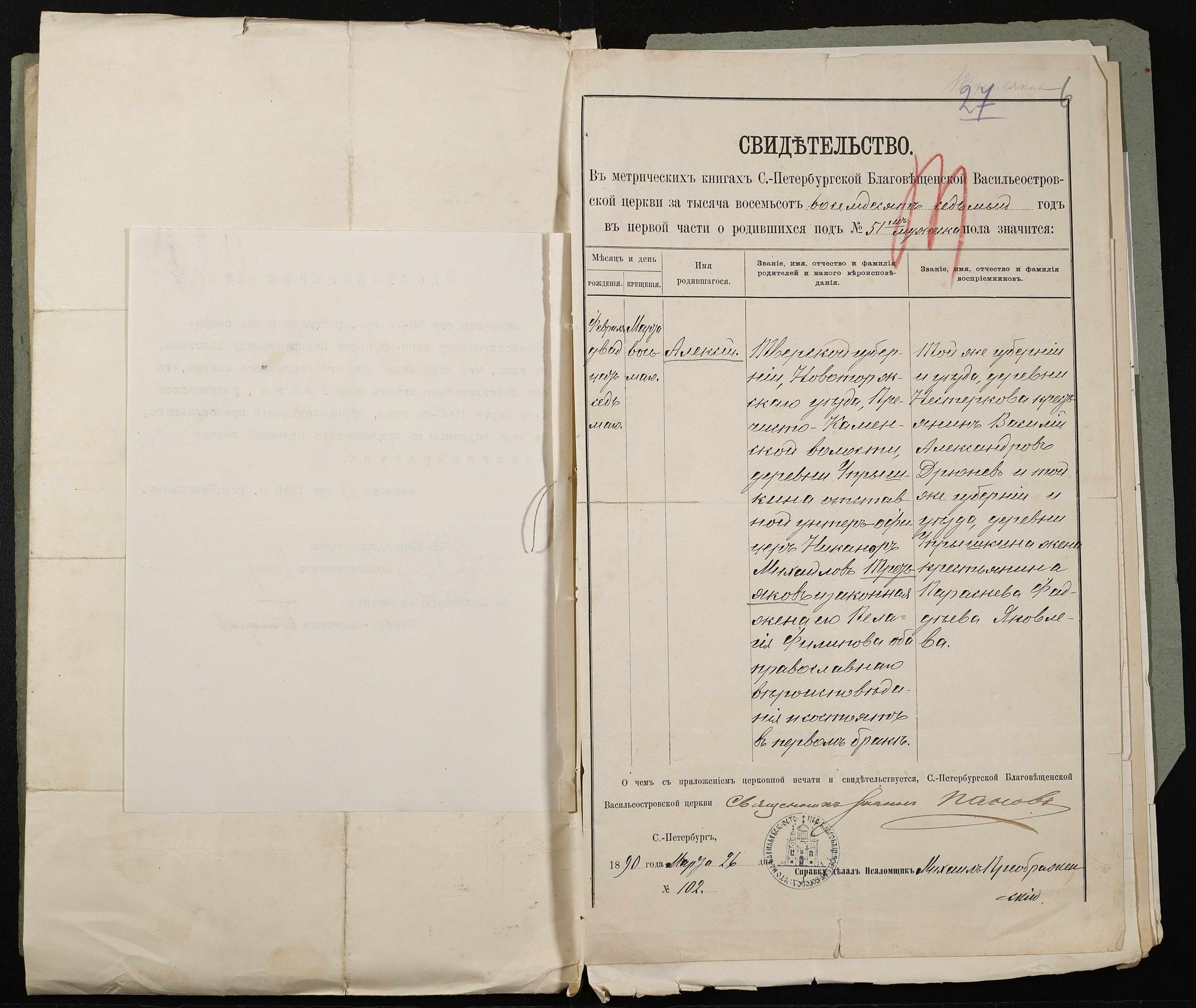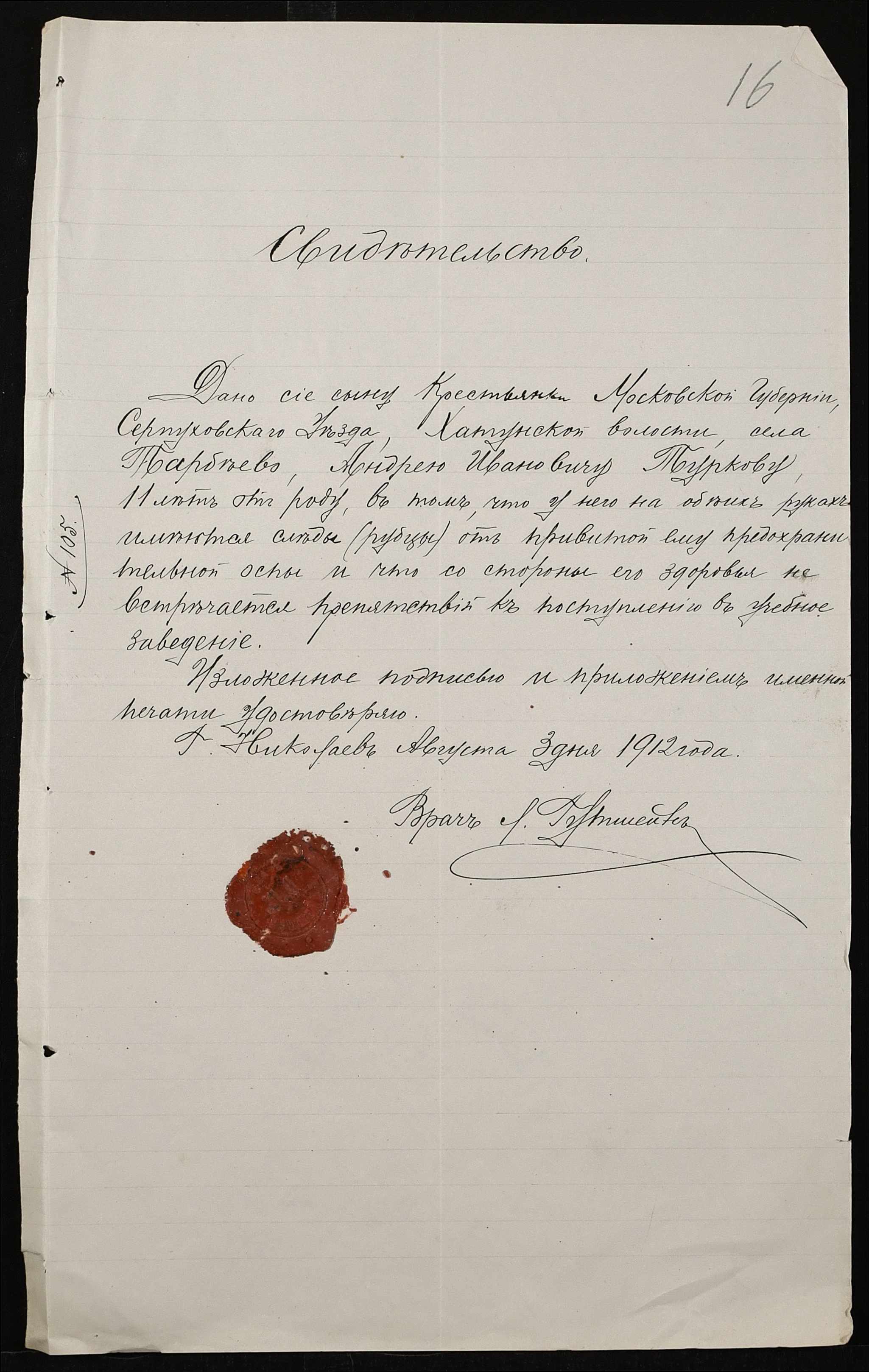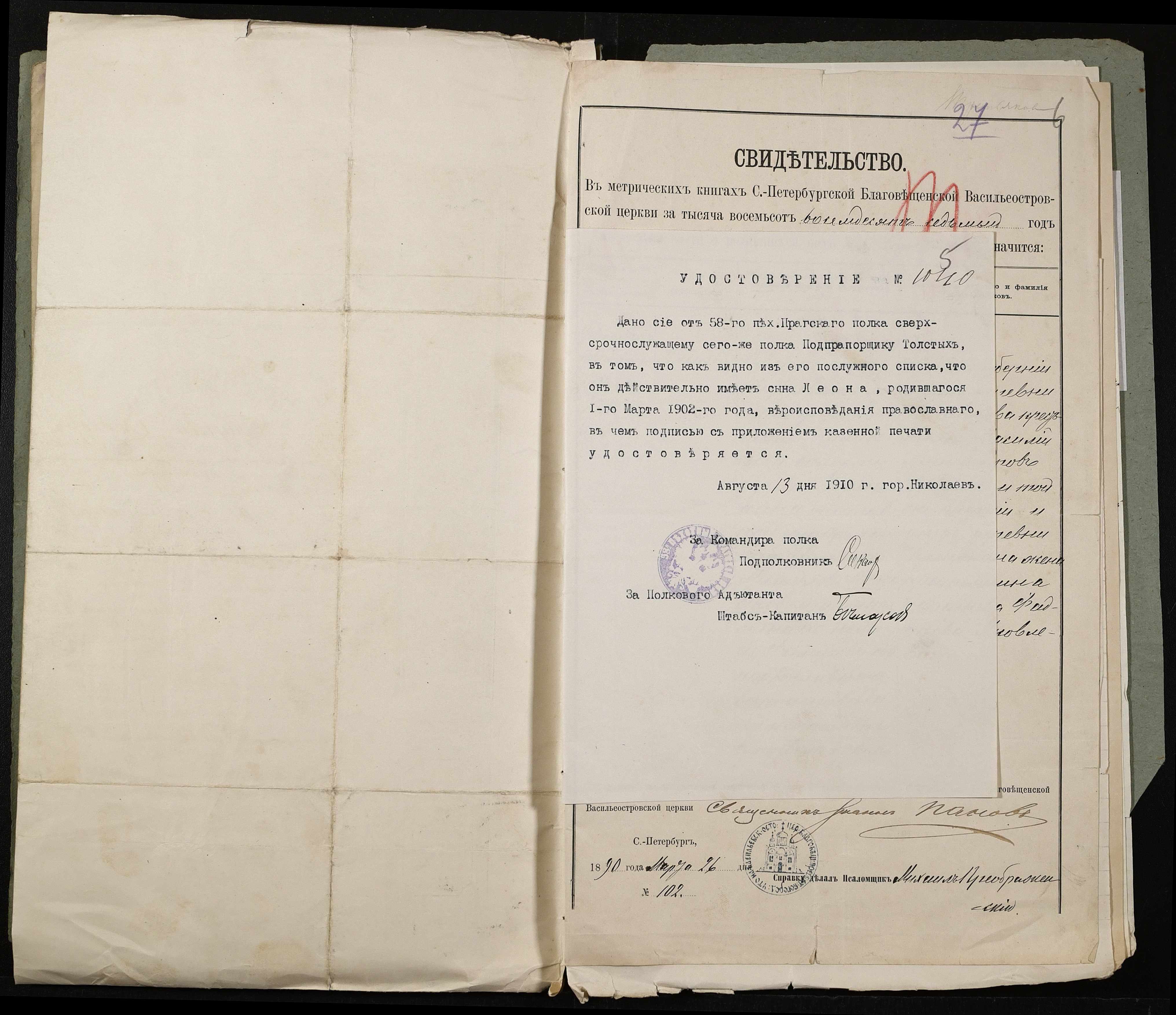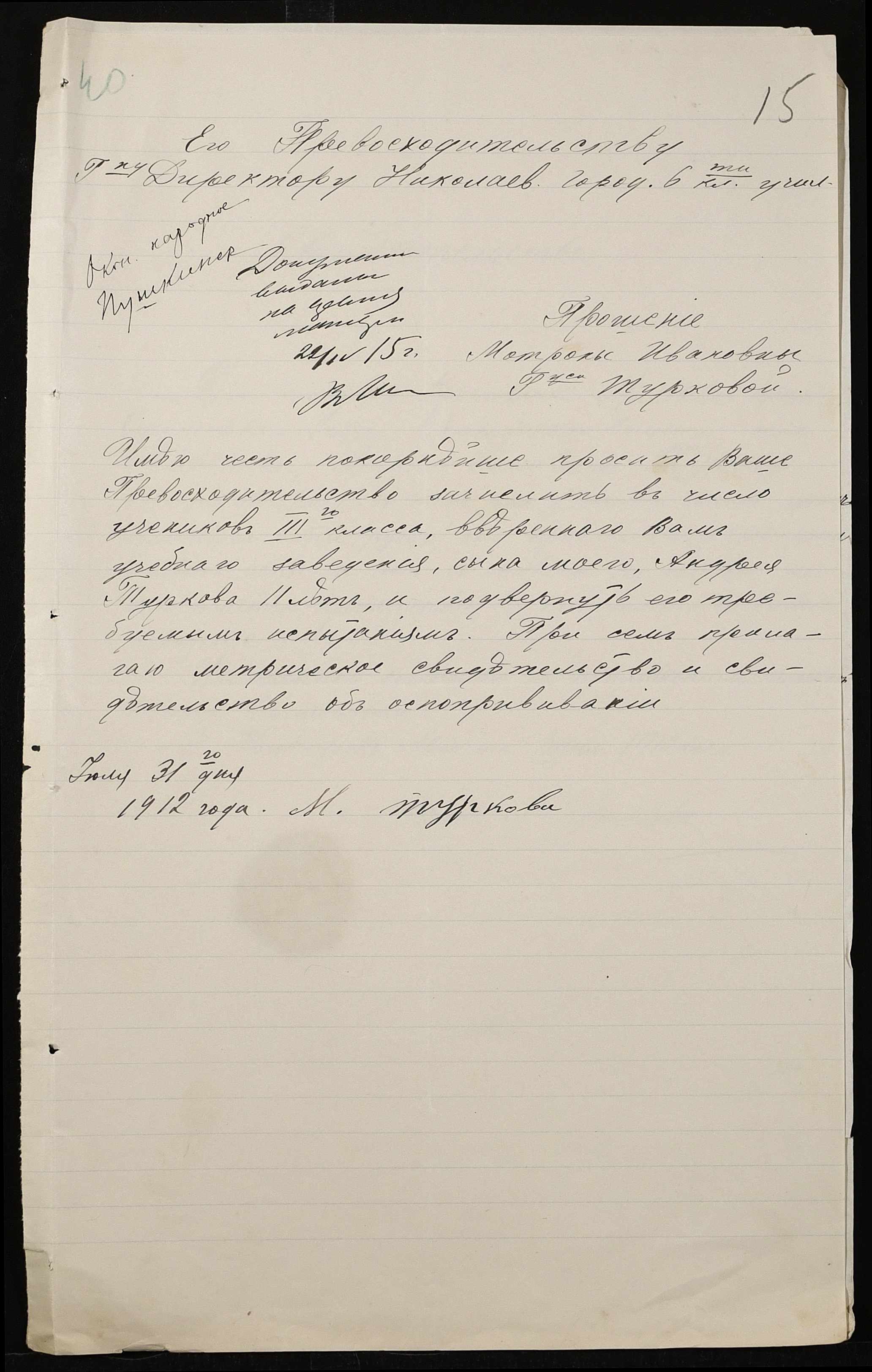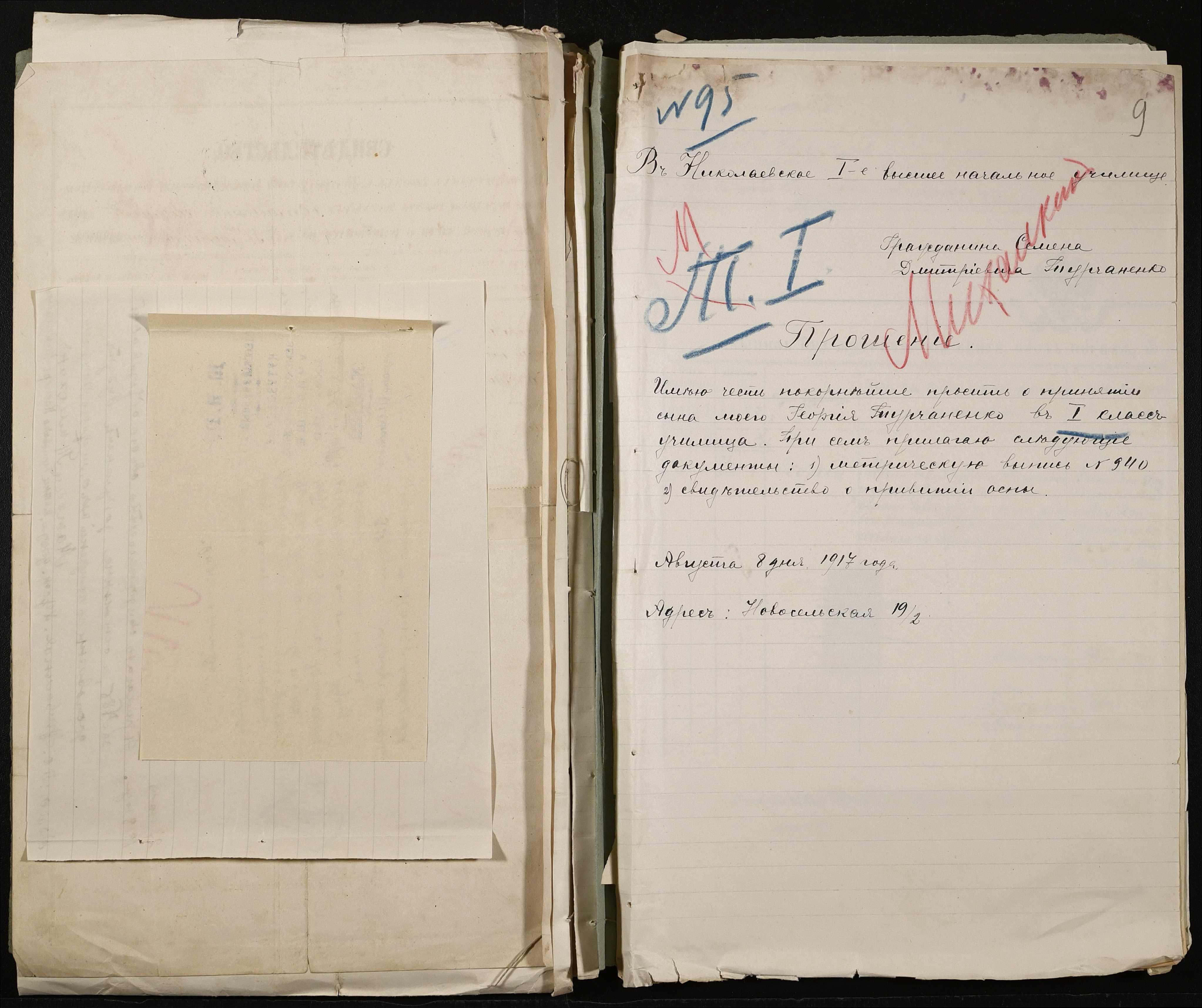 • • • • Справа № 494 “Прохання про прийом в училище, метричні виписки учнів, літера «Т»”