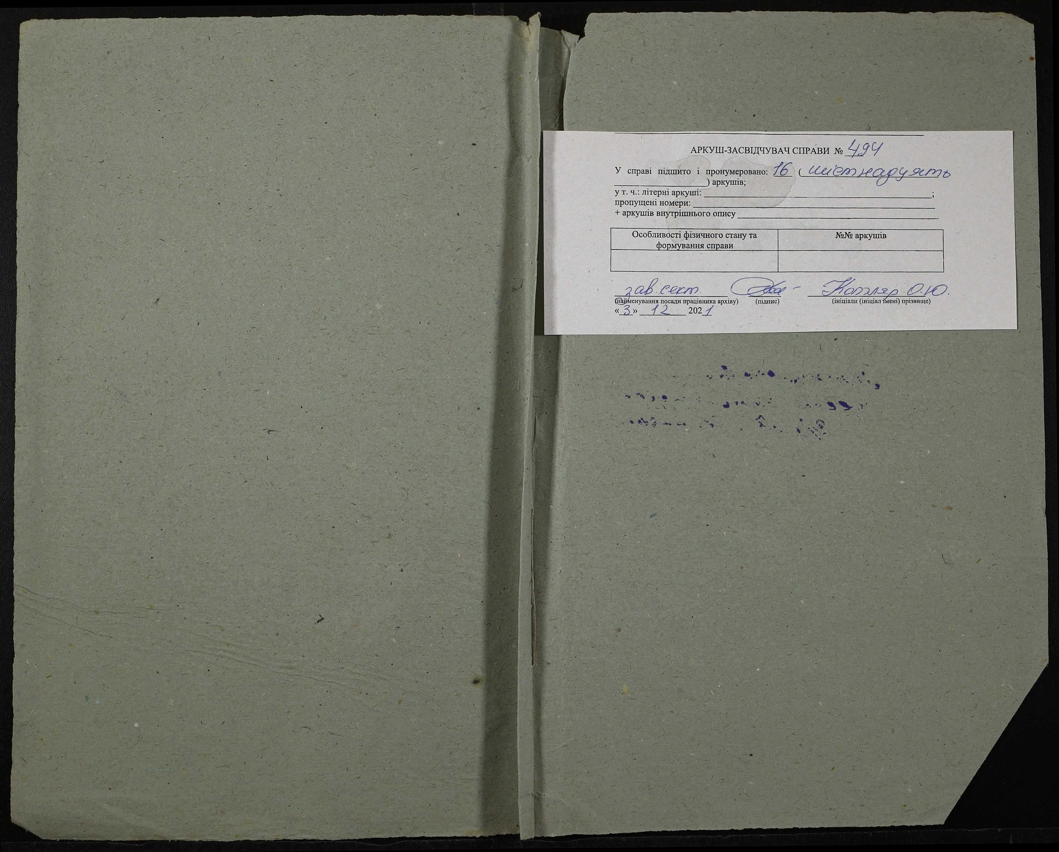 Фонд 131 / Опис 1 / Справа 494