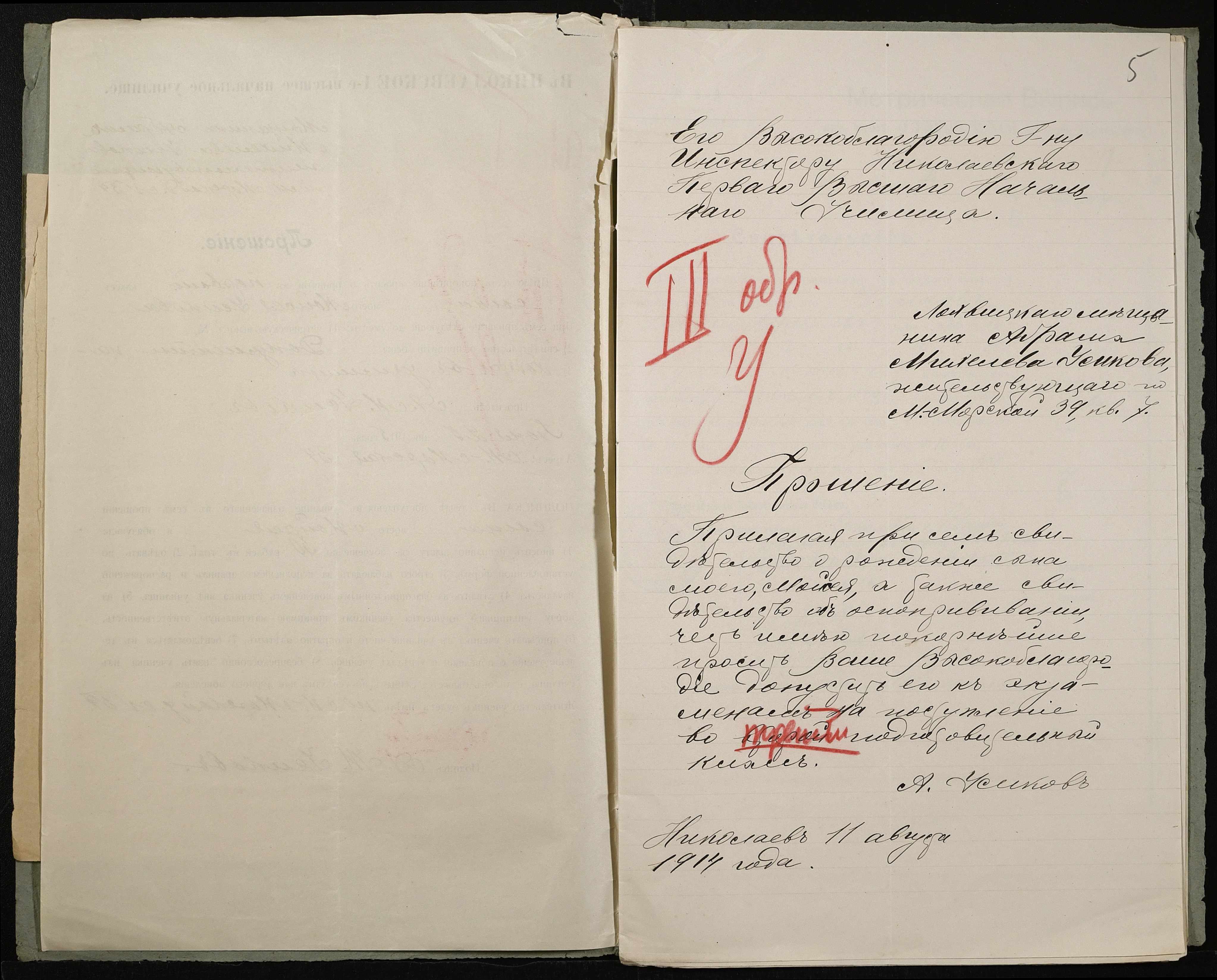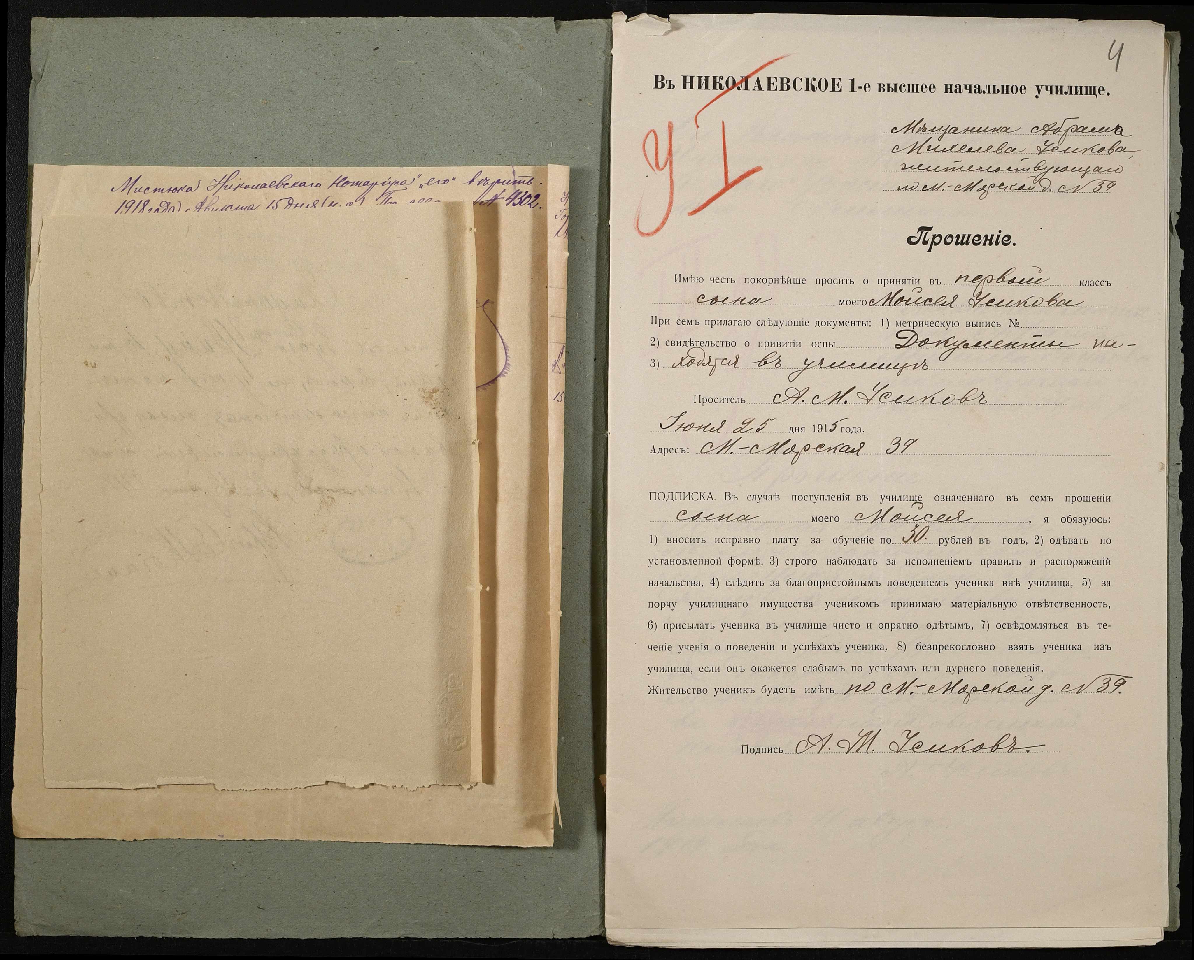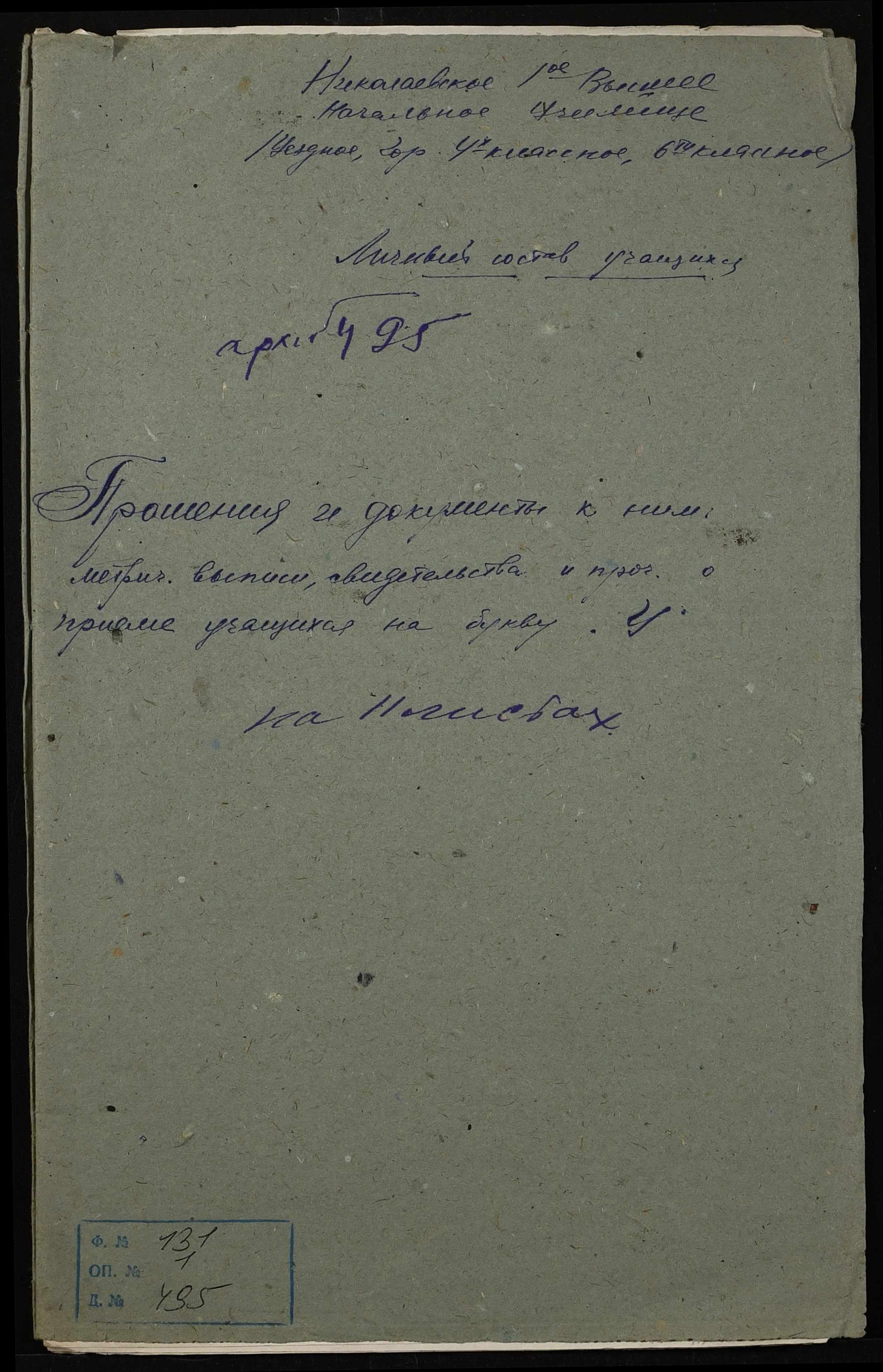 • • • • Справа № 495 “Прохання про прийом в училище, метричні виписки учнів, літера «У»”