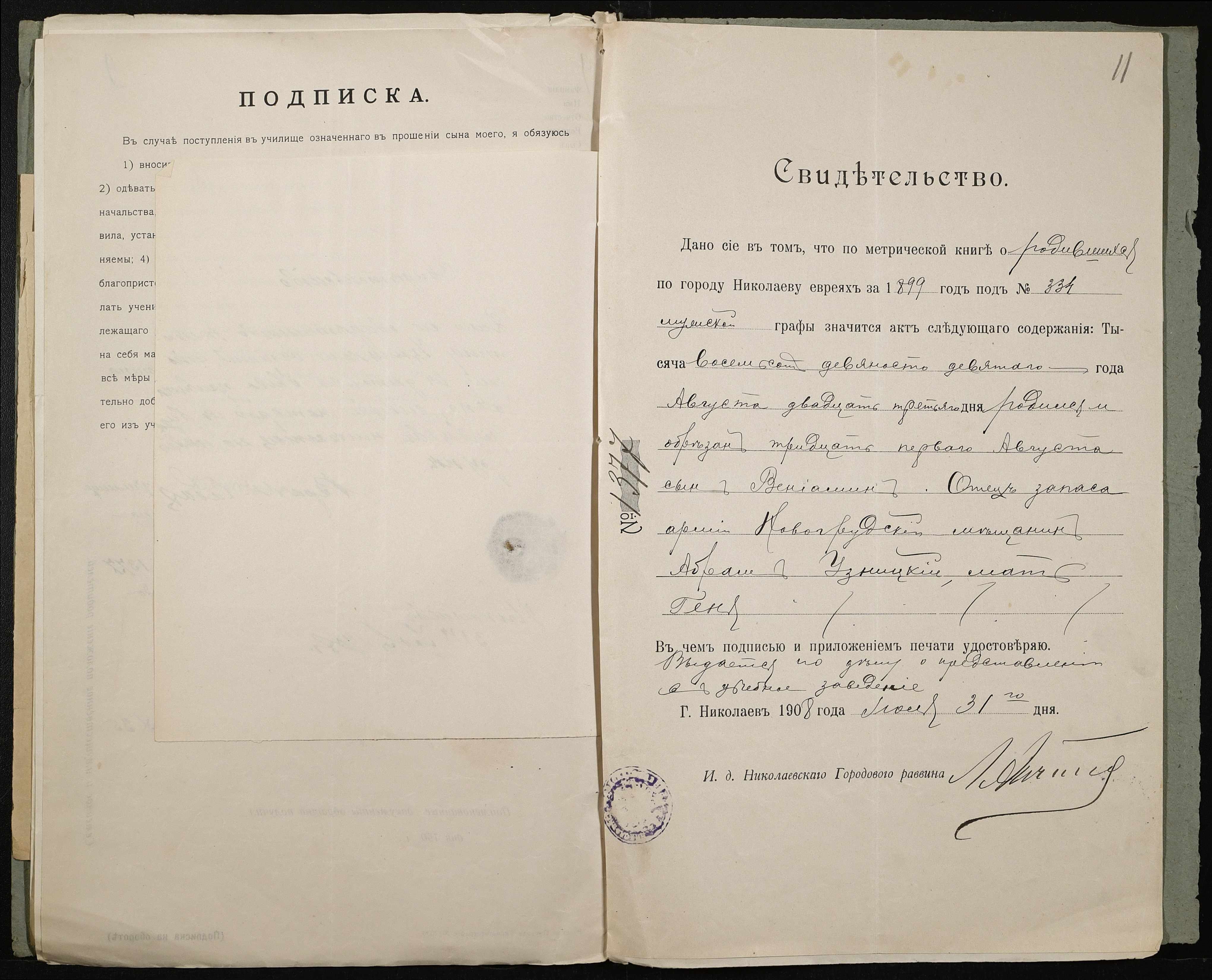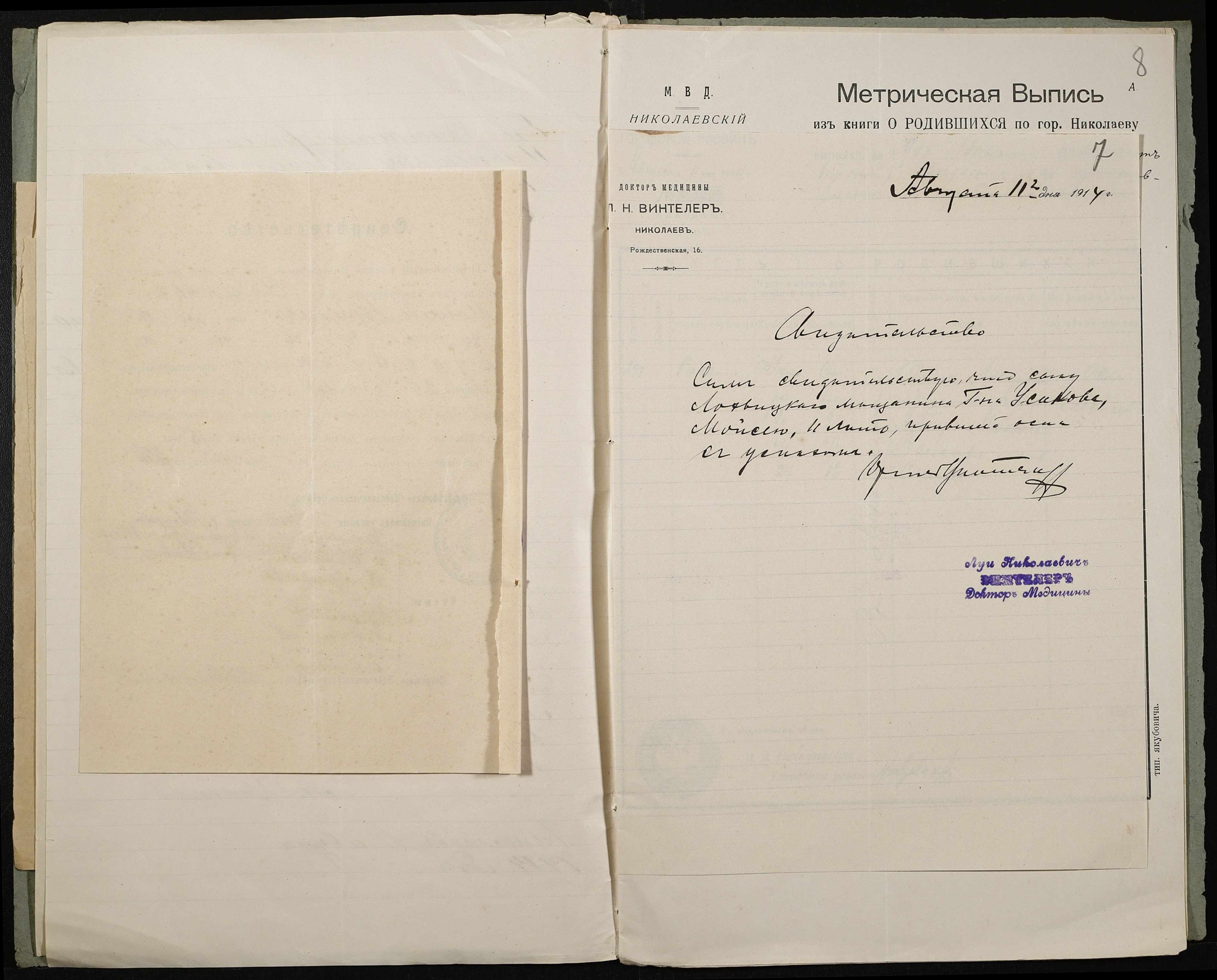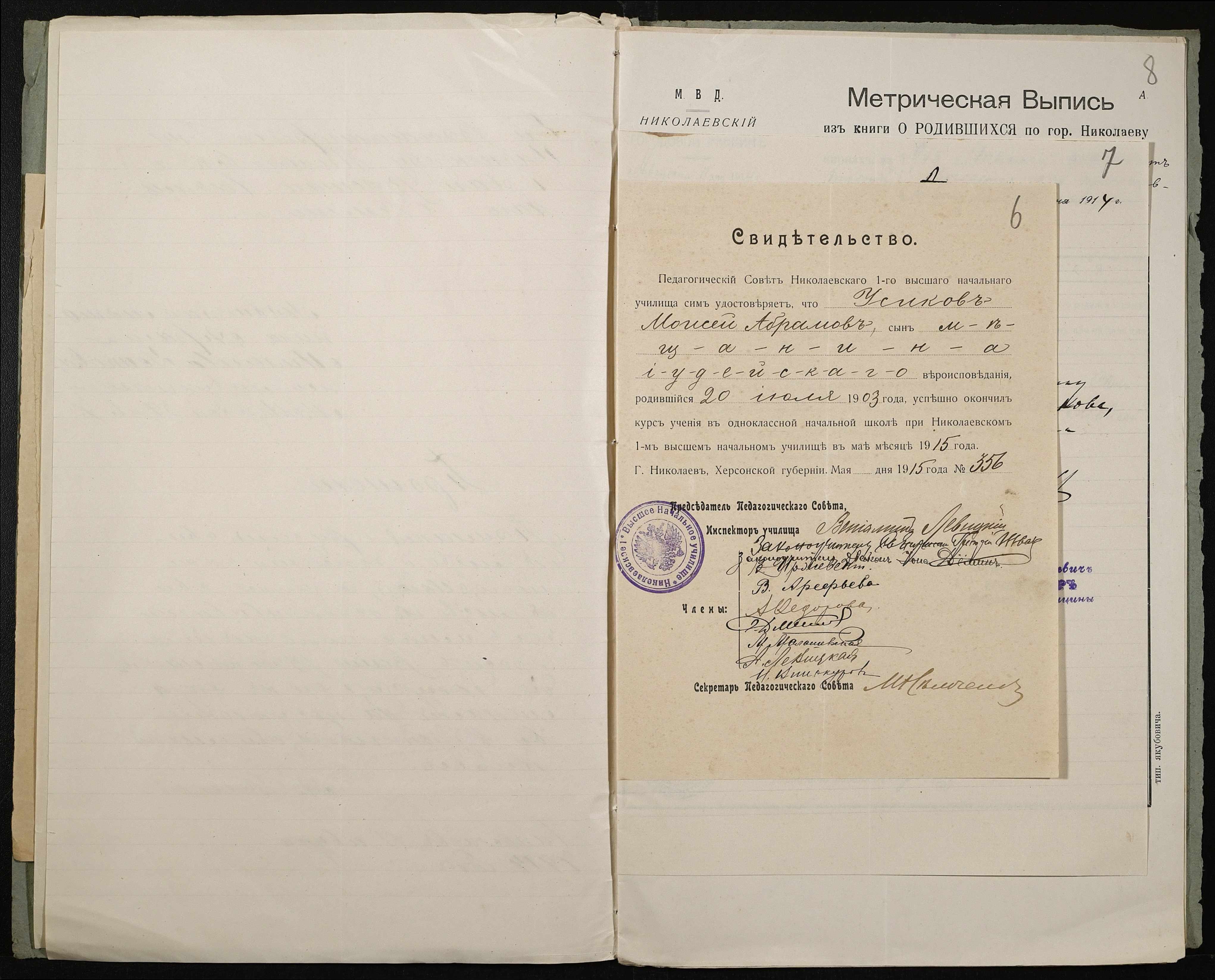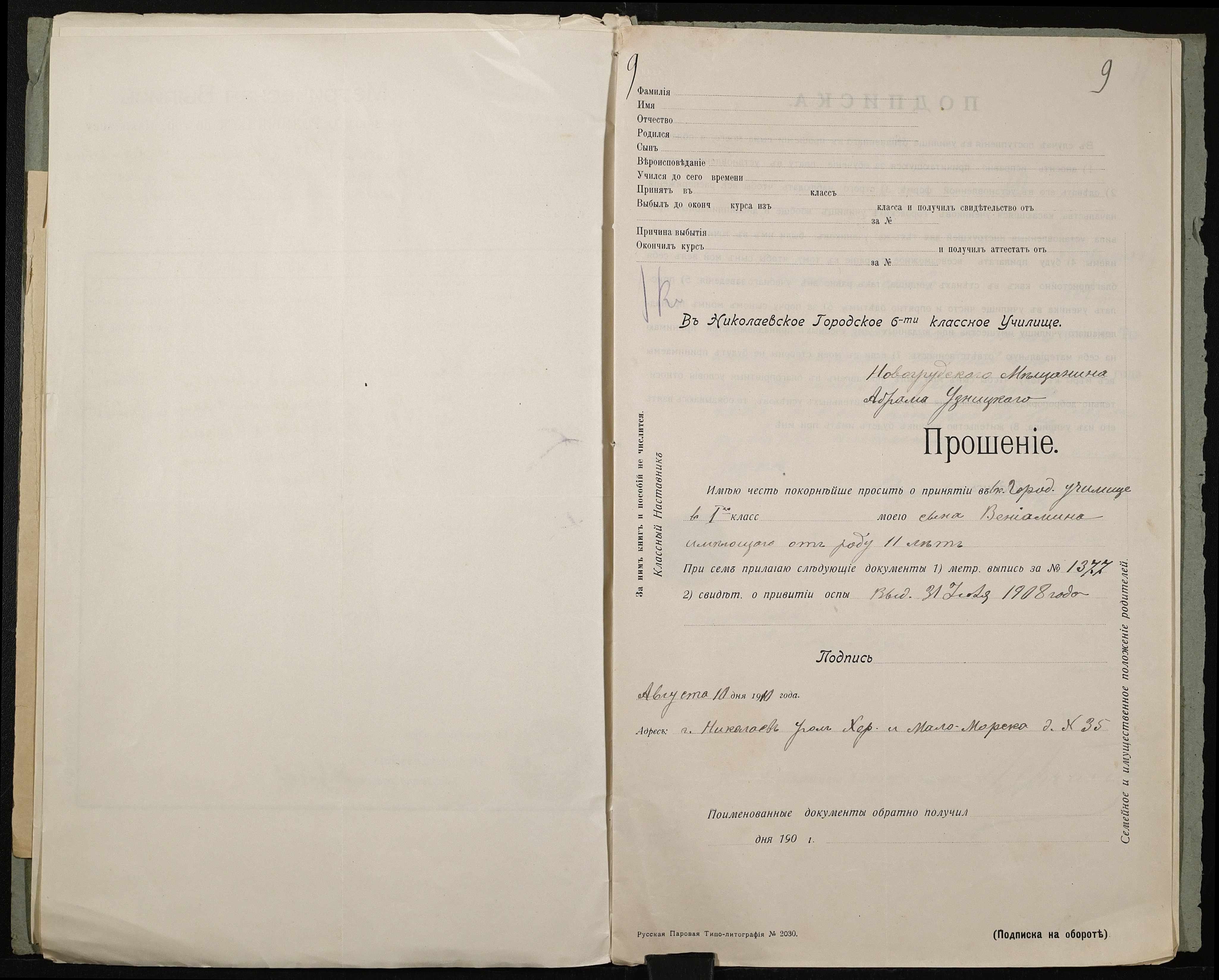 • • • • Справа № 495 “Прохання про прийом в училище, метричні виписки учнів, літера «У»”