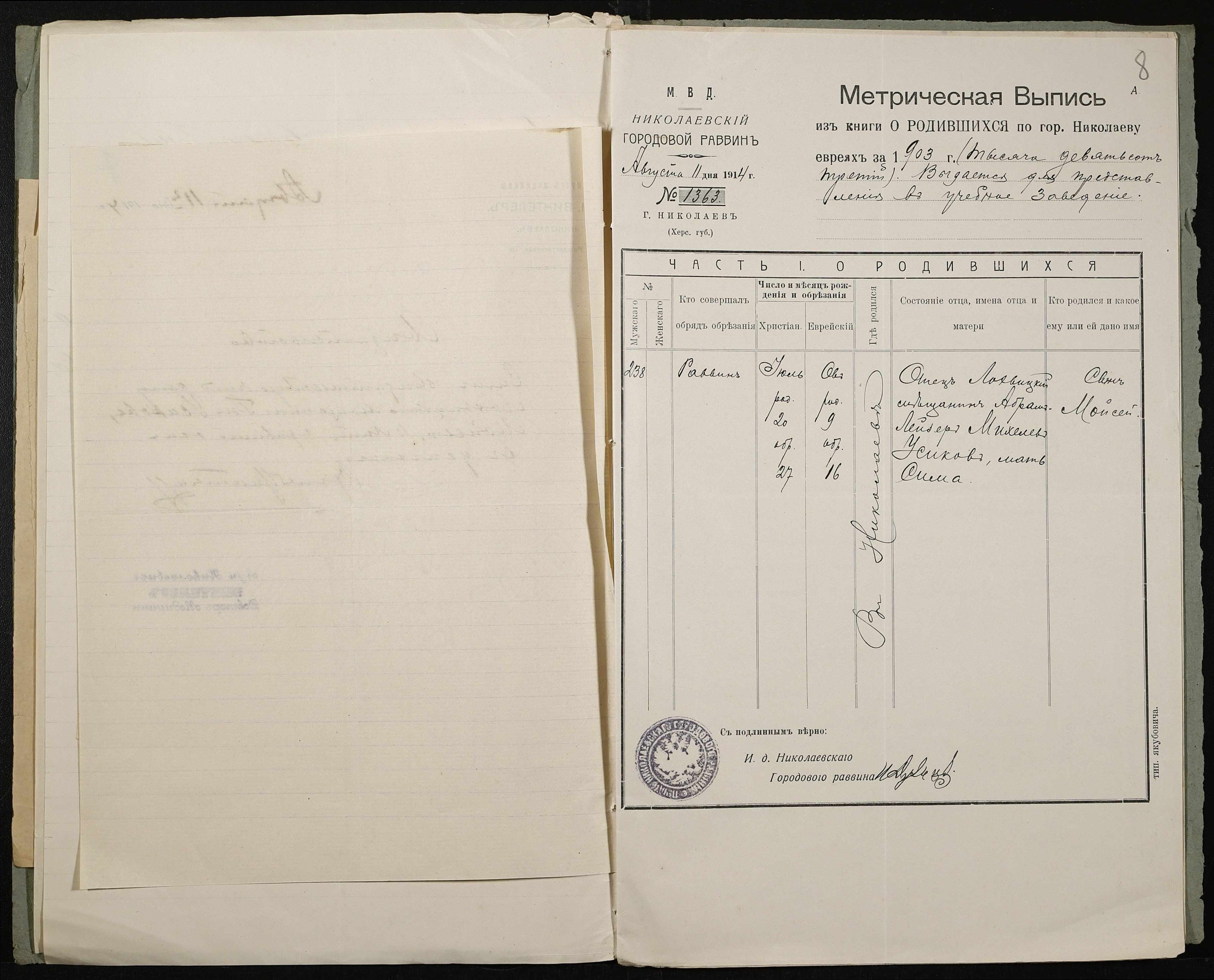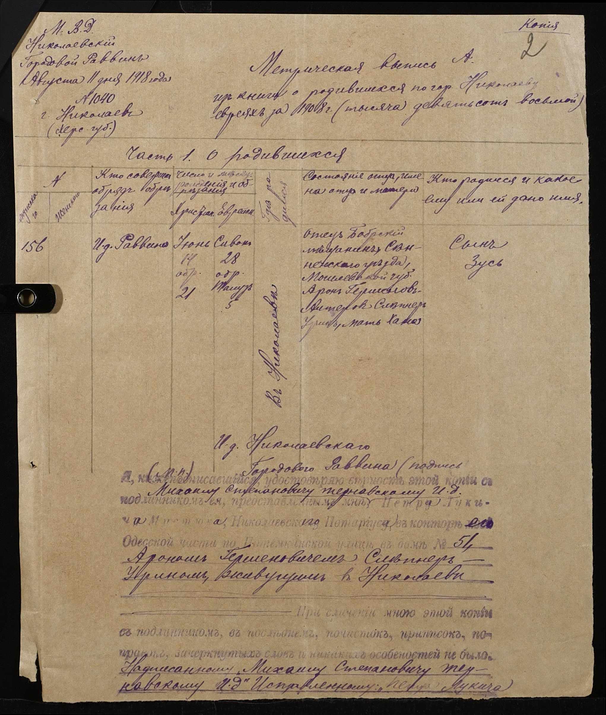 ◦ ◦ Фонд № 131 “Миколаївське перше вище початкове училище”