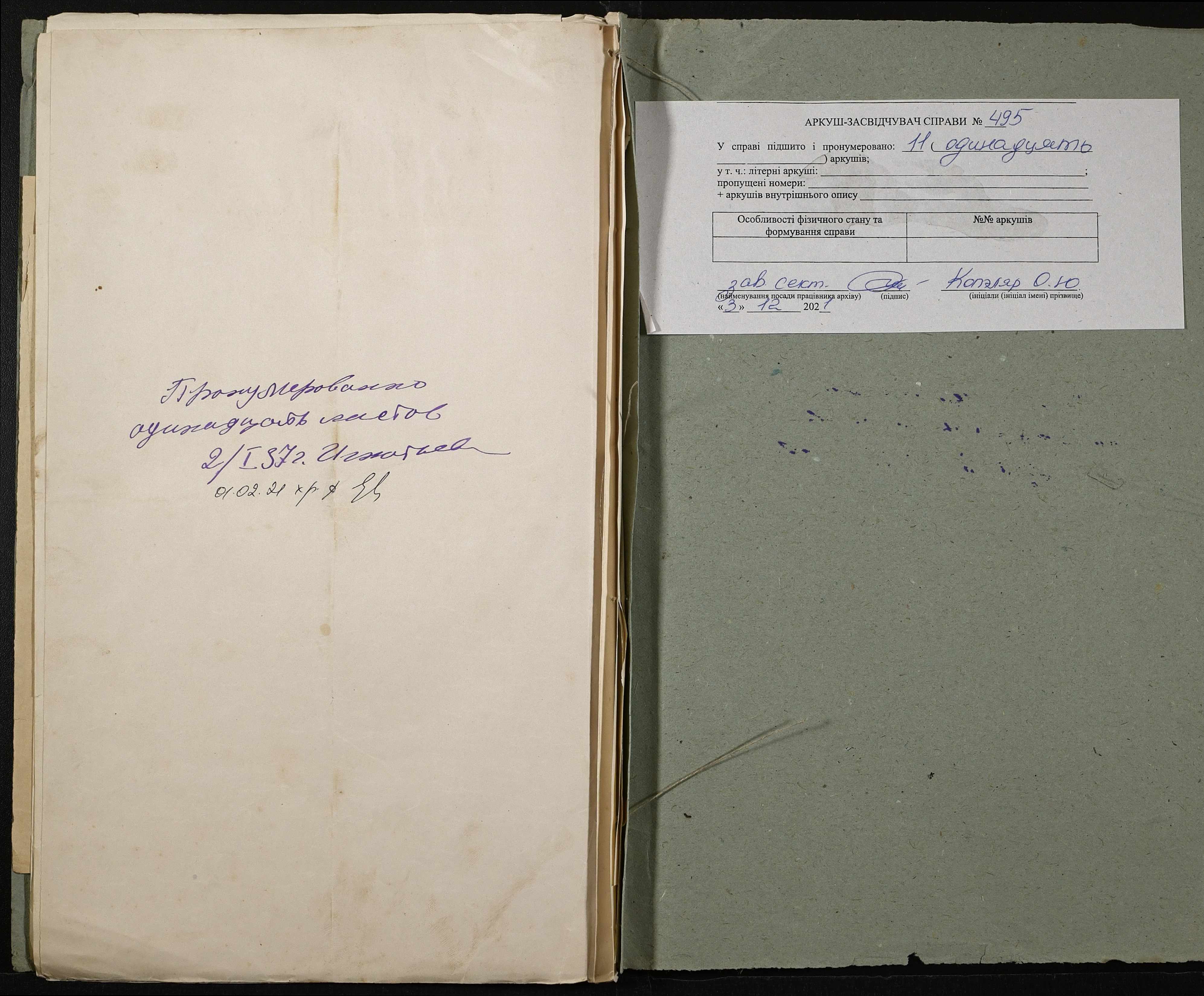 Фонд 131 / Опис 1 / Справа 495