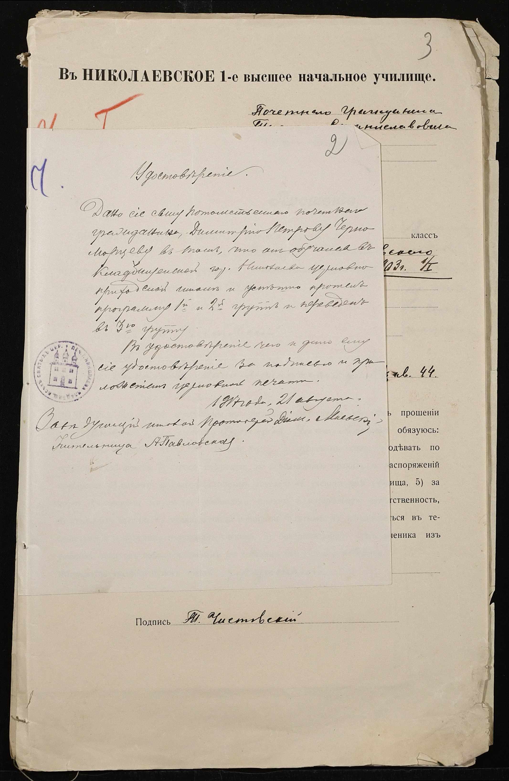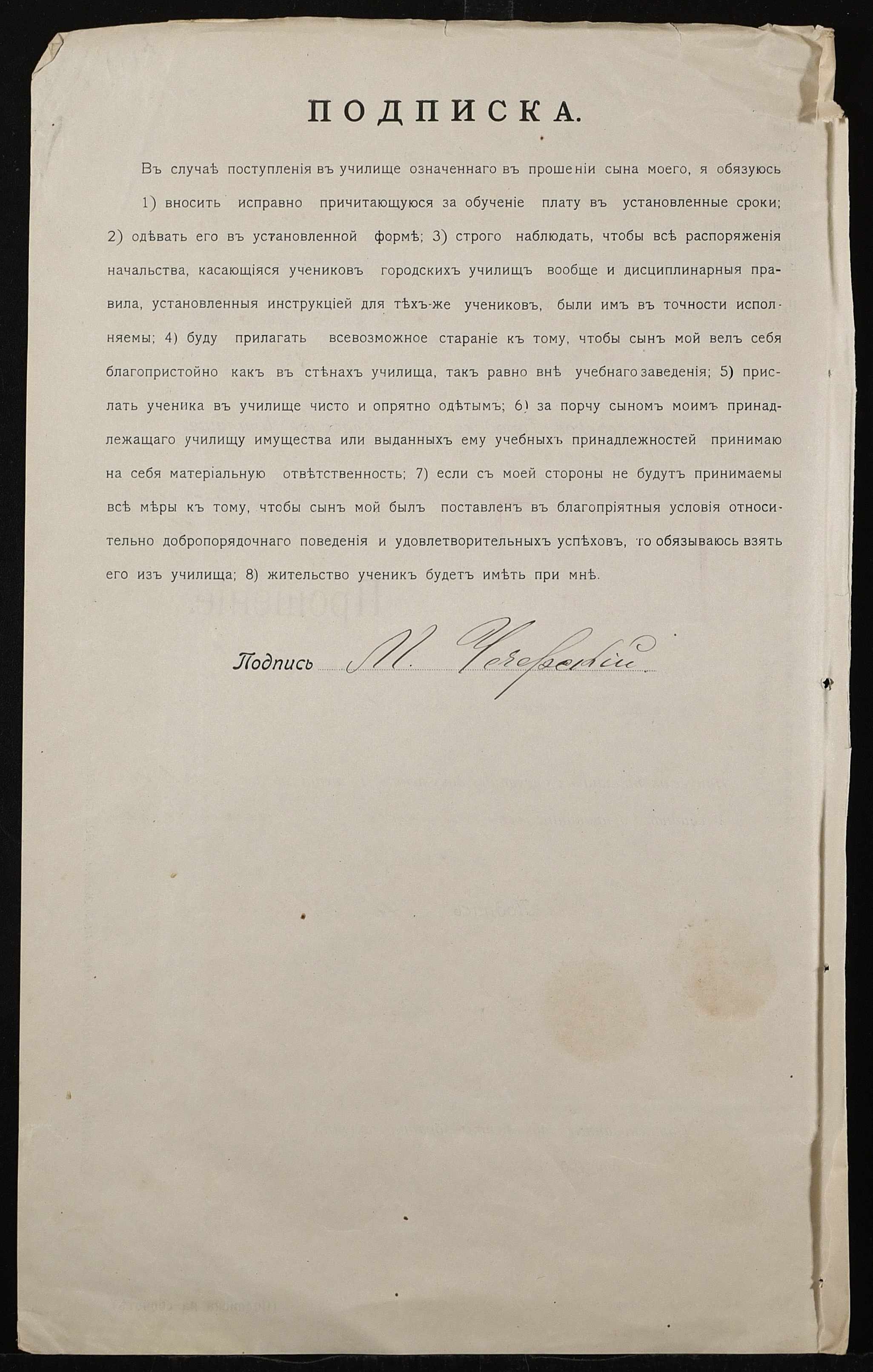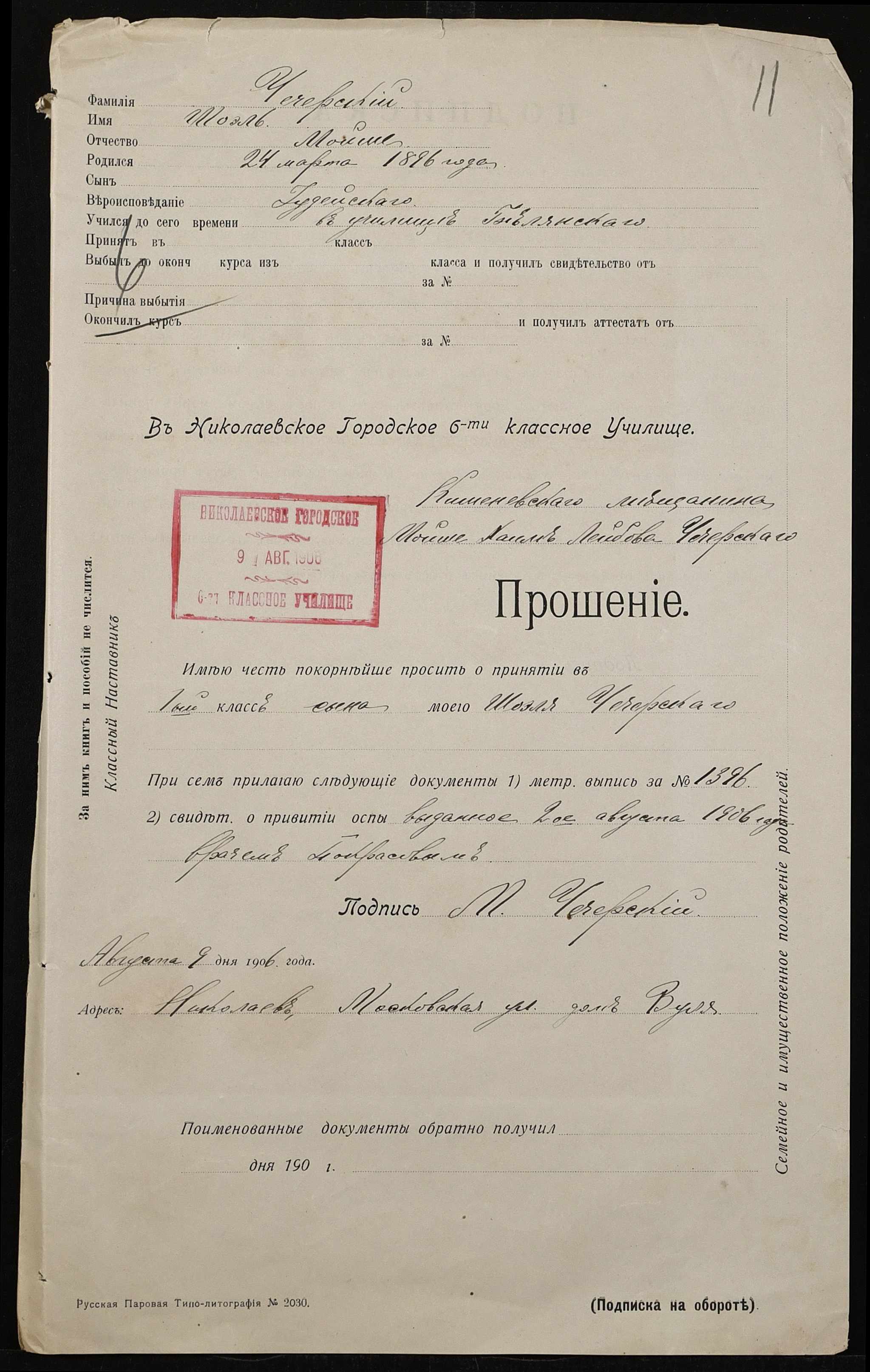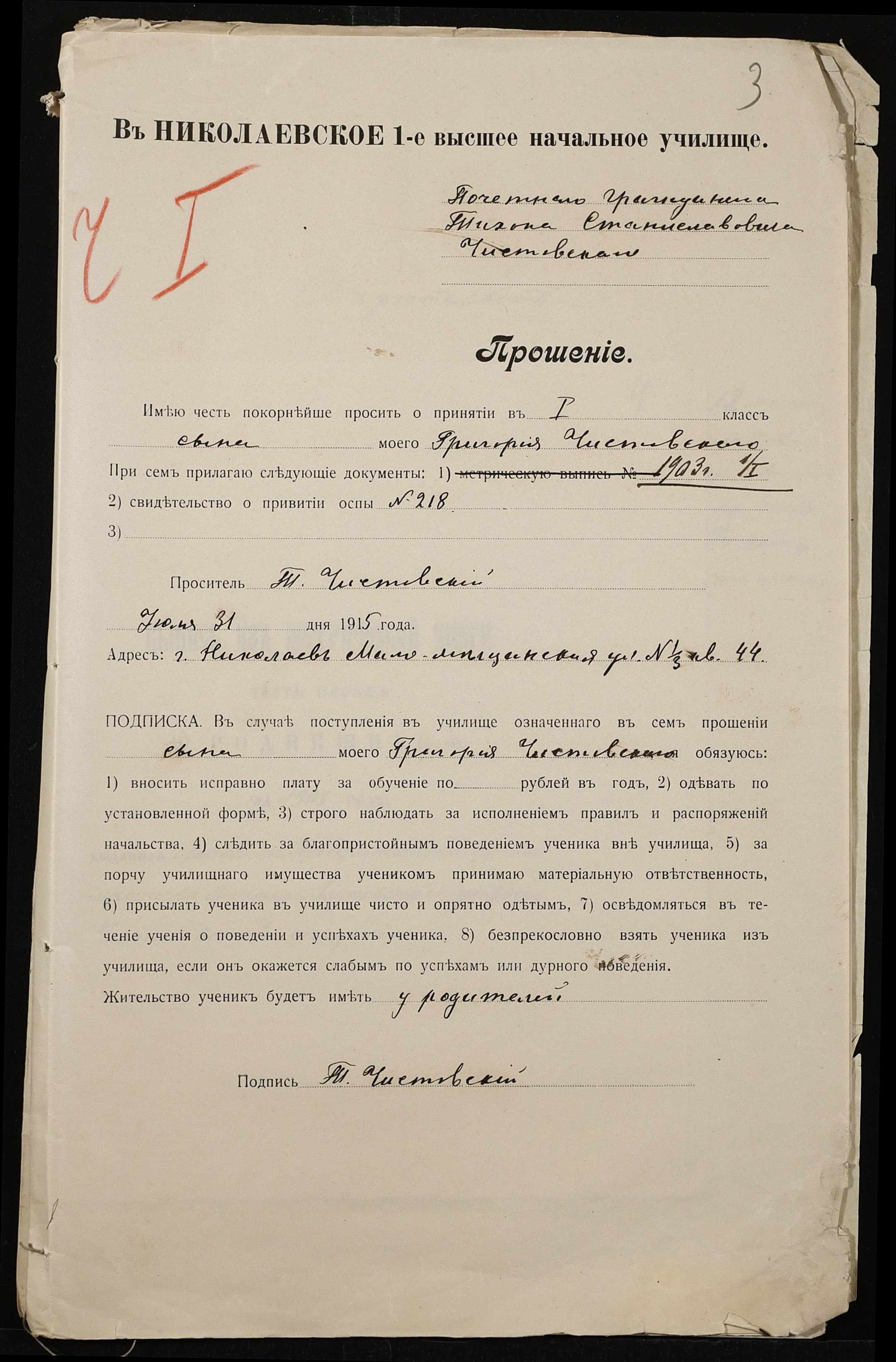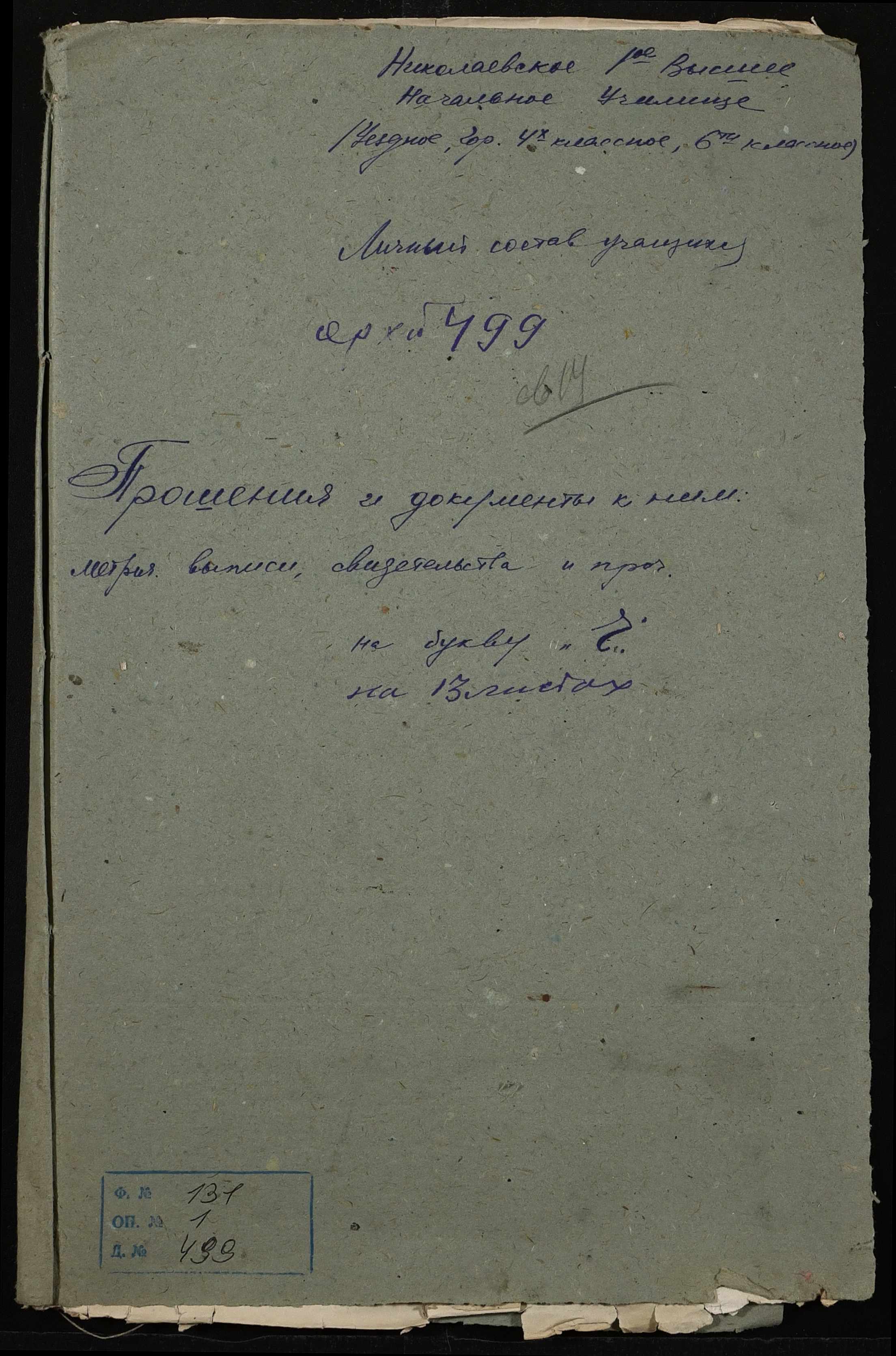 • • • • Справа № 499 “Прохання про прийом в училище, метричні виписки учнів, літера «Ч»”