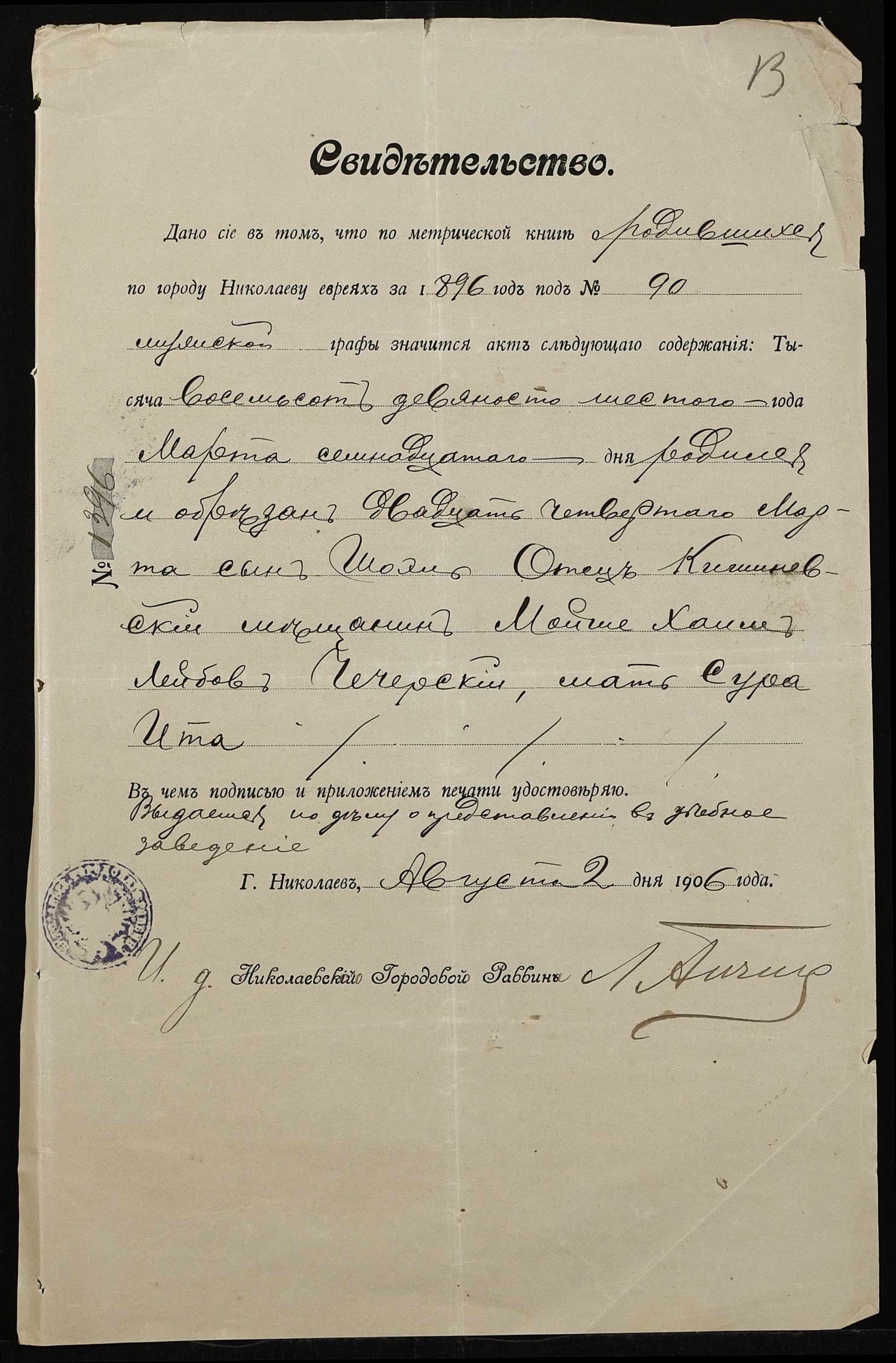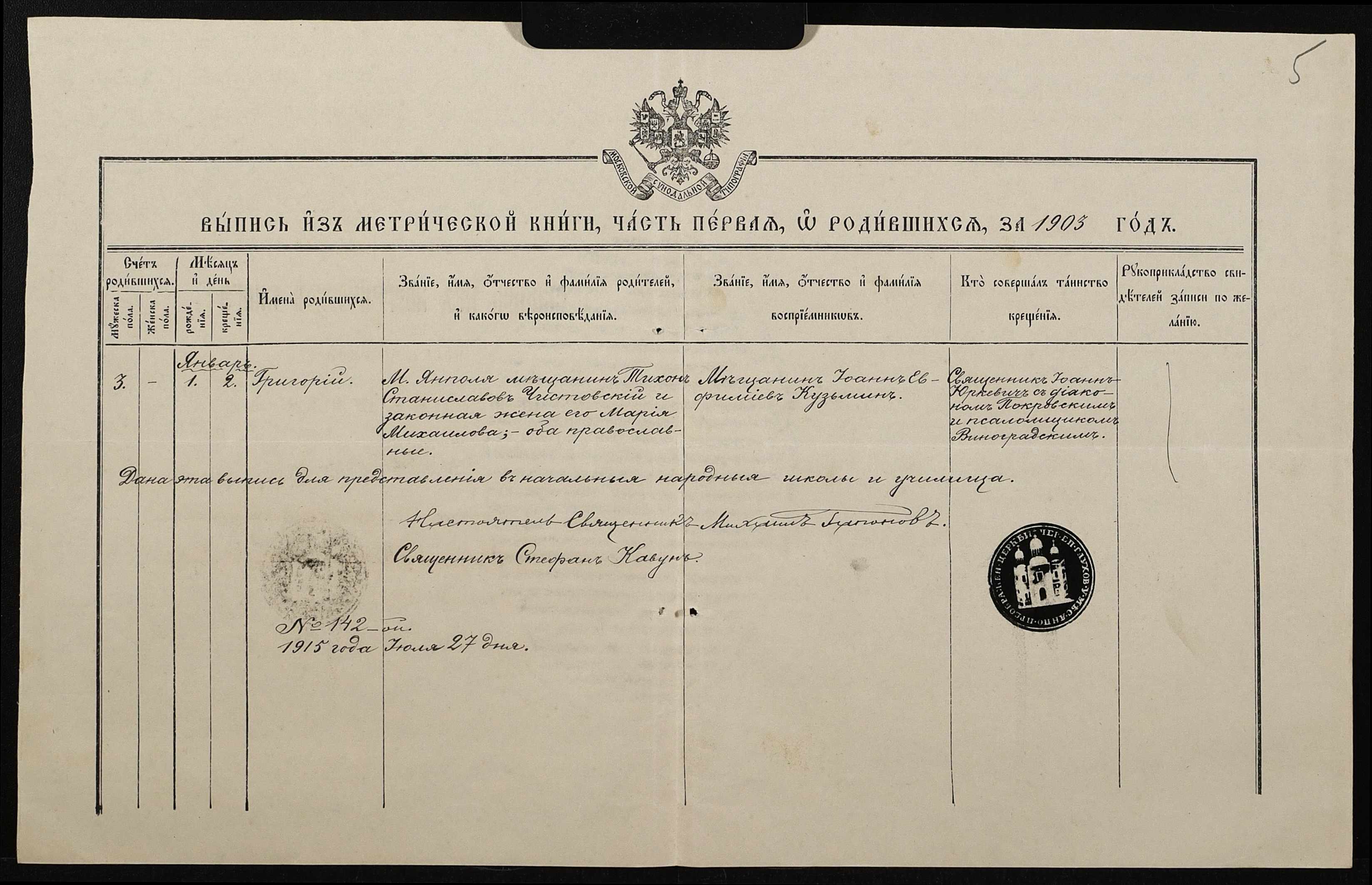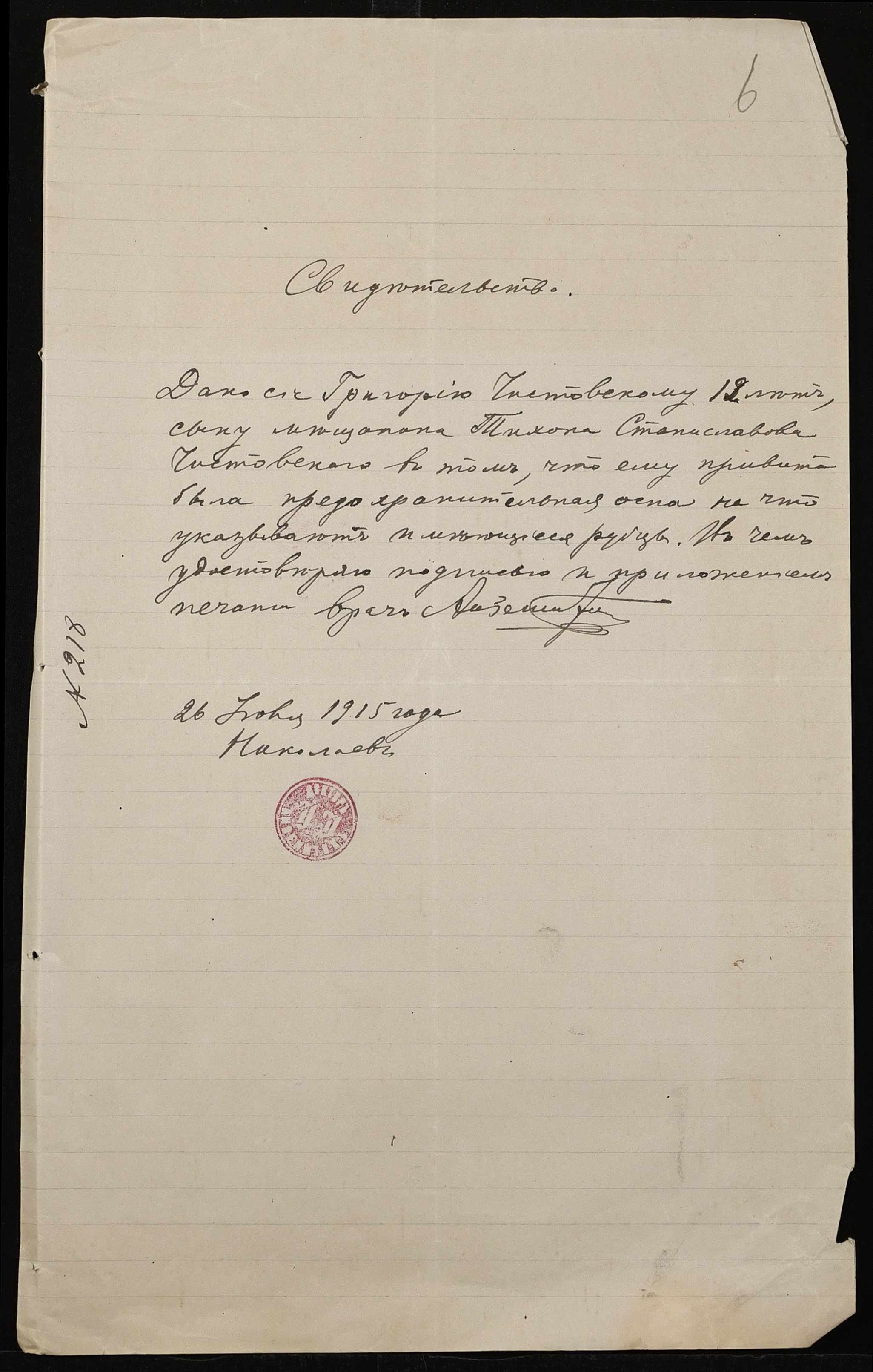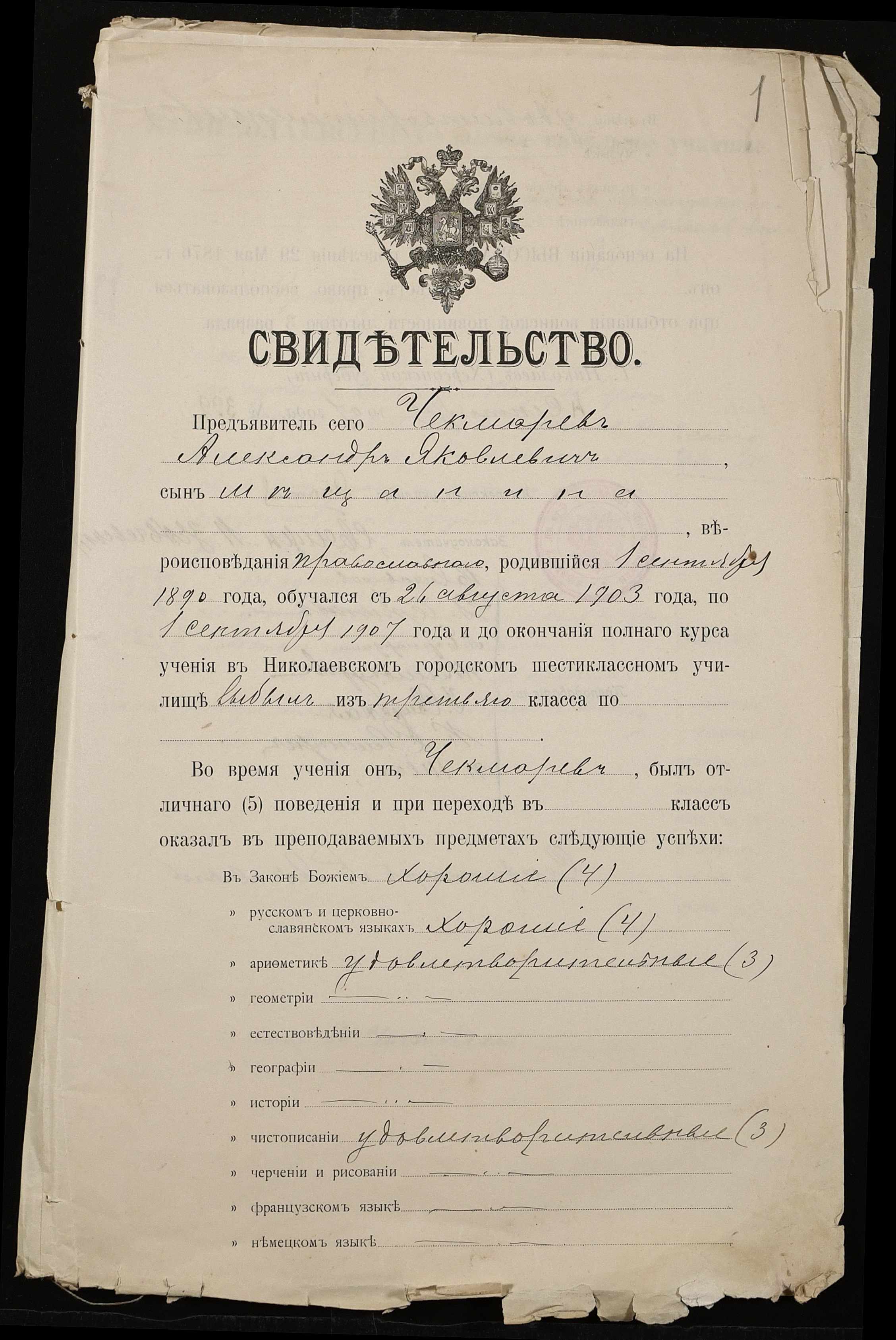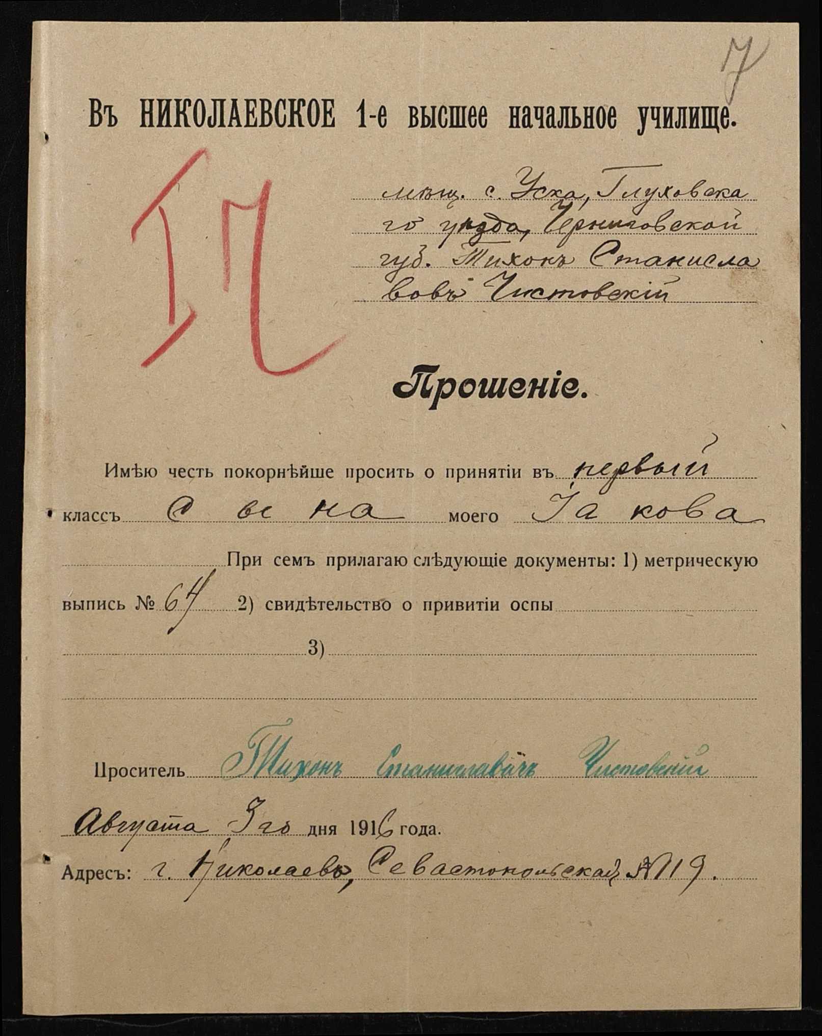 • • • • Справа № 499 “Прохання про прийом в училище, метричні виписки учнів, літера «Ч»”