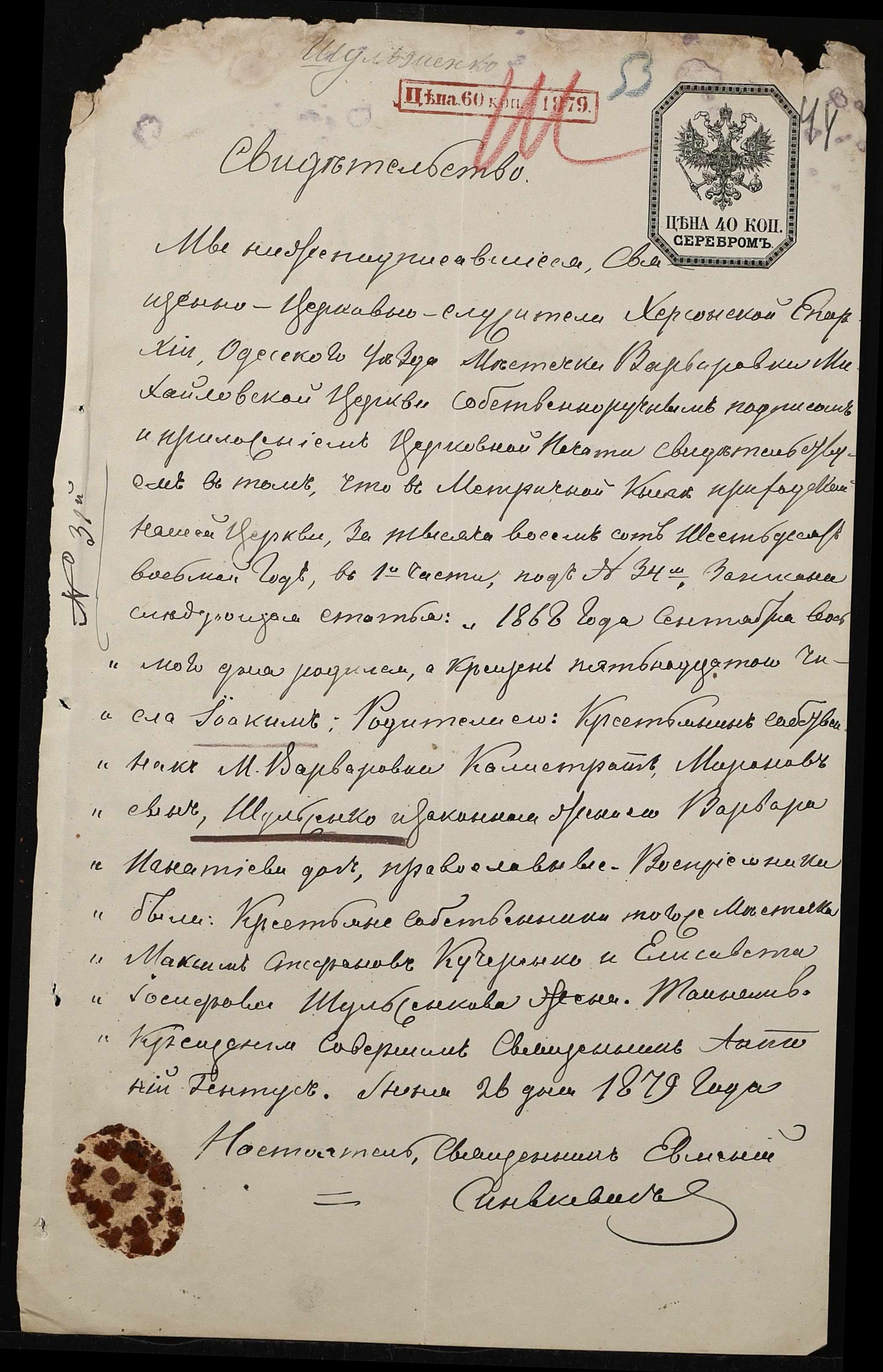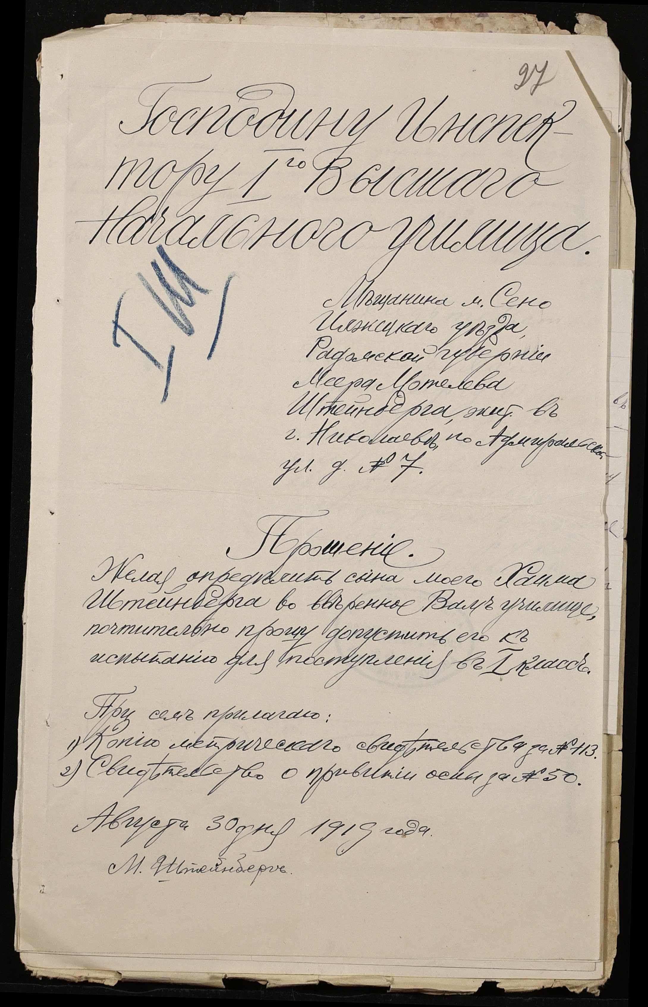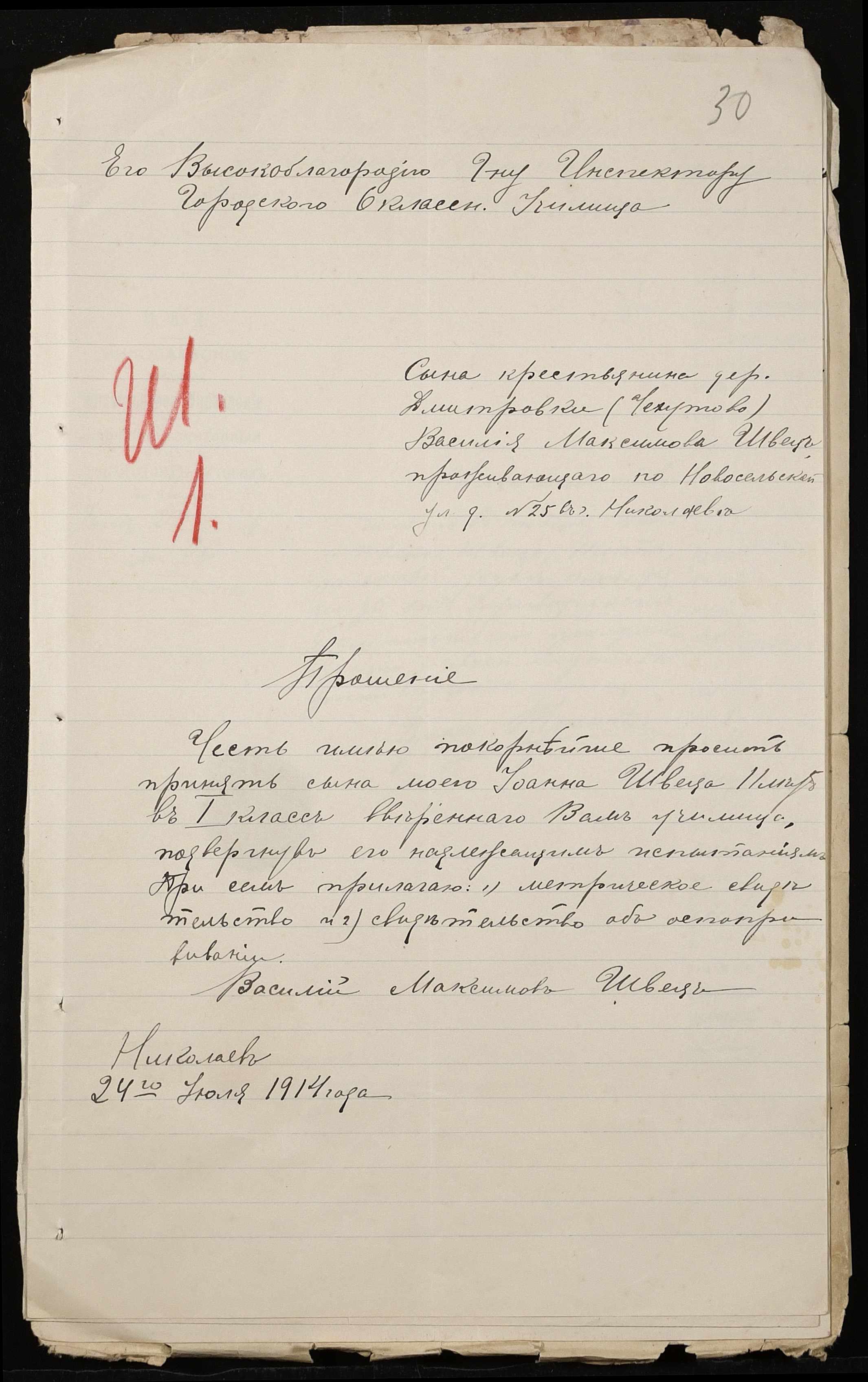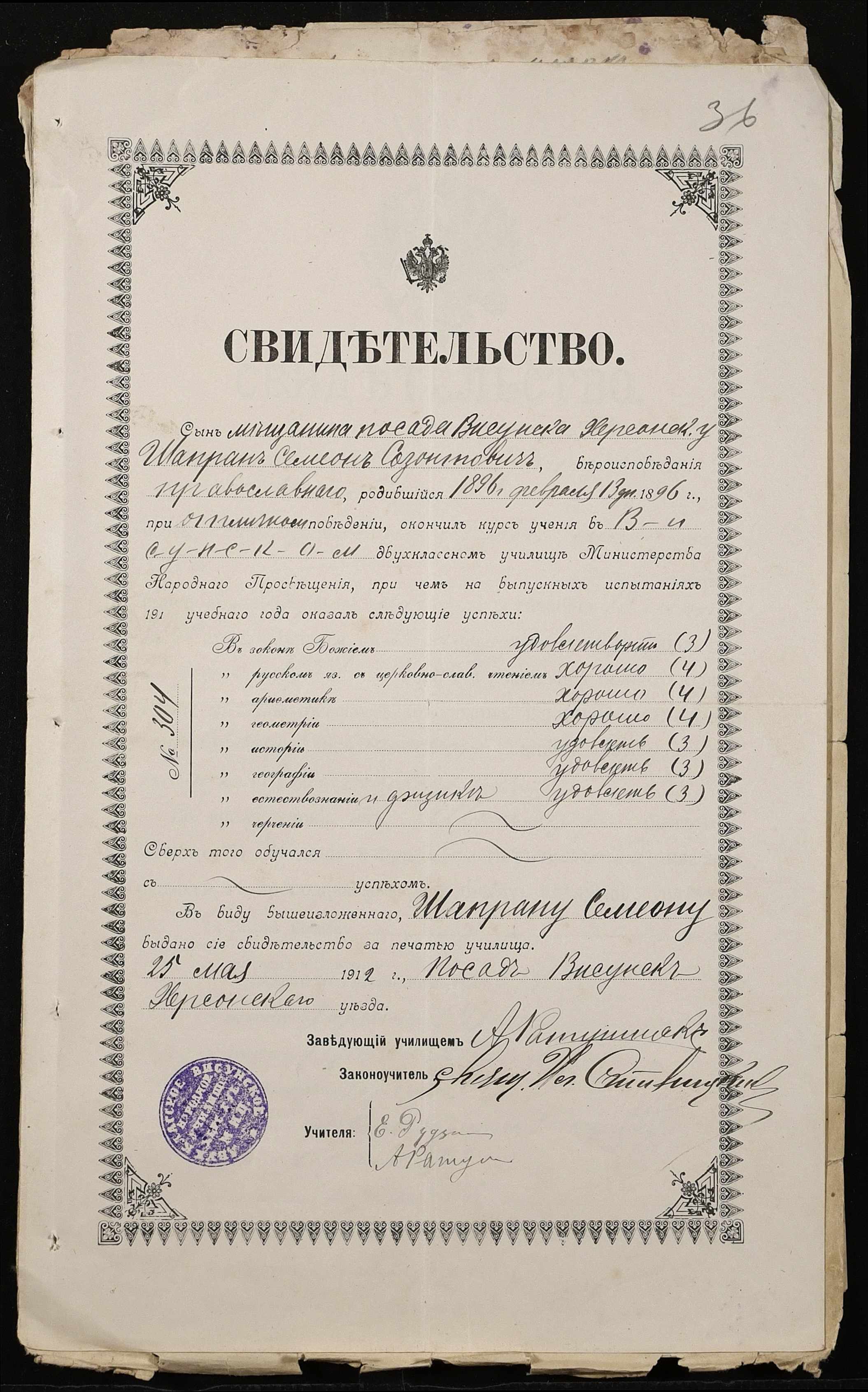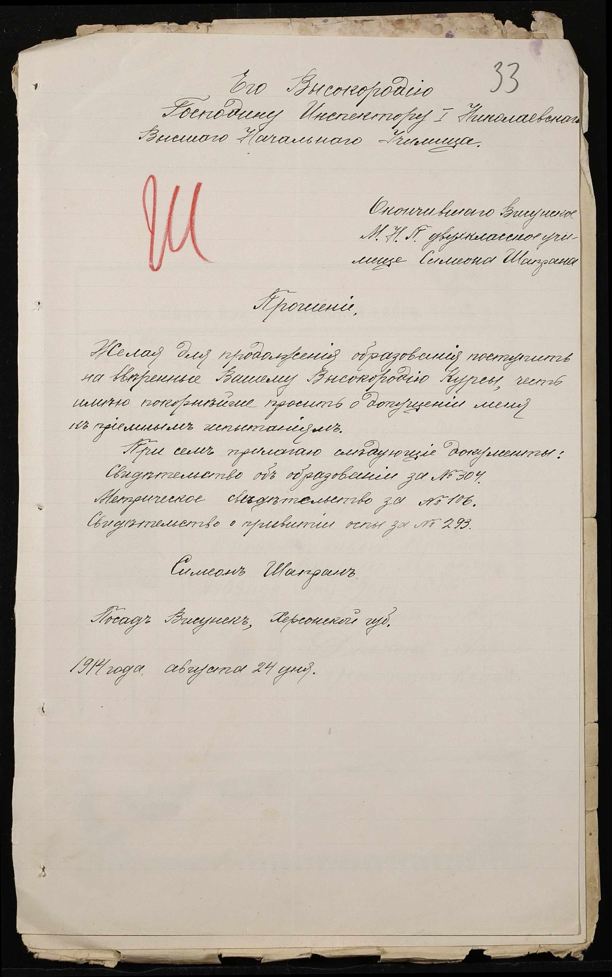 • • • • Справа № 500 “Прохання про прийом в училище, метричні виписки учнів, літера «Ш»”