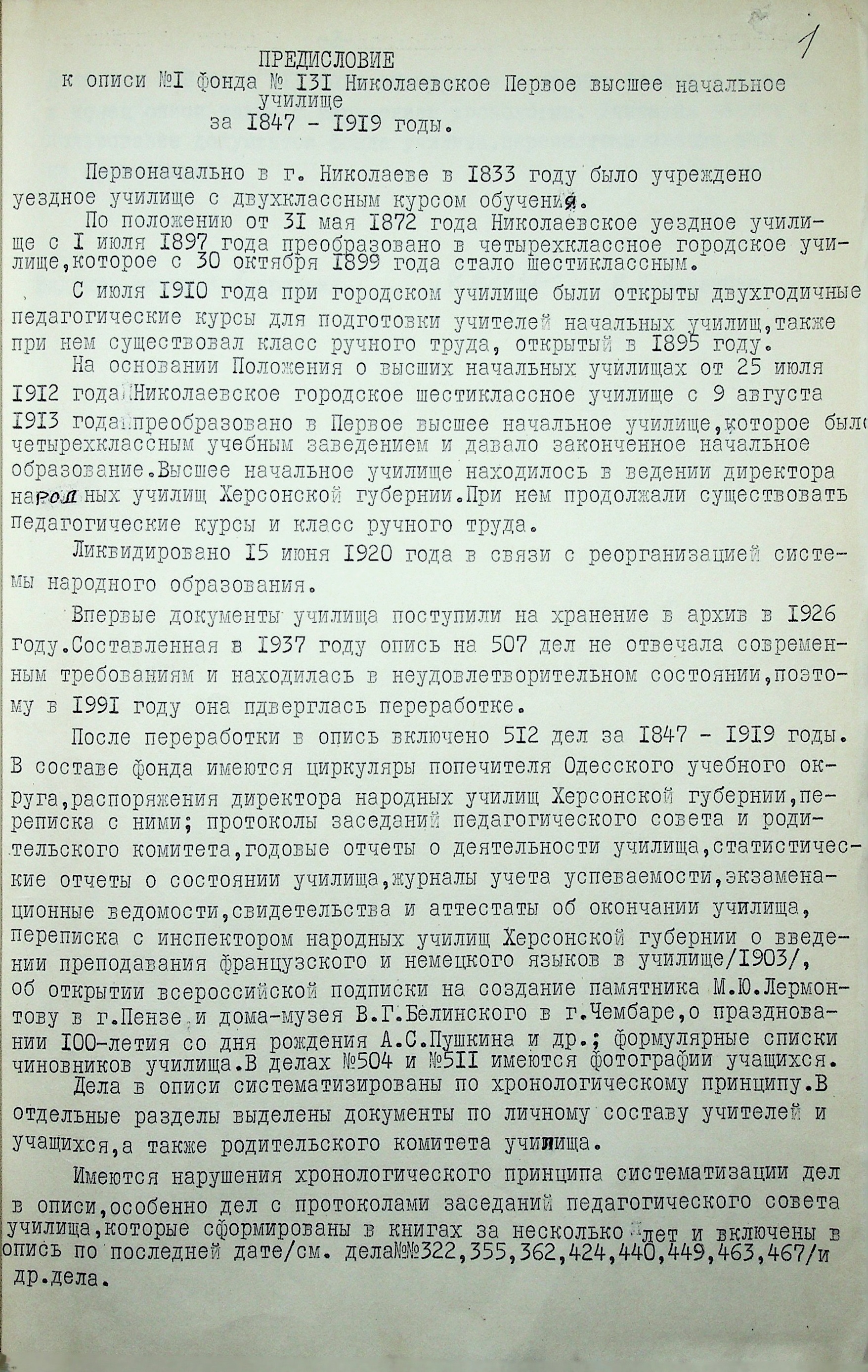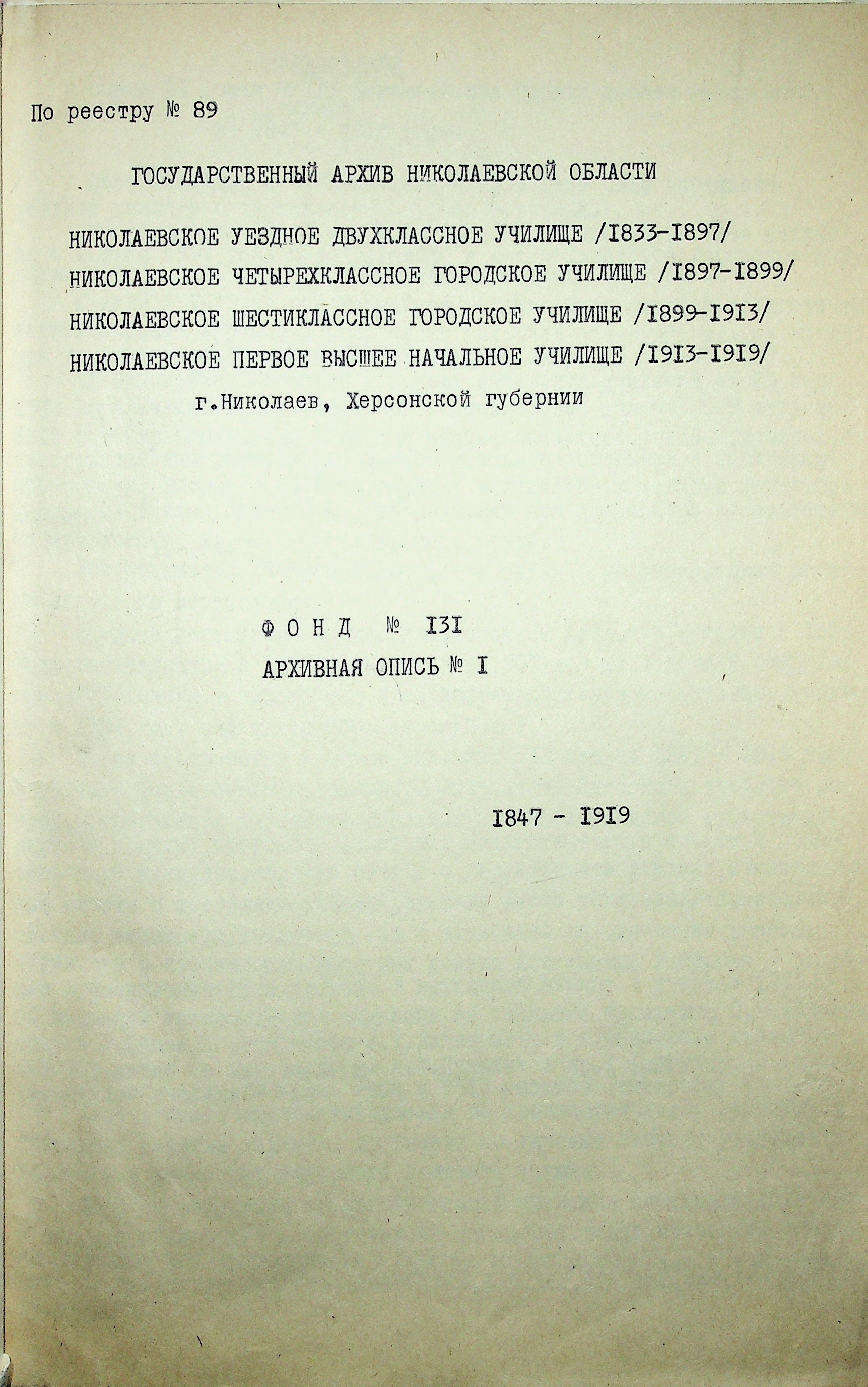 ◦ ◦ Фонд № 131 “Миколаївське перше вище початкове училище”