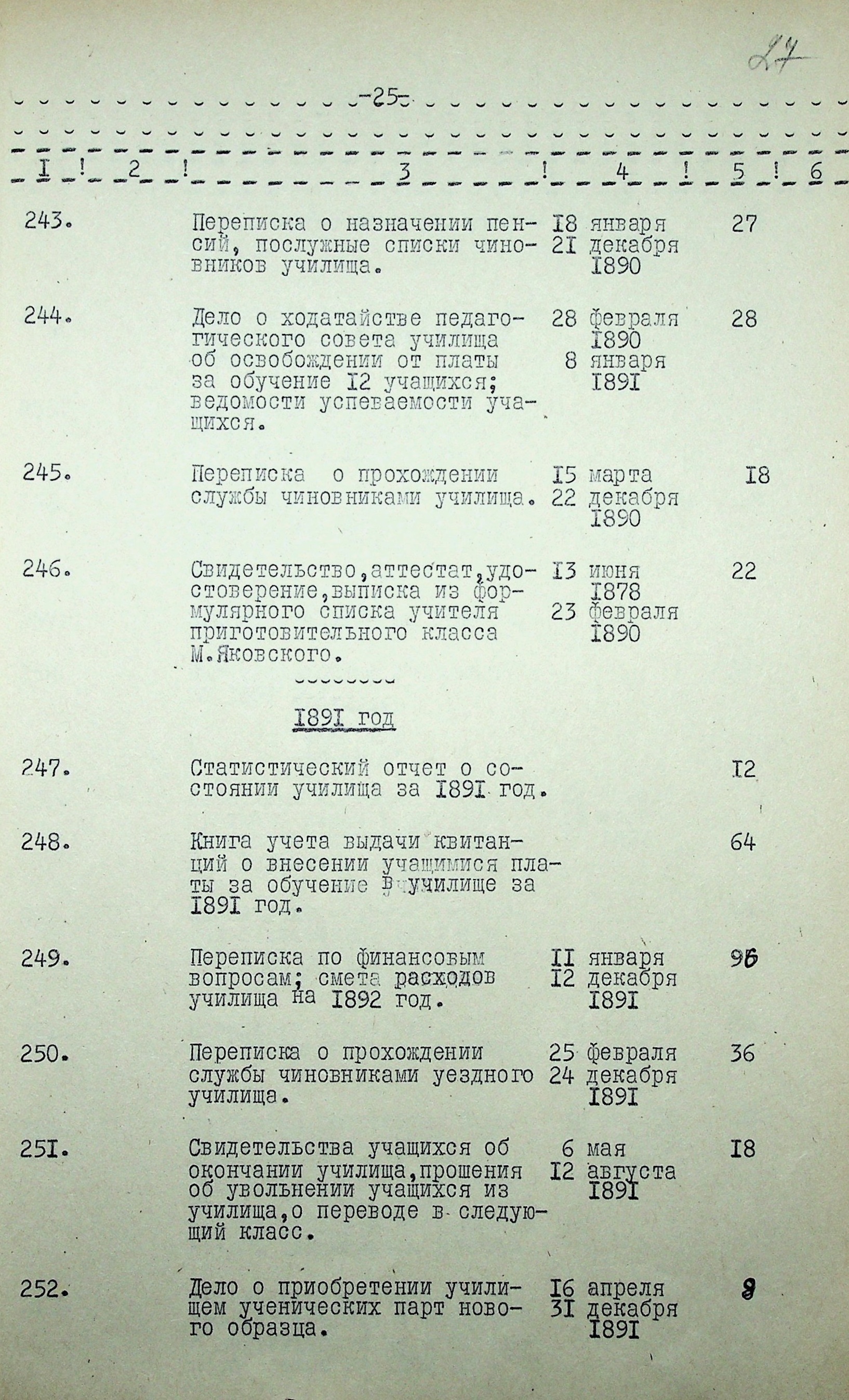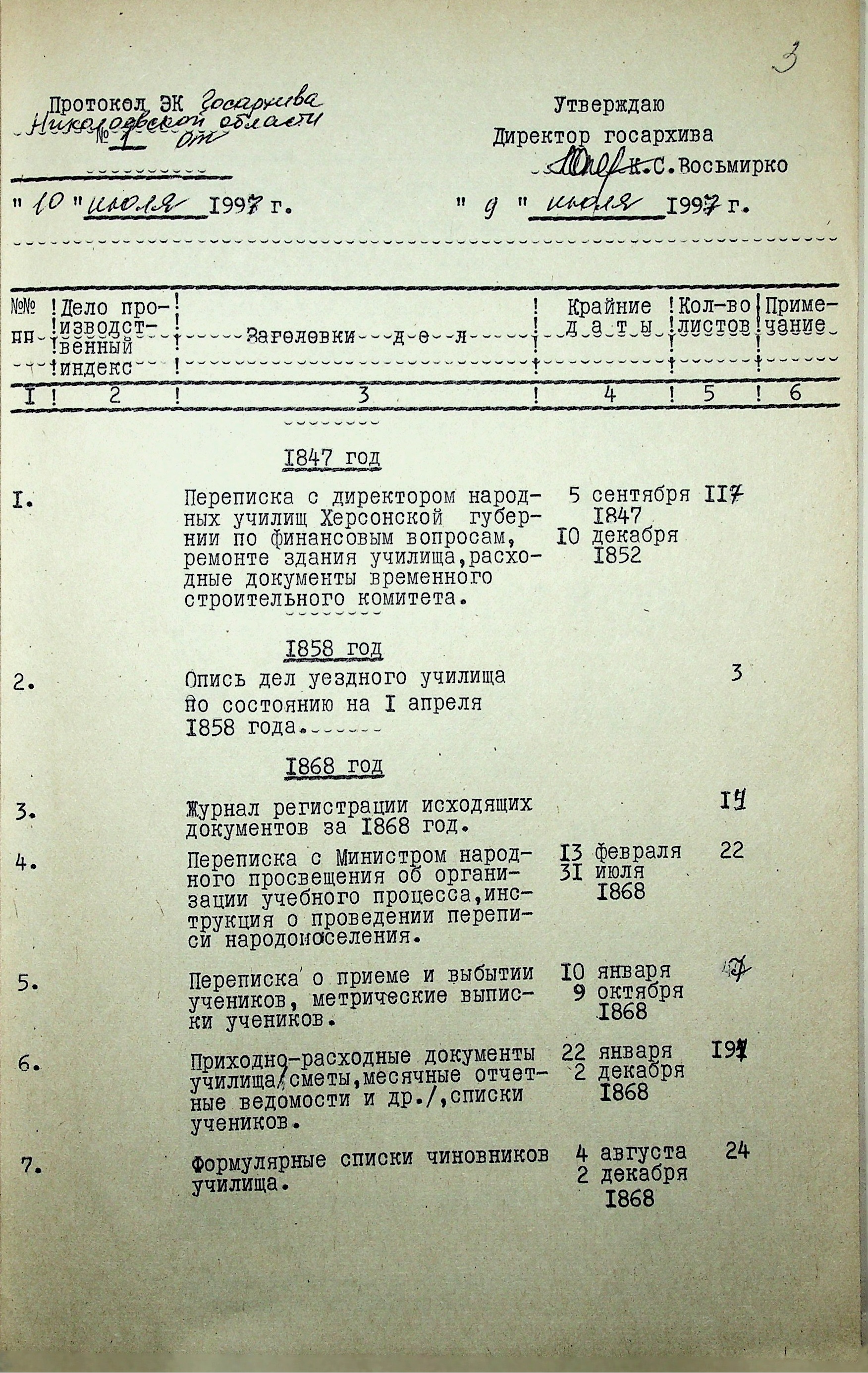◦ ◦ ◦ Опис № 1 справ постійного зберігання за 1847-1852, 1858, 1868-1869, 1871-1919, 1922 роки