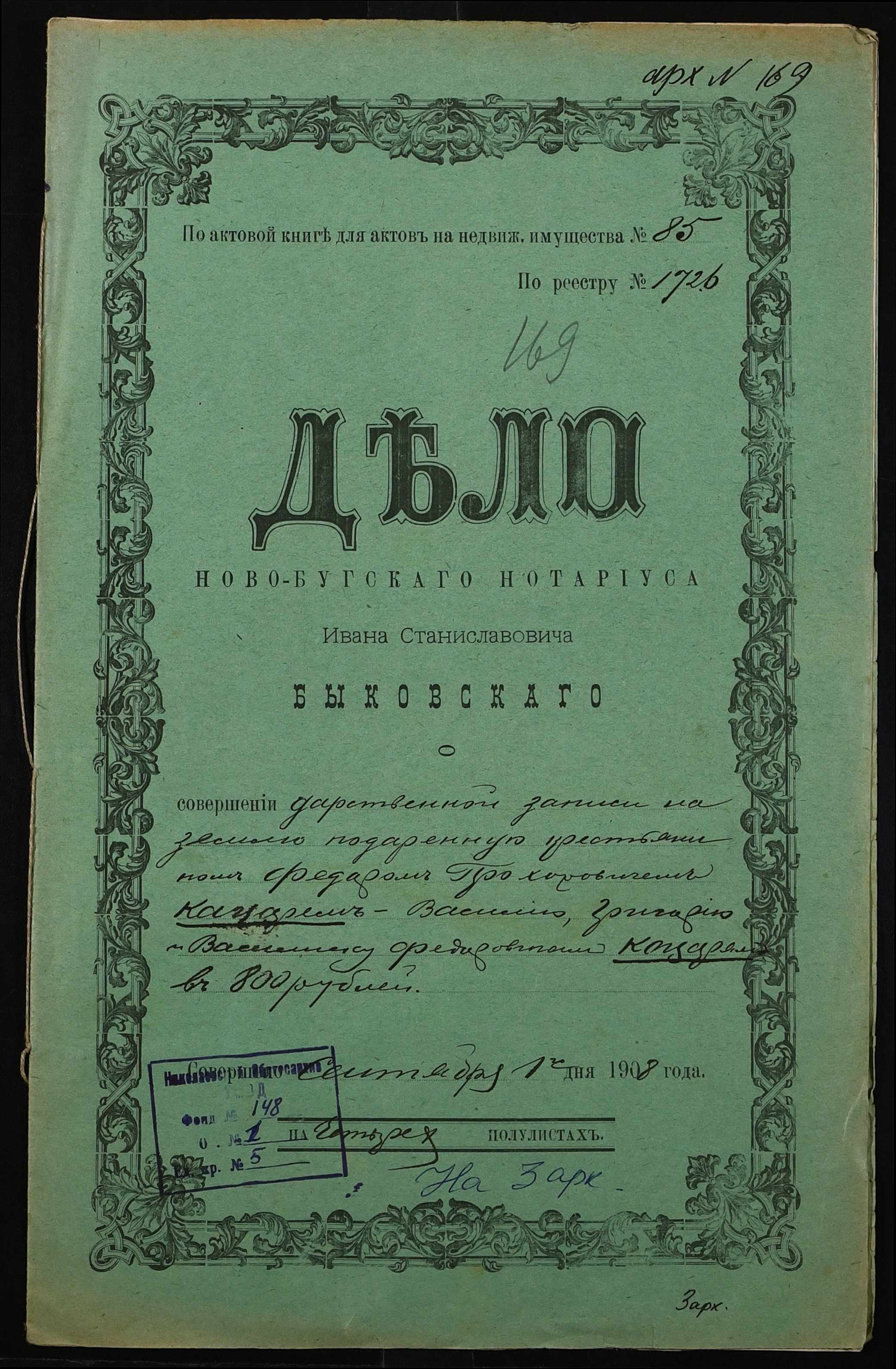 ◦ ◦ Фонд № 148 “Контора новобузького нотаріуса Биковського Івана Станіславовича”