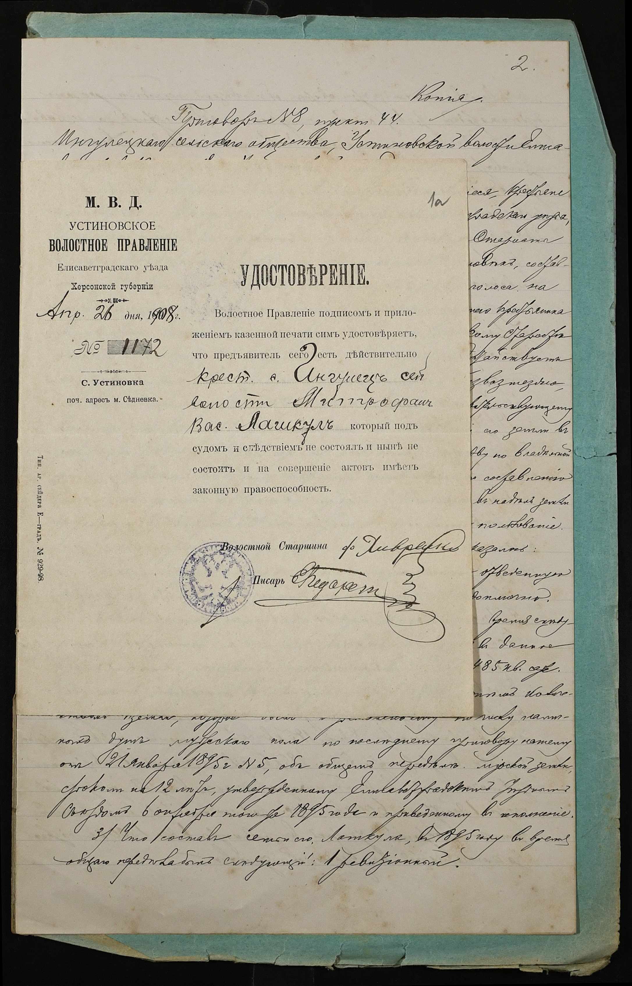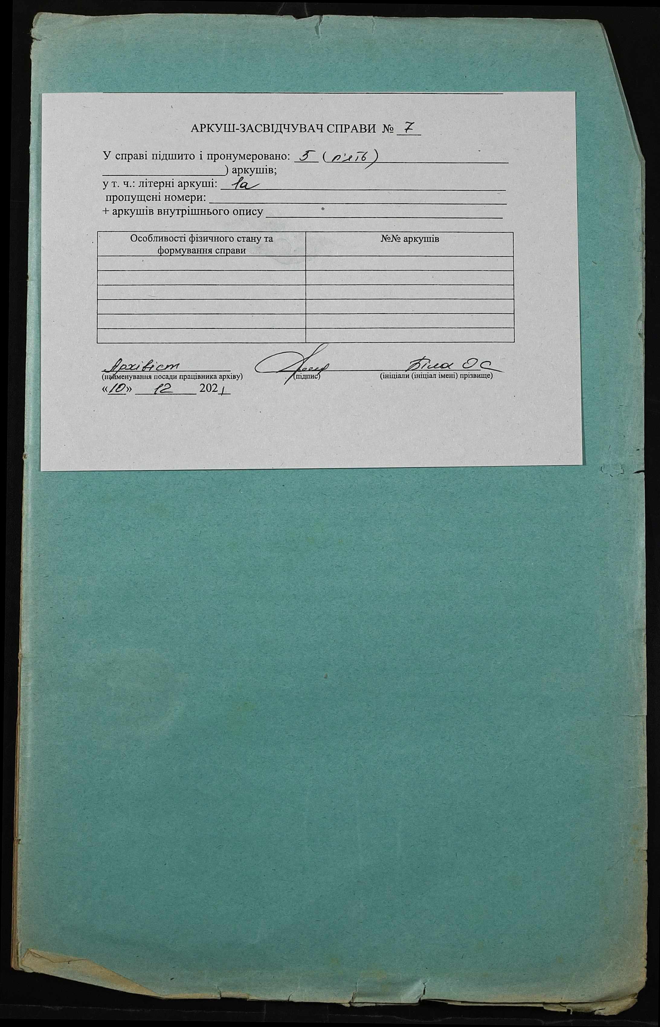 • • • • Справа № 7 “Справа про укладення дарчого запису на землю, передану Лашкулом Митрофаном Васильовичем (Васильевичем) у власність Березовського Павла Васильовича (Березовского Павла Васильевича) і Березовської Ганни Митрофанівни (Березовской Анны Митрофановны)”