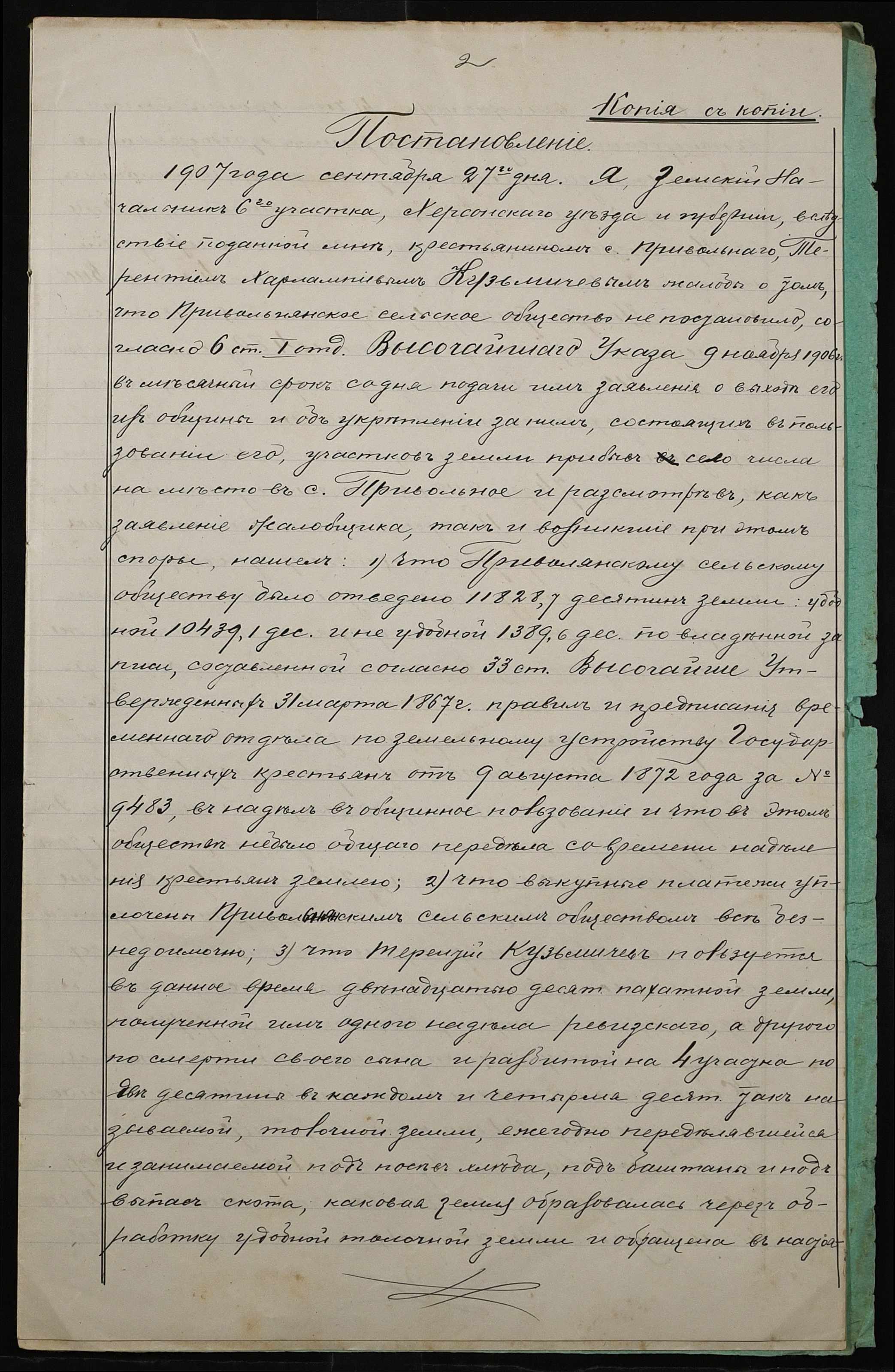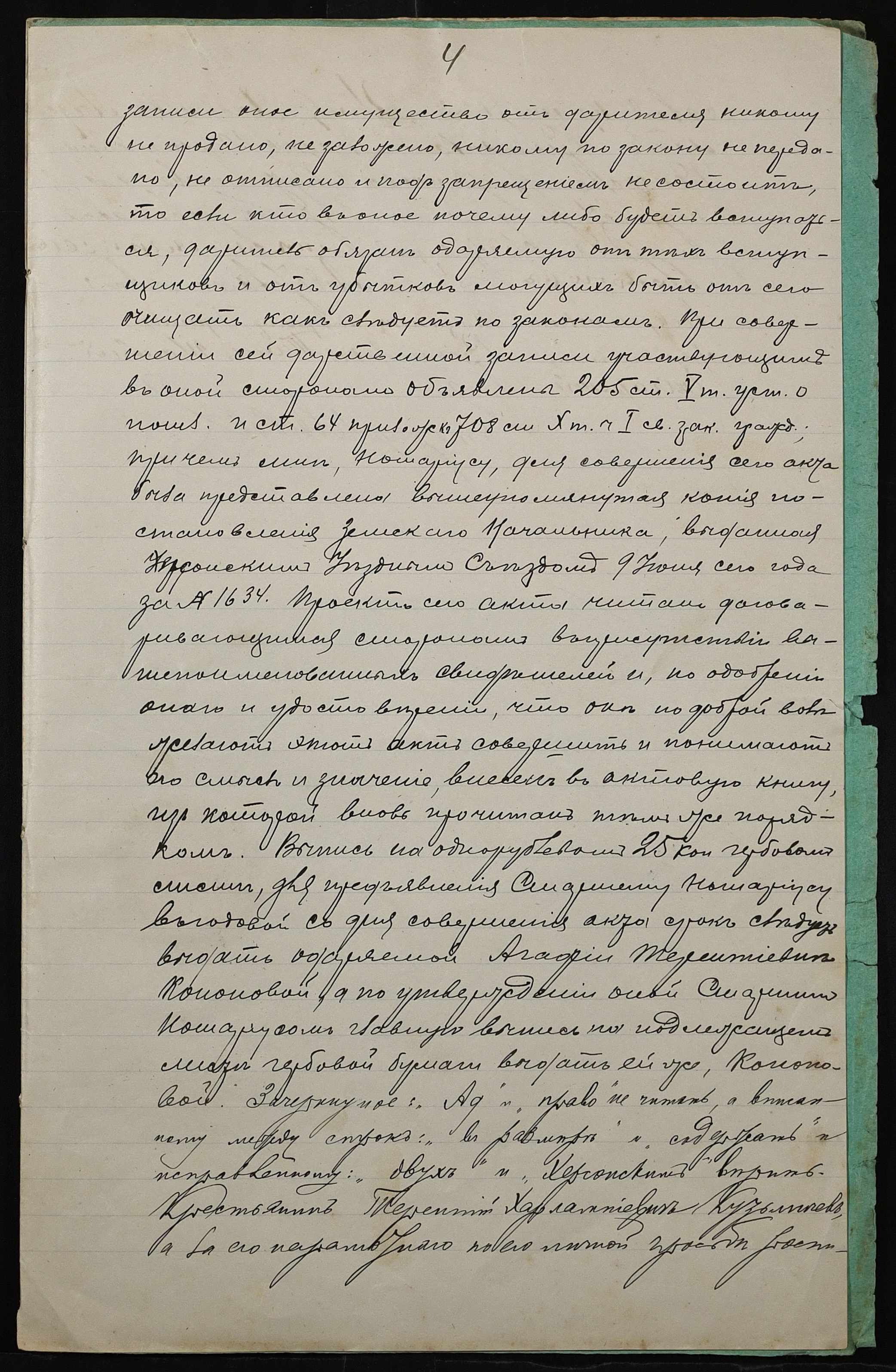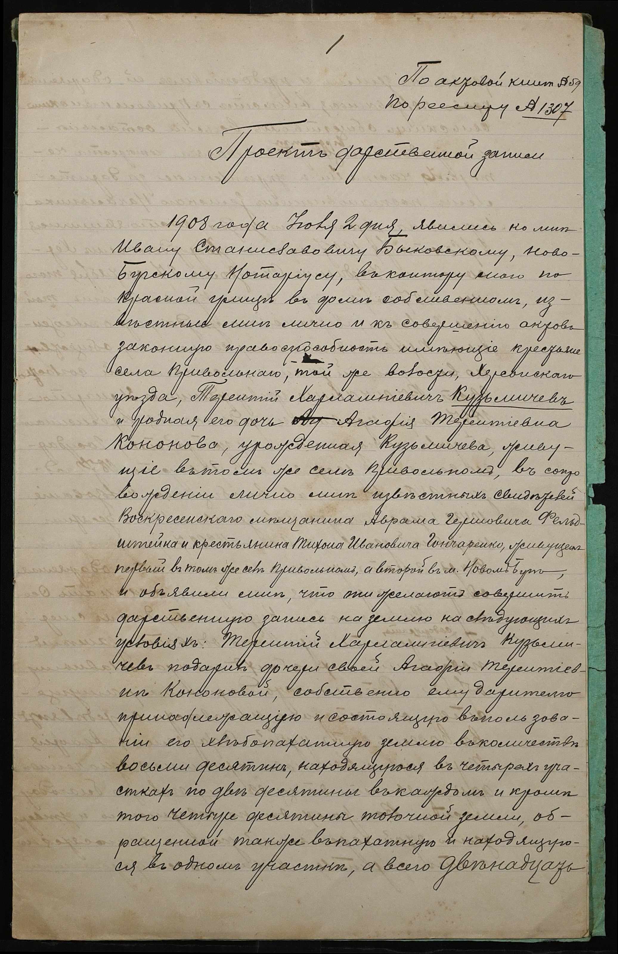• • • • Справа № 8 “Справа про укладення дарчого запису на землю, передану Кузьмічовим Терентієм Харламповичем (Кузьмичевым Терентием Харламповичем) у власність Кононової Агафії Терентіївни (Кононовой Агафии Терентьевны)”