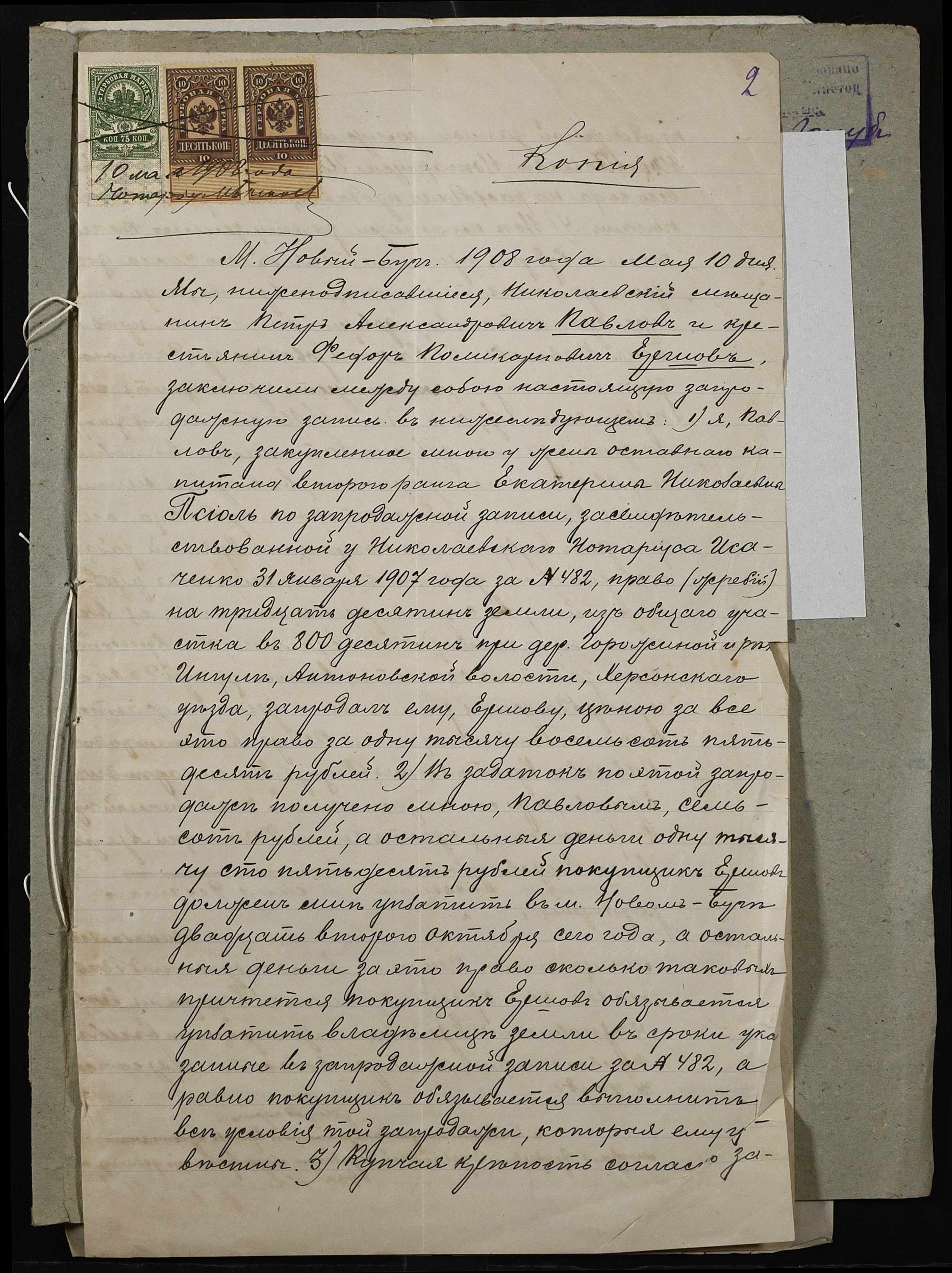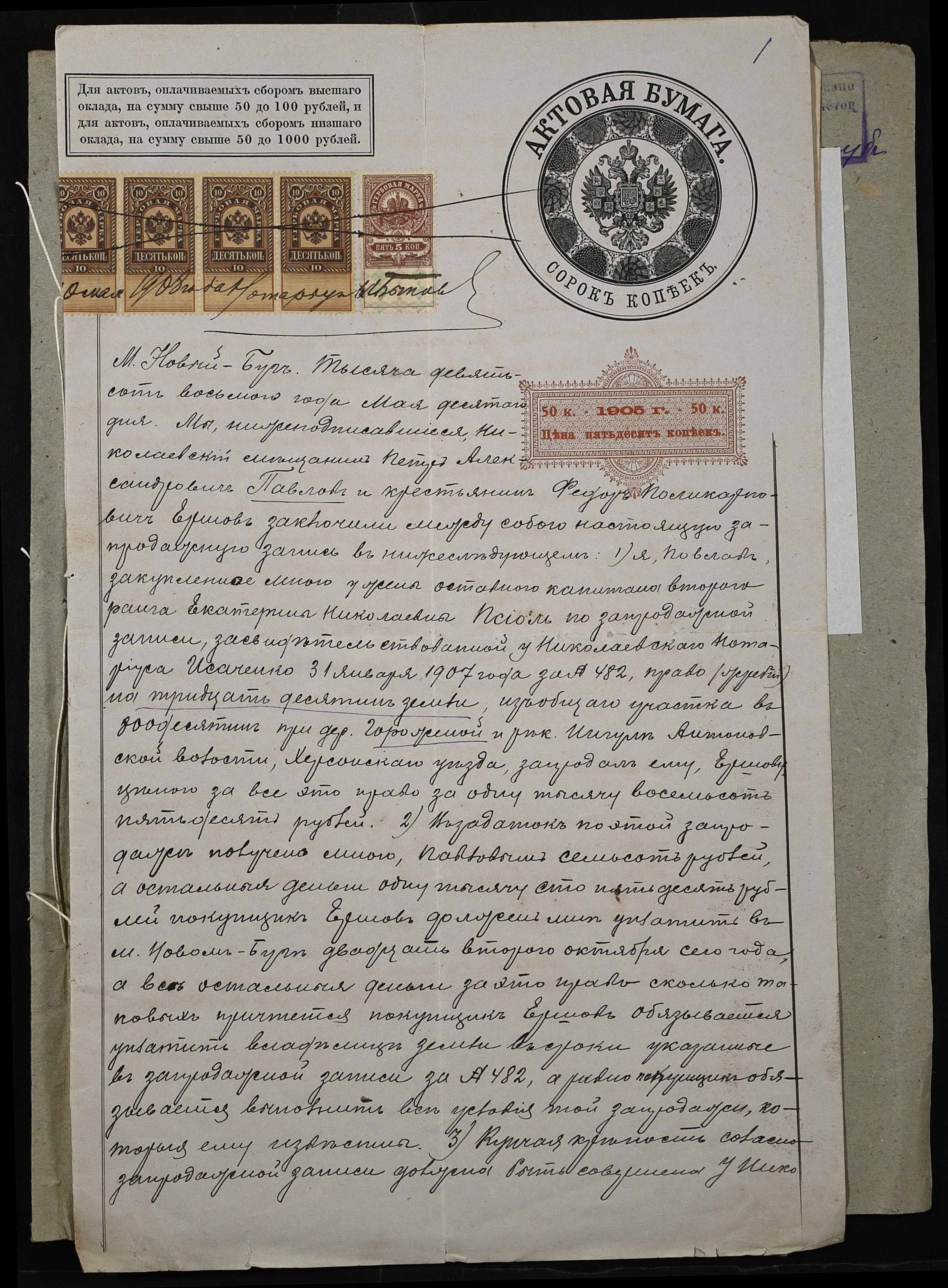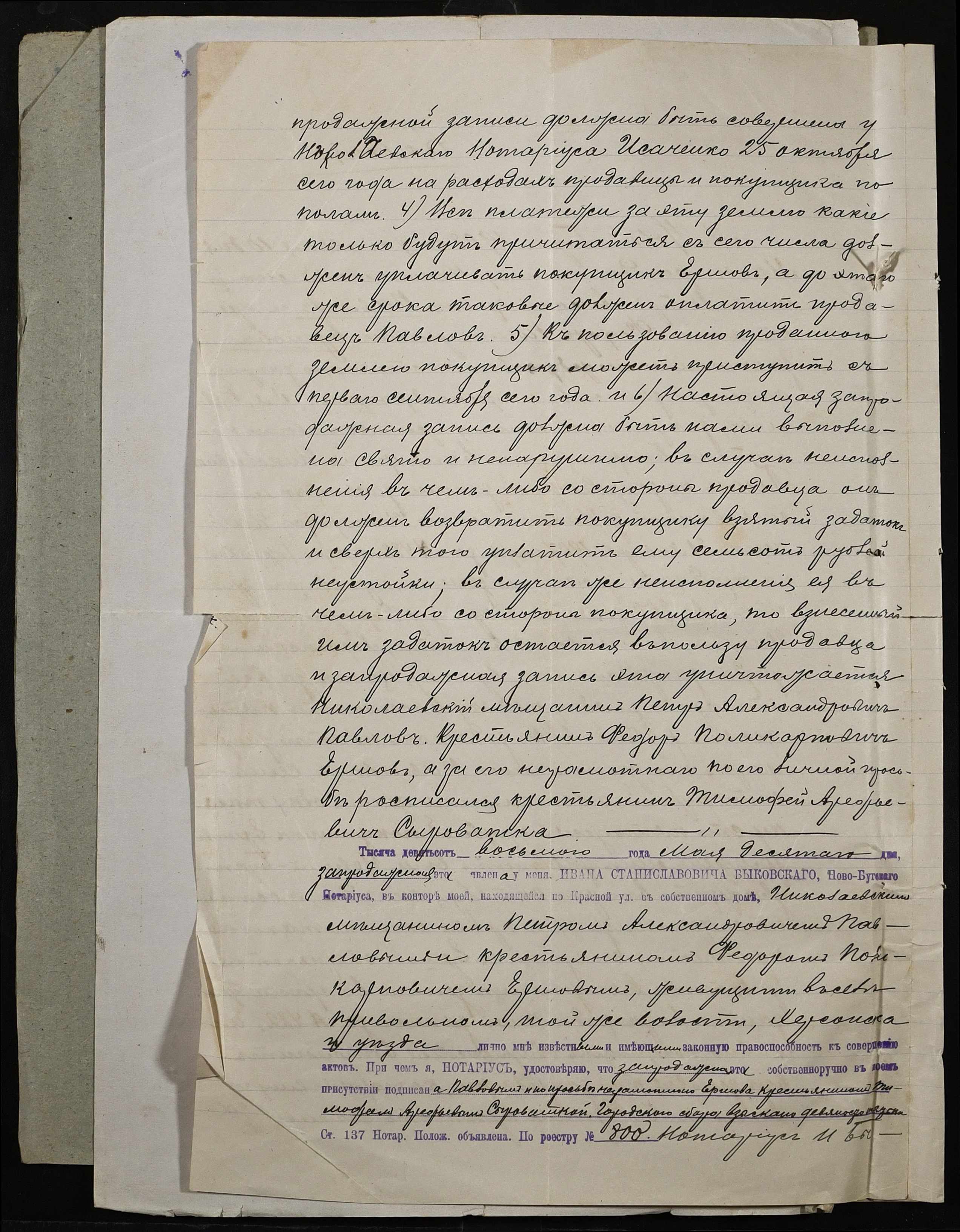 • • • • Справа № 11 “Справа про укладення запродажного запису на землю між Павловим (Павловым) Петром Олександровичем (Александровичем) і Єршовим (Ершовым) Федором Полікарповичем (Поликарповичем)”