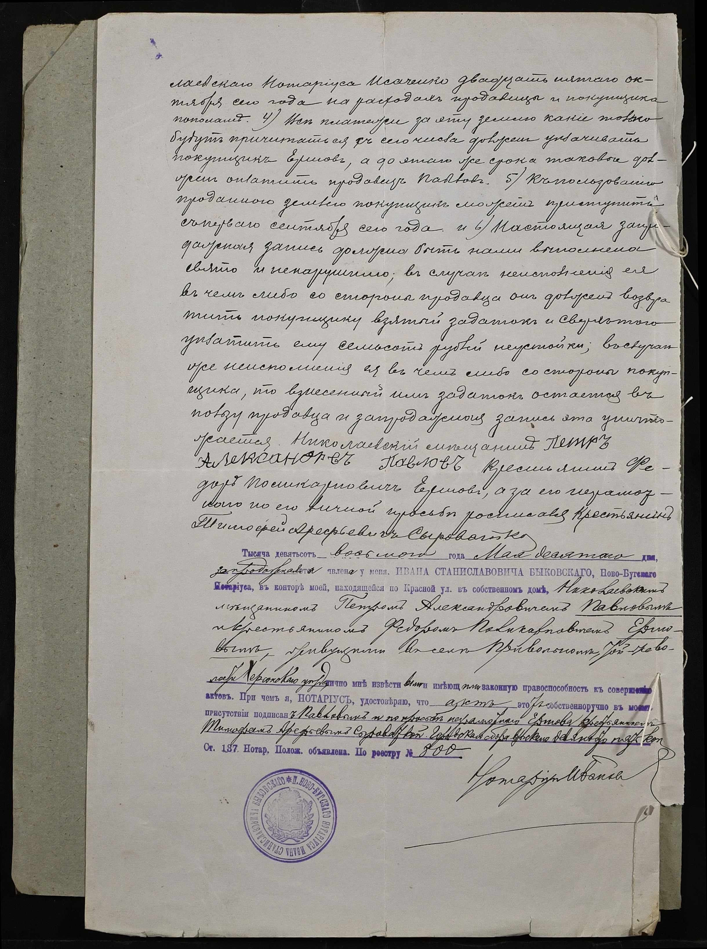 ◦ ◦ Фонд № 148 “Контора новобузького нотаріуса Биковського Івана Станіславовича”