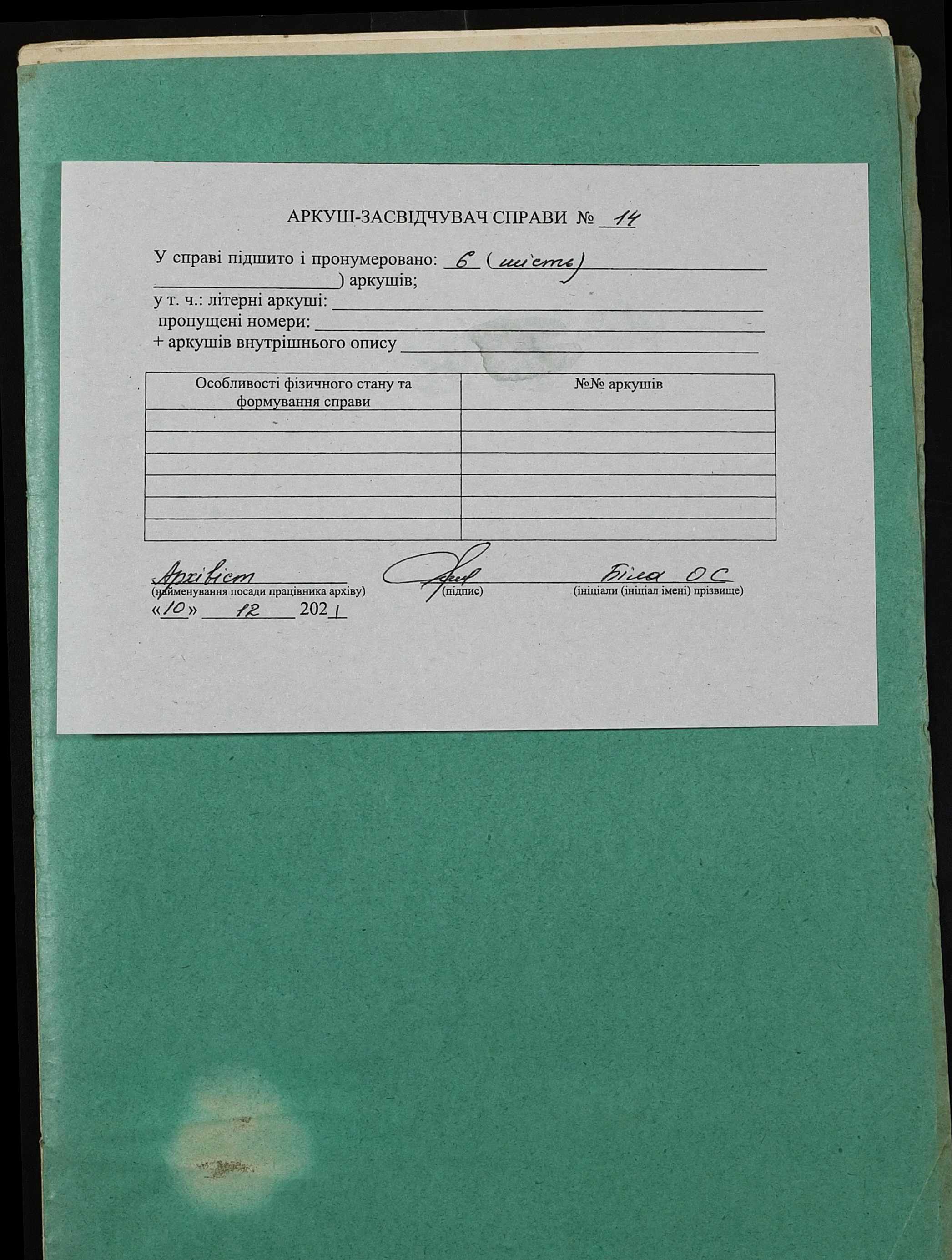 • • • • Справа № 14 “Справа про вчинення заставної на землю, закладену селянином Сосєдкою Феофілактом Ісааковичем (Соседкой Феофилактом Исааковичем) селянину Барбулу Григорію (Григорию) Даниловичу”