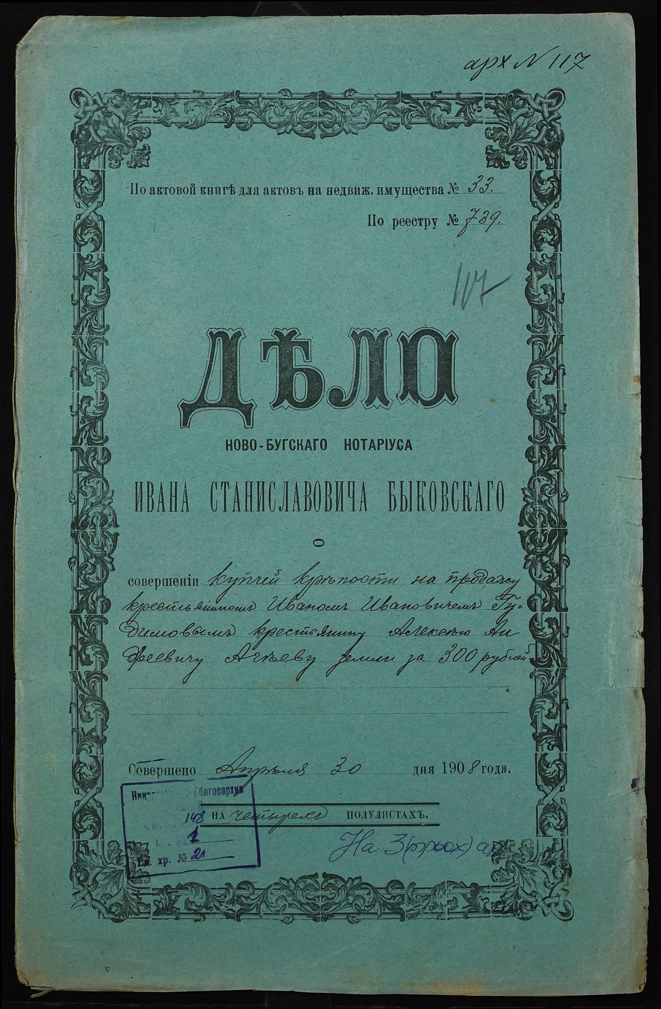 ◦ ◦ Фонд № 148 “Контора новобузького нотаріуса Биковського Івана Станіславовича”